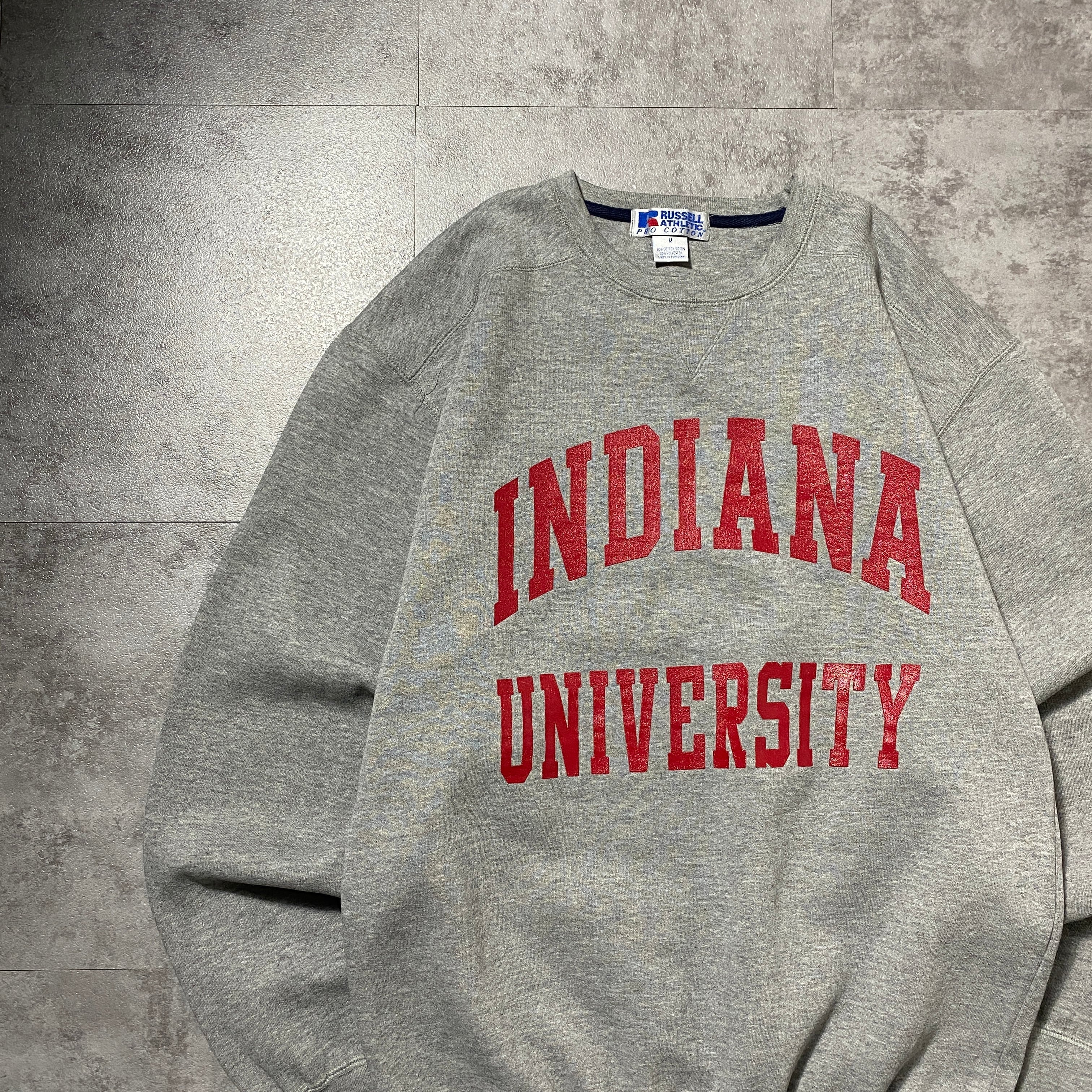 90's RUSSEL ATHLETIC PRO COTTON ラッセルアスレチック インディアナ大学 カレッジロゴ プリント グレー スウェット トレーナー