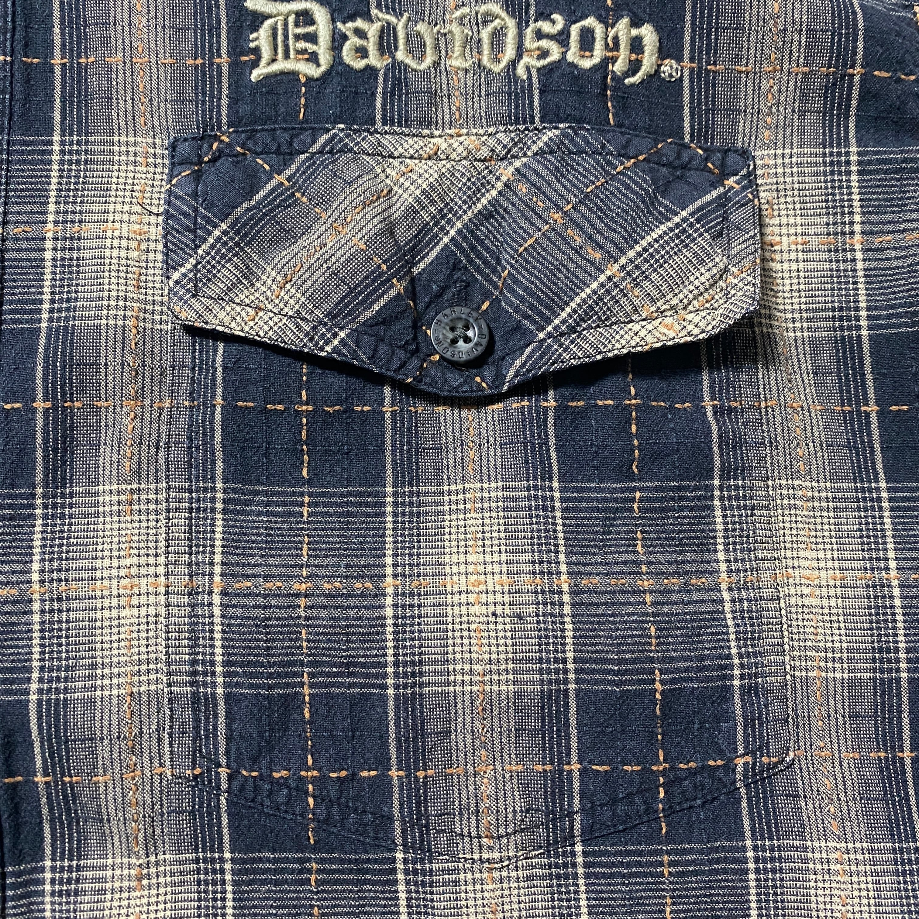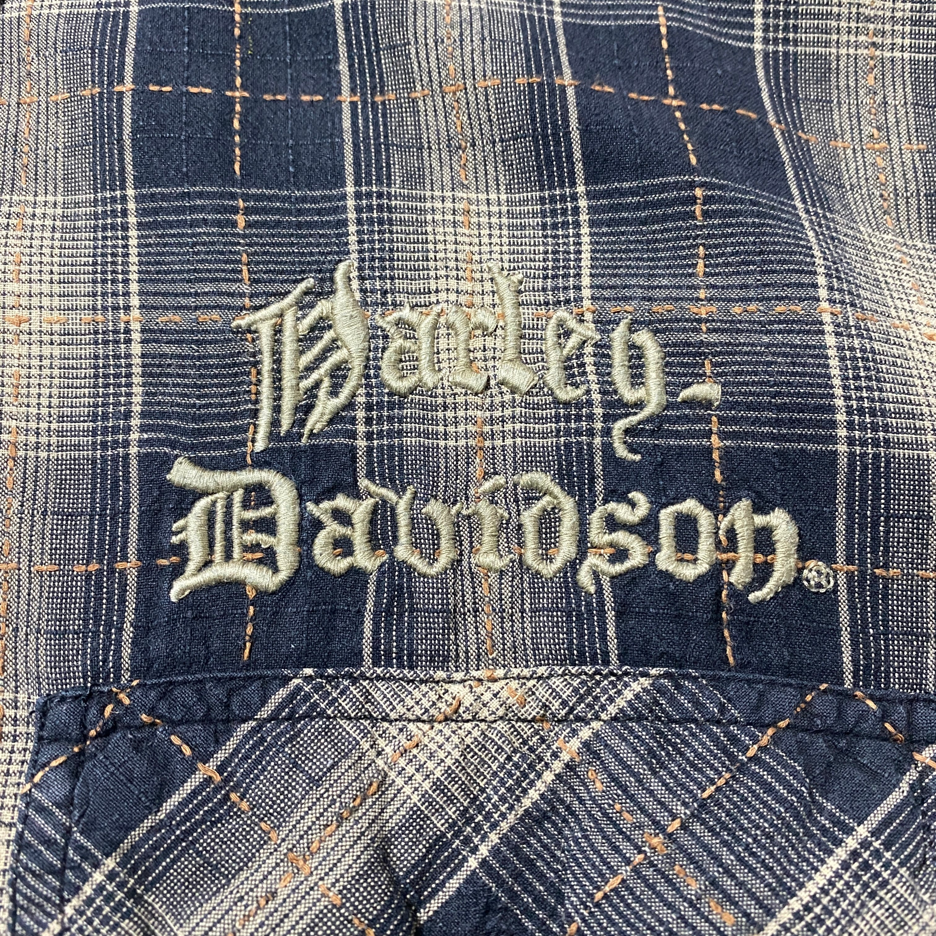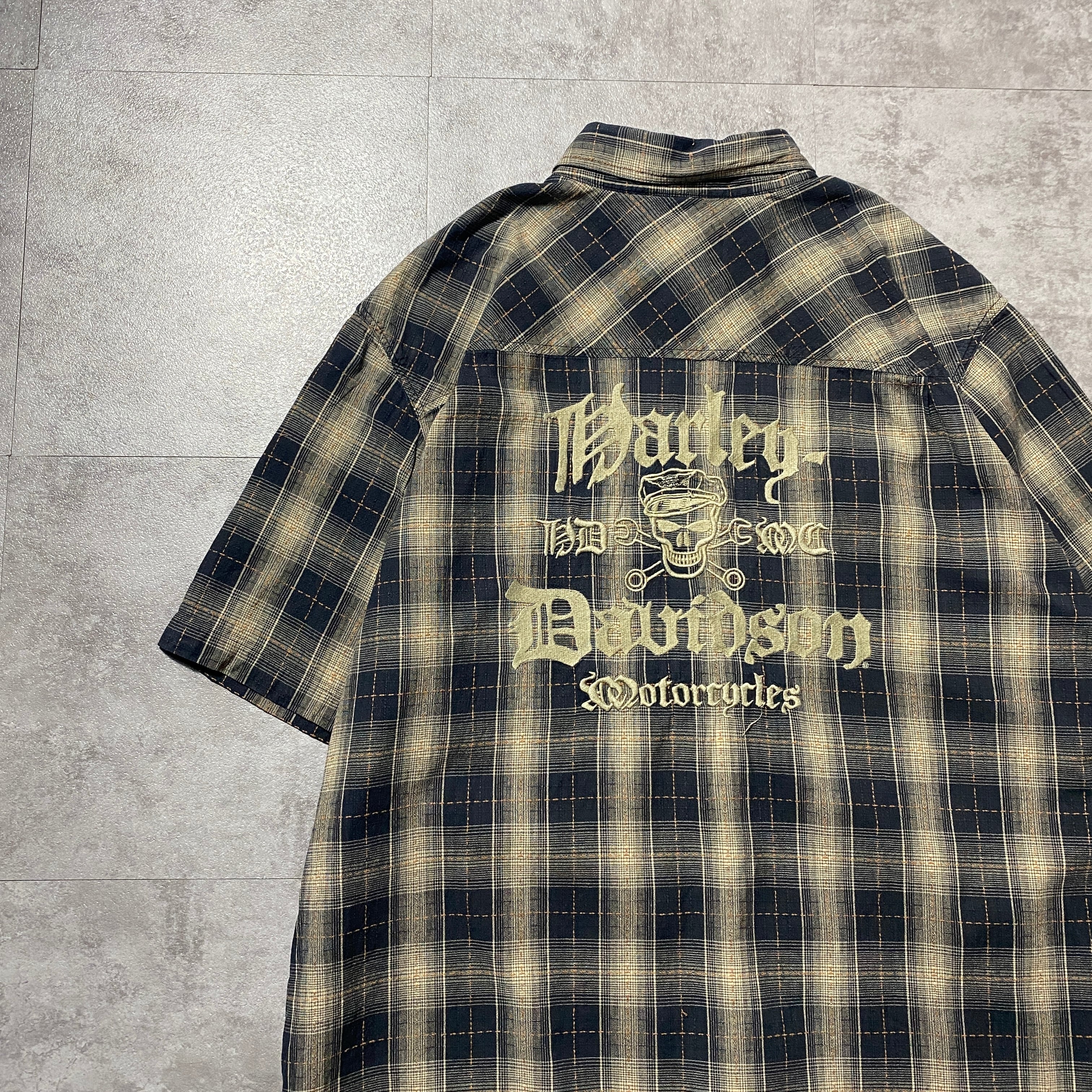 Harley-Davidson ハーレーダビッドソン スカル刺繍バックロゴ ダブルポケット 総柄 オンブレ 半袖 チェックシャツ