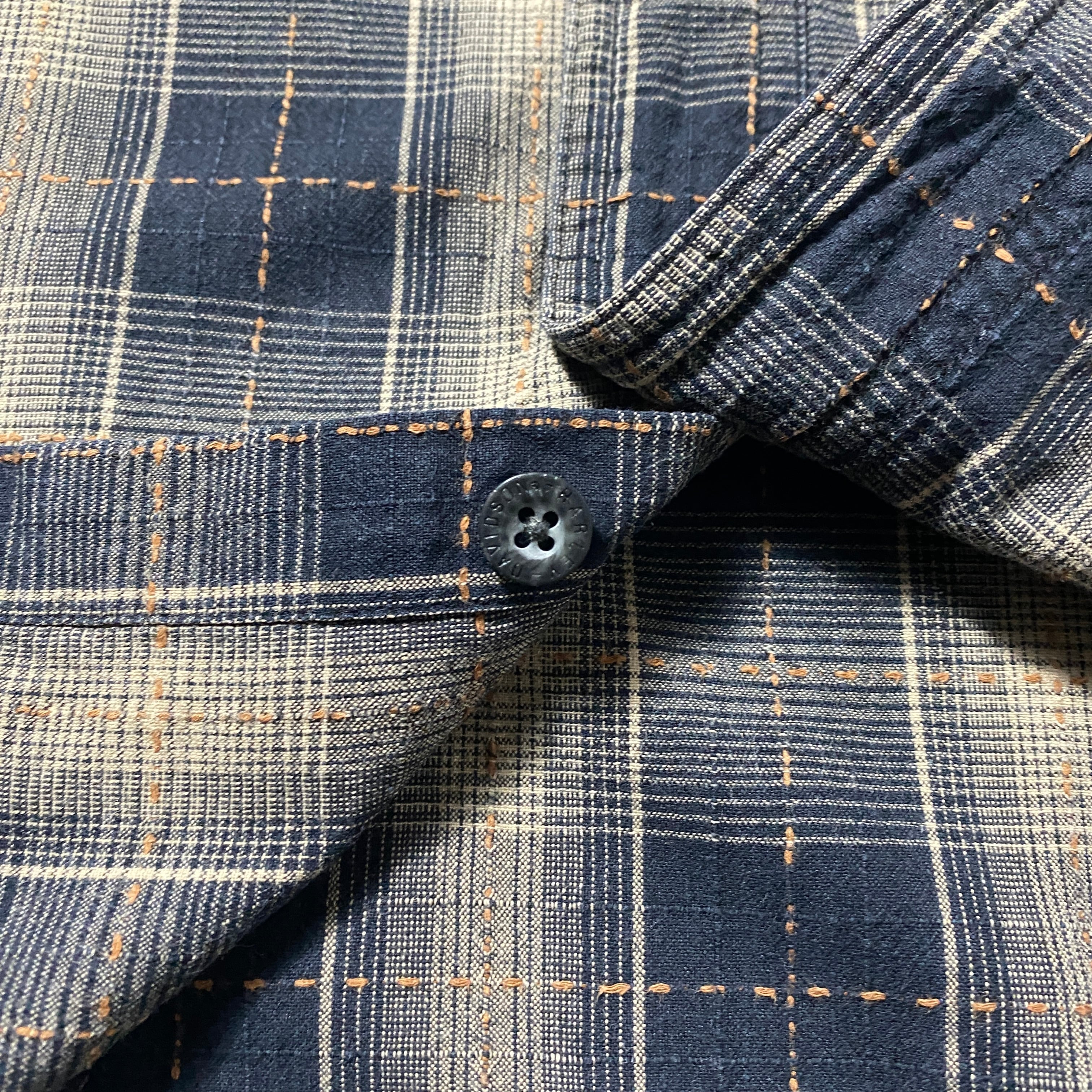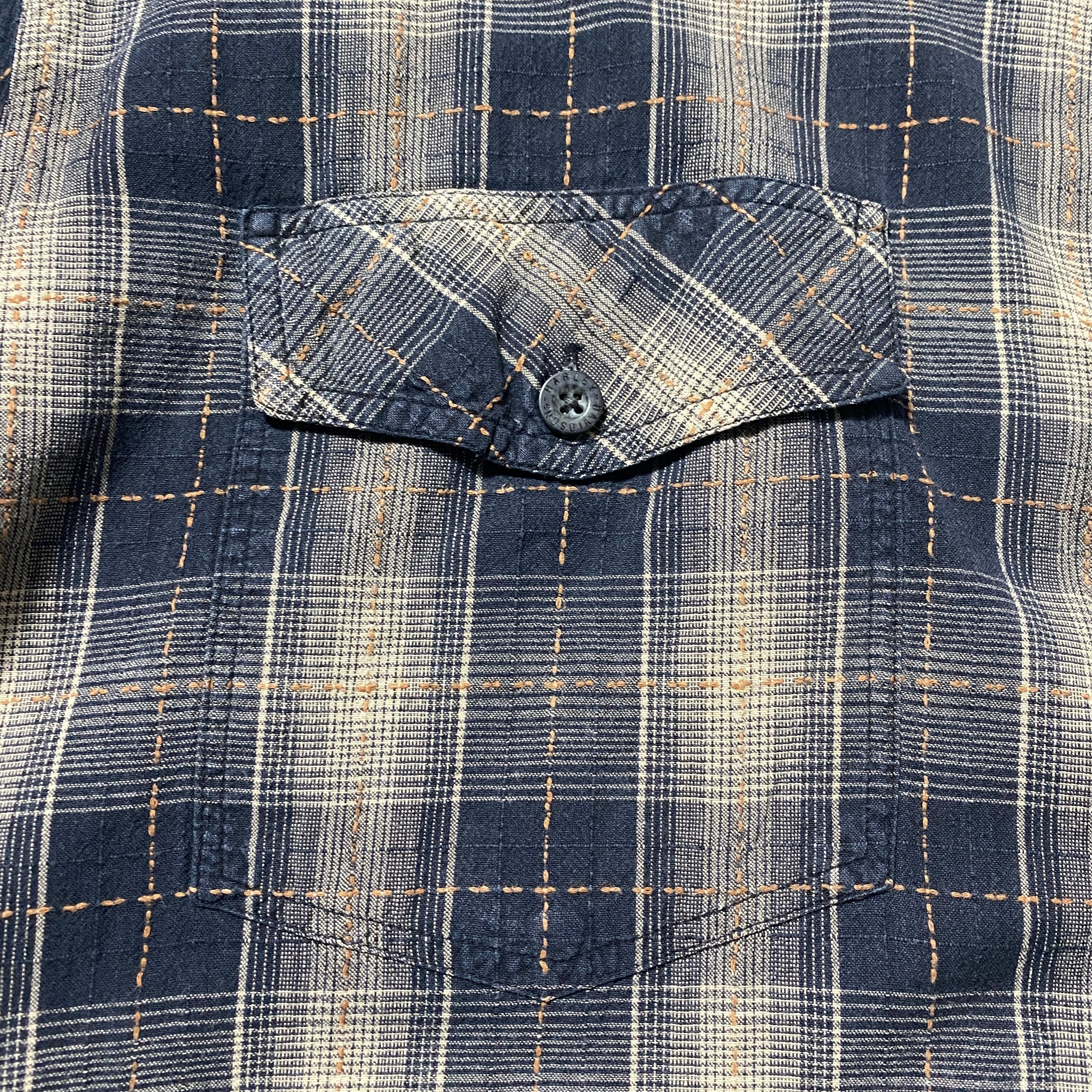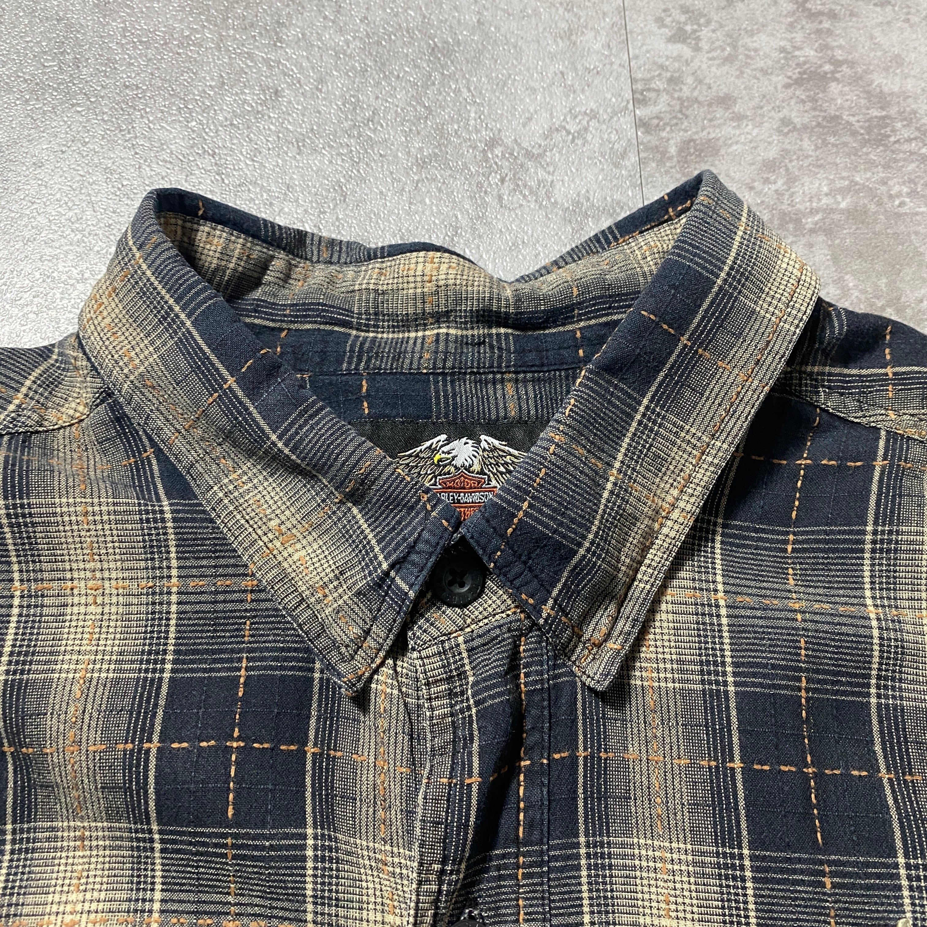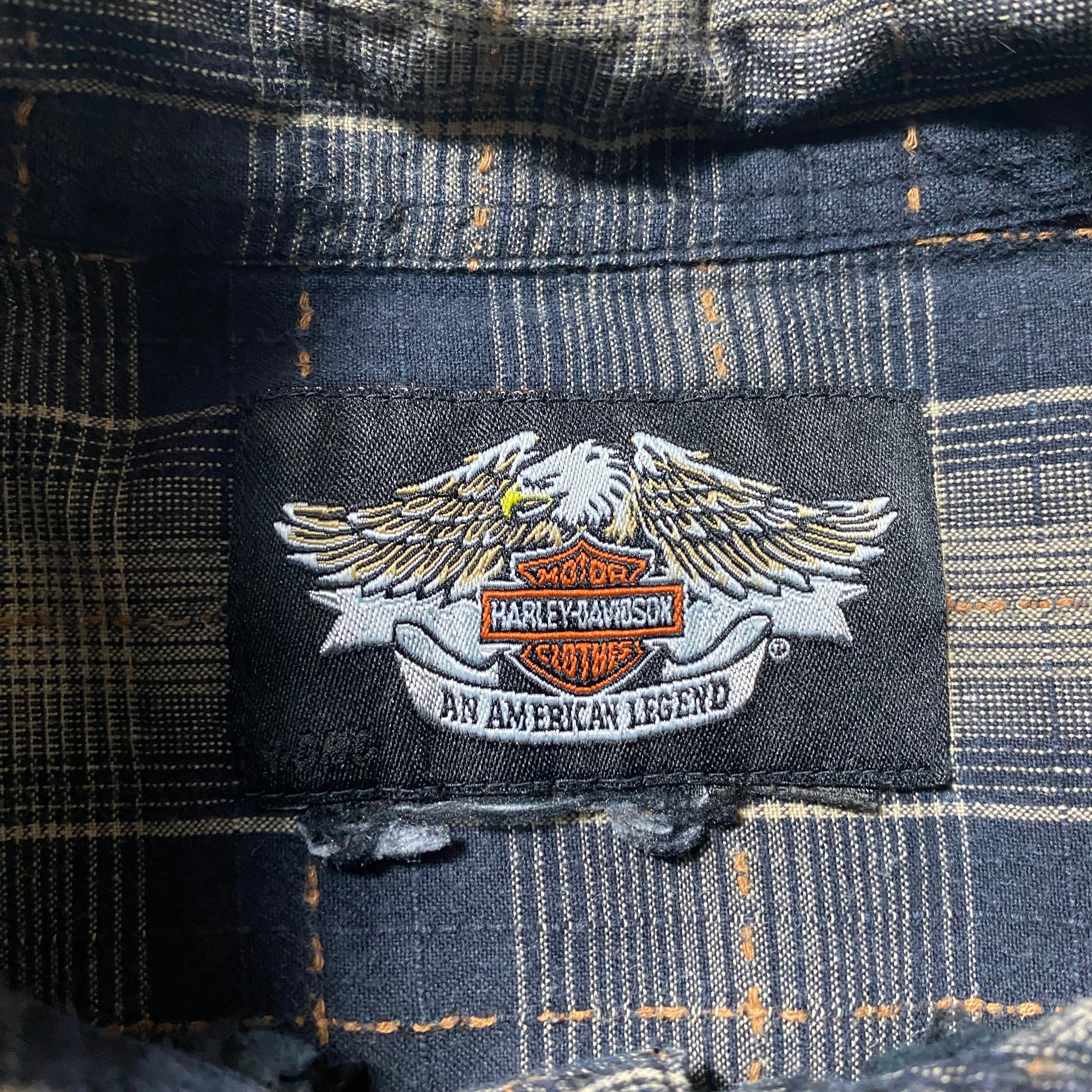 Harley-Davidson ハーレーダビッドソン スカル刺繍バックロゴ ダブルポケット 総柄 オンブレ 半袖 チェックシャツ