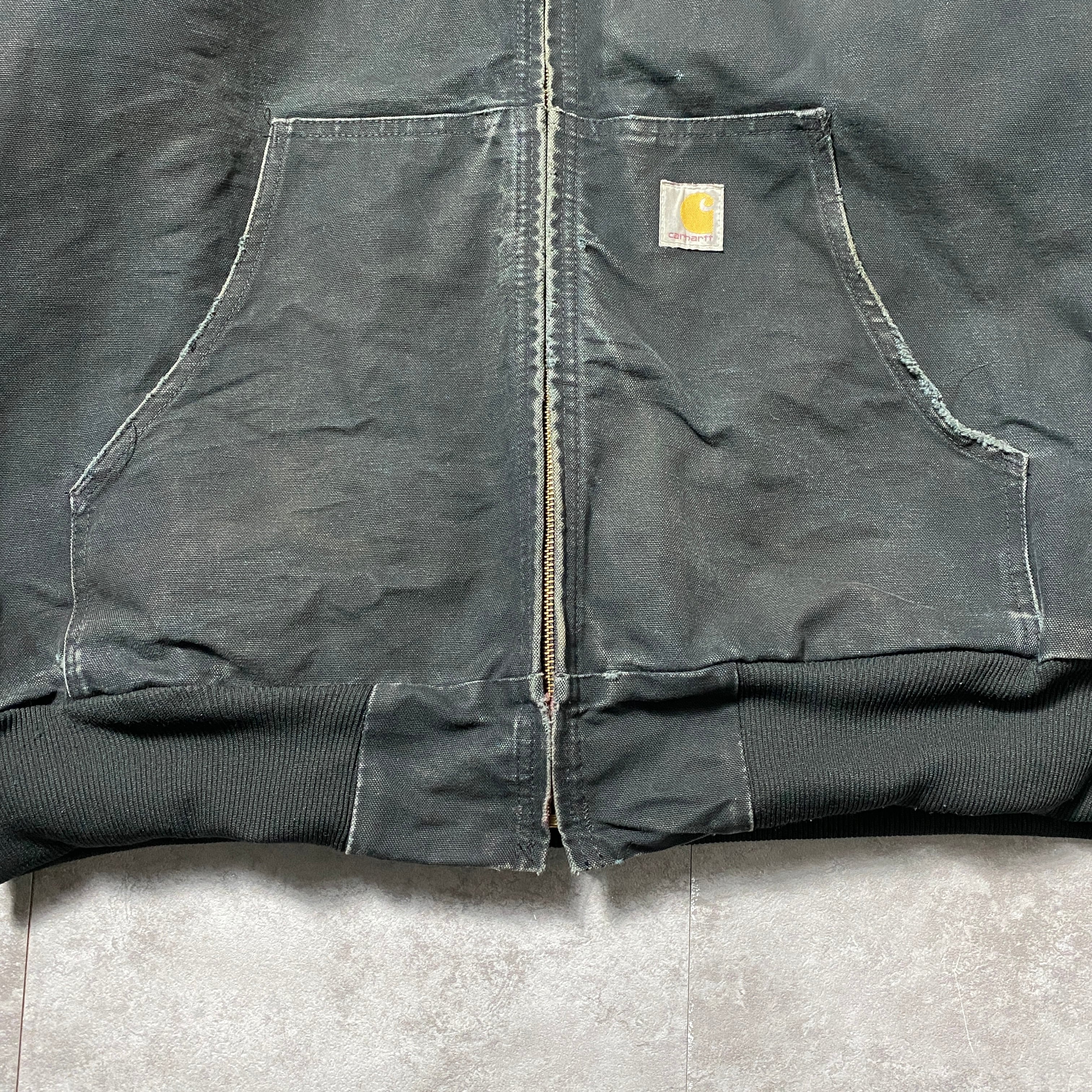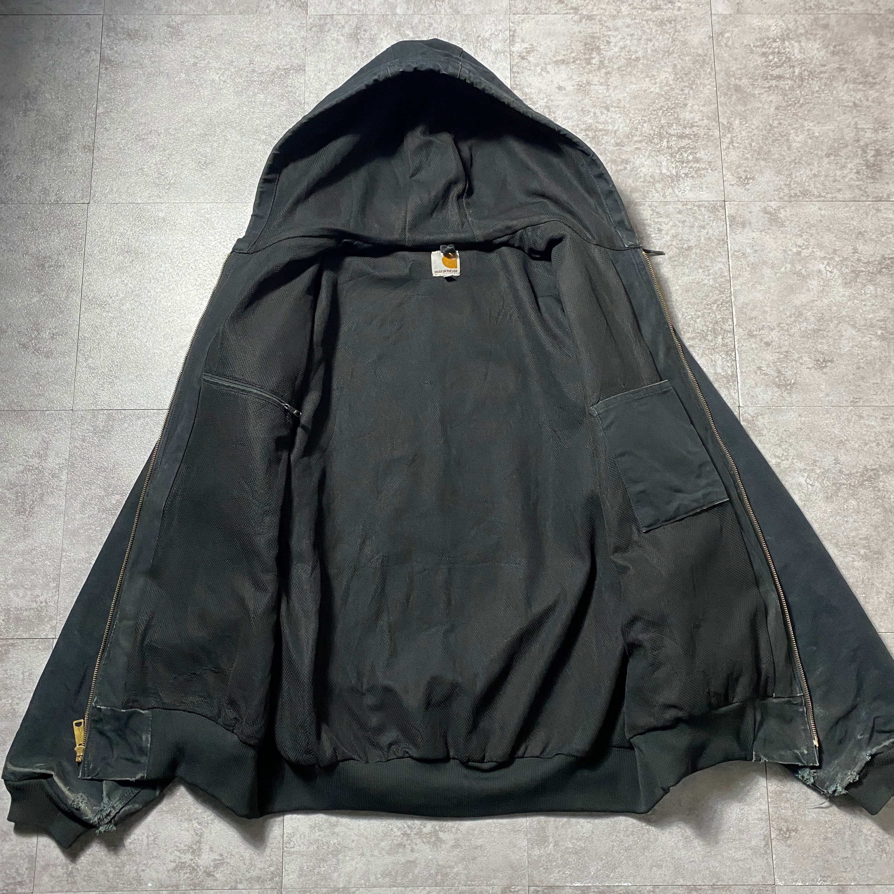 【USA製】carhartt カーハート ダック生地 ブラック ダメージ 2XLサイズ アクティブパーカー ダックジャケット