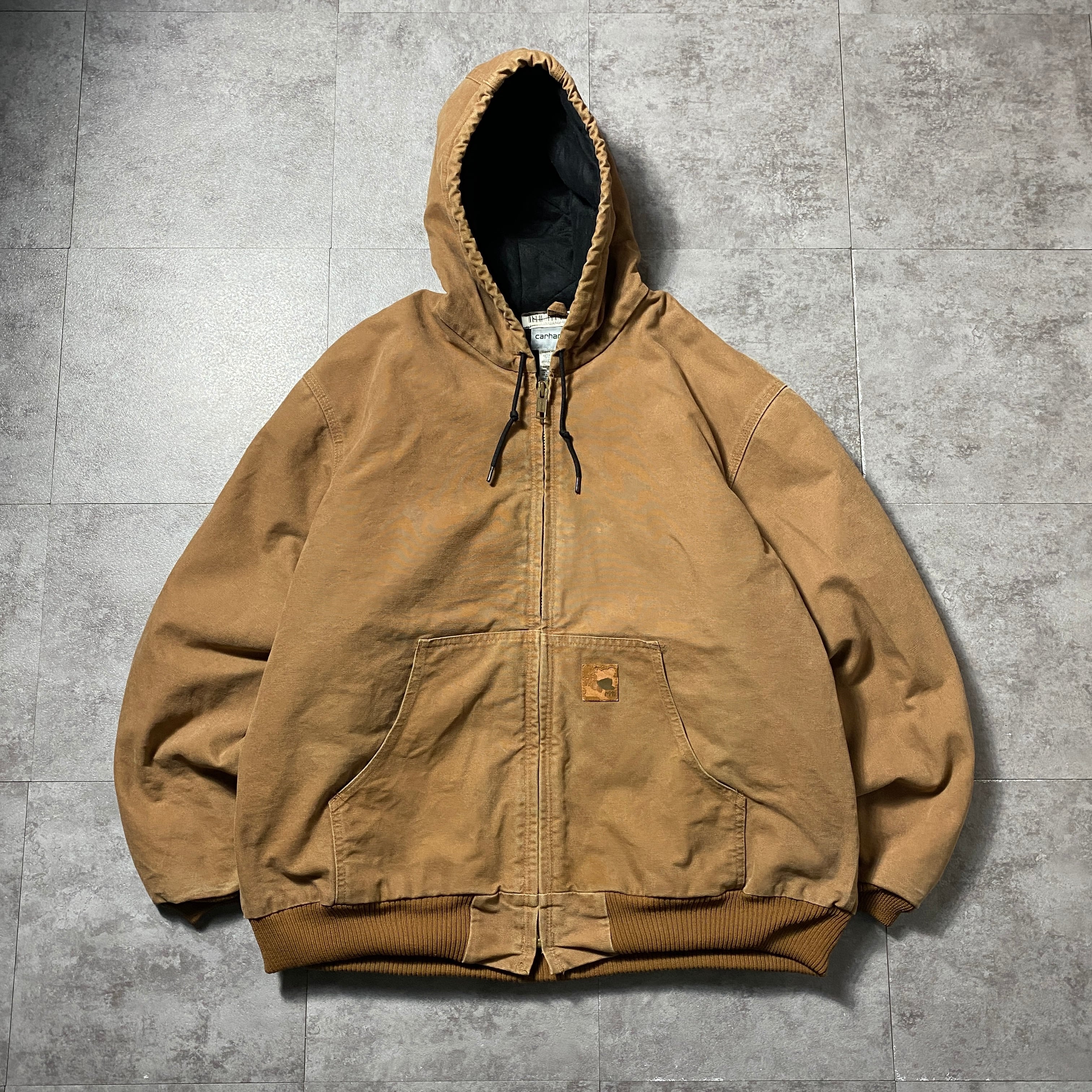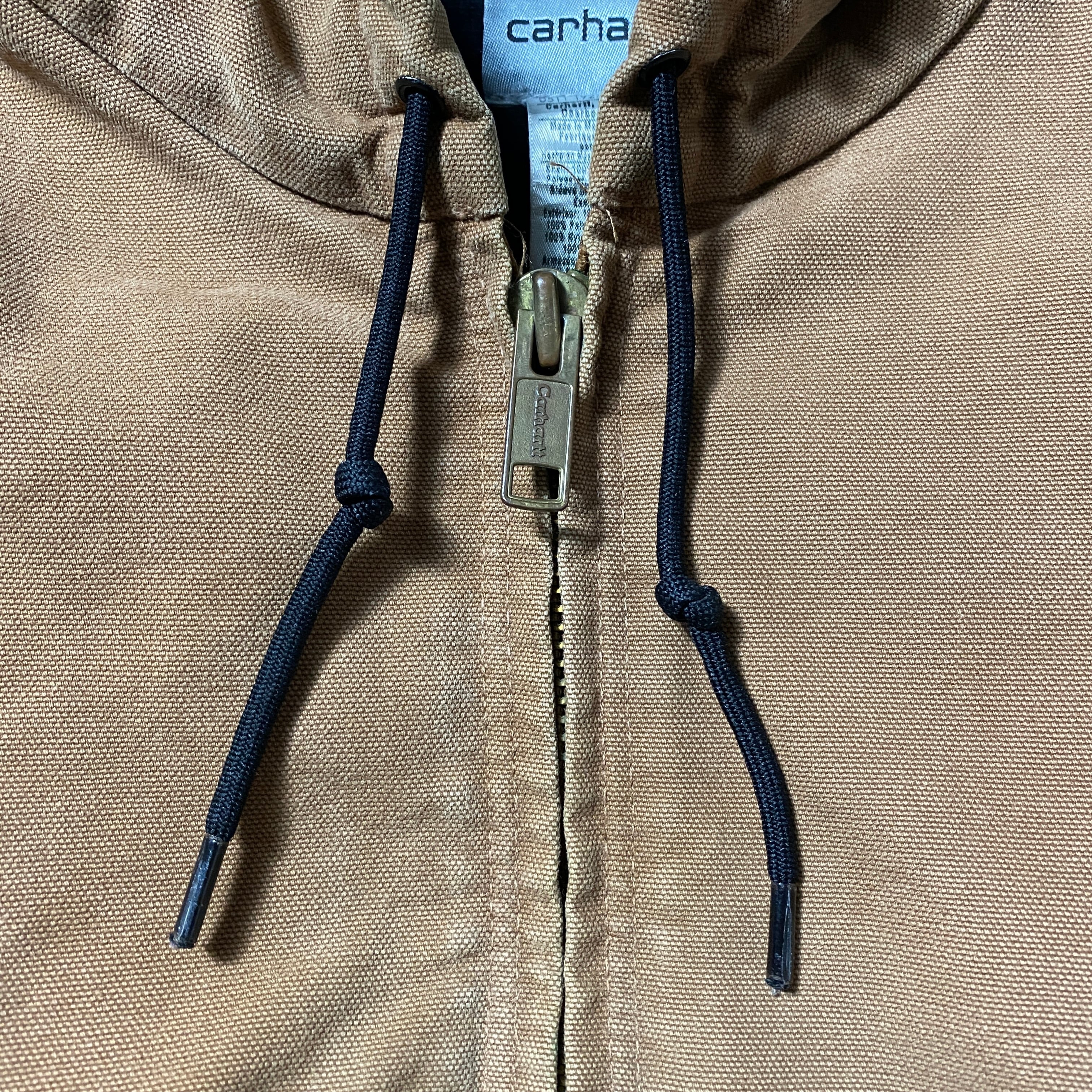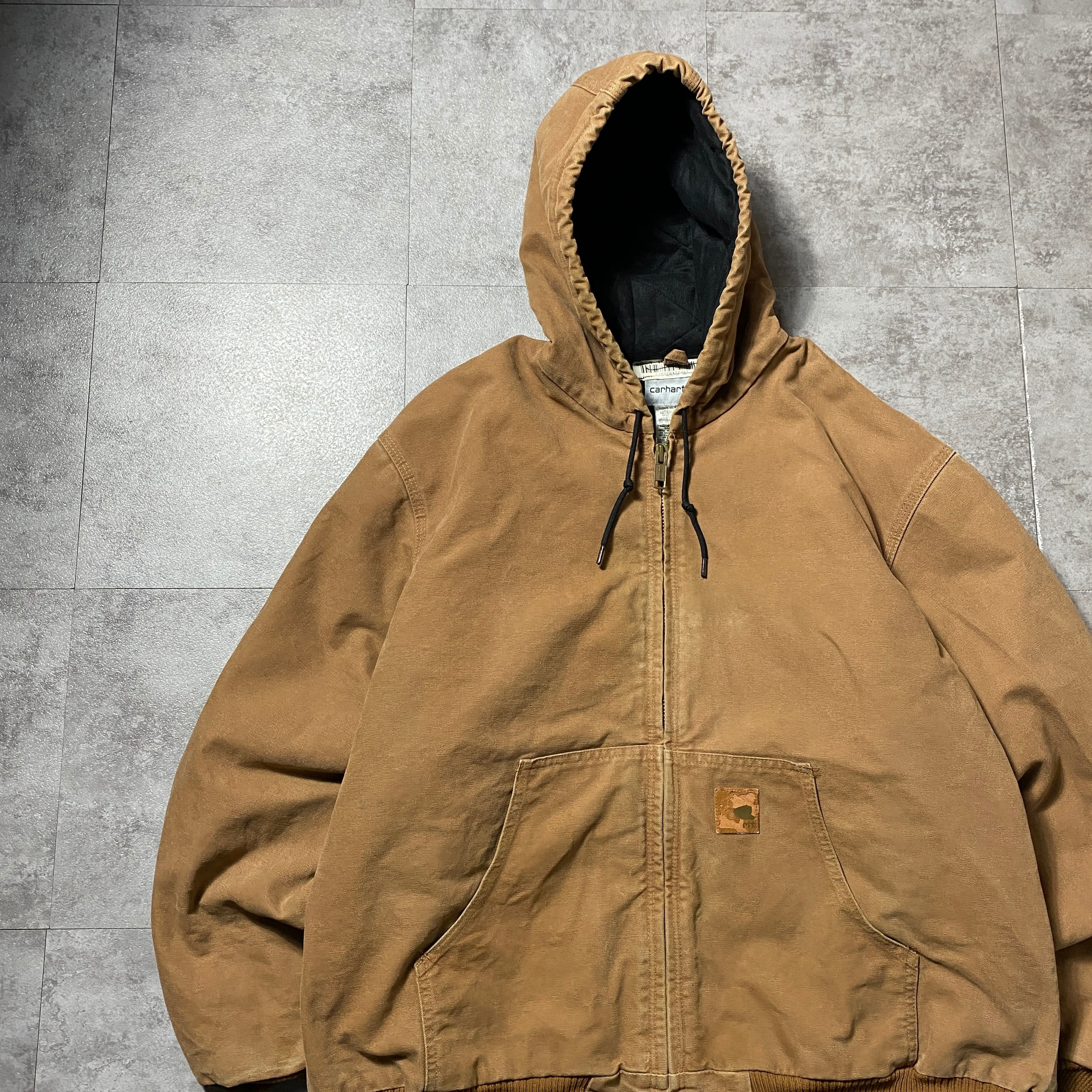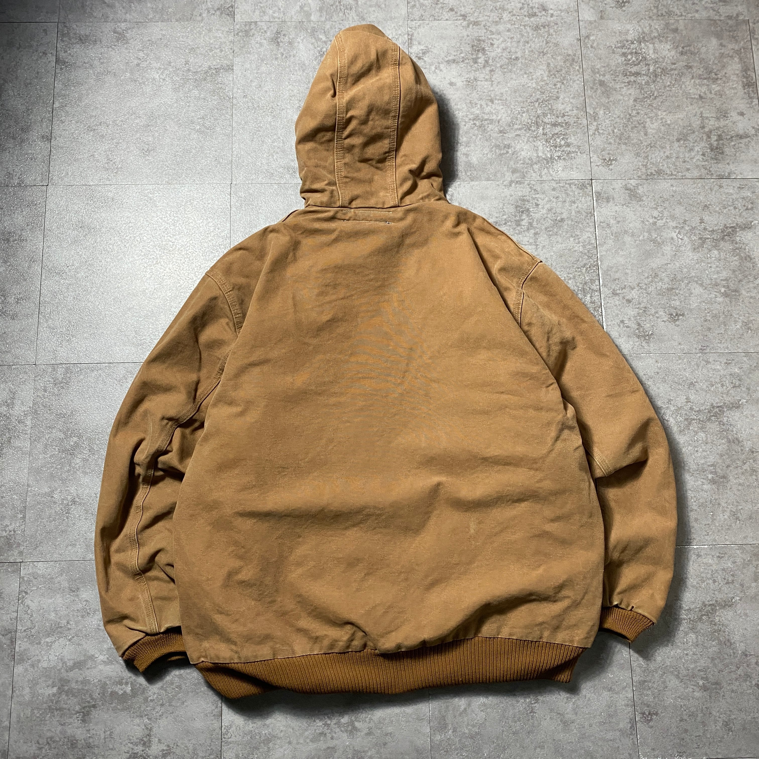 【Size:XL】carhartt カーハート レザーパッチ ブラウン ダック生地 アクティブパーカー ダックジャケット