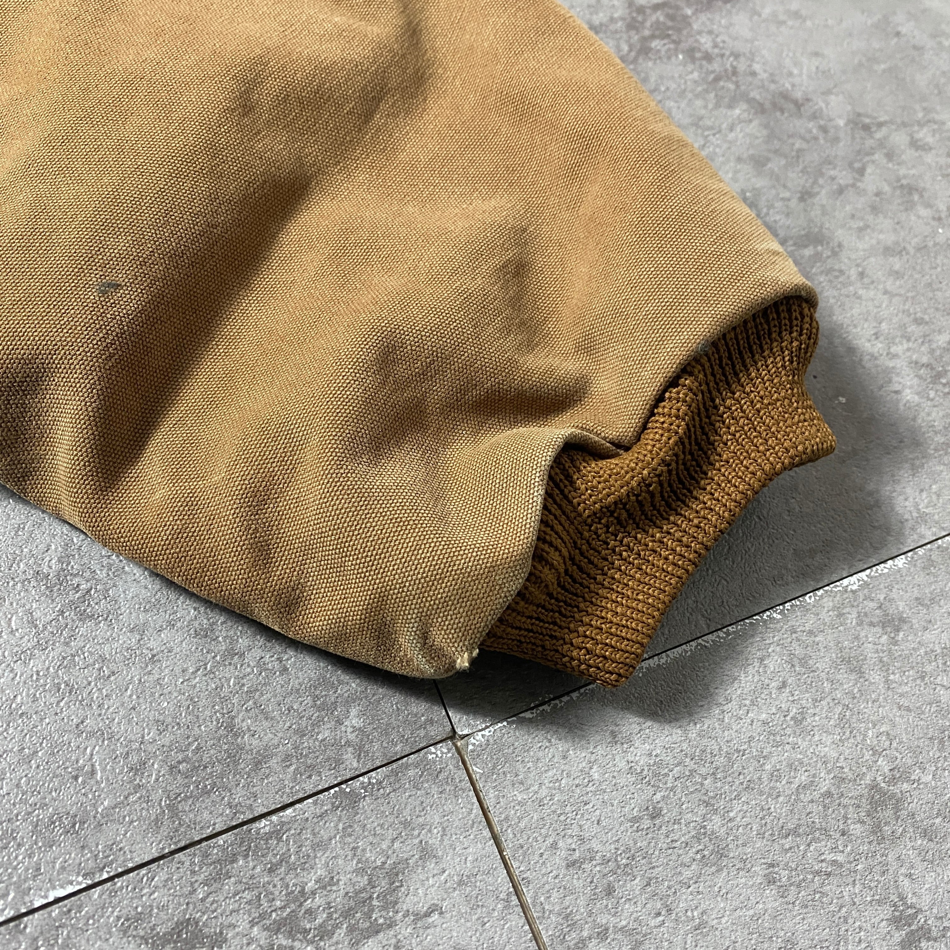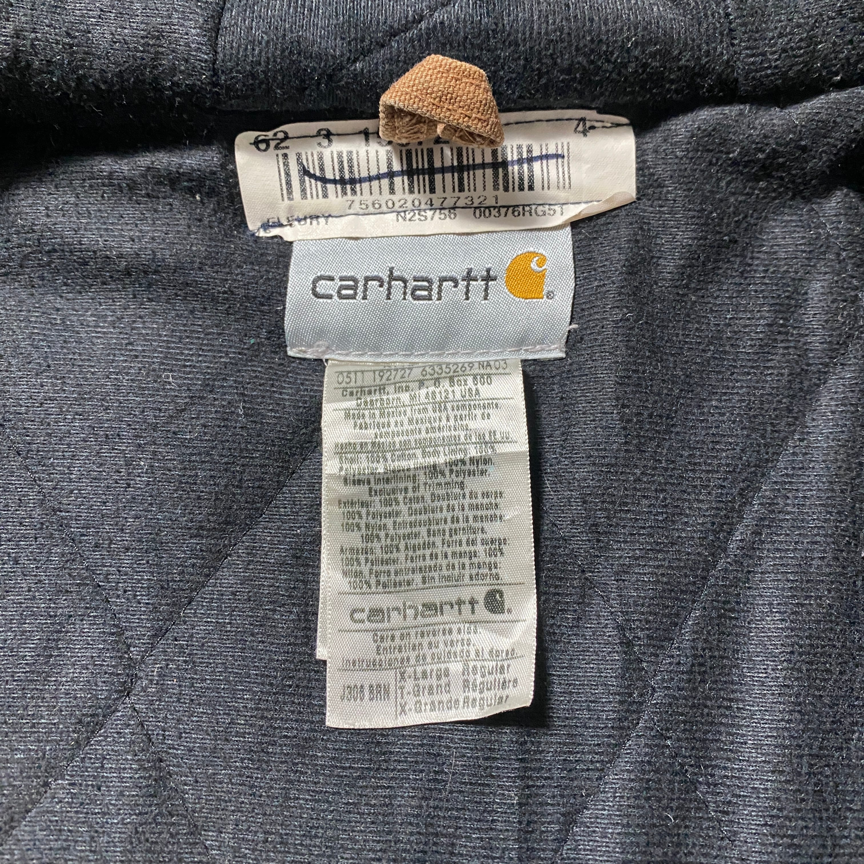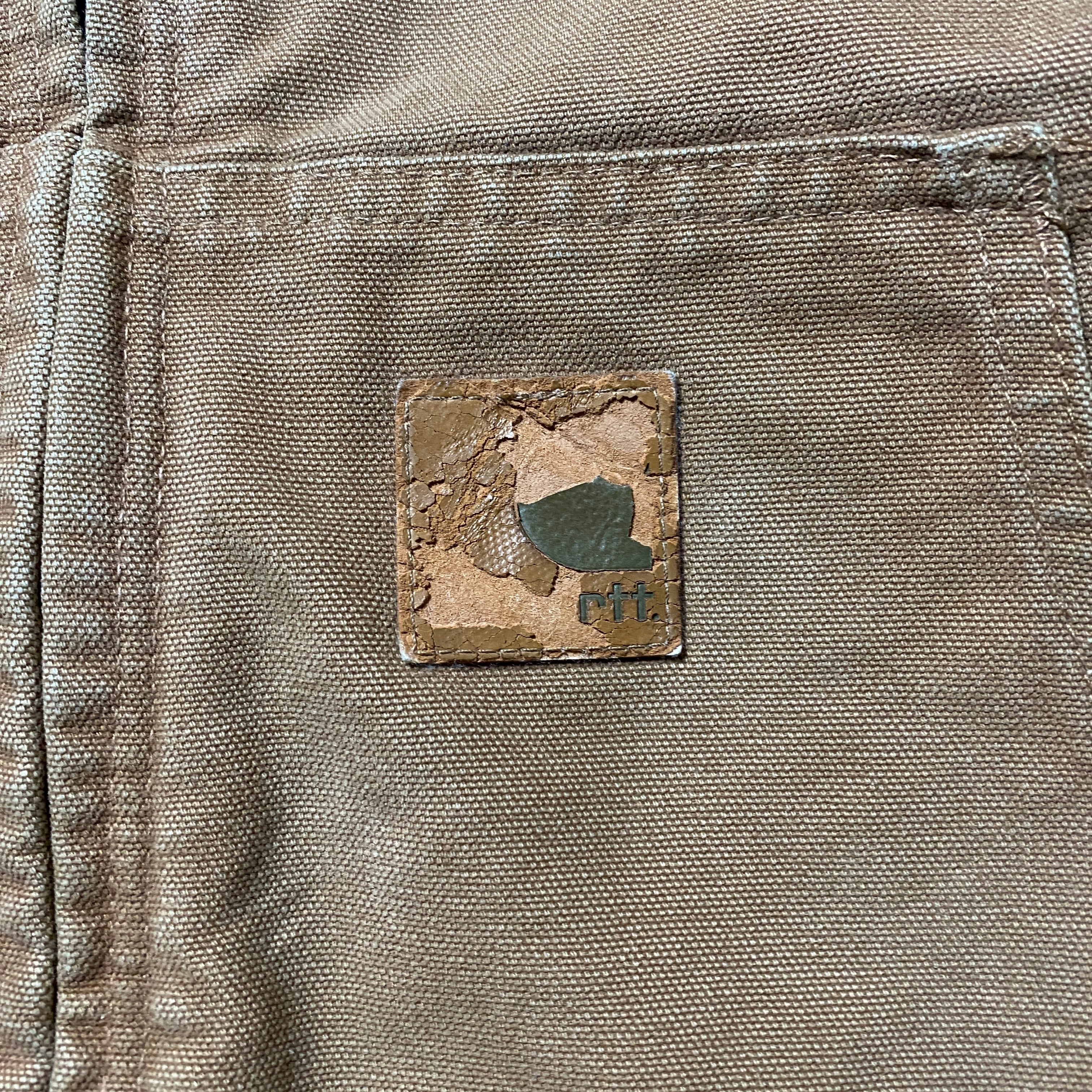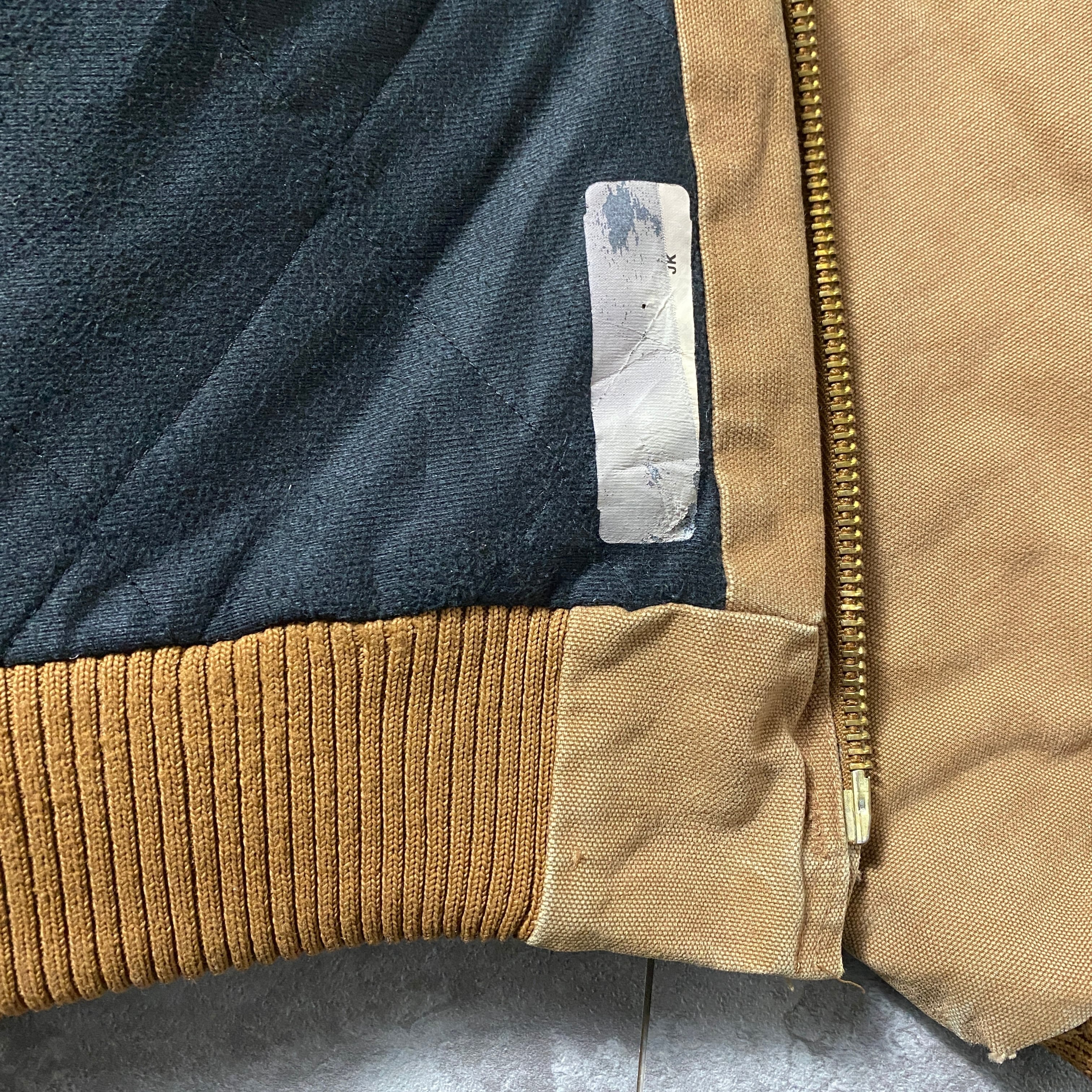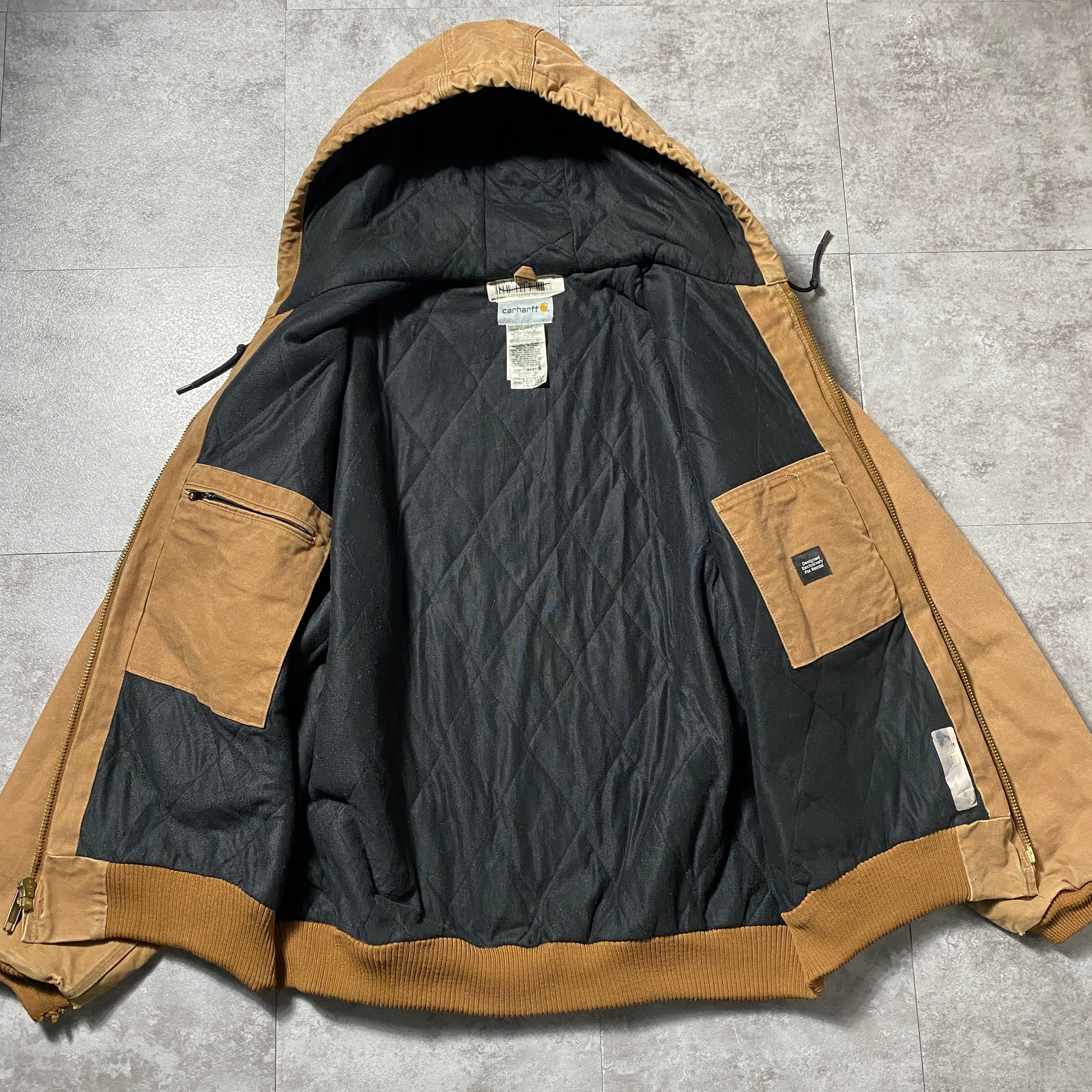 【Size:XL】carhartt カーハート レザーパッチ ブラウン ダック生地 アクティブパーカー ダックジャケット