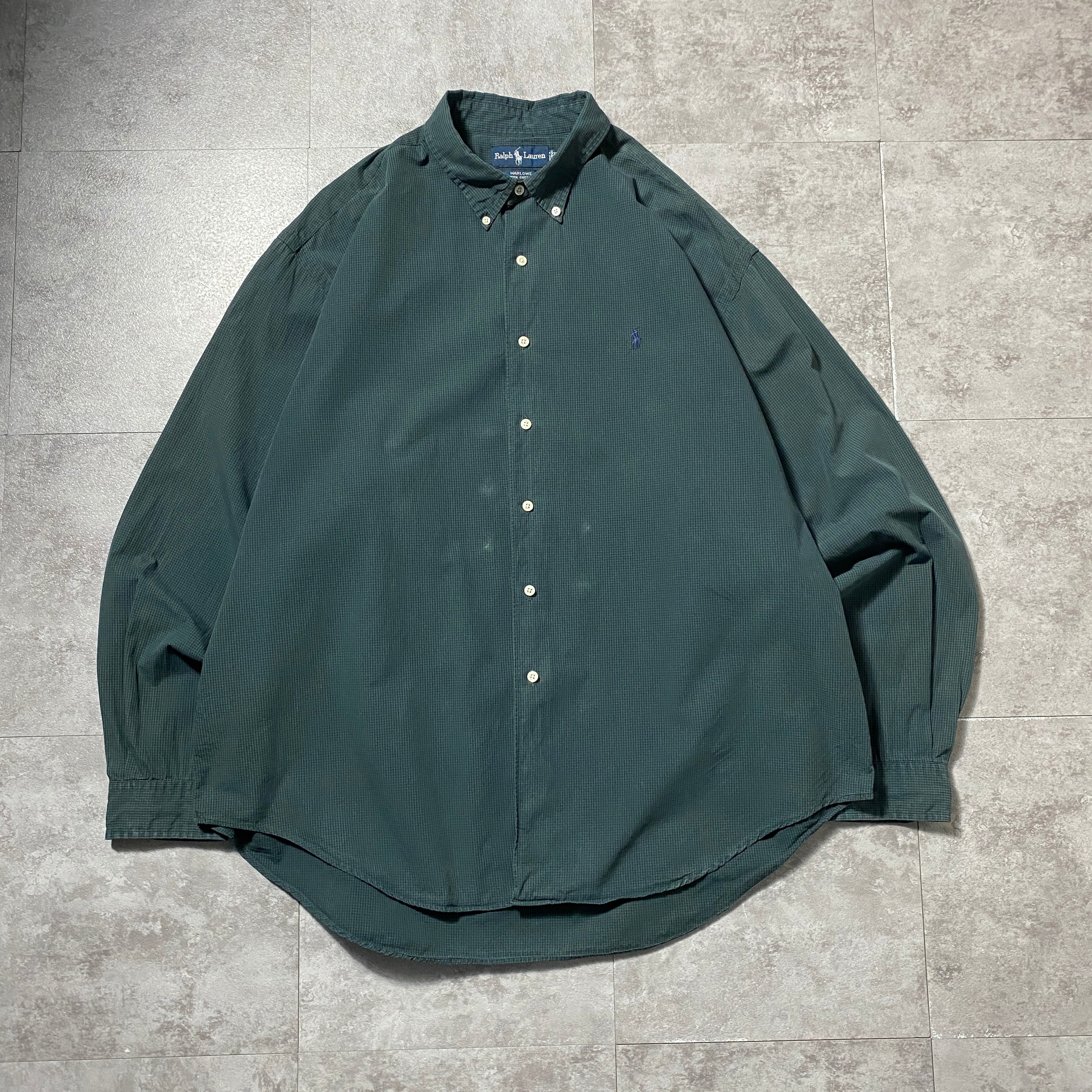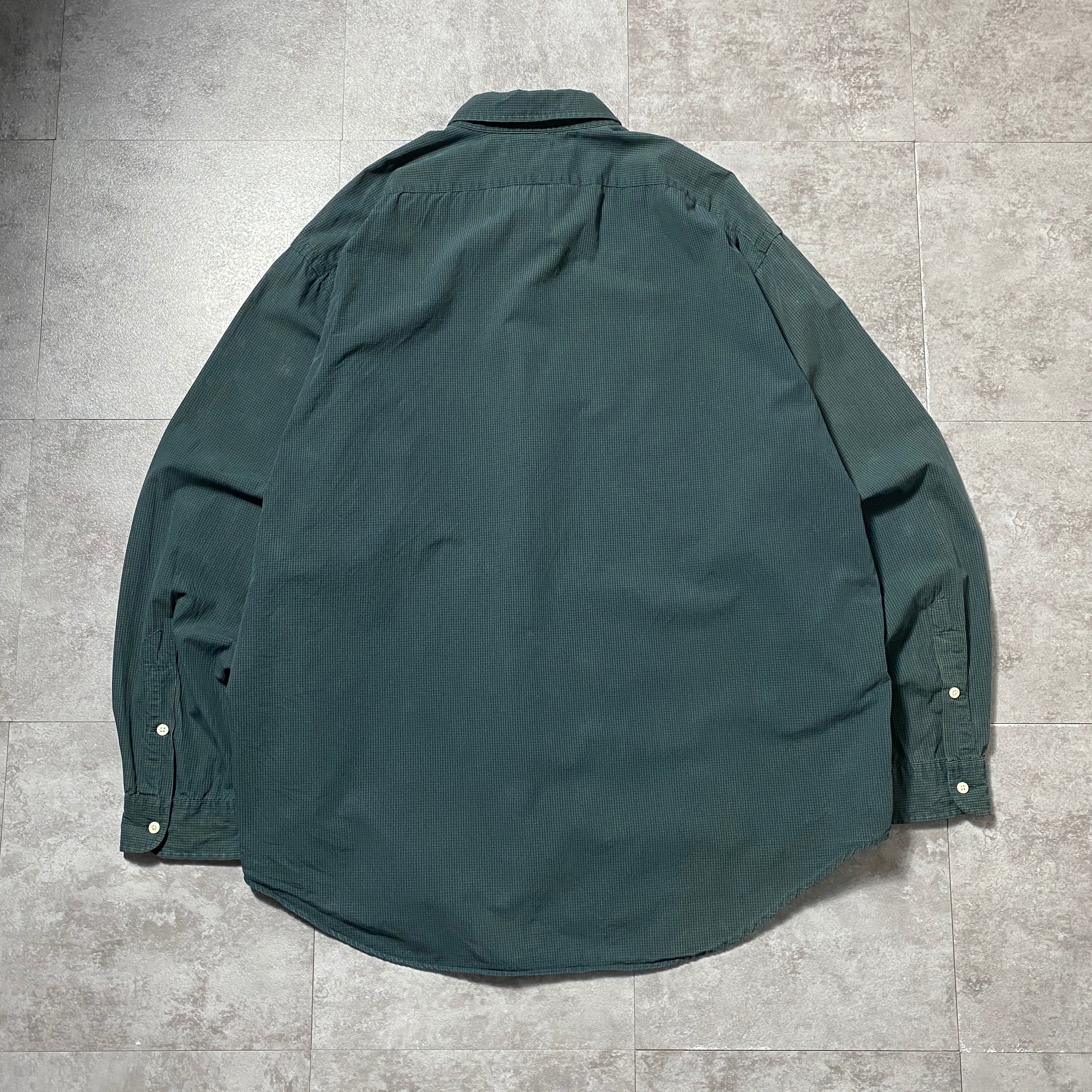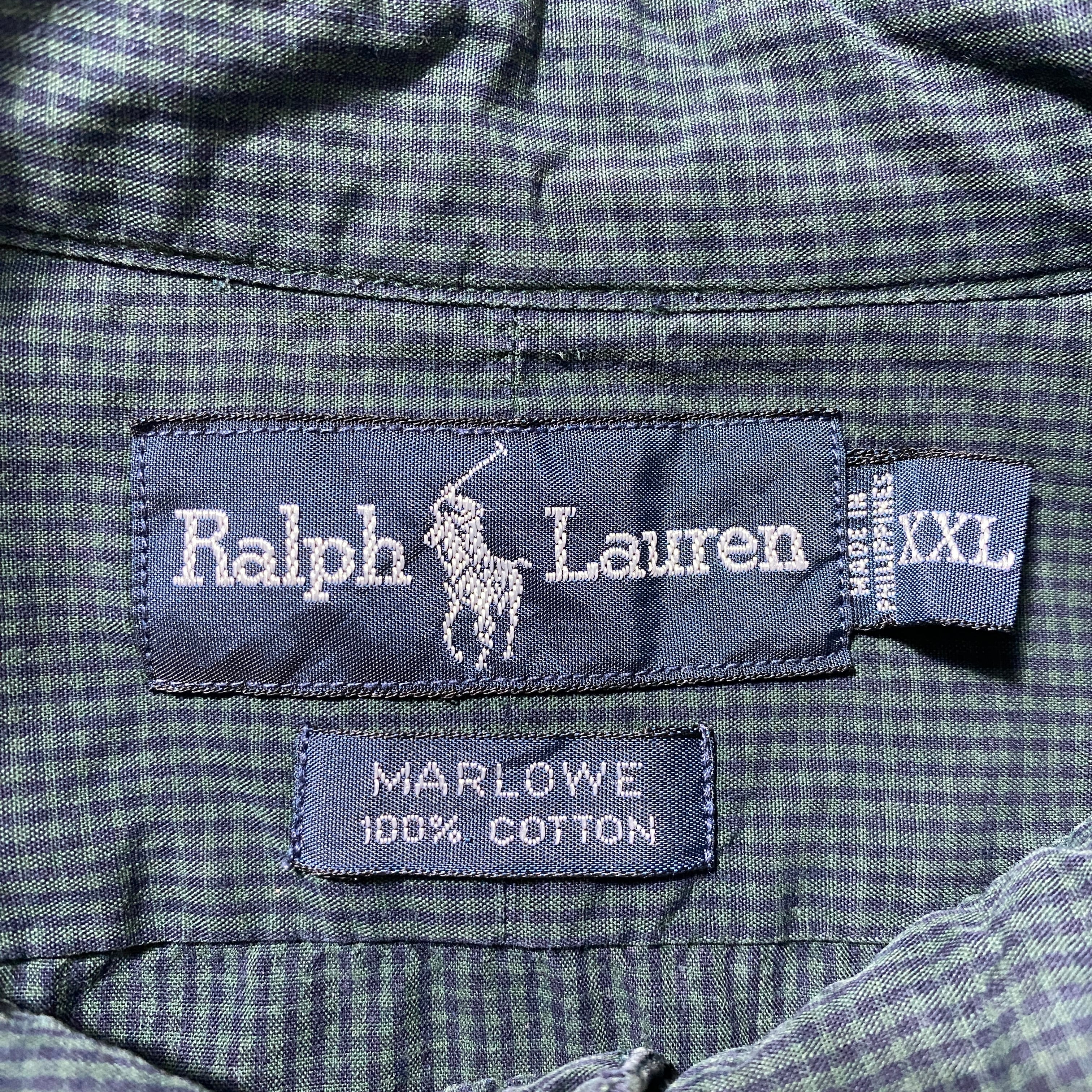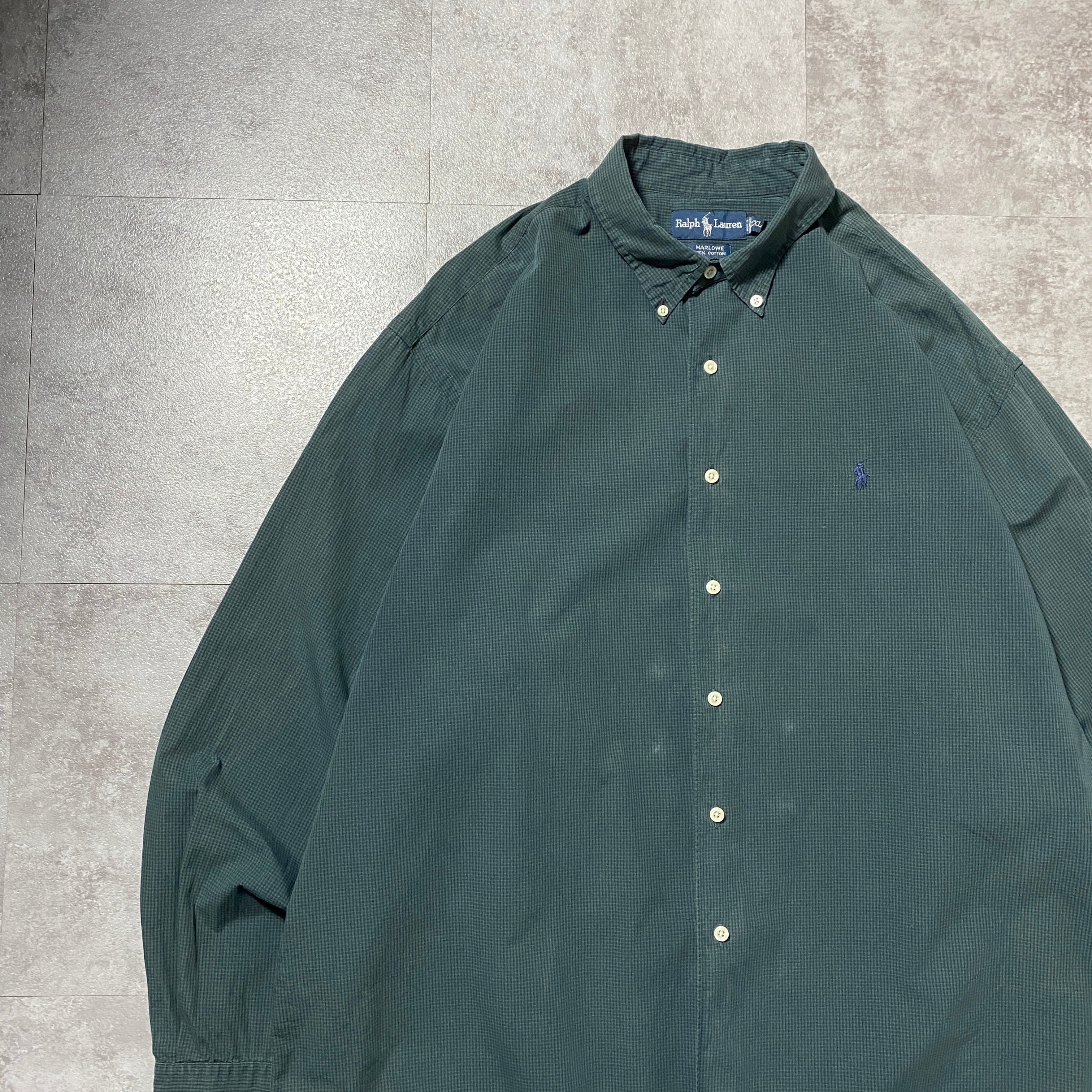 【Size:XXL】90's-00's Ralph Lauren ラルフローレン 刺繍ロゴ ポニー チェック総柄 グリーン ボタンダウンシャツ