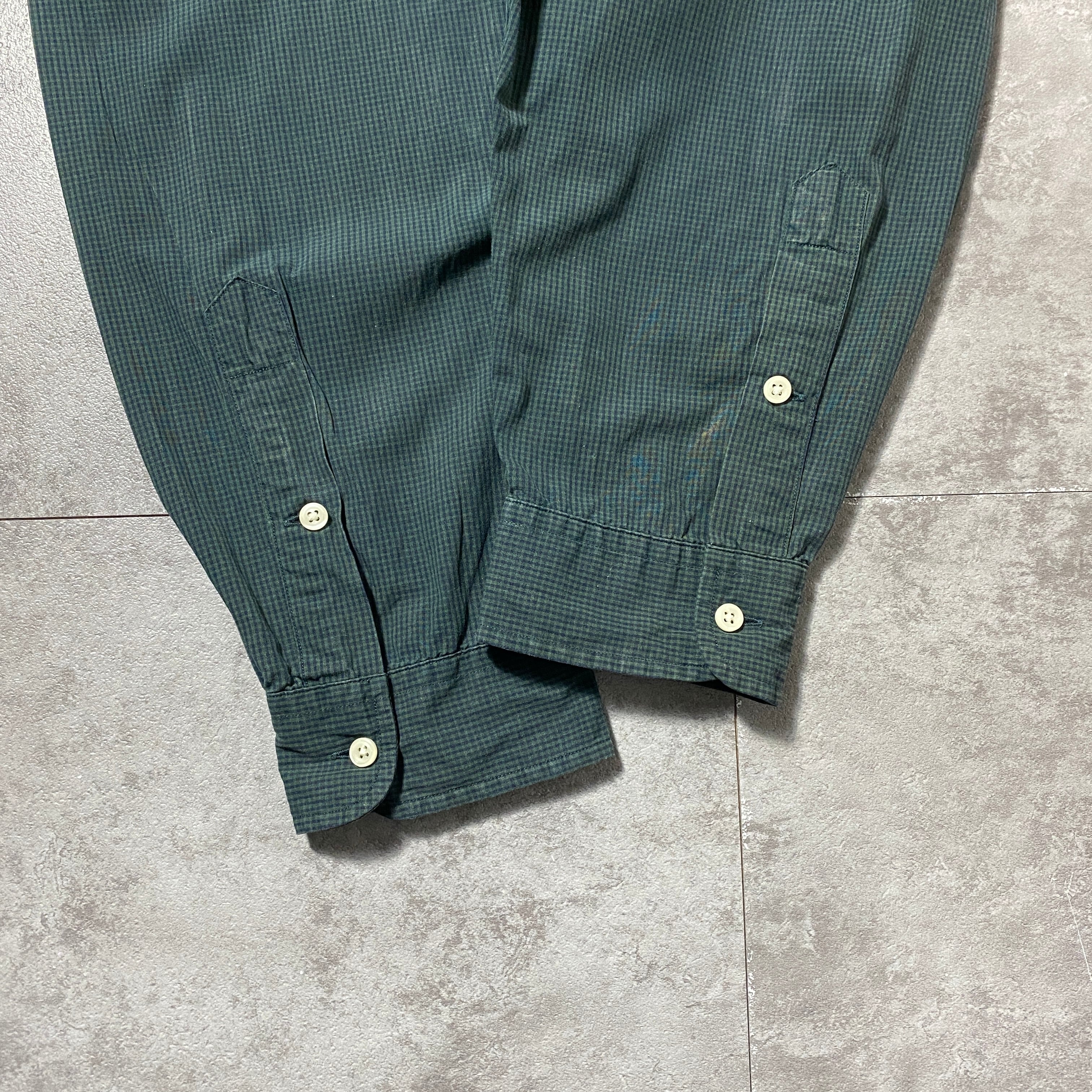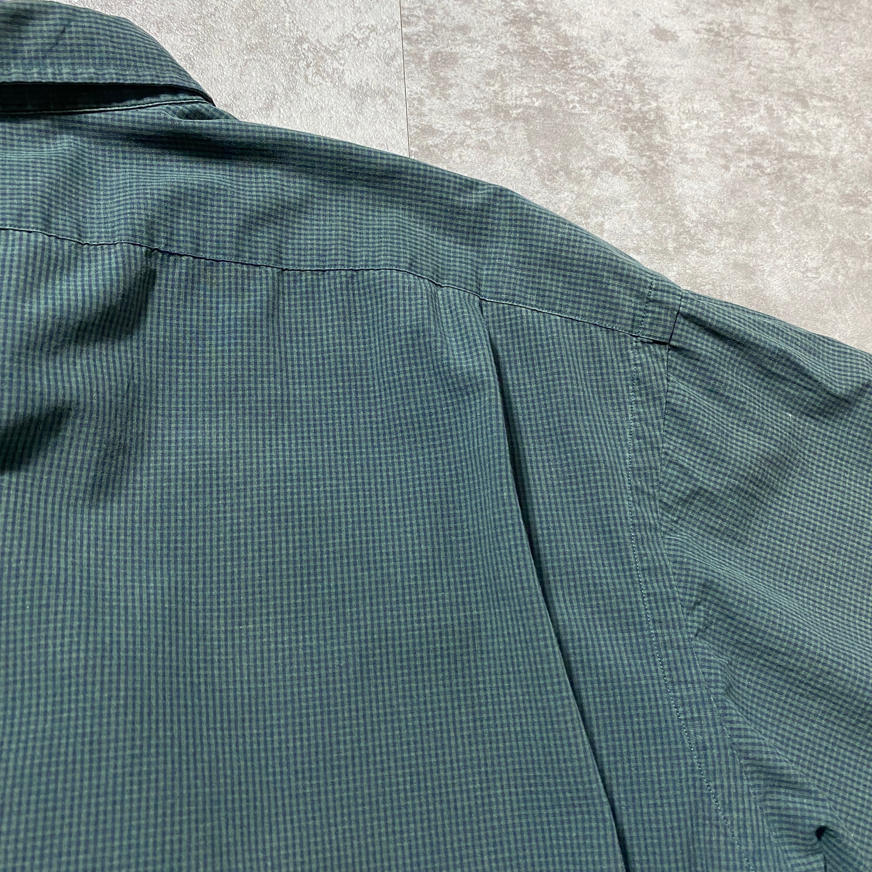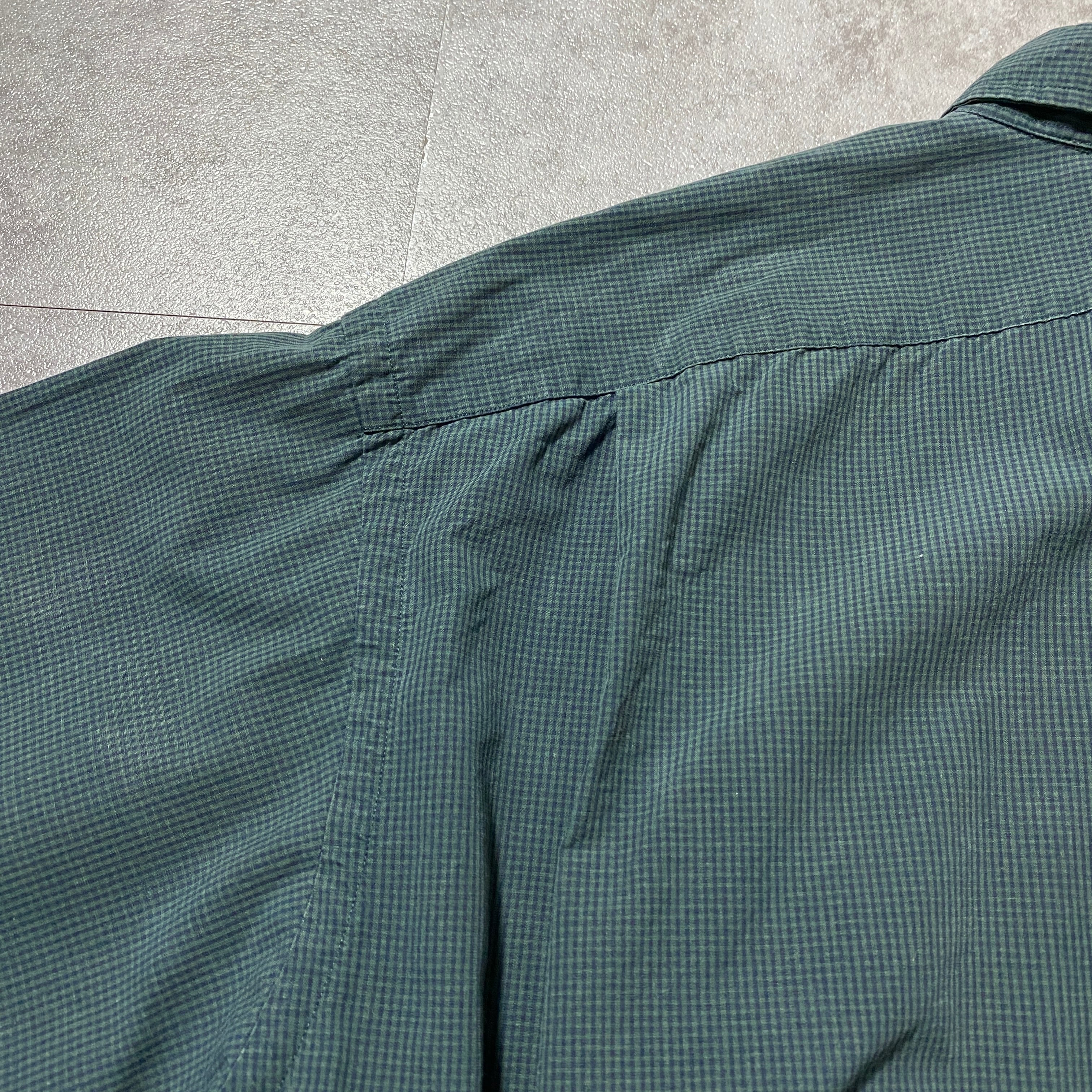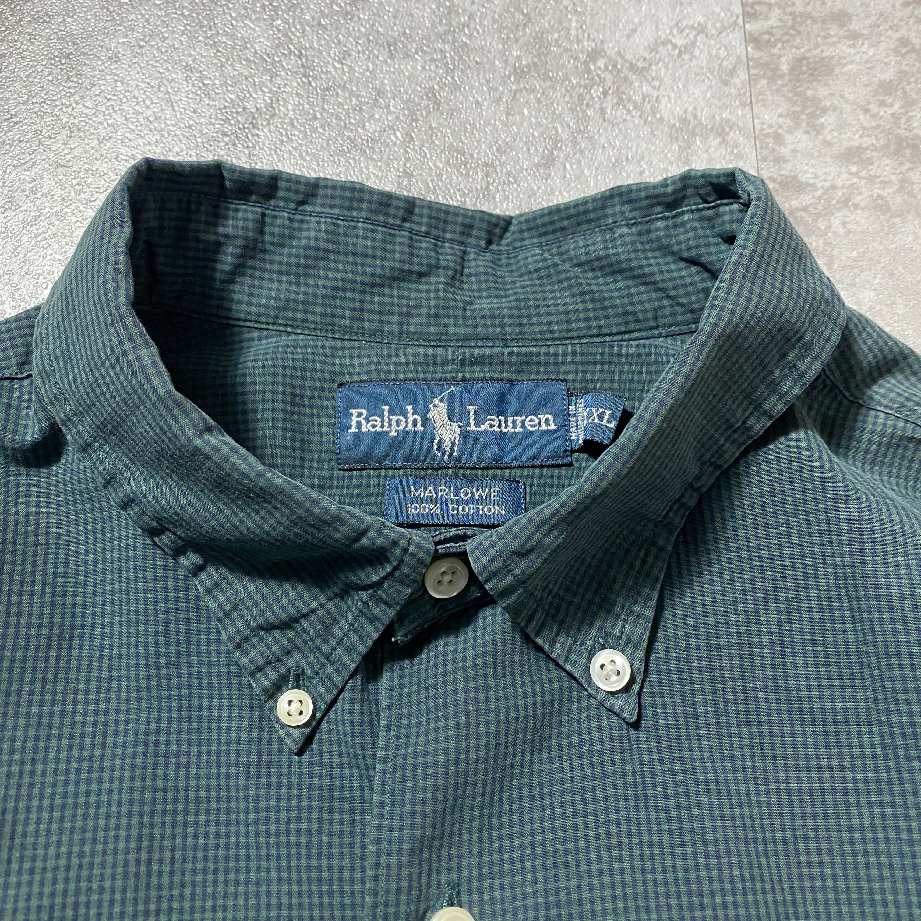 【Size:XXL】90's-00's Ralph Lauren ラルフローレン 刺繍ロゴ ポニー チェック総柄 グリーン ボタンダウンシャツ