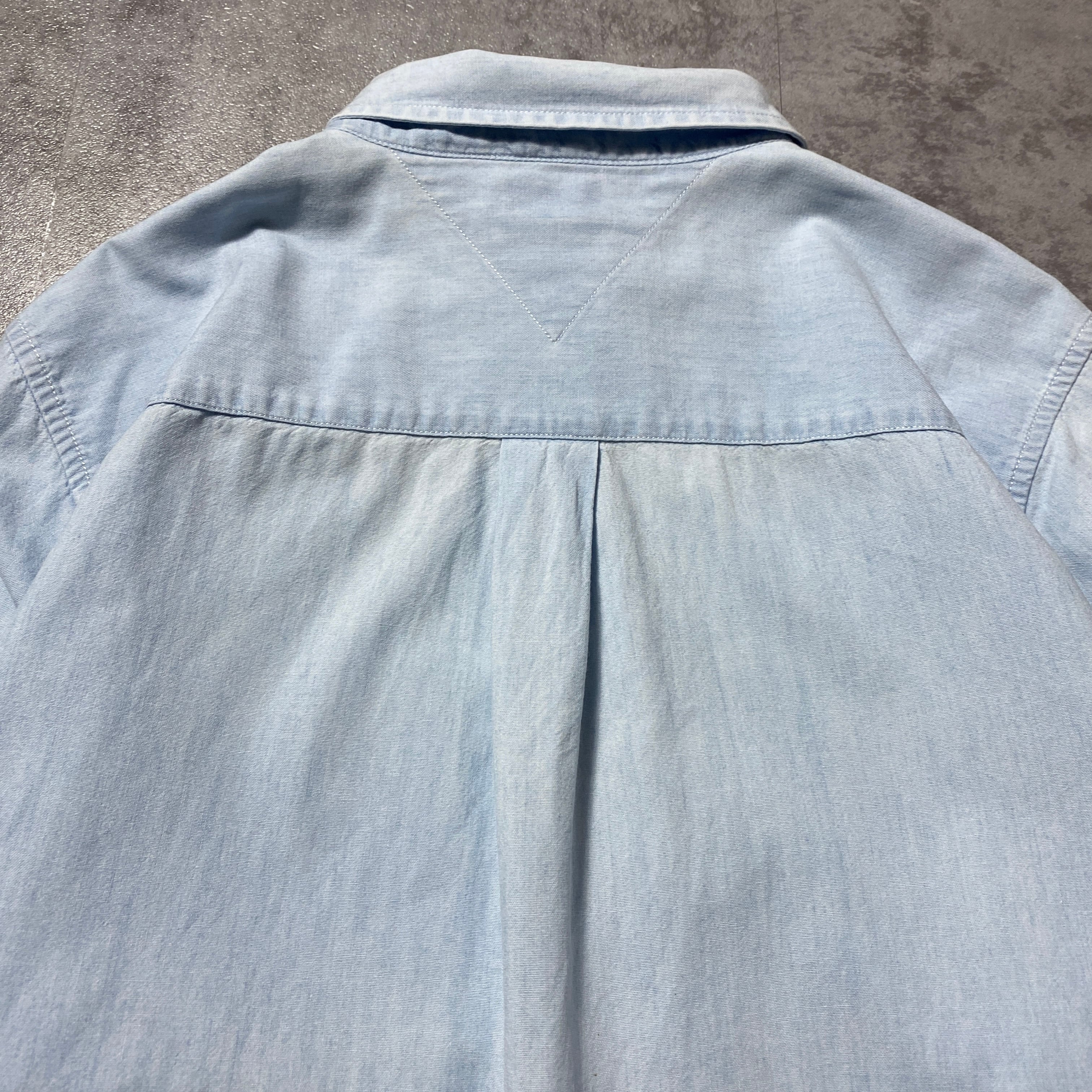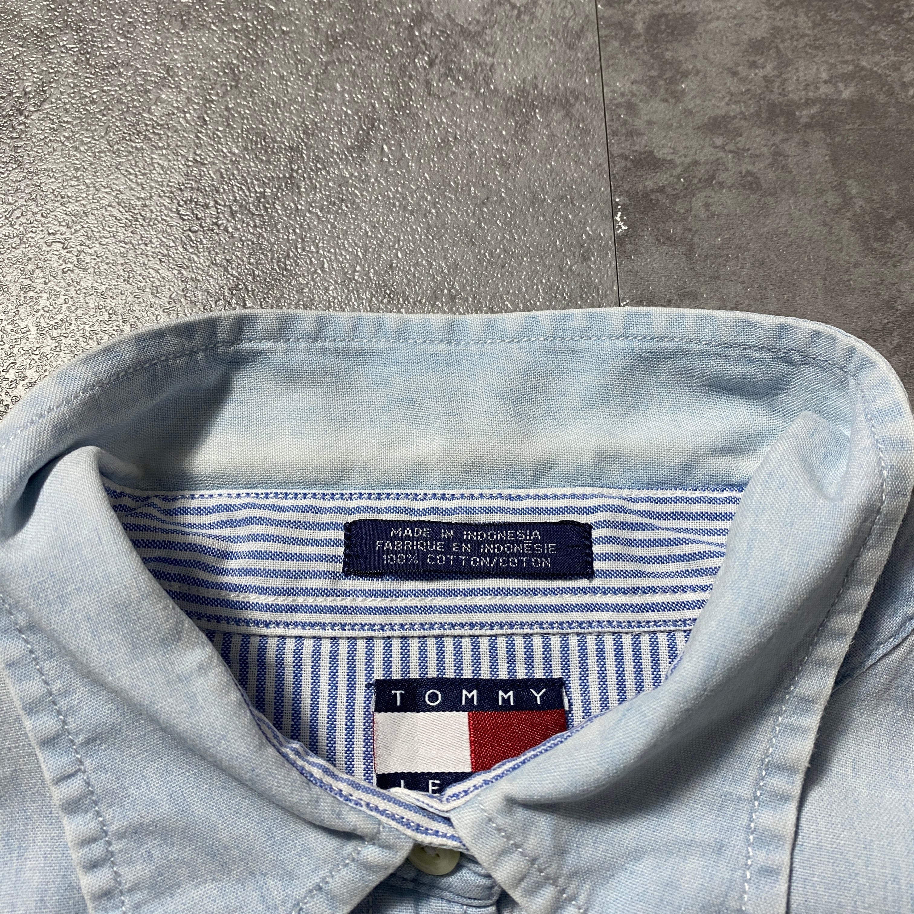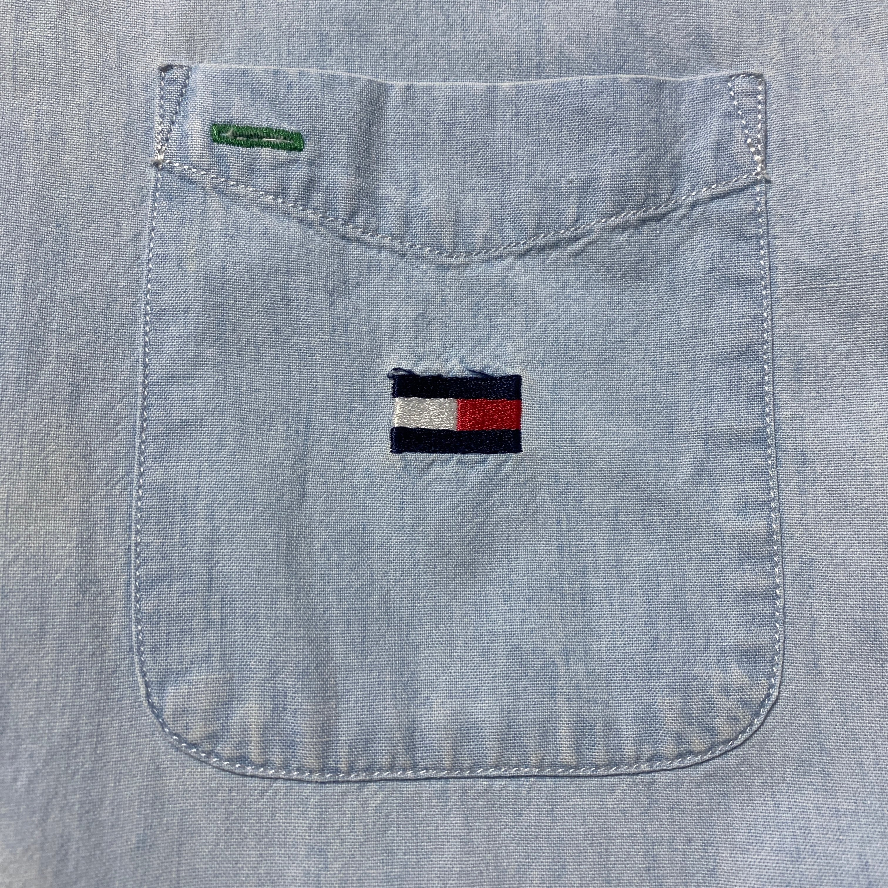 90's Tommy Jeans トミージーンズ 刺繍フラッグロゴ 胸ポケット デニムシャツ