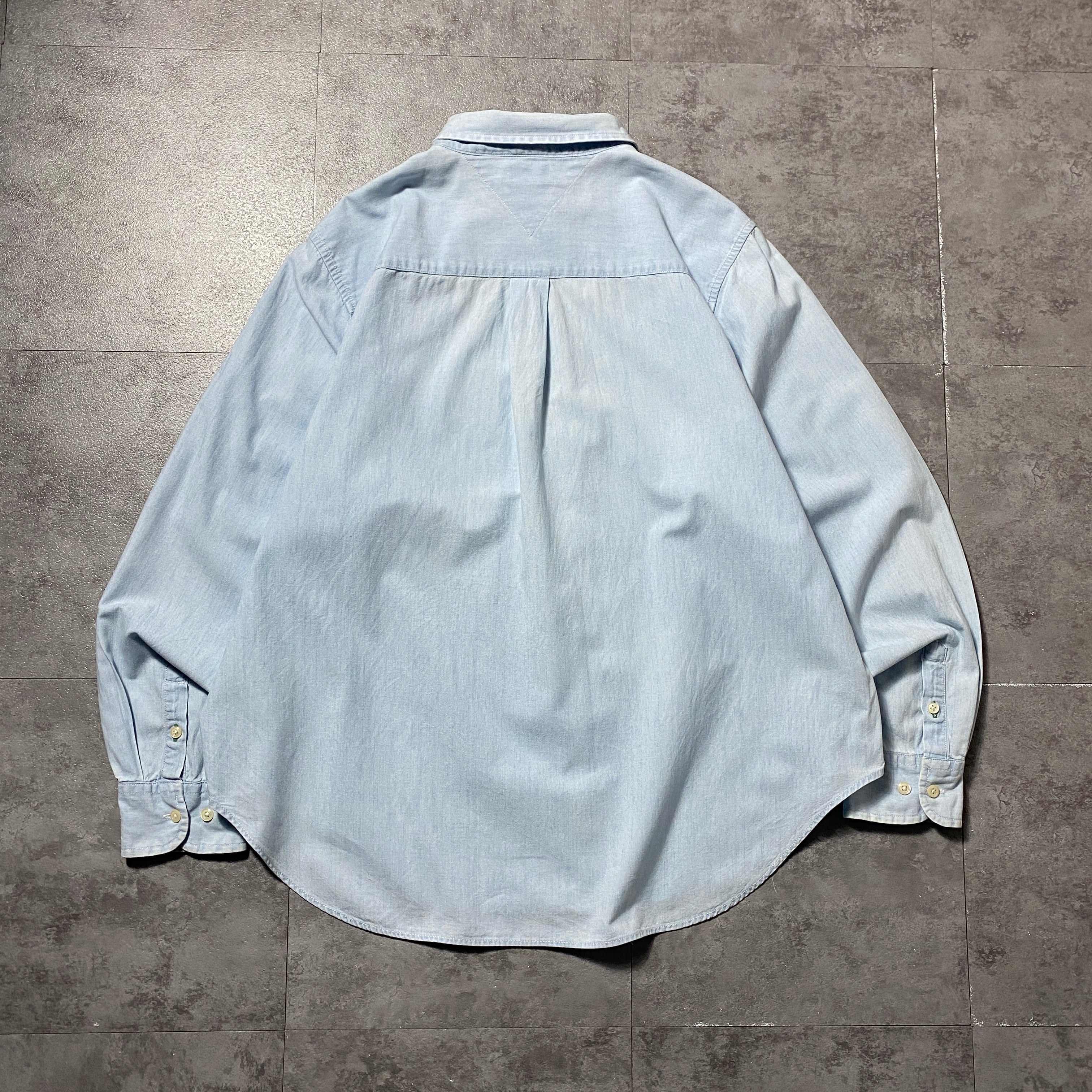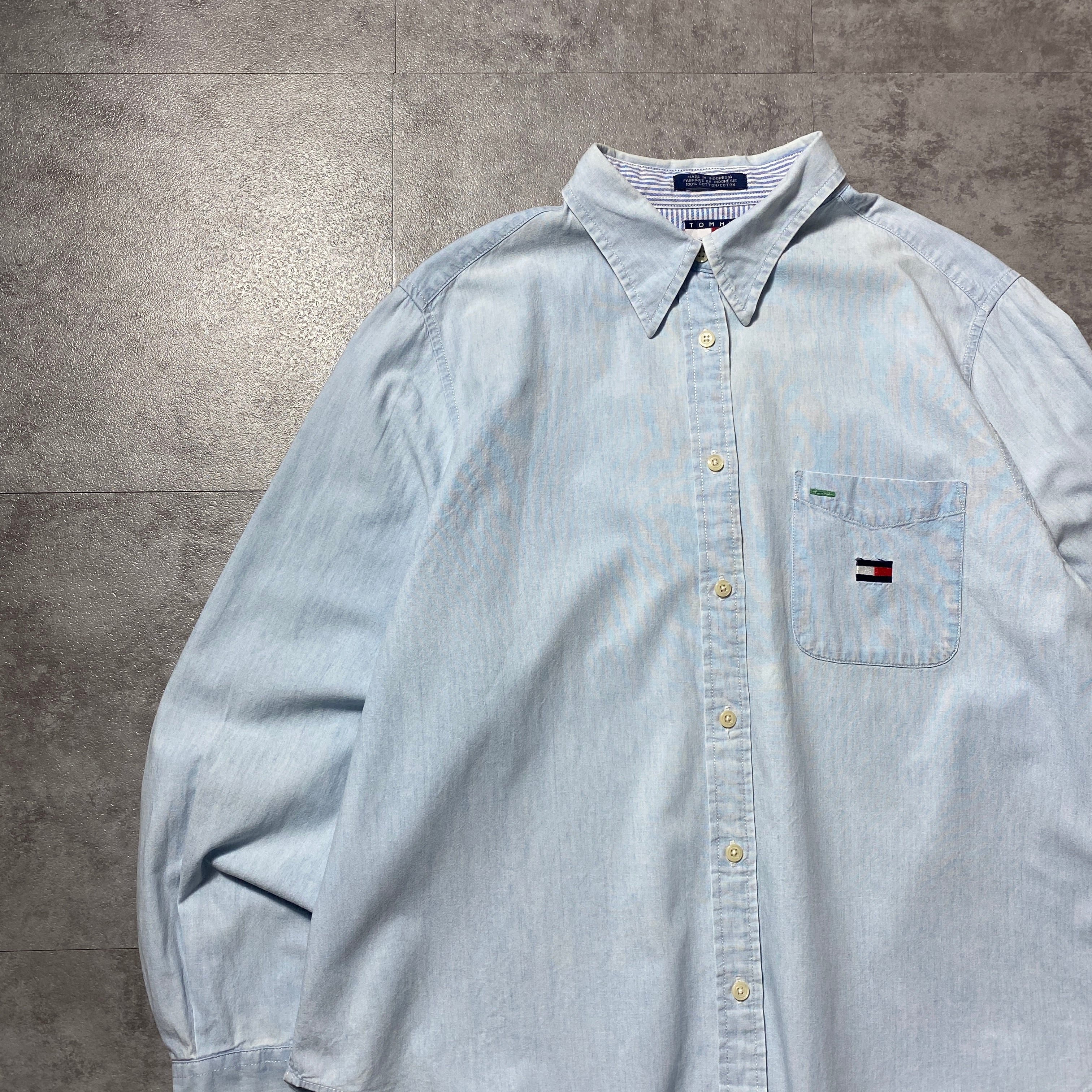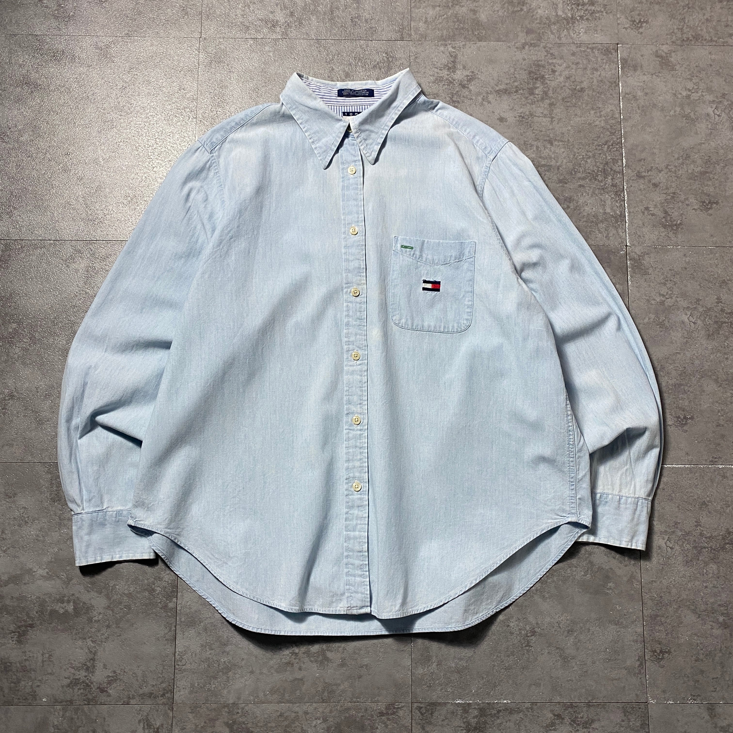 90's Tommy Jeans トミージーンズ 刺繍フラッグロゴ 胸ポケット デニムシャツ