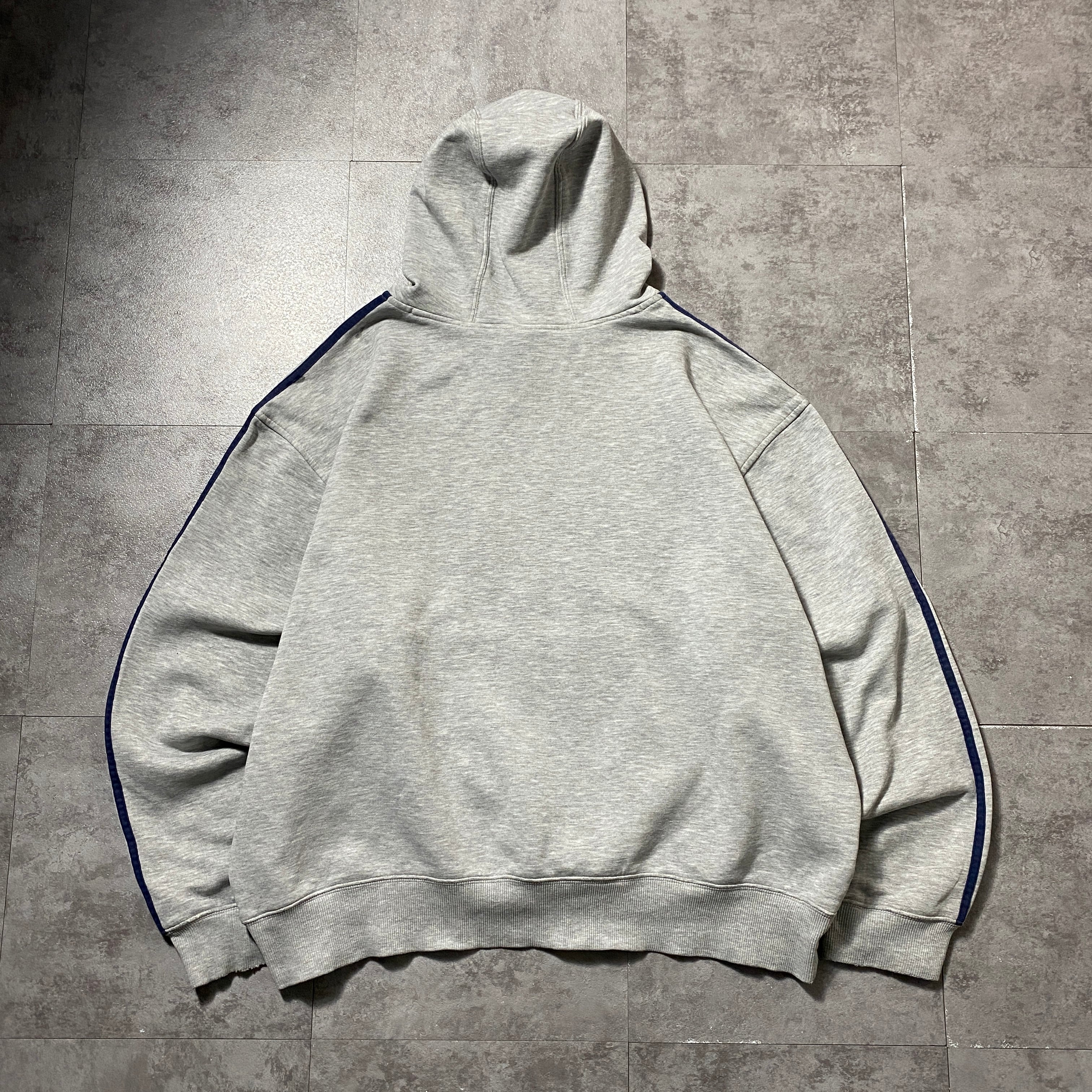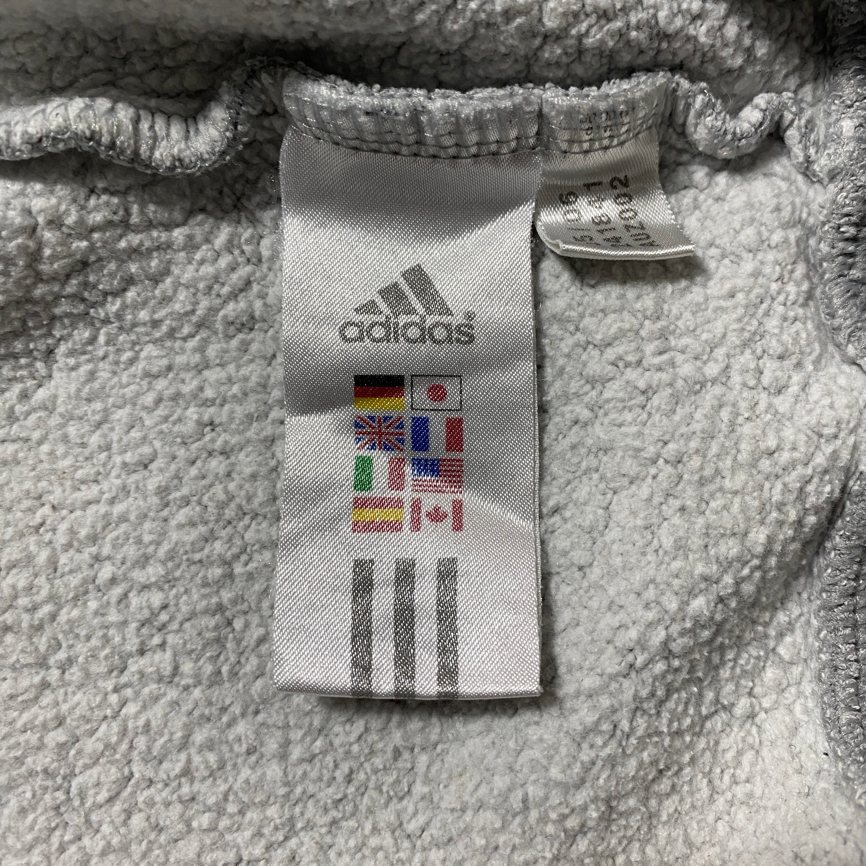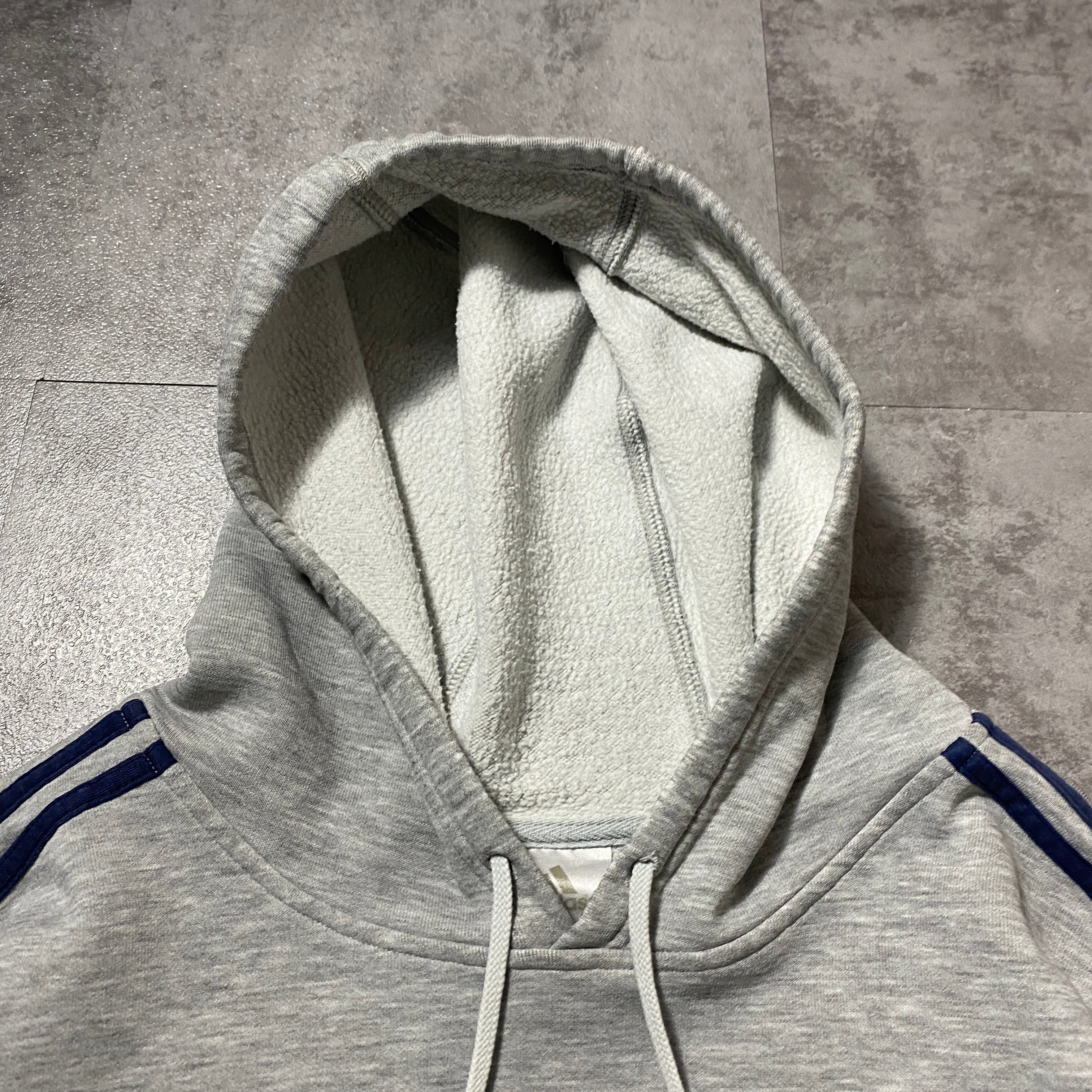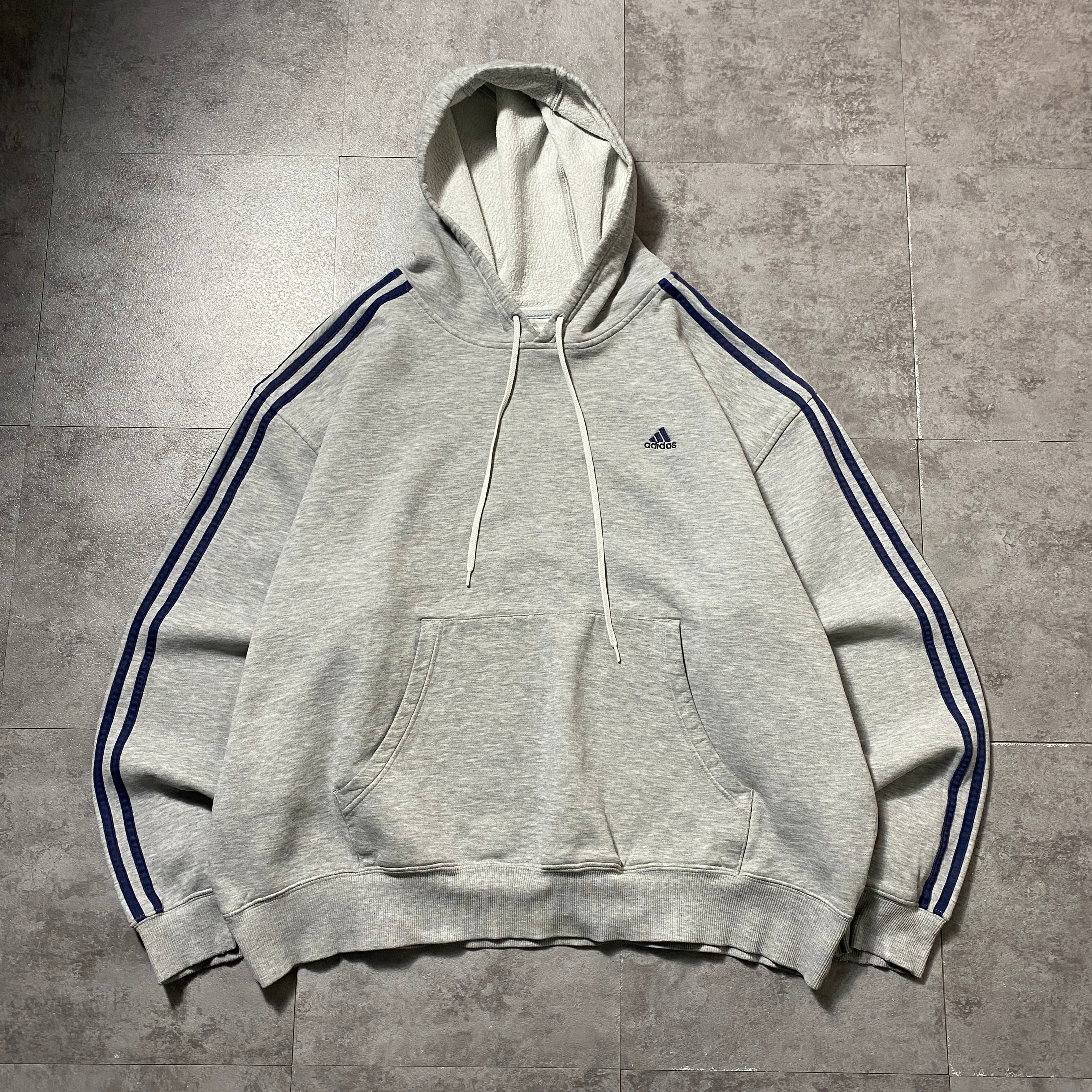 00's adidas アディダス 刺繍ワンポイント パフォーマンスロゴ サイドストライプ グレー スウェット パーカー