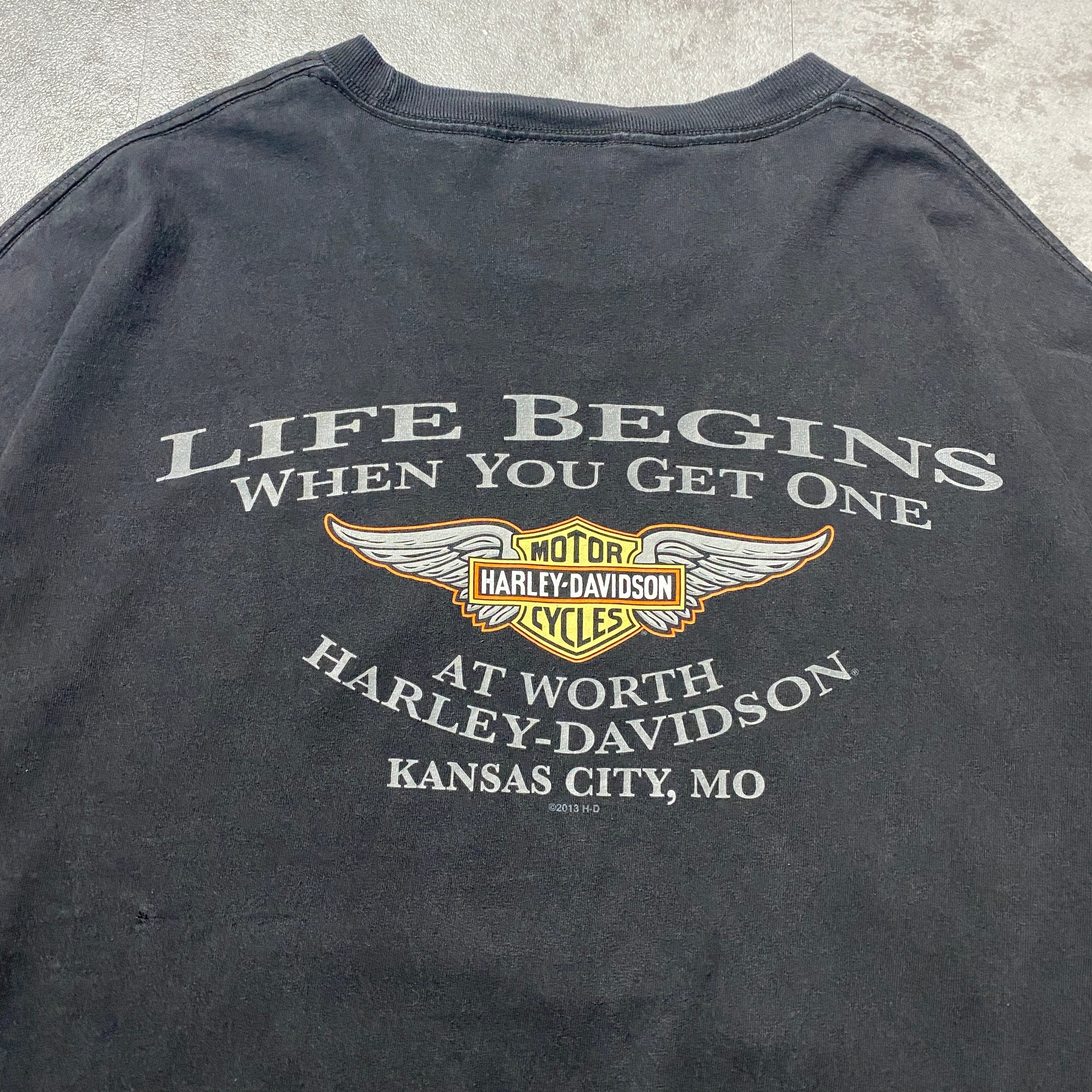 【Size:4XL】Harley-Davidson ハーレーダビッドソン バックプリント ビックサイズ コピーライト2013 ブラック 黒 Tシャツ