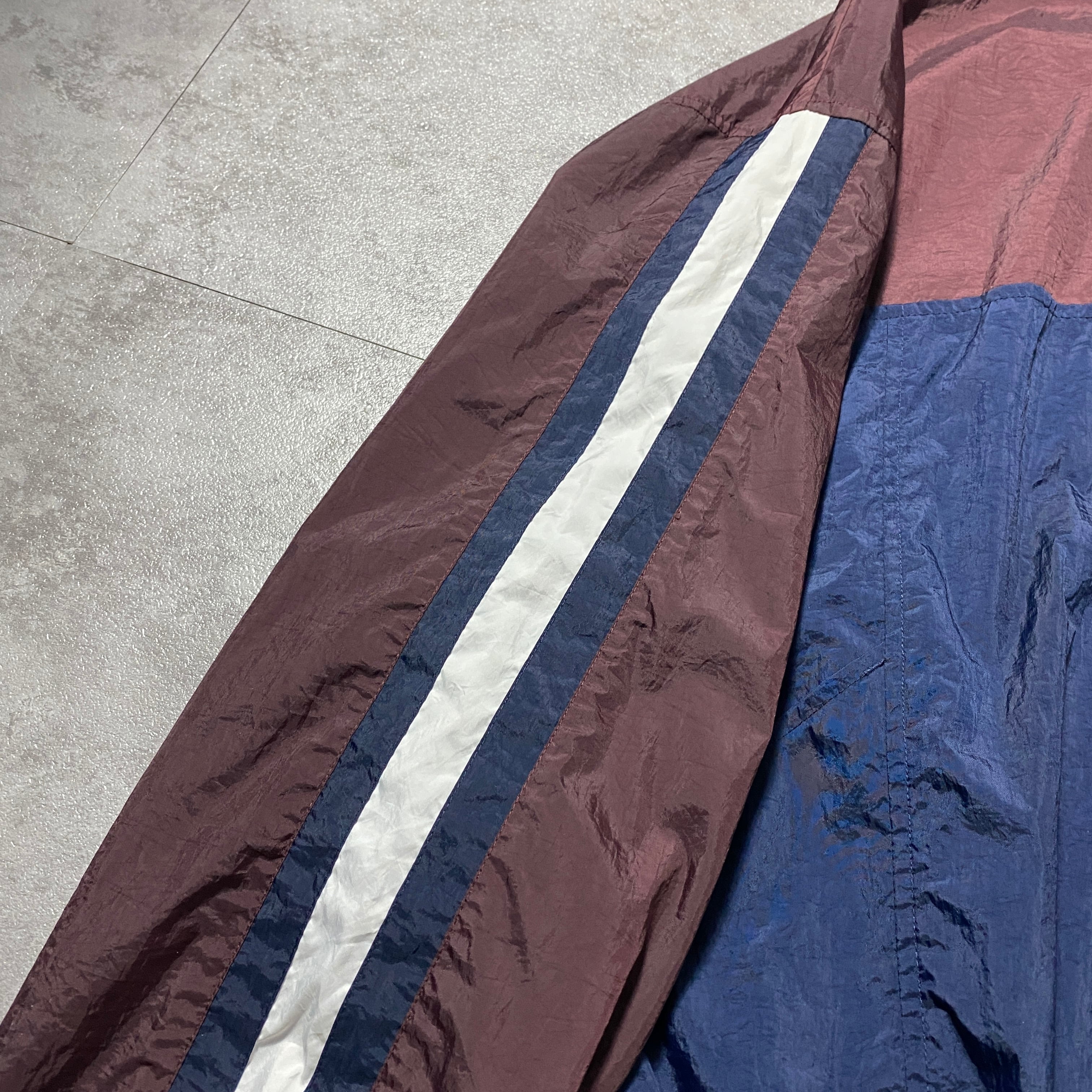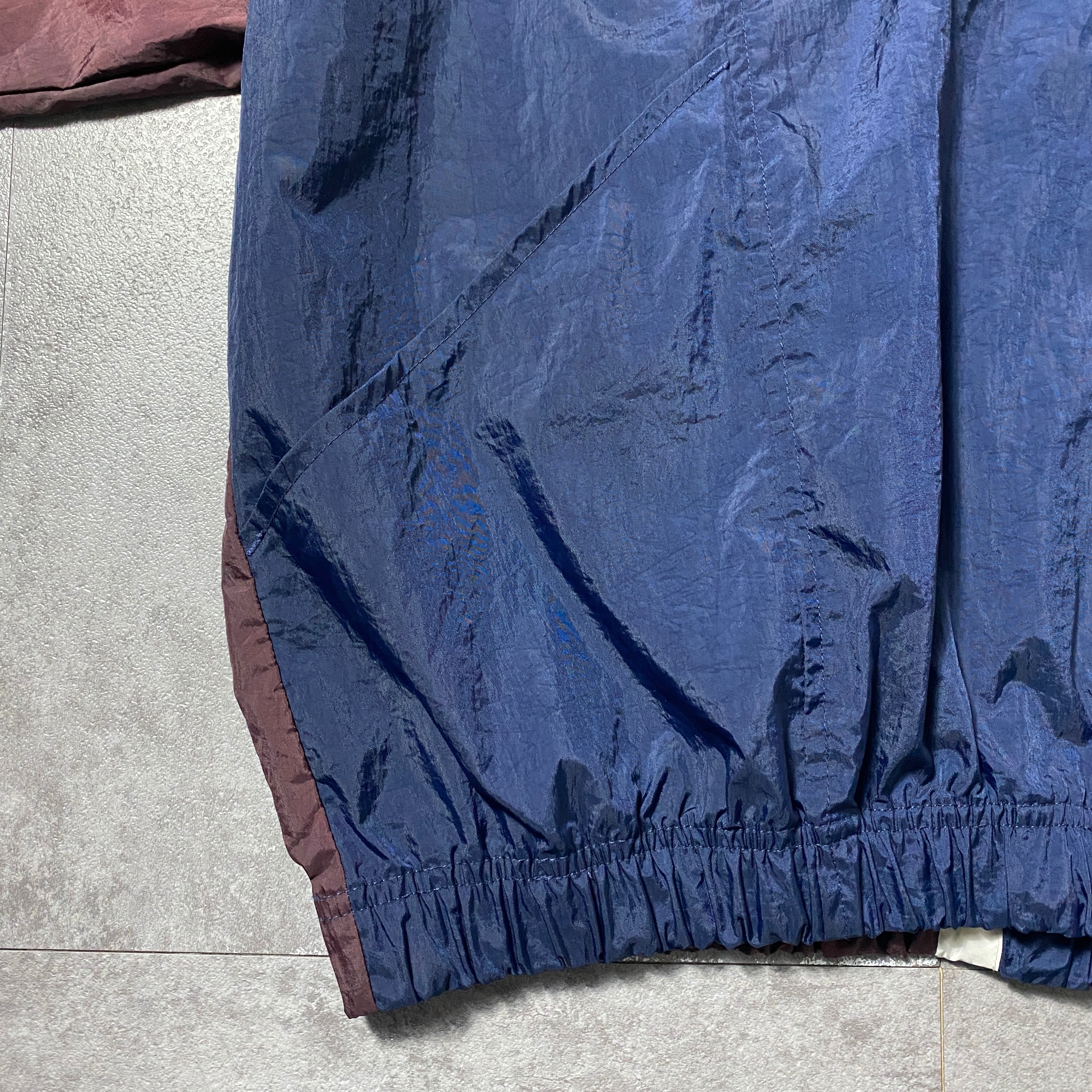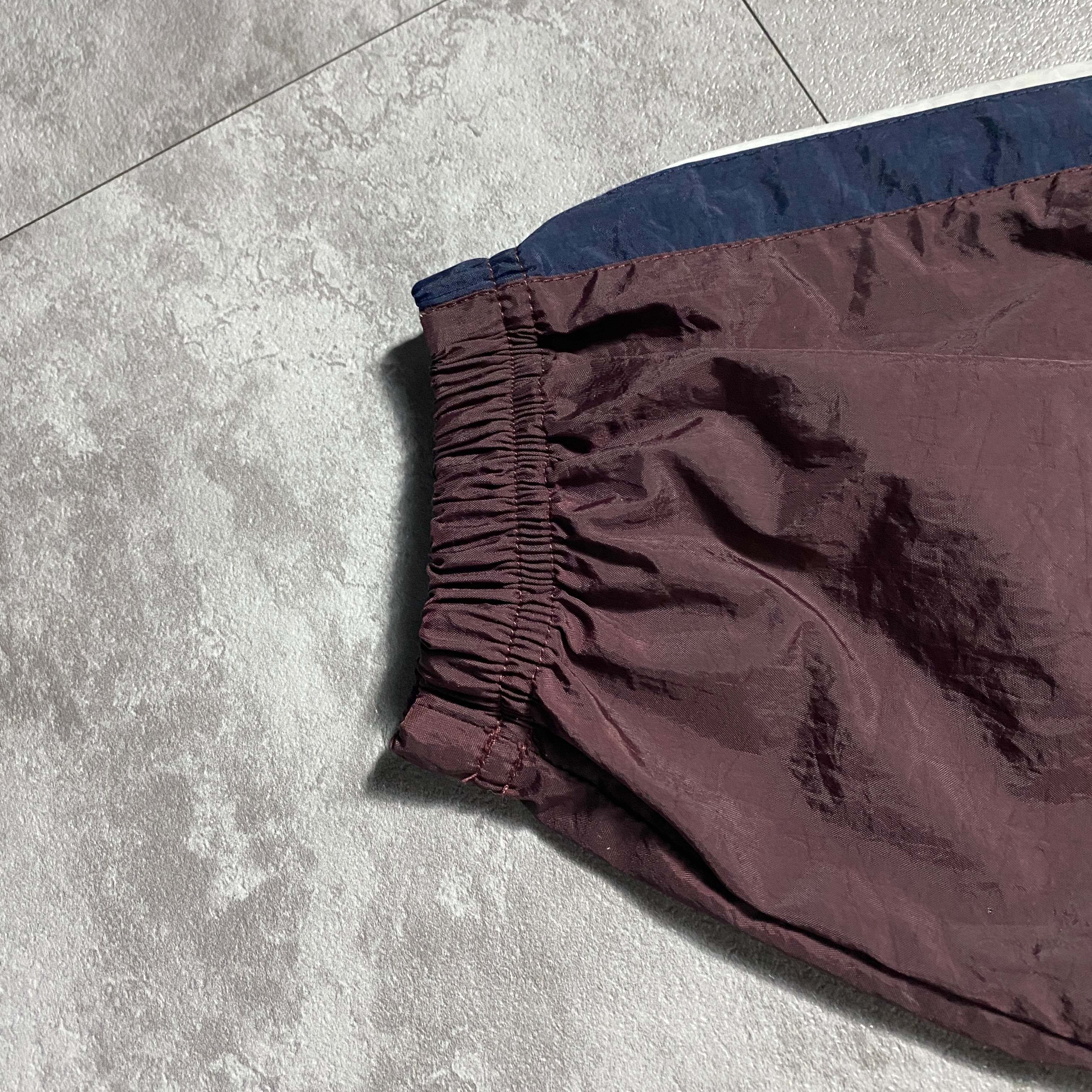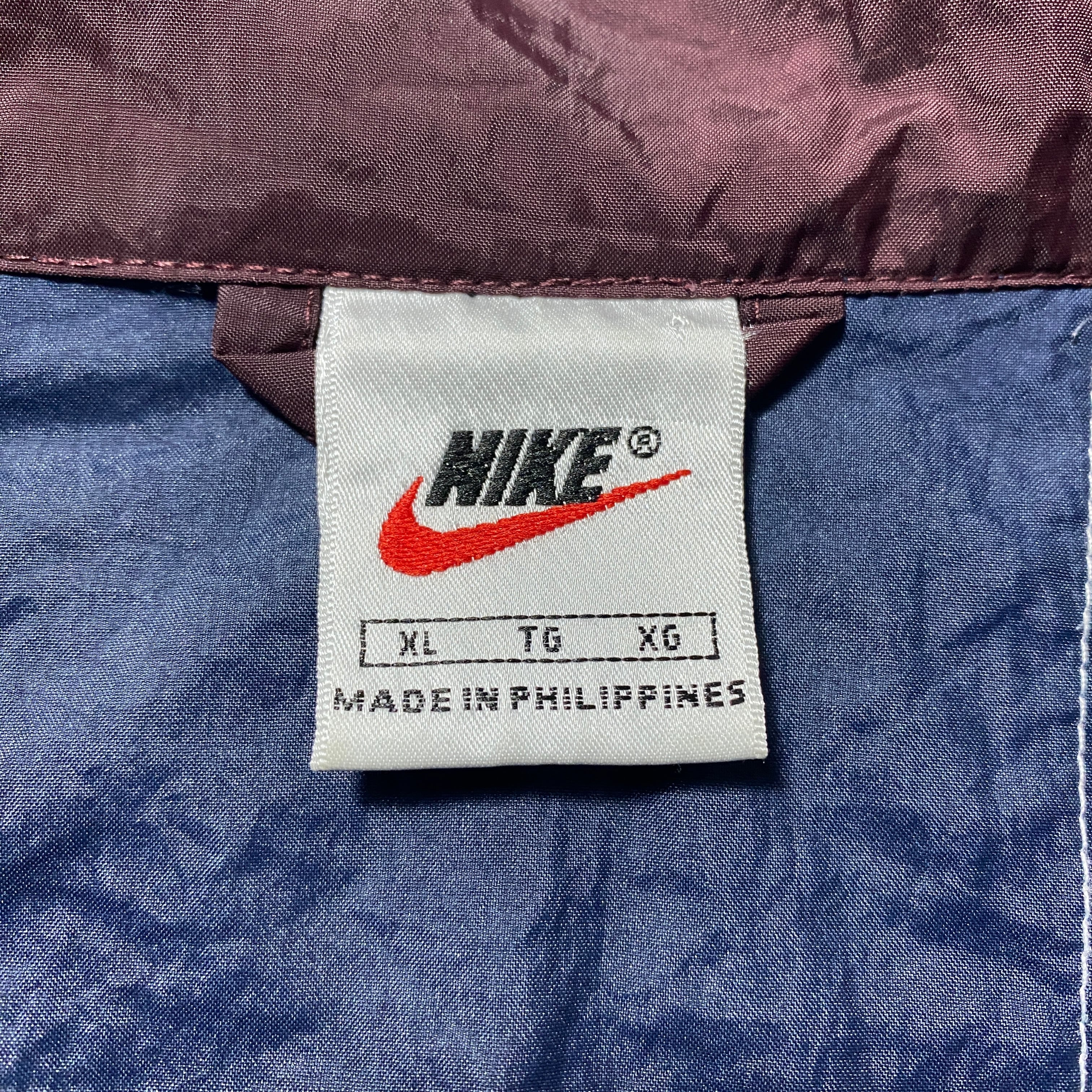 90's NIKE ナイキ スウォッシュ 刺繍ワンポイント バックプリント ブラウン×ネイビー 薄手 ナイロンジャケット
