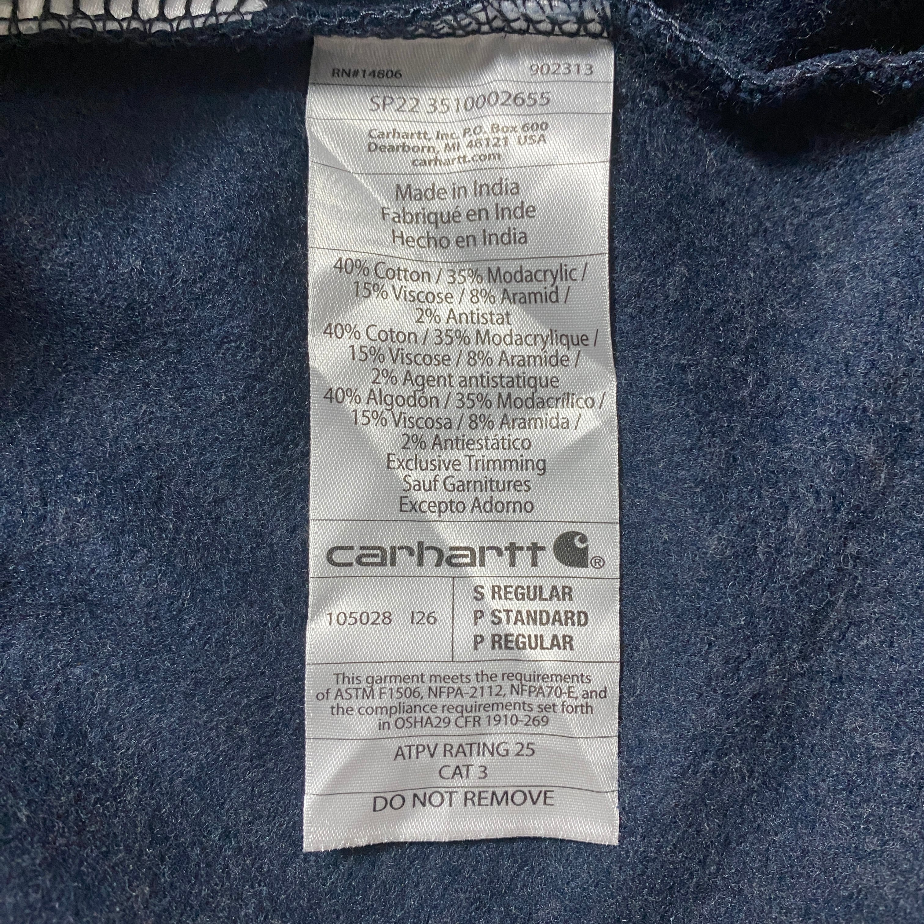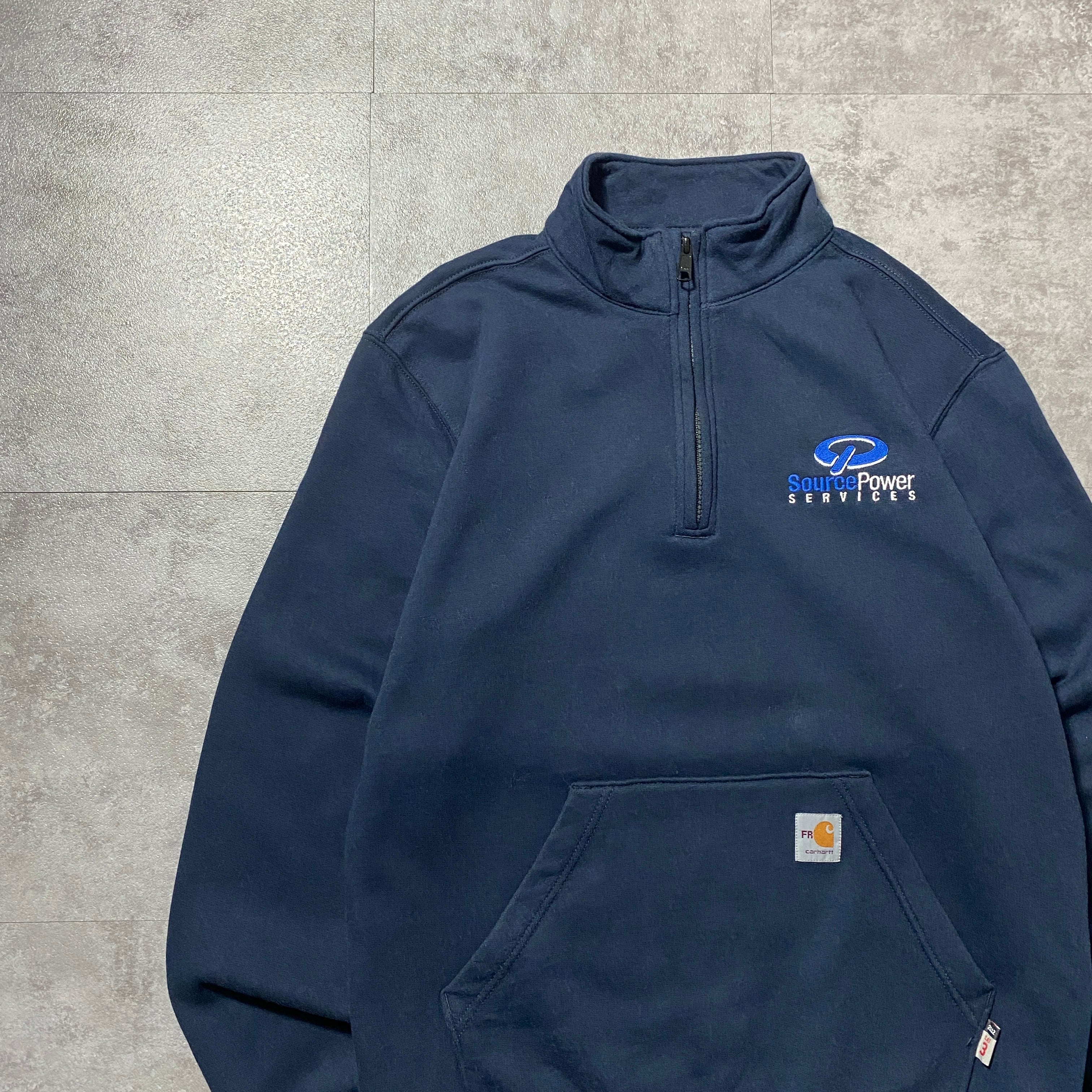 carhartt FR カーハート ハーフジップ 刺繍ワンポイント 企業ロゴ ネイビー スウェット トレーナー
