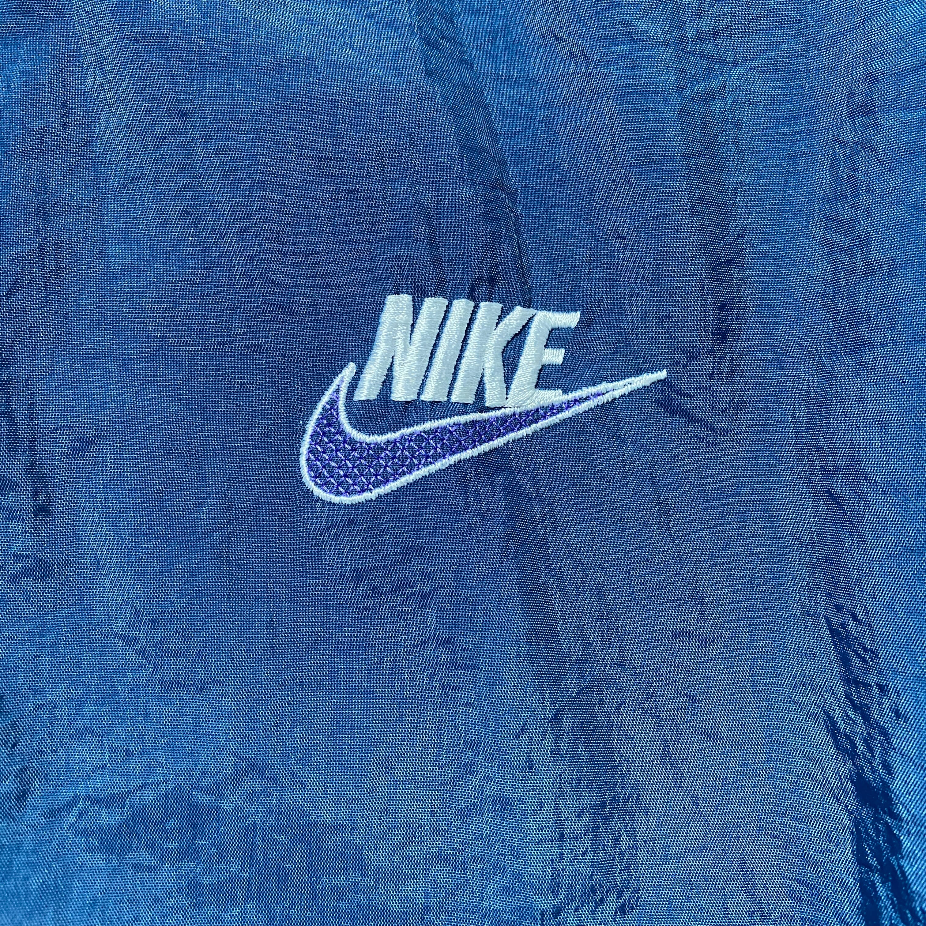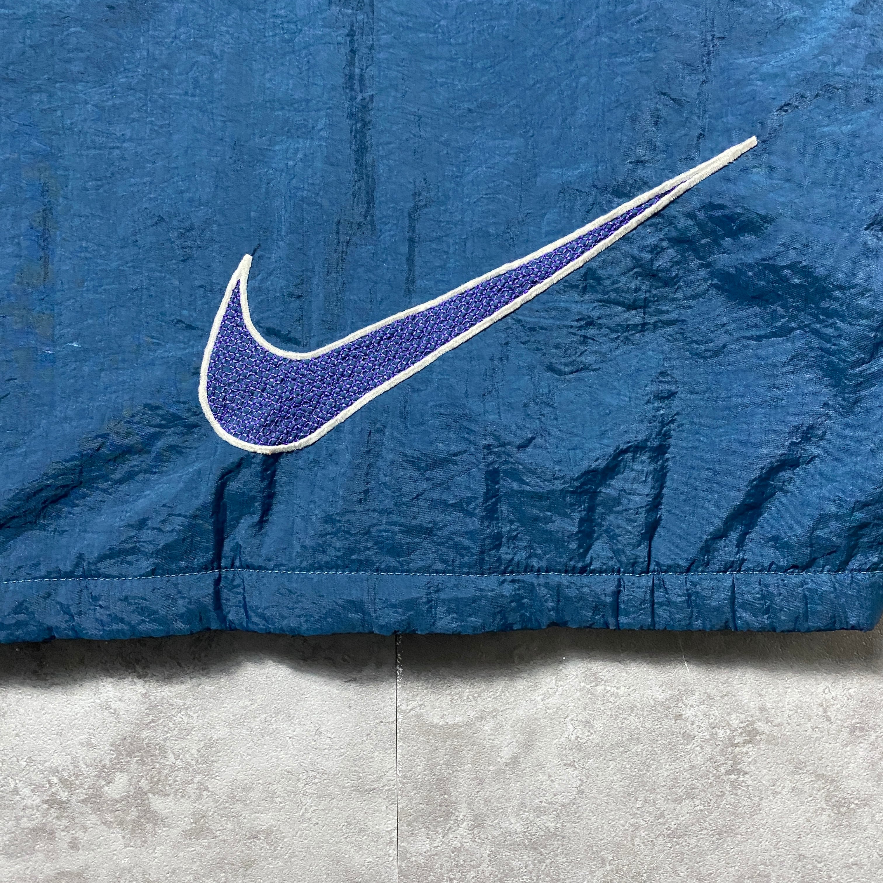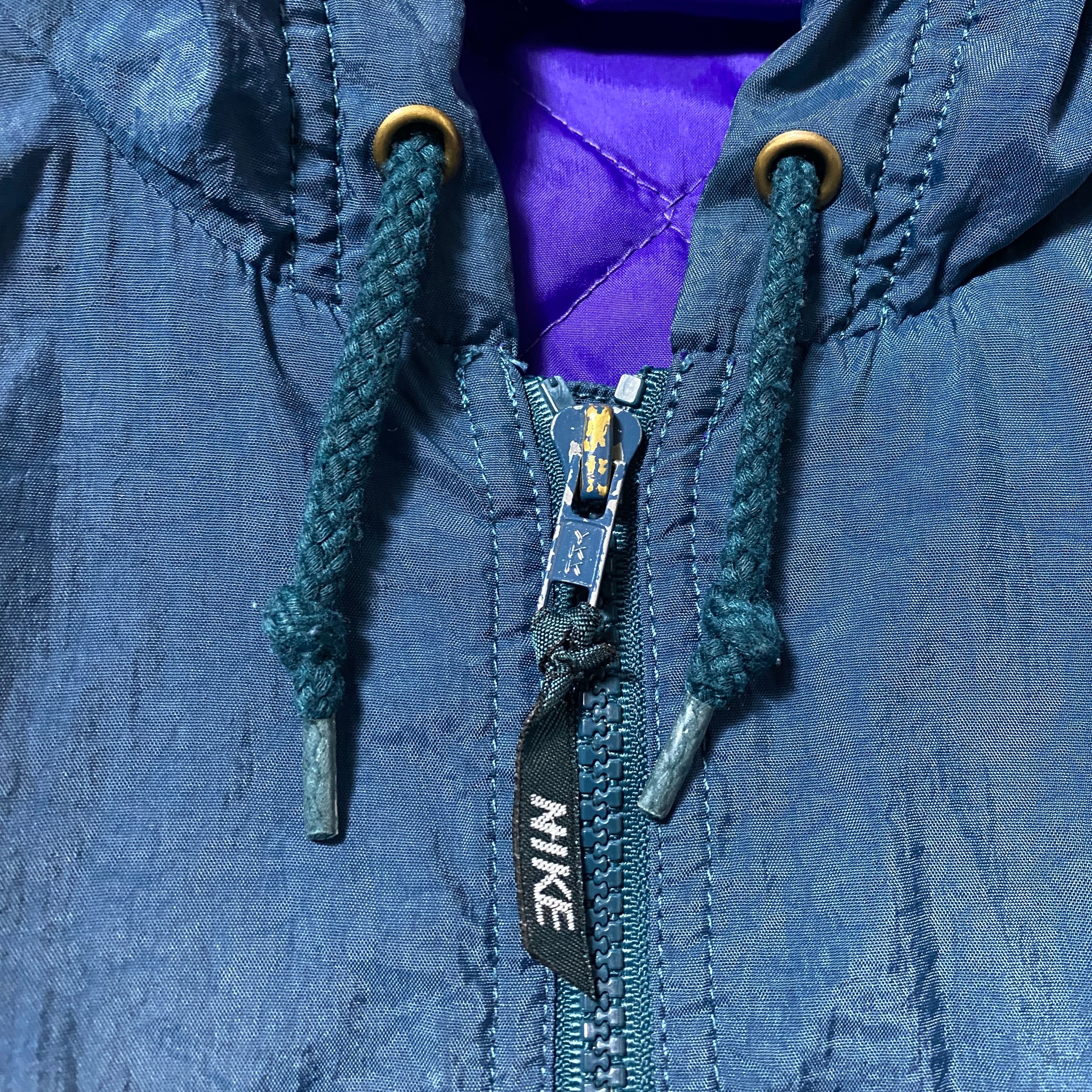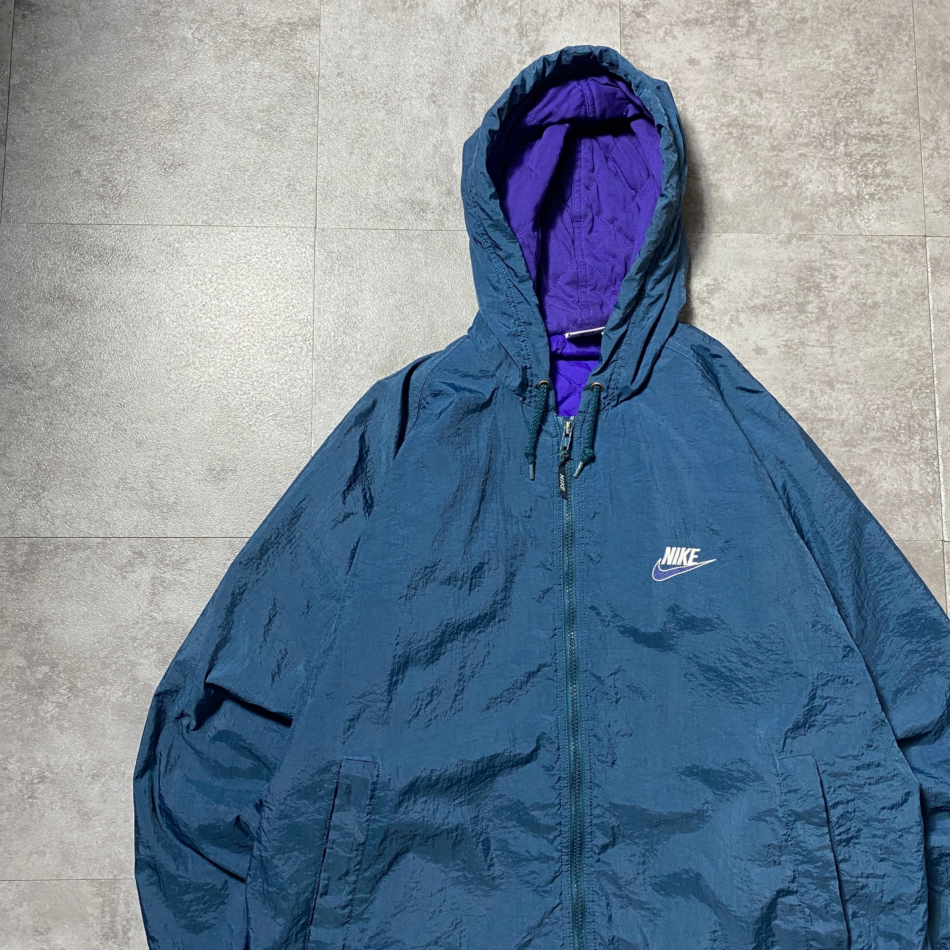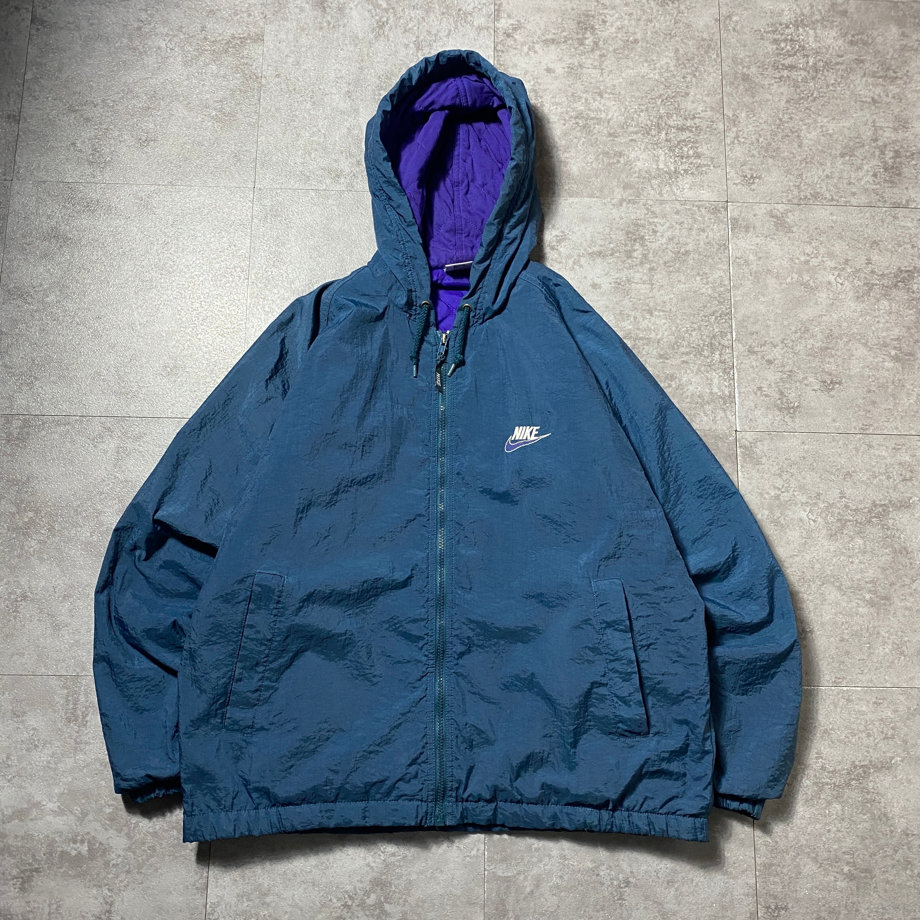 90's NIKE ナイキ スウォッシュ 両面刺繍 中綿 裏地キルティング グリーン ナイロンジャケット