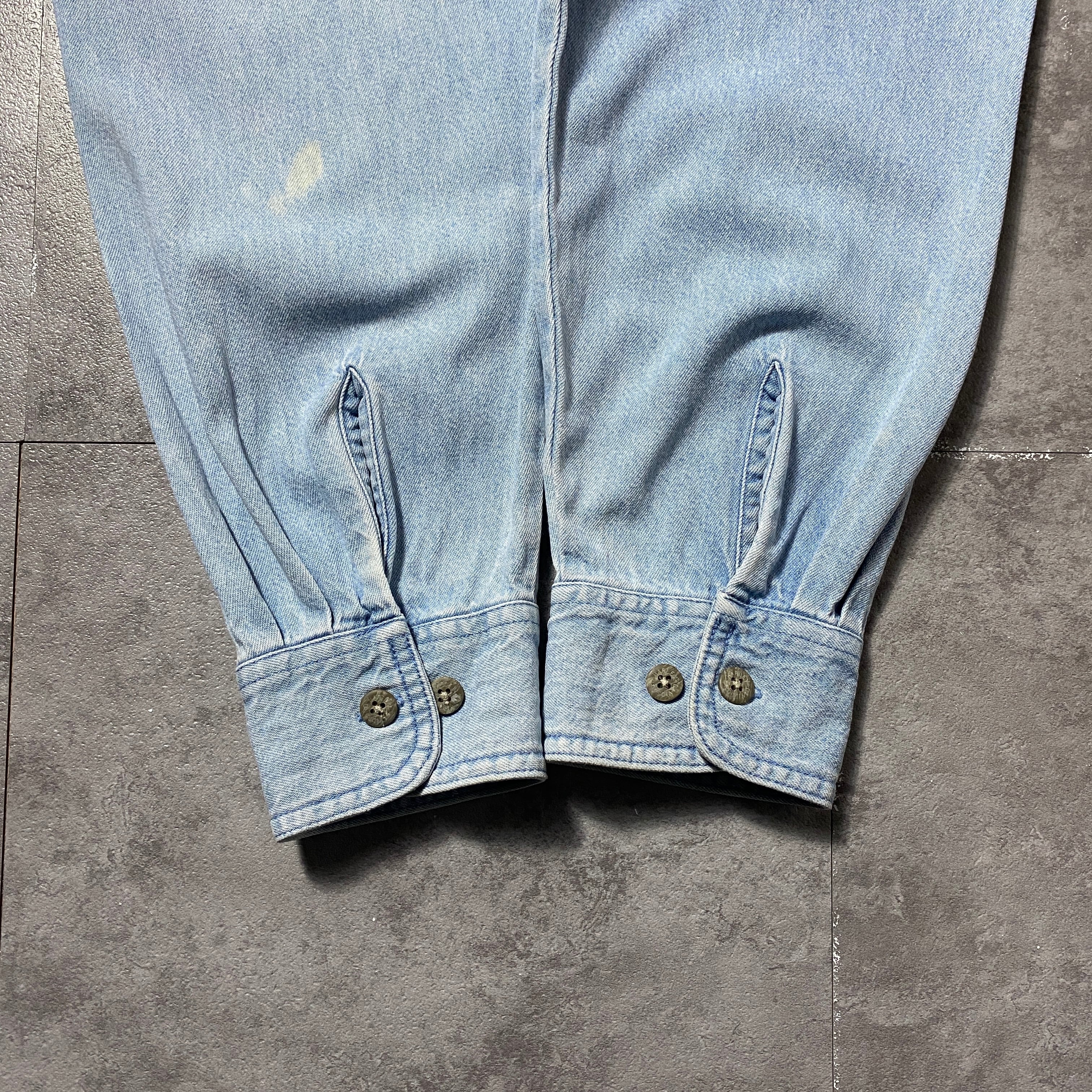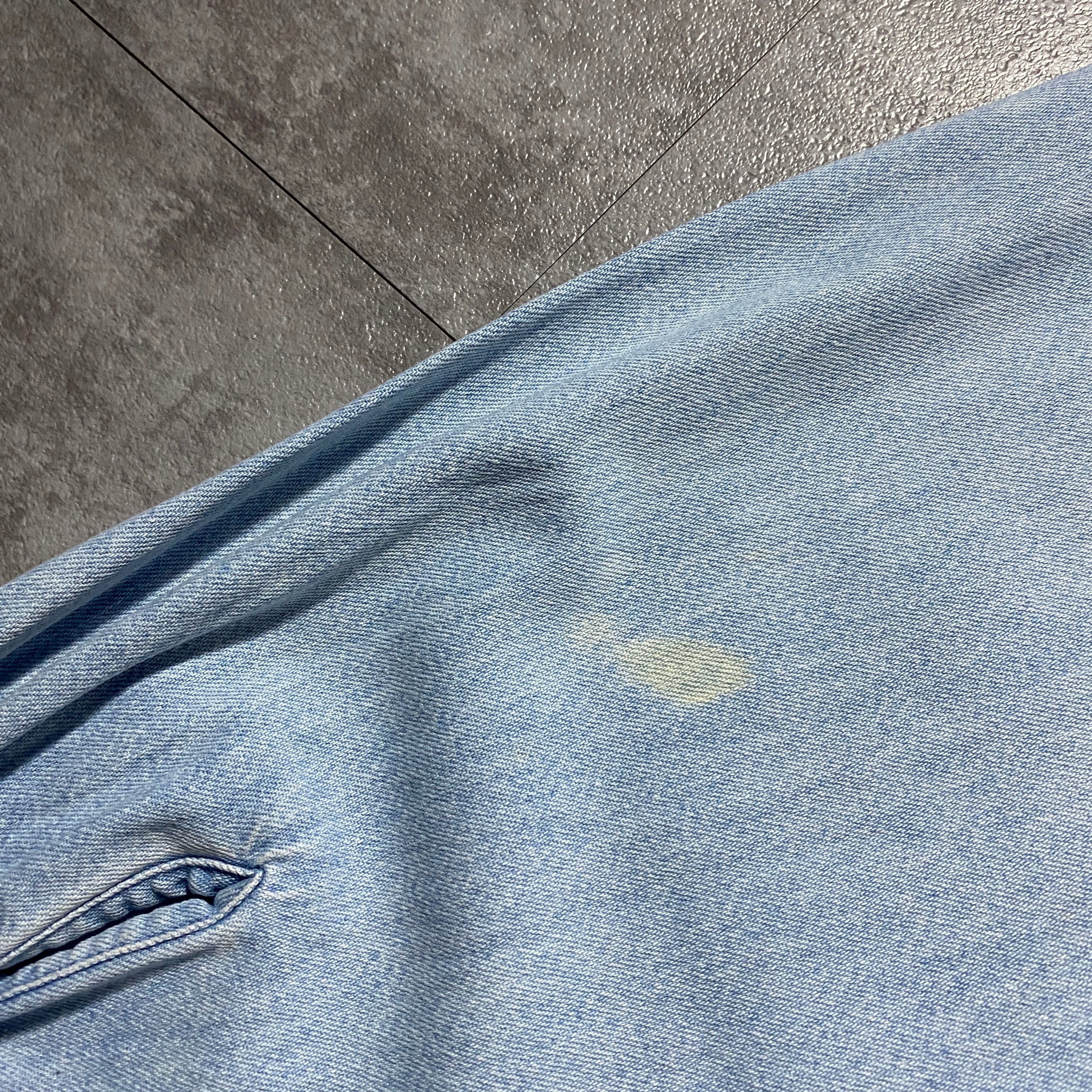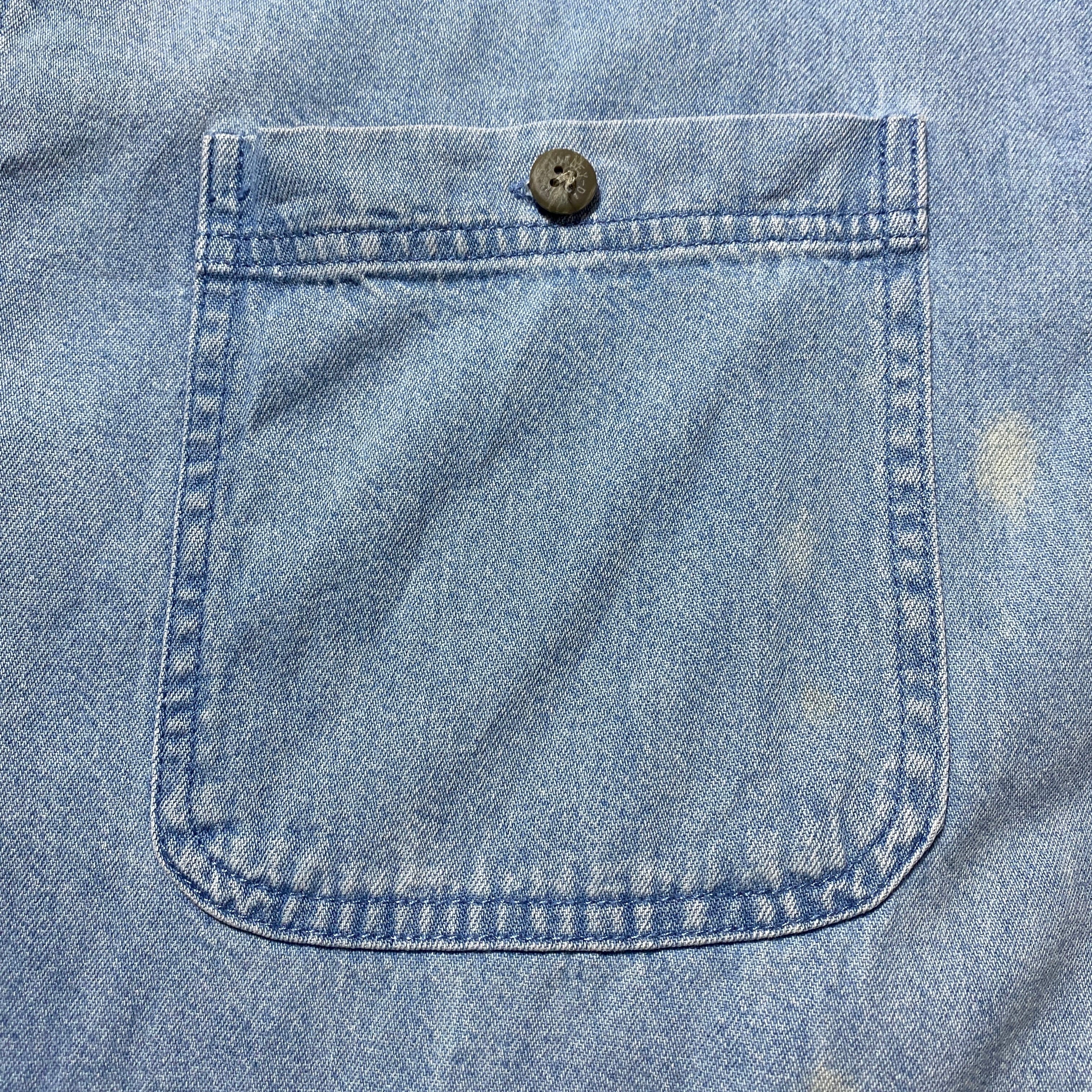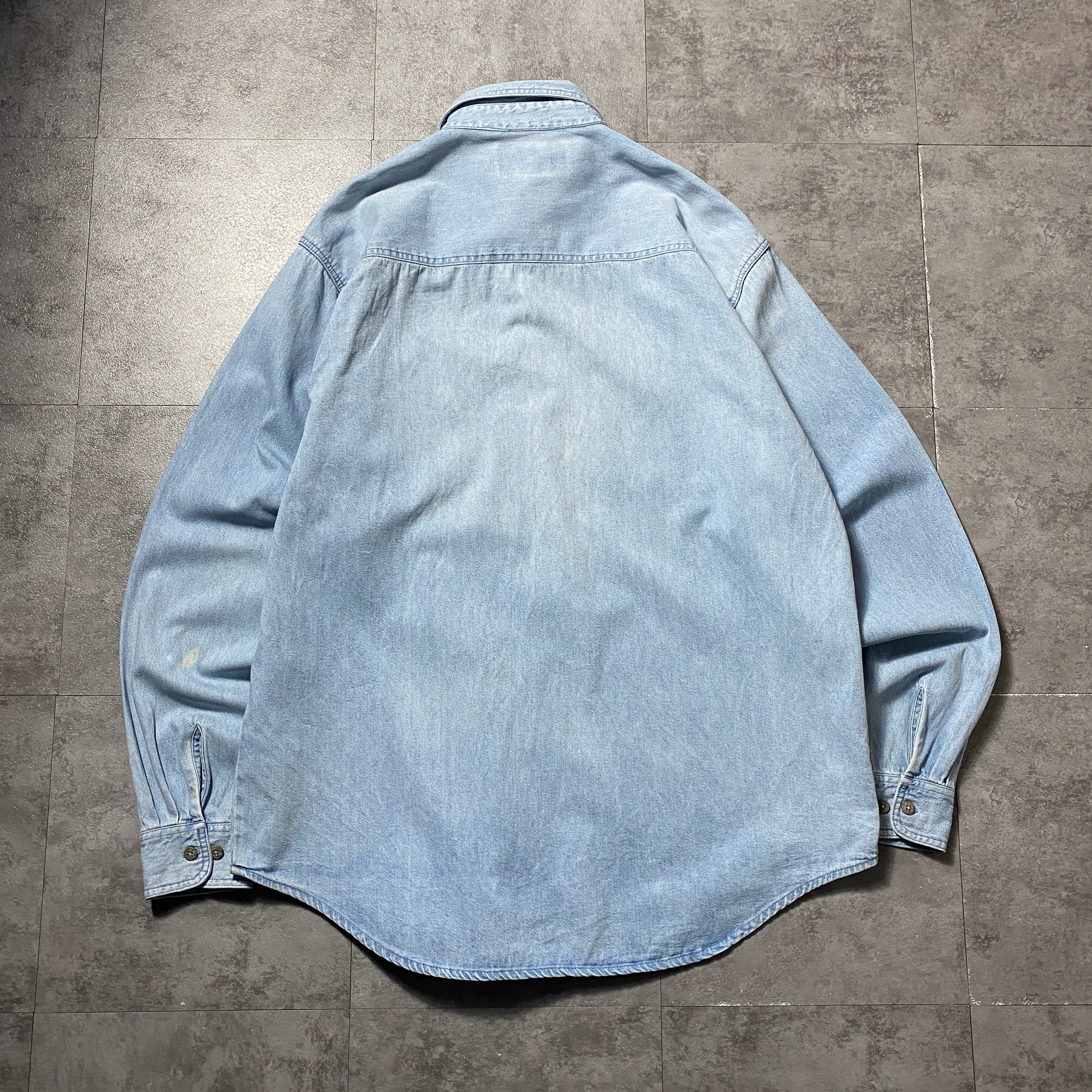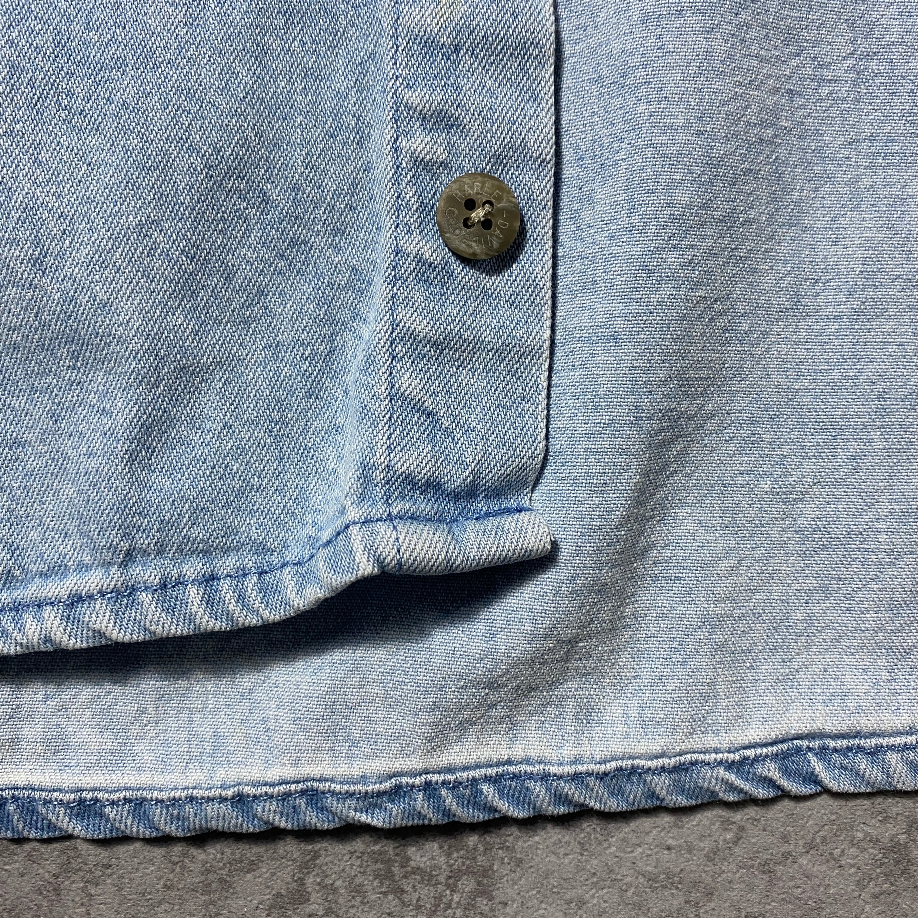【Size:XL】90's Harley-Davidson ハーレーダビッドソン 刺繍ロゴ ダブルポケット ブリーチ デニムシャツ