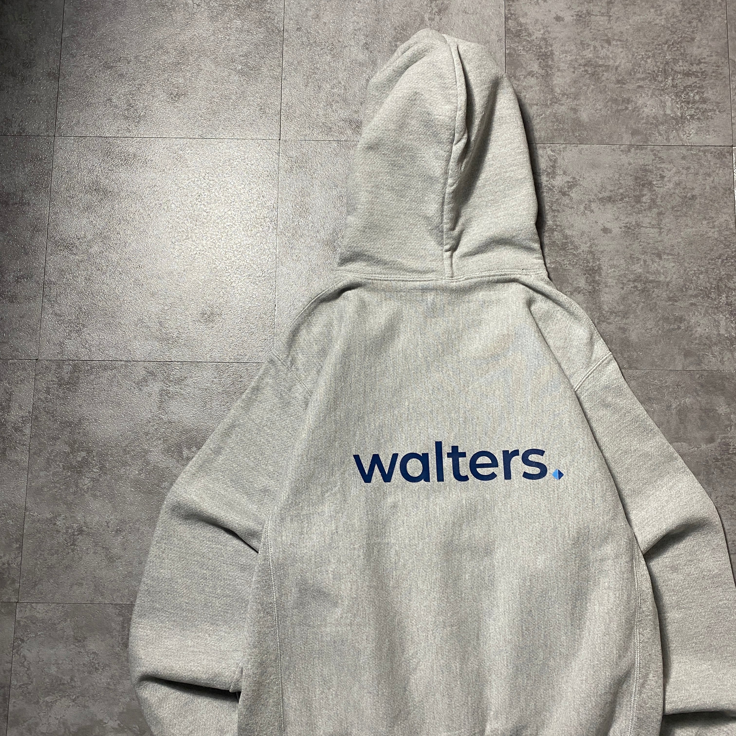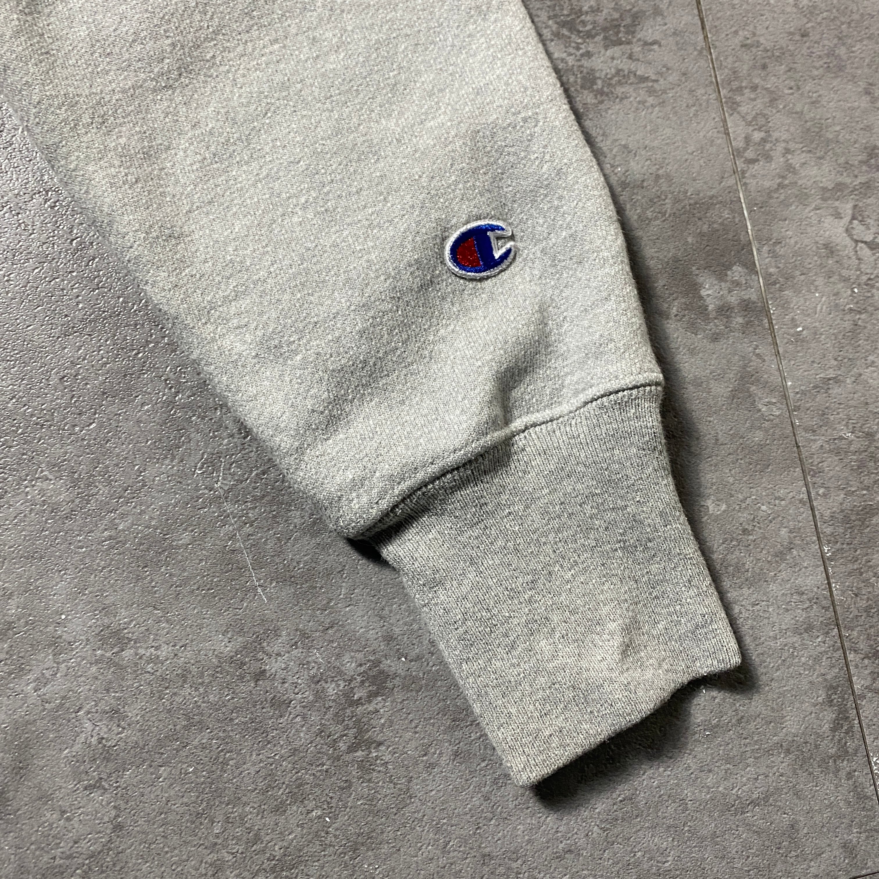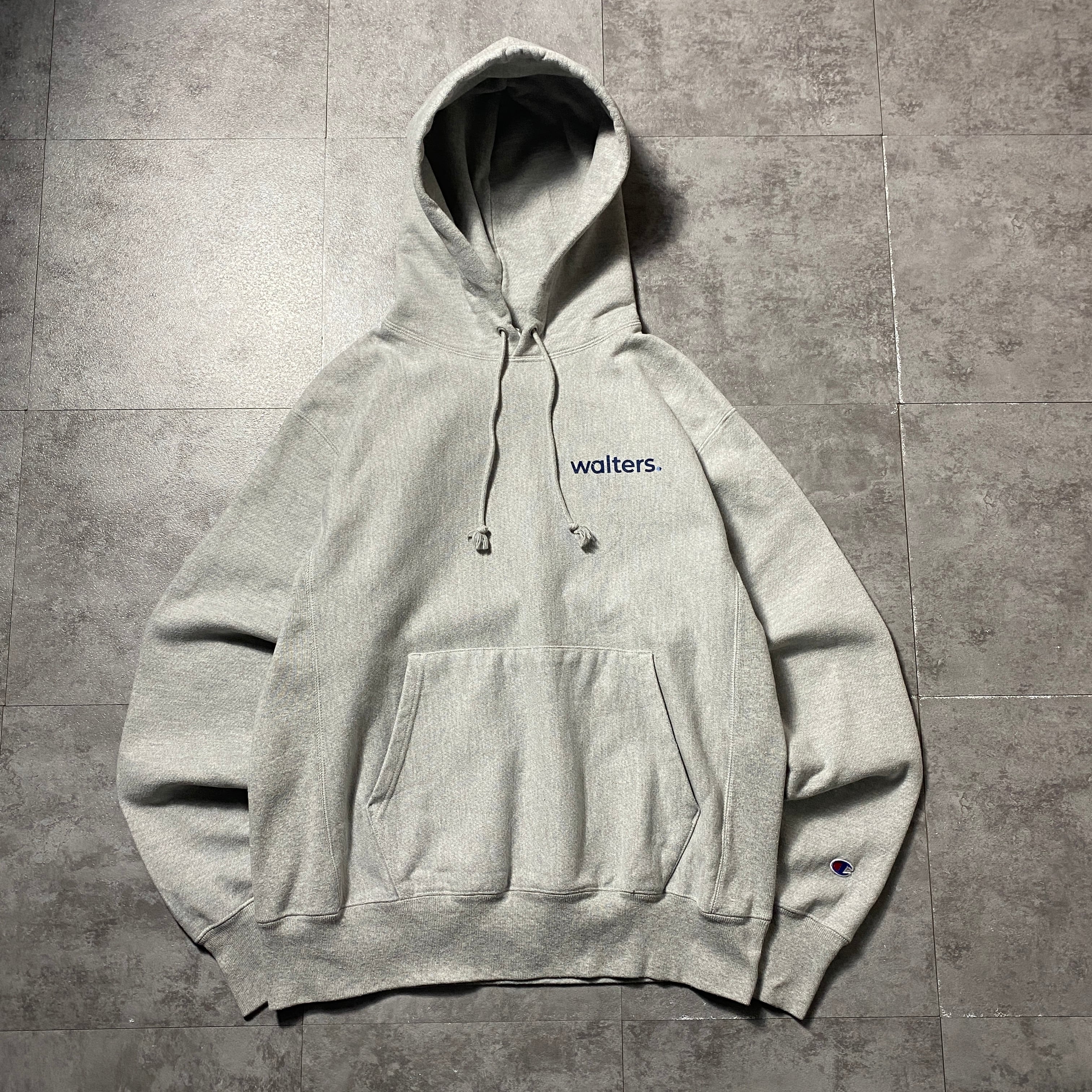00's Champion チャンピオン プレミアムリバースウィーブ バックプリント 企業ロゴ グレー スウェット パーカー