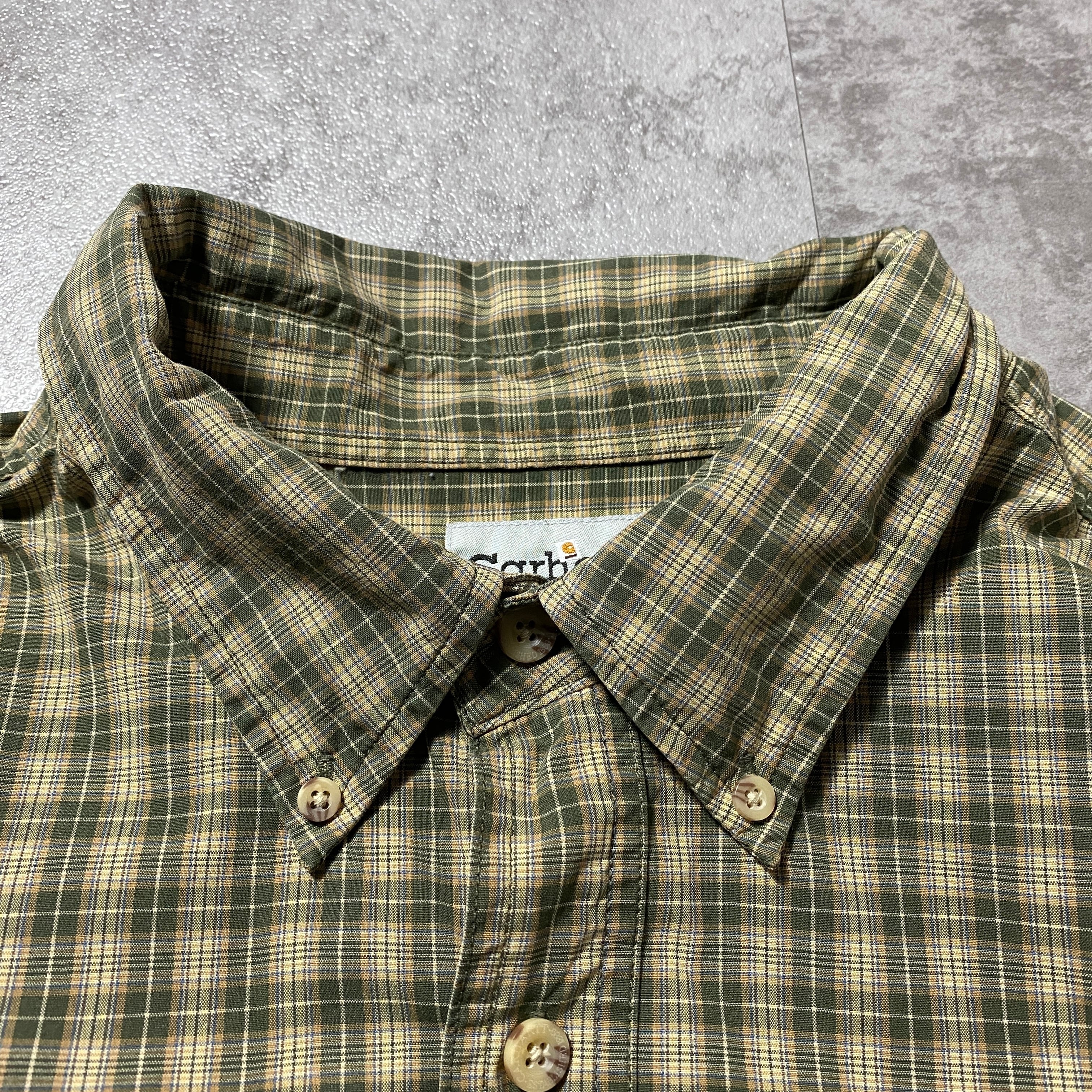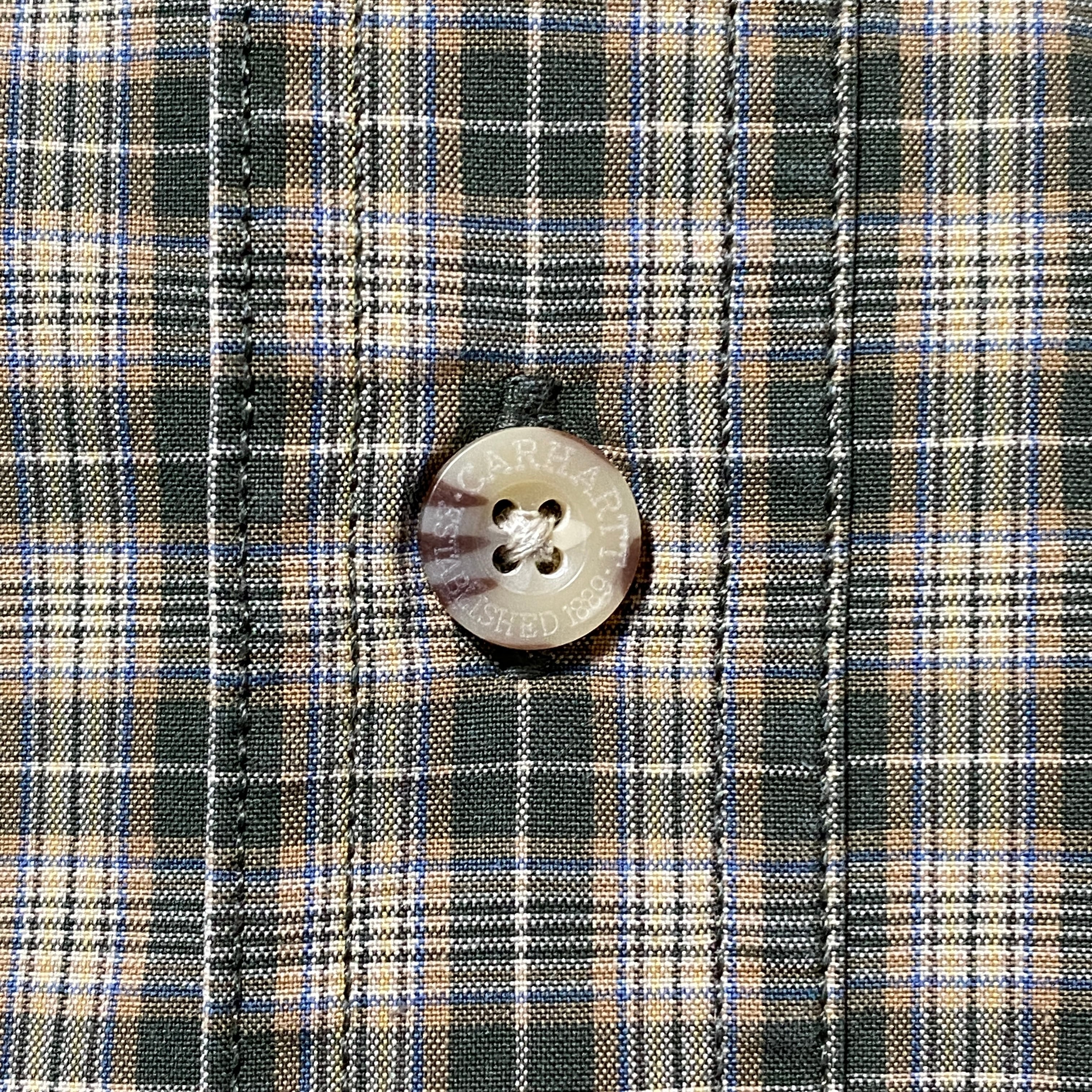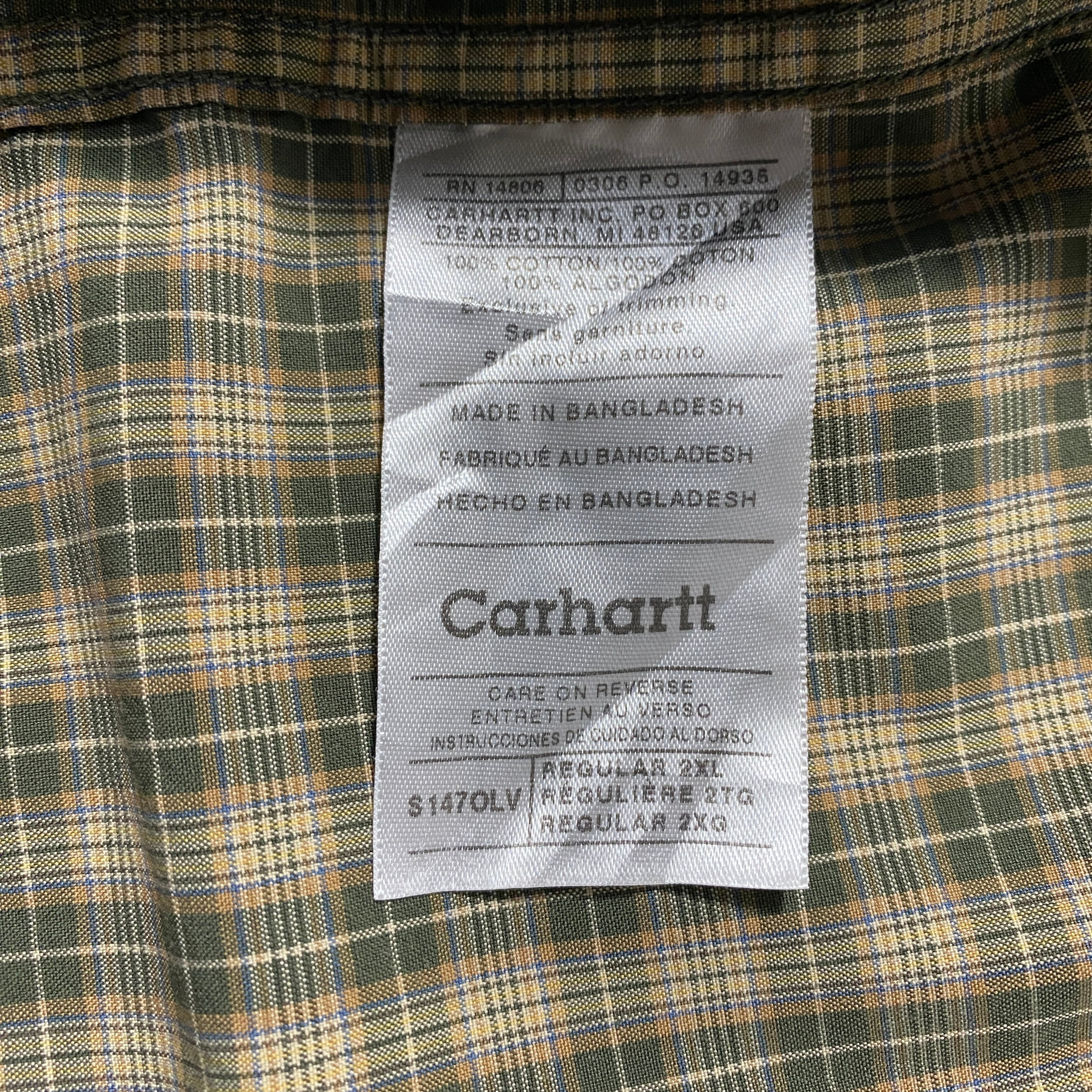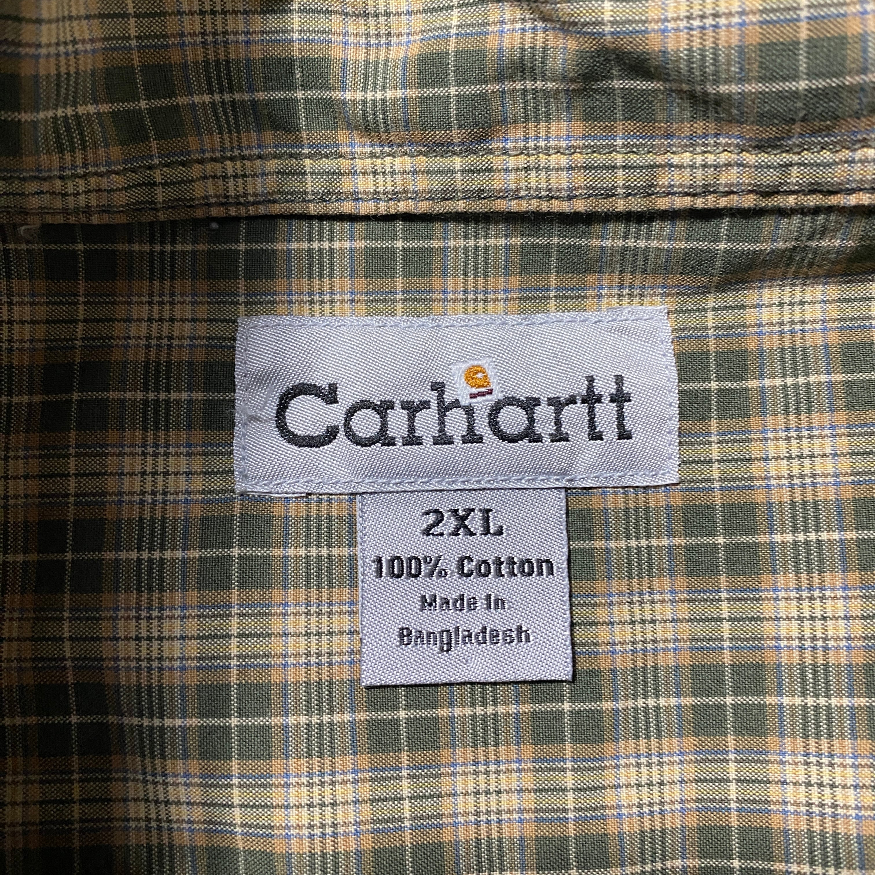 【Size:2XL】carhartt カーハート レザーパッチ 胸ポケット チェック総柄 ボタンダウンシャツ