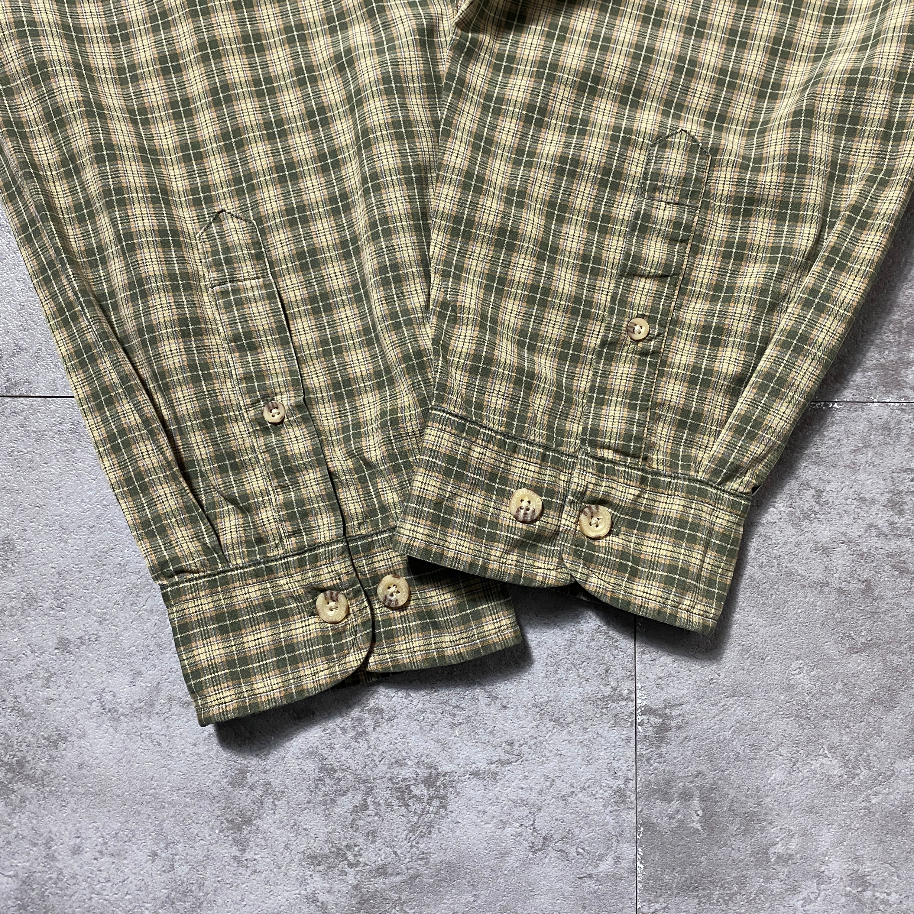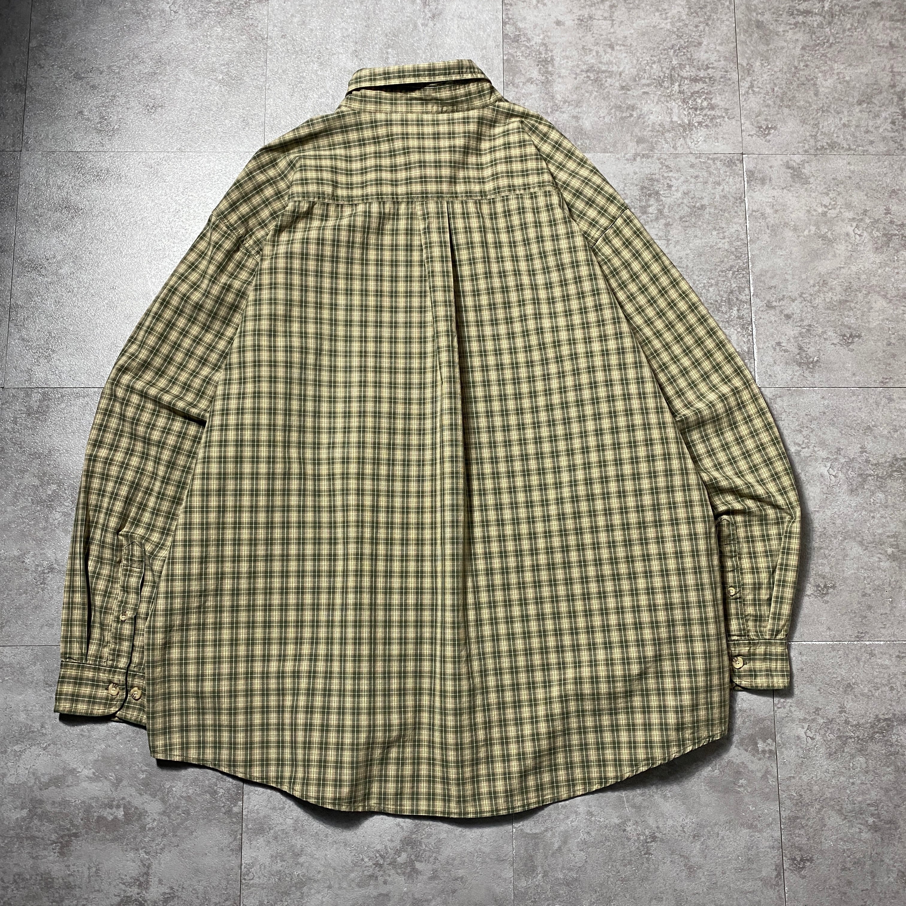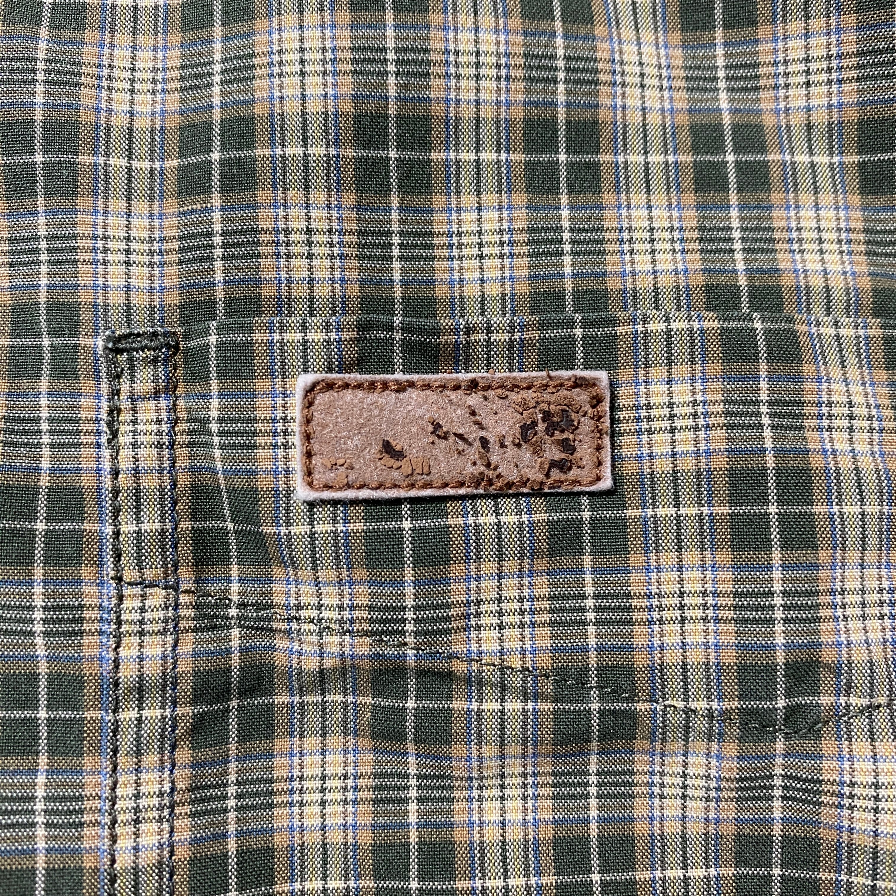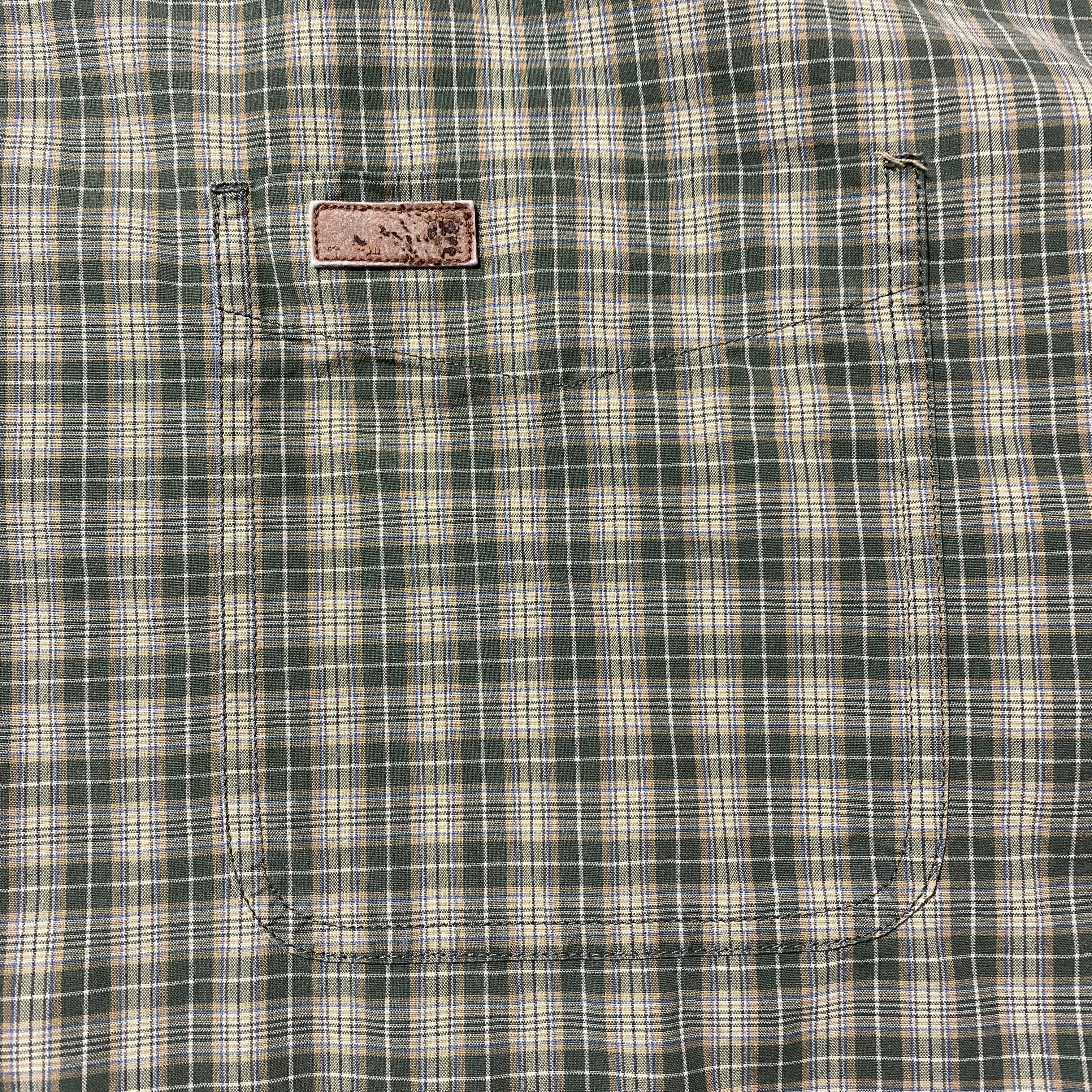 【Size:2XL】carhartt カーハート レザーパッチ 胸ポケット チェック総柄 ボタンダウンシャツ