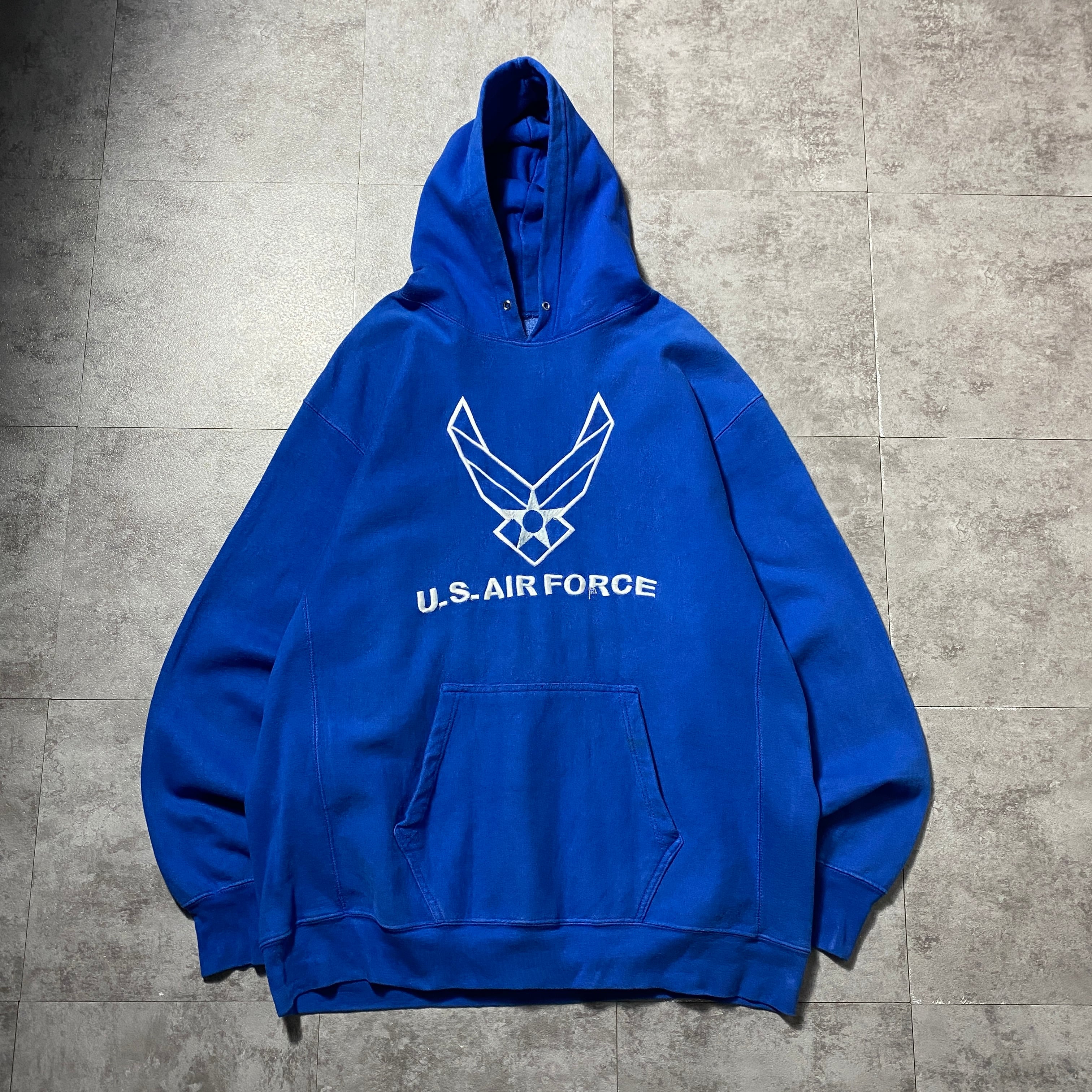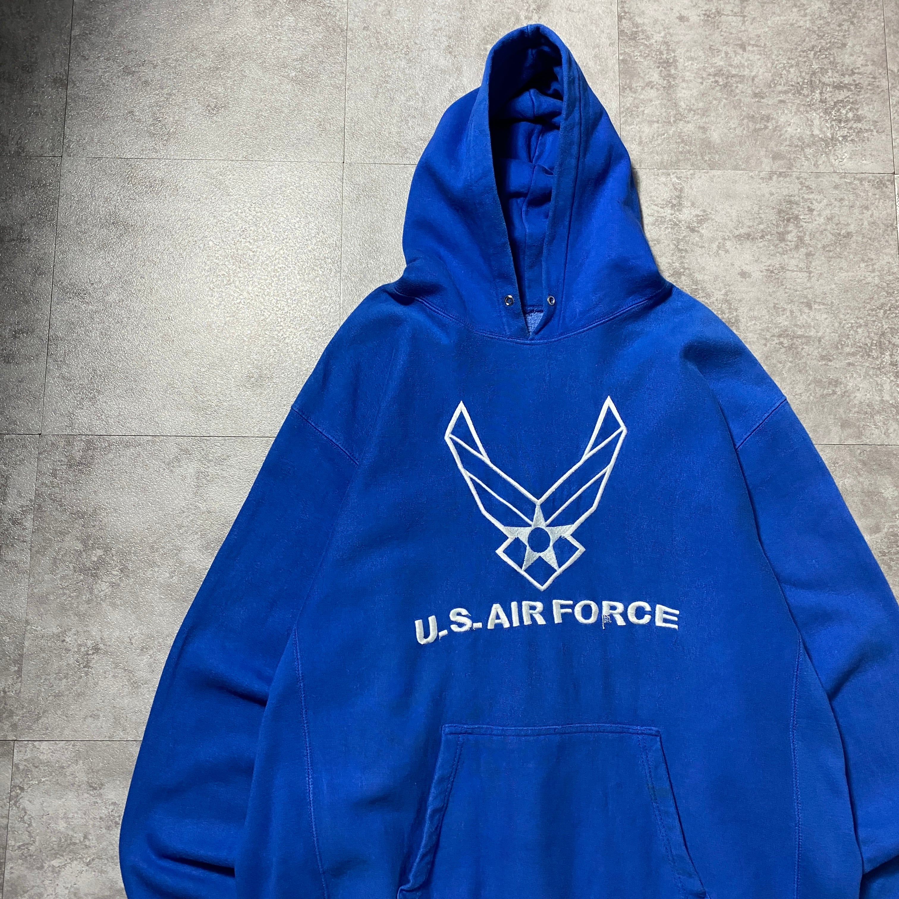 【Size:XL】00's STEVE&BARRY'S スティーブアンドバリーズ U.S.AIR FORCE アメリカ空軍 刺繍ロゴ リバースウィーブ ブルー スウェット パーカー