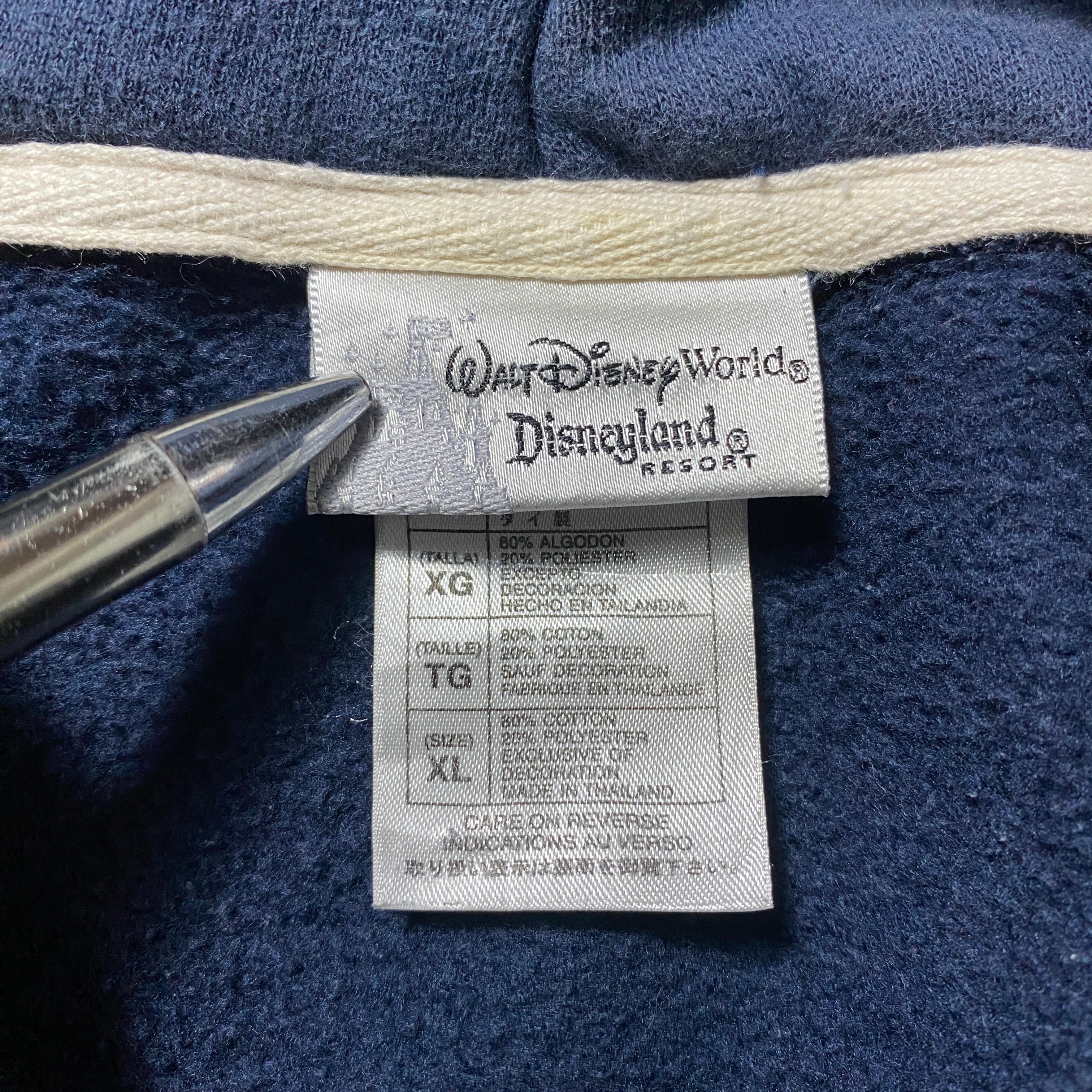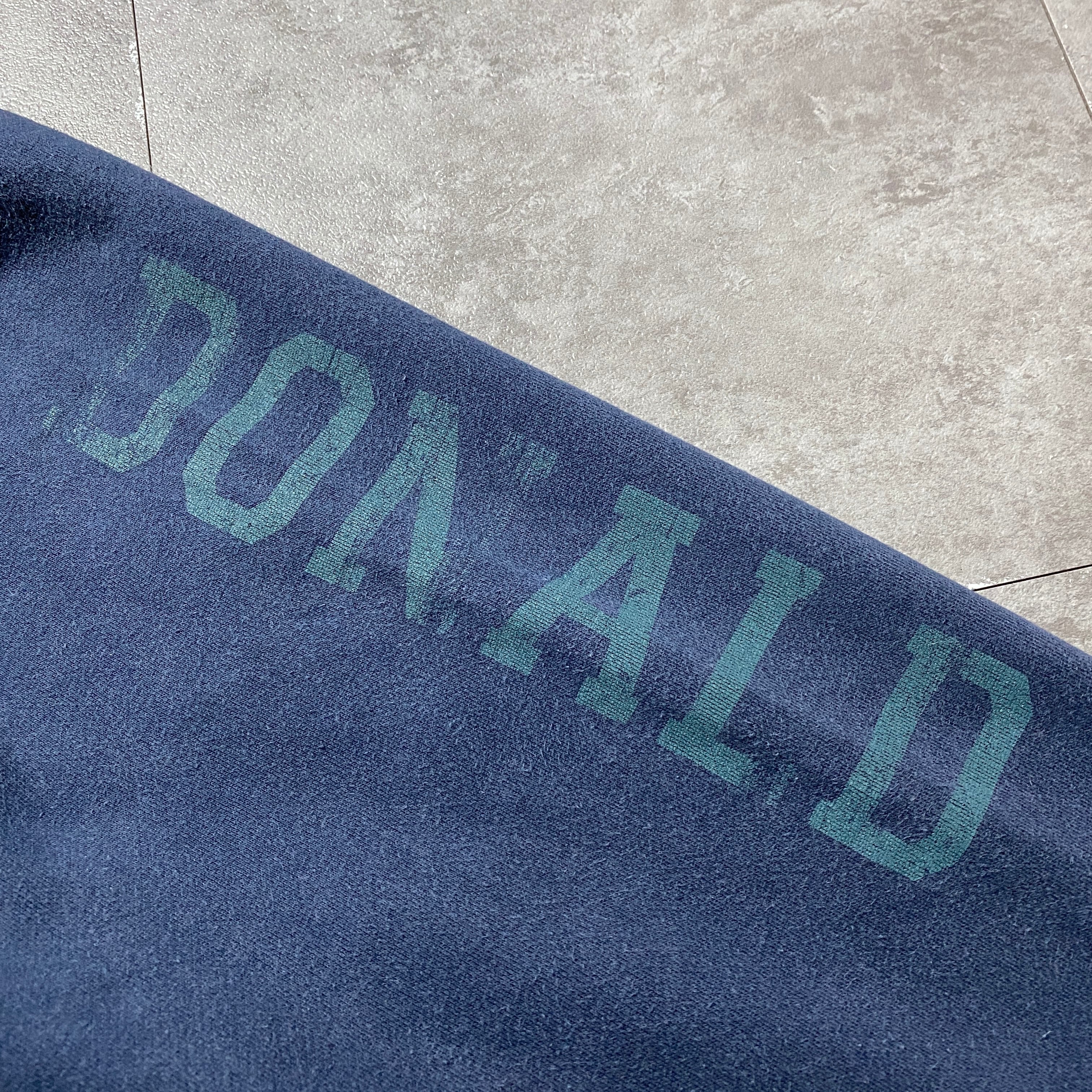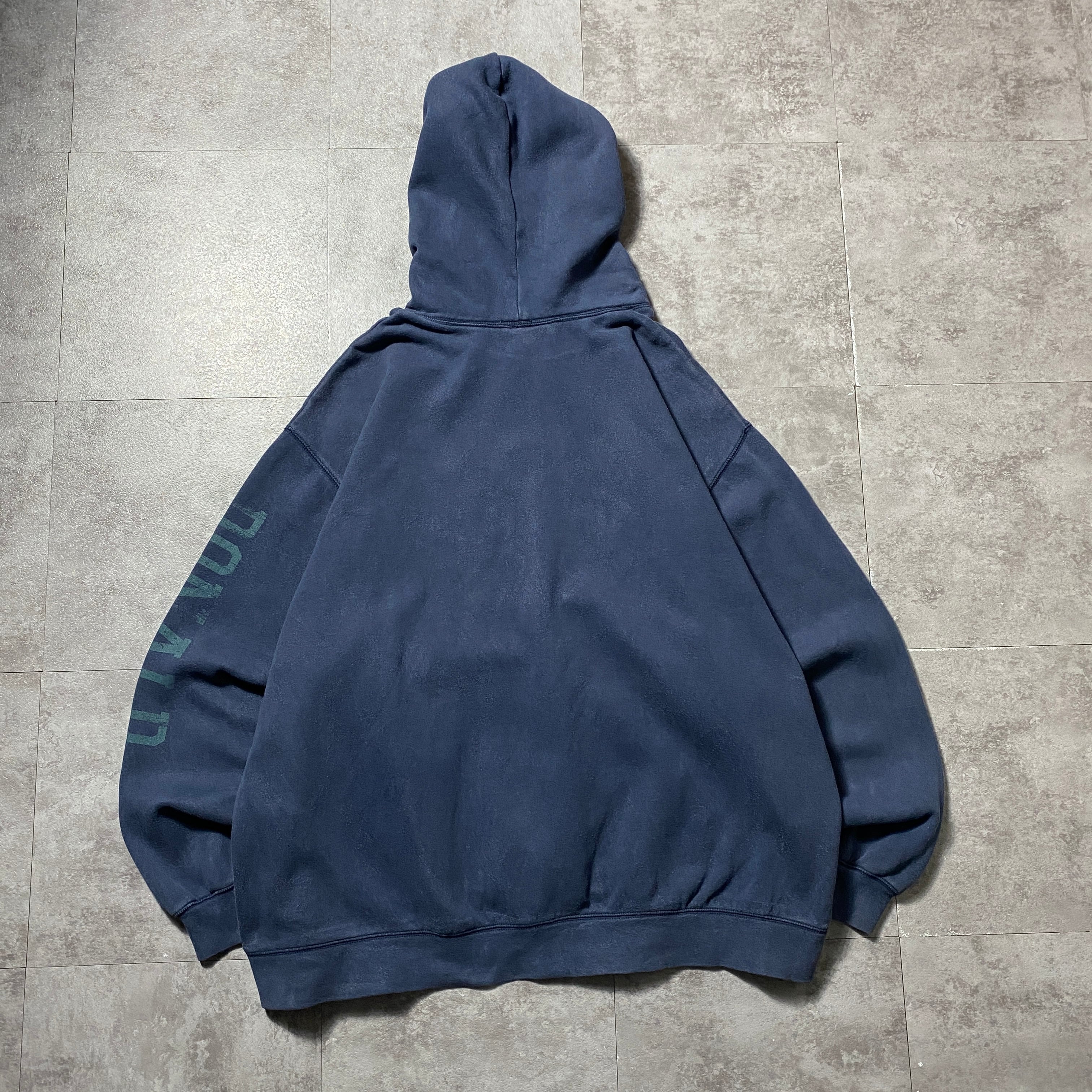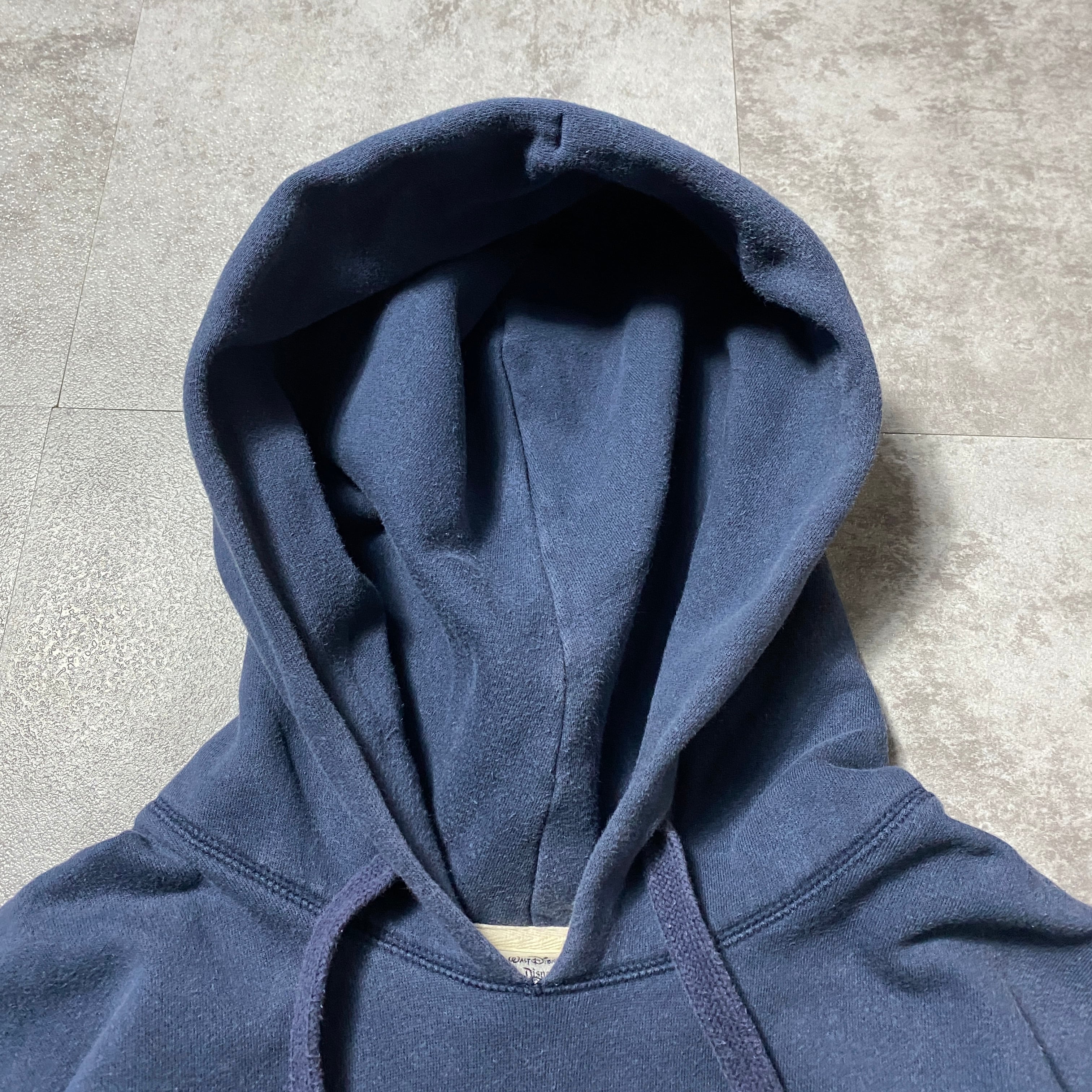 【Size:XL】00's Disney ディズニー ドナルドダック ワッペンロゴ ネイビー スウェット パーカー フーディ