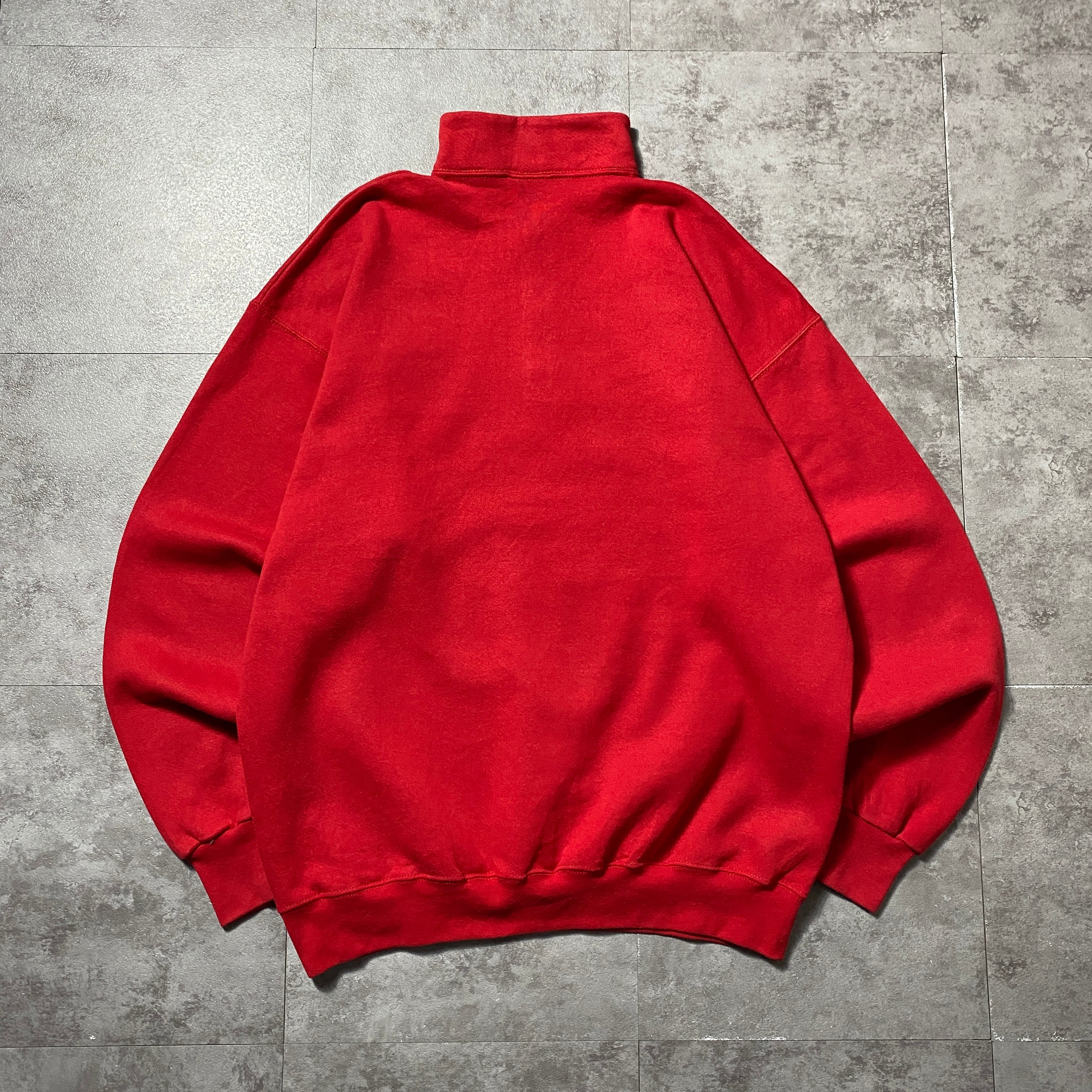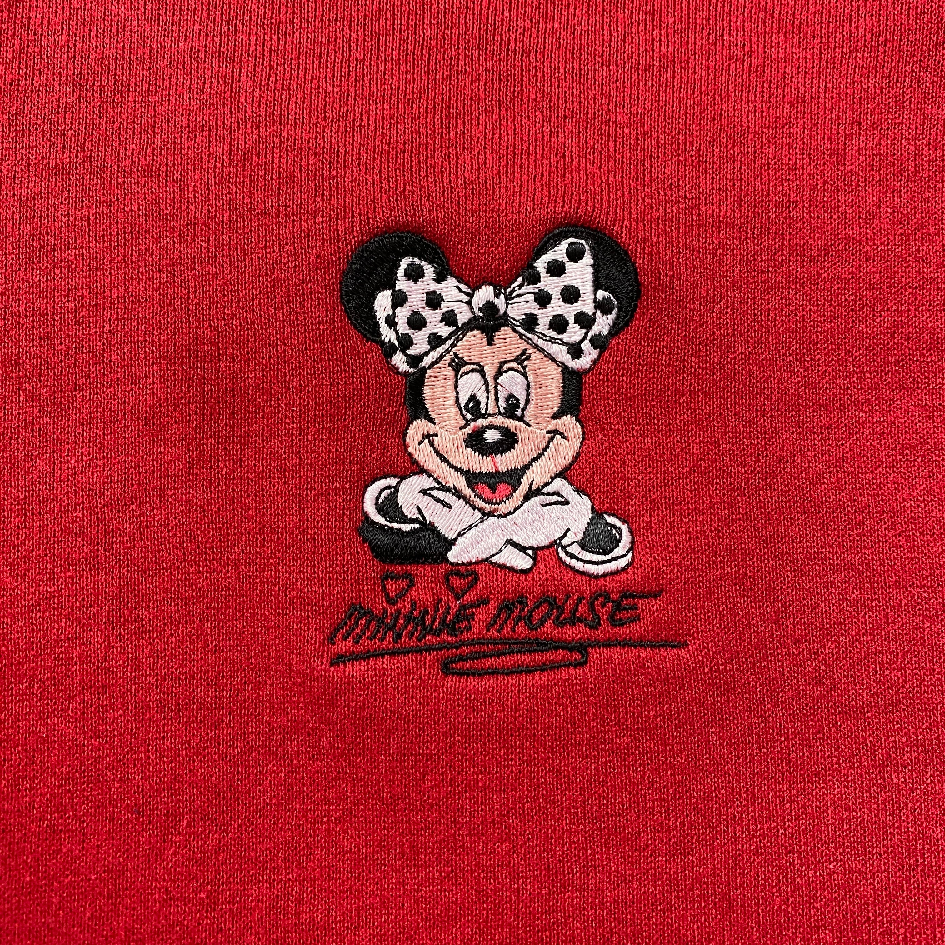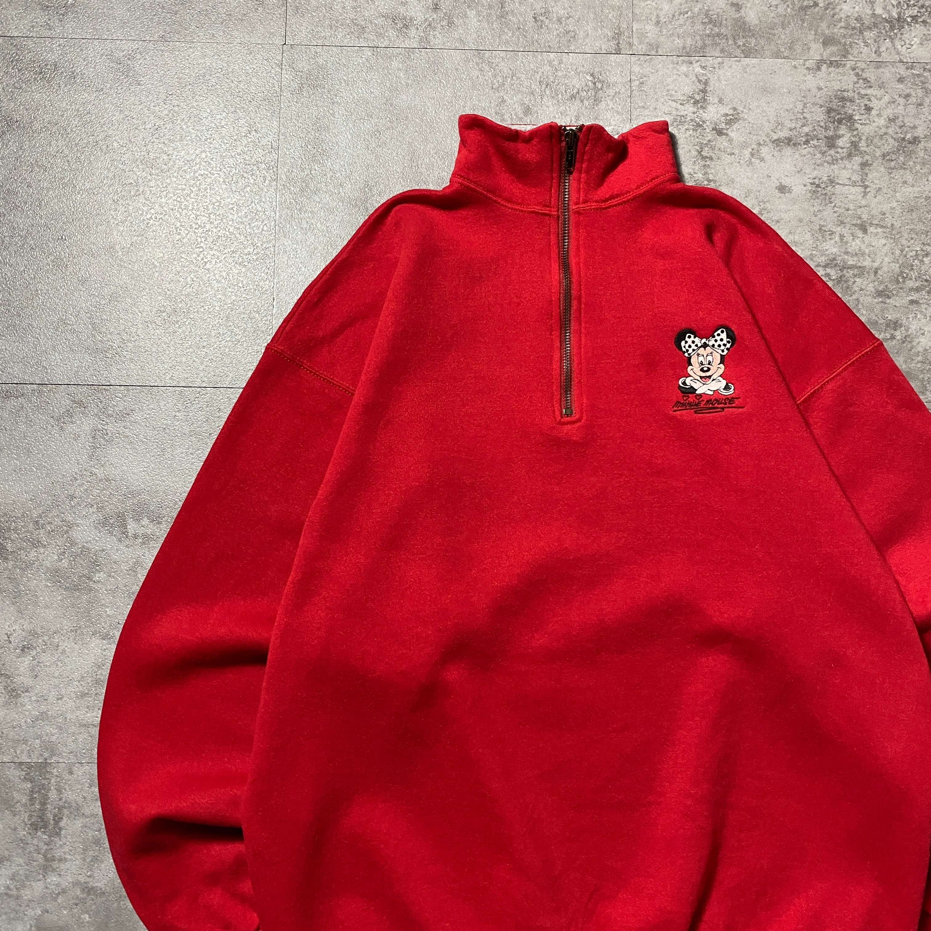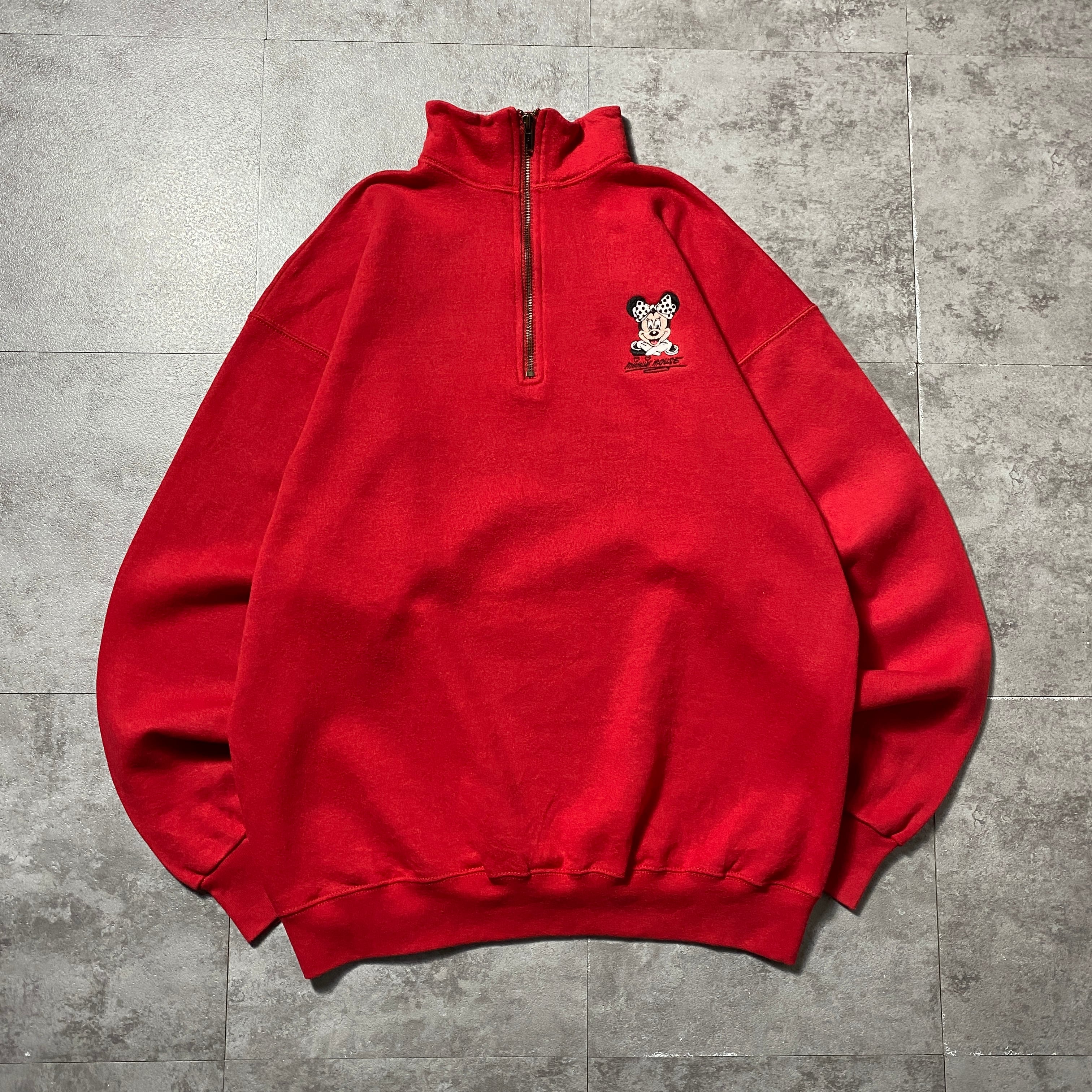 【USA製】90's Old Disney オールドディズニー ハーフジップ ミニー 刺繍ワンポイント XLサイズ レッド 赤 スウェット トレーナー