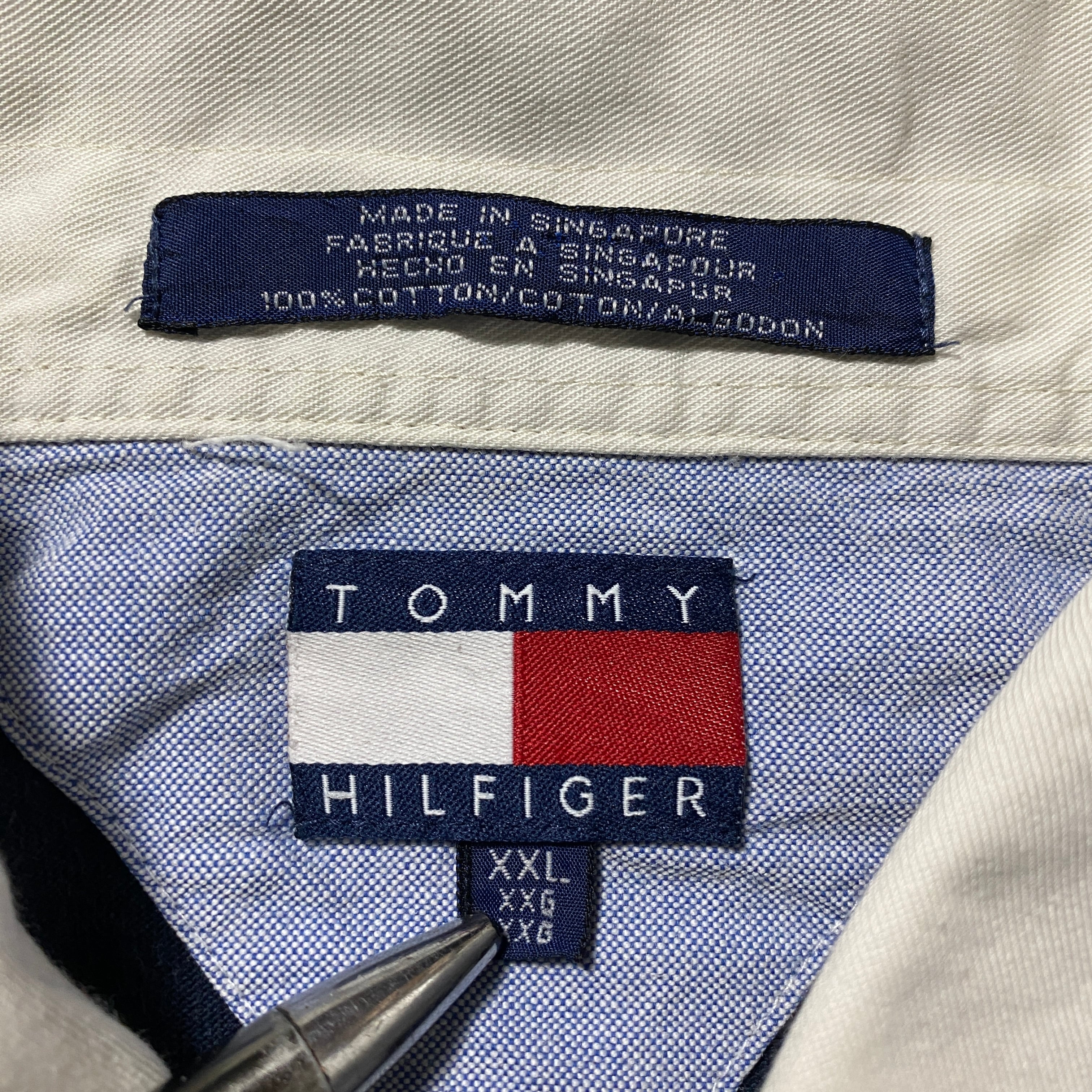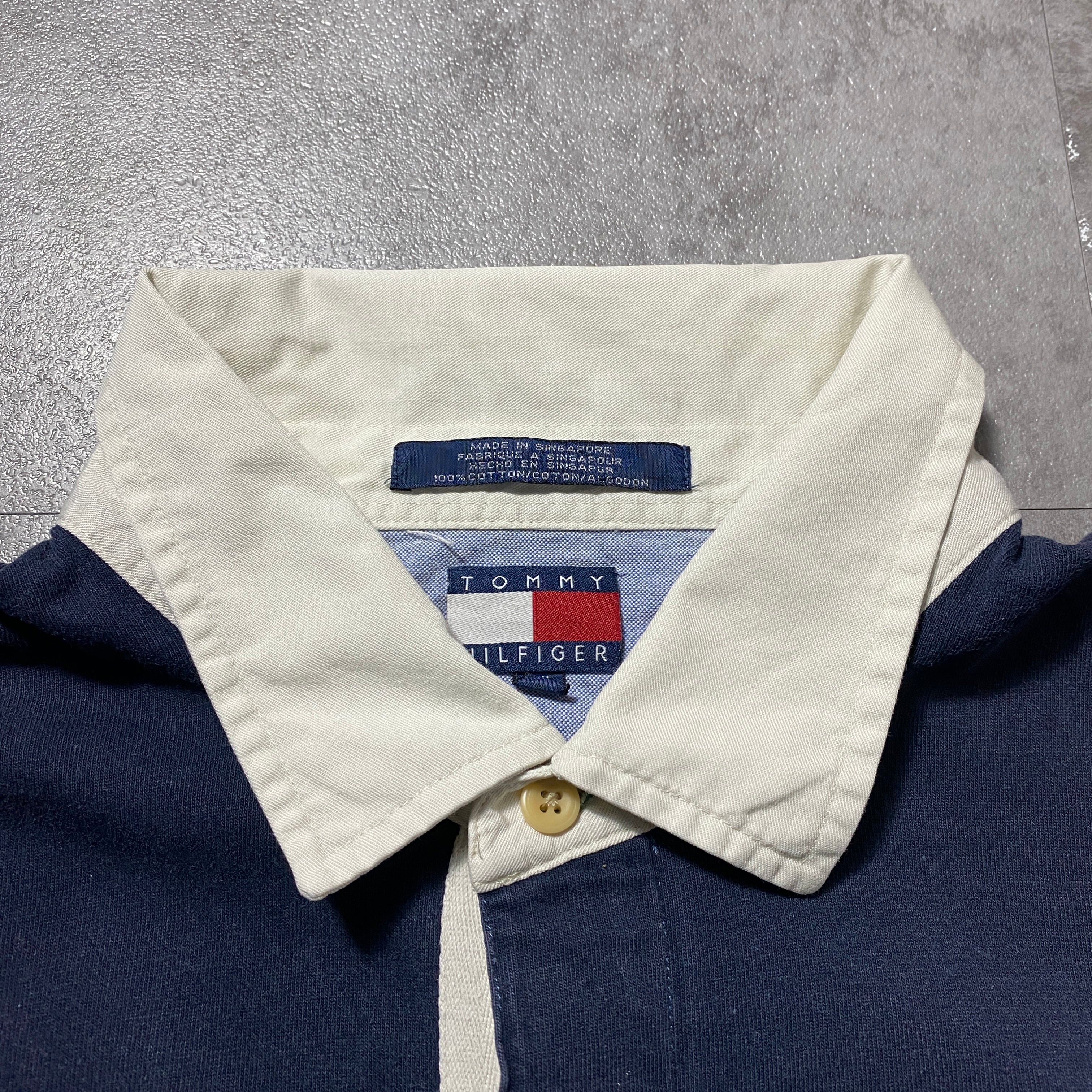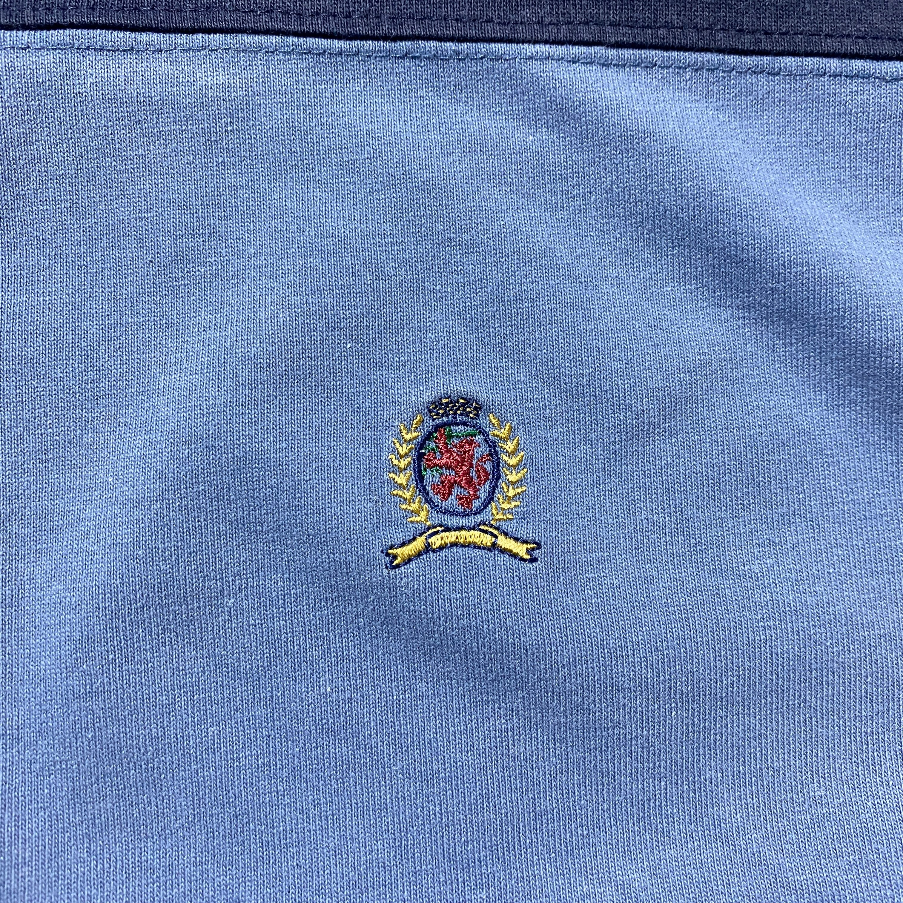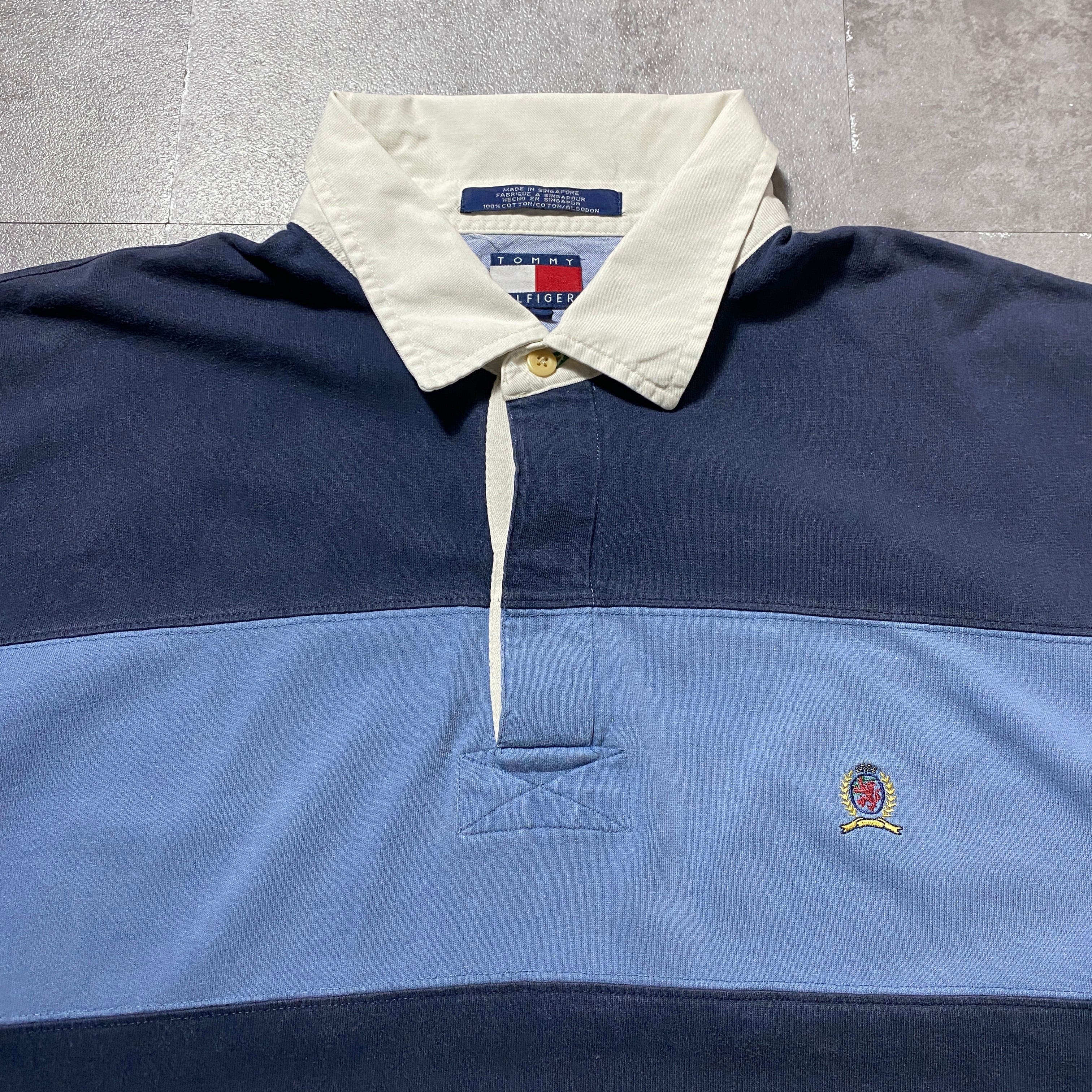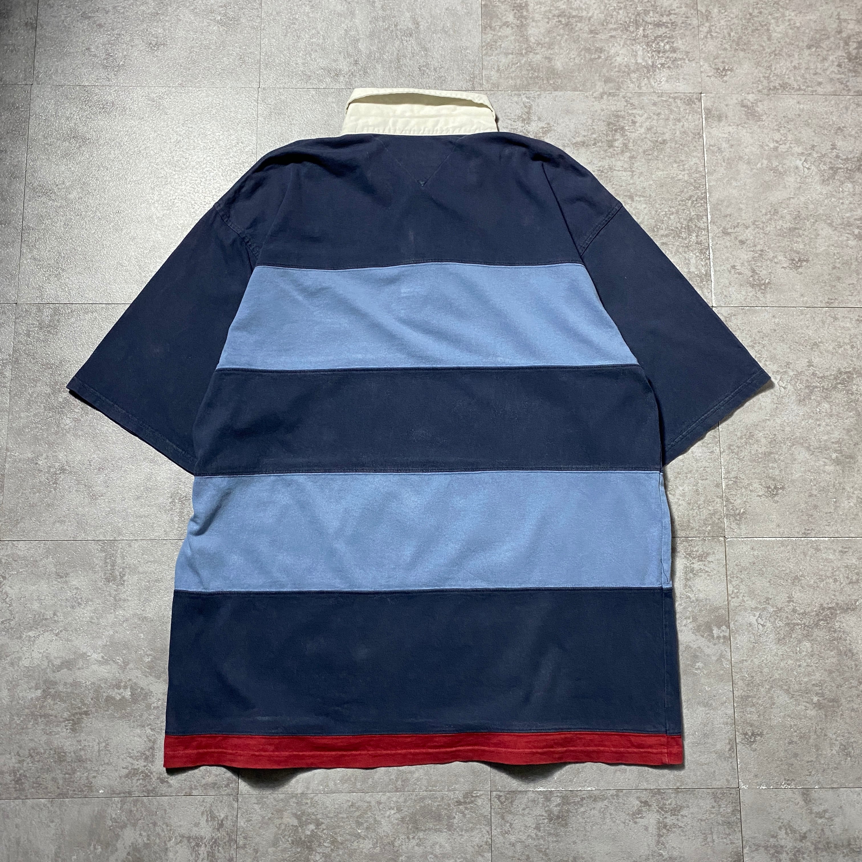 90's Tommy Hilfiger トミーヒルフィガー 刺繍ロゴ ボーダー XXLサイズ ハーフスリーブ 半袖 ラガーシャツ Tシャツ ポロシャツ