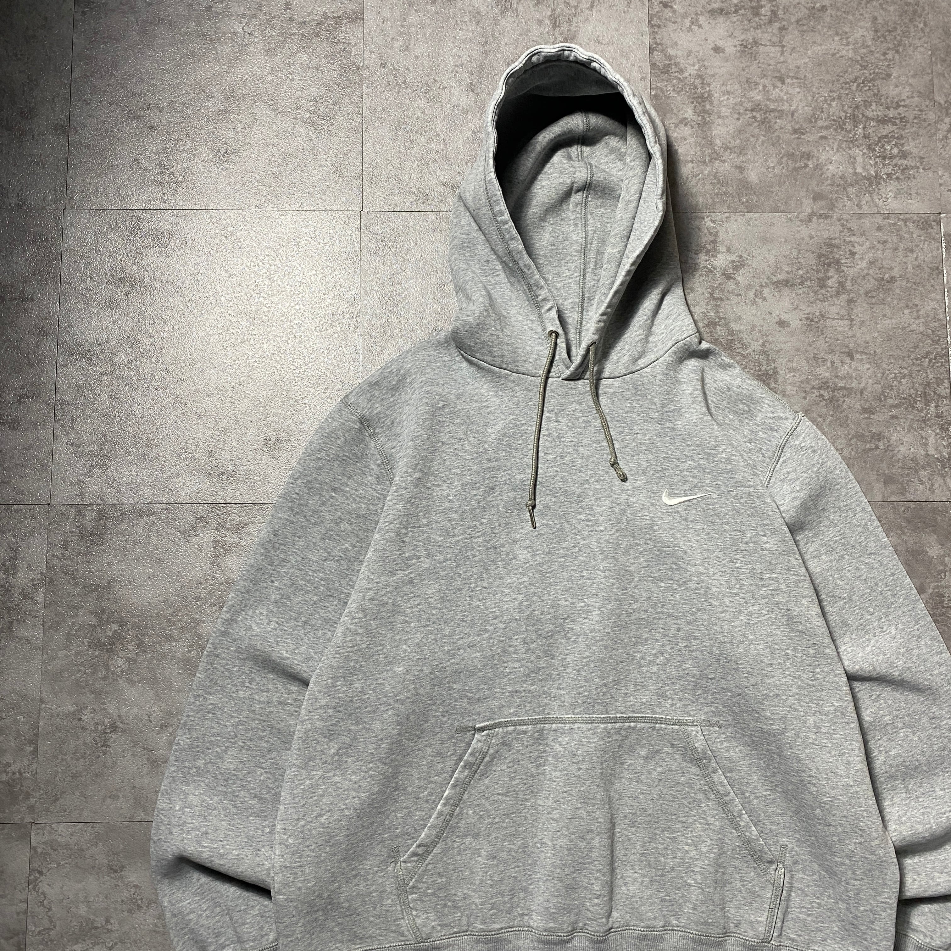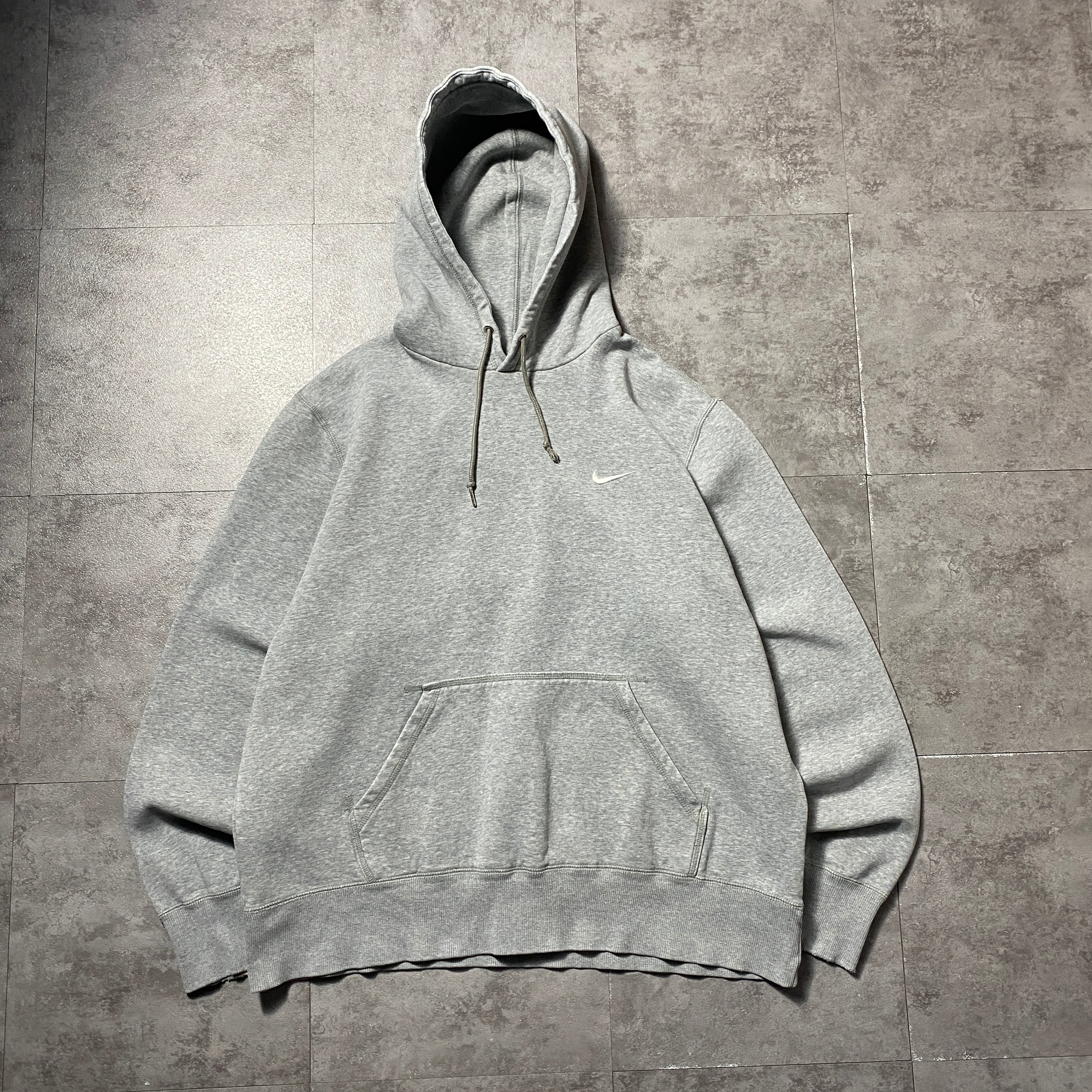 【Size:XL】00's NIKE ナイキ スウォッシュ 刺繍ワンポイント ダメージ グレー スウェット パーカー フーディ