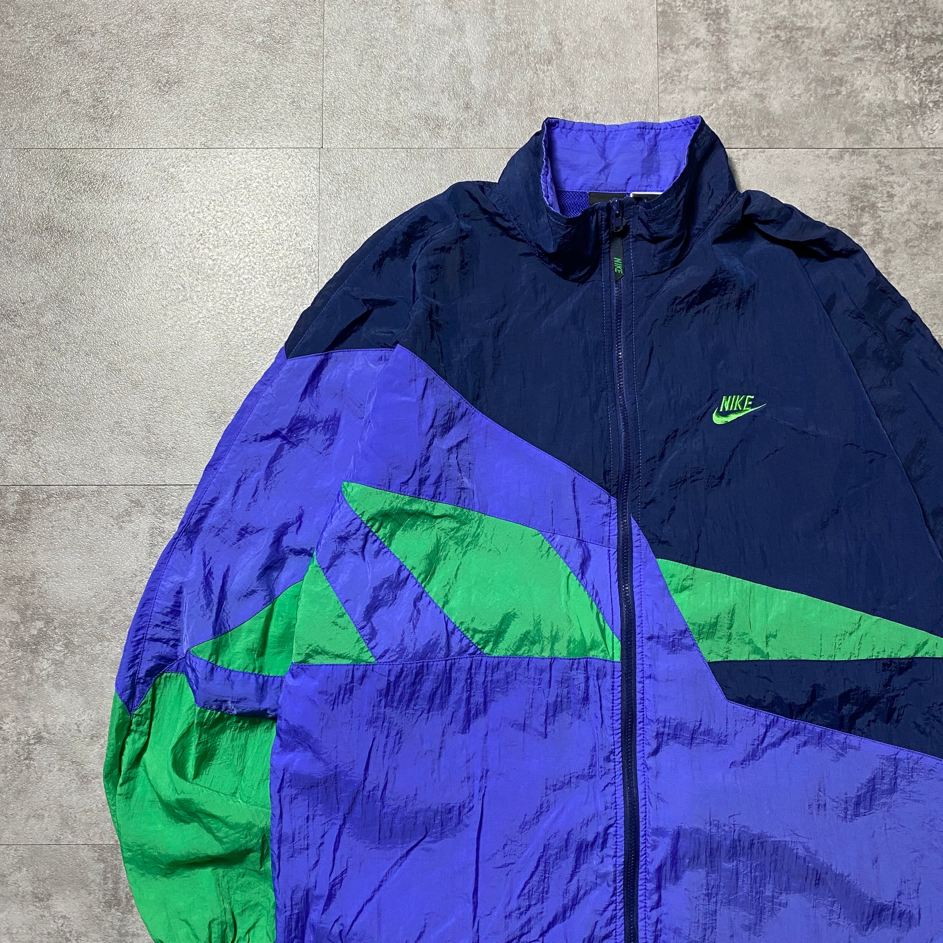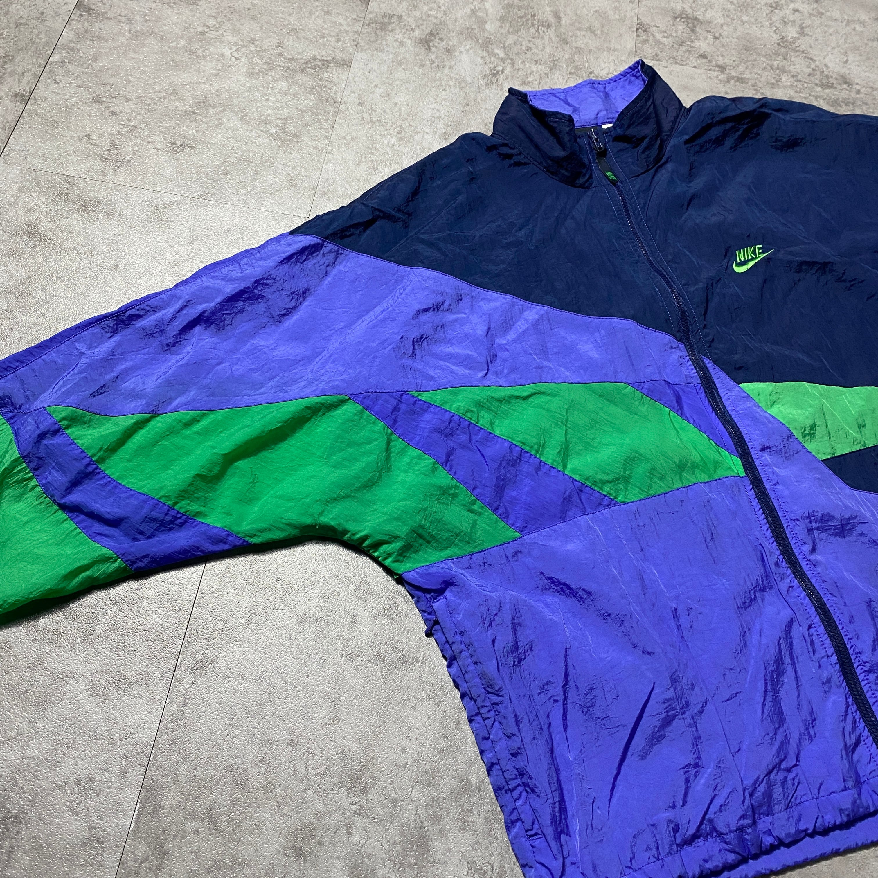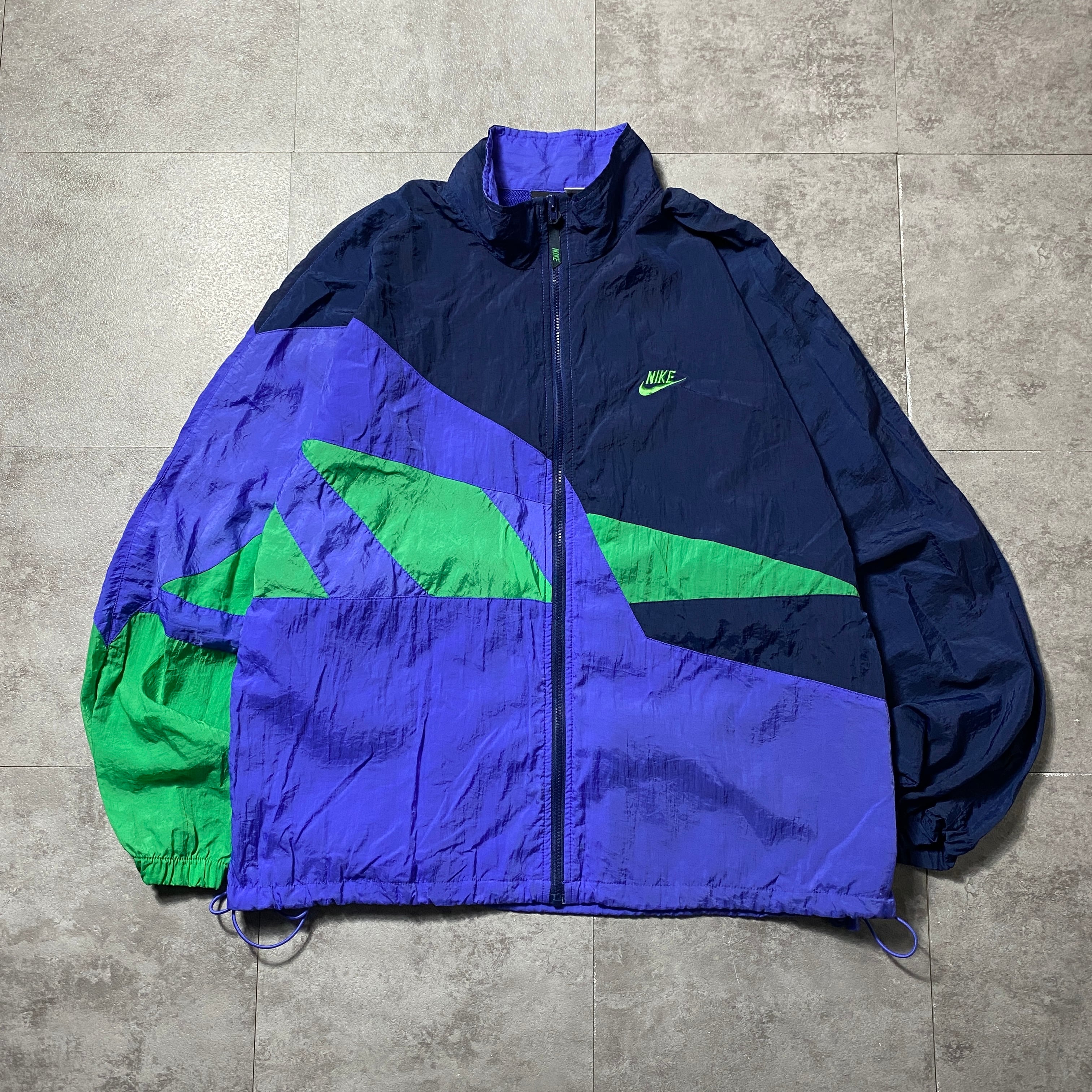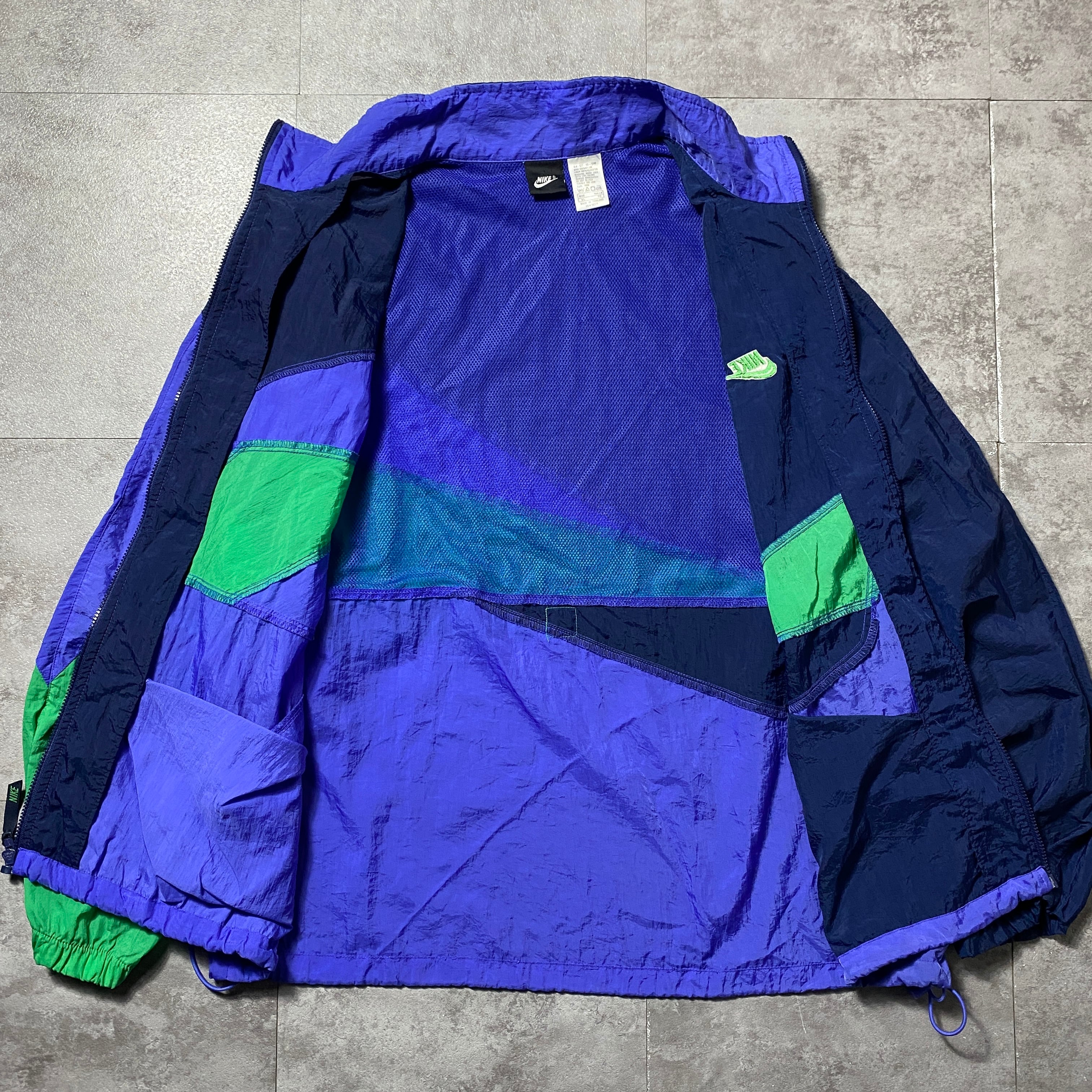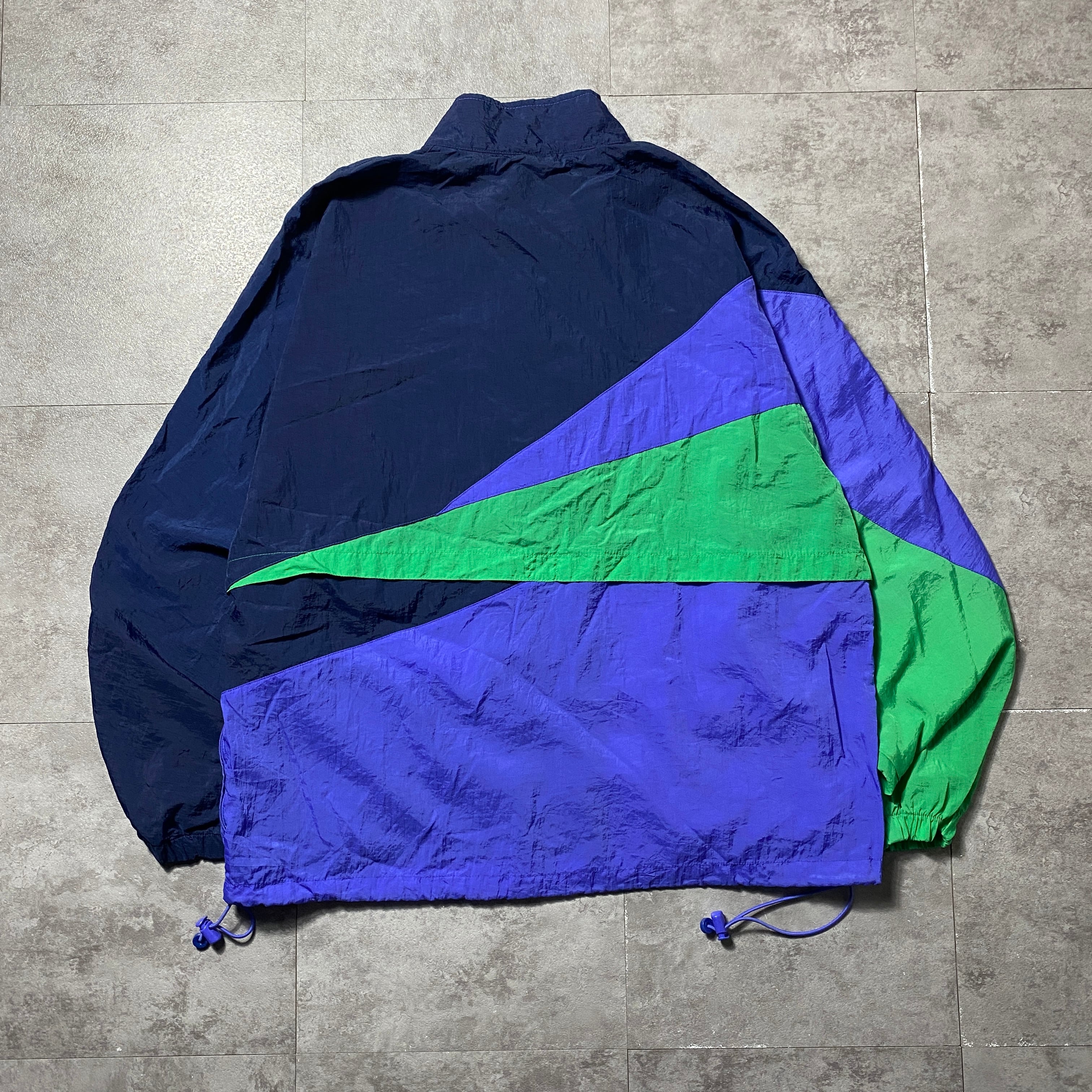 【Size:XL】90's NIKE ナイキ スウォッシュ 刺繍ワンポイント クレイジーパターン ナイロンジャケット