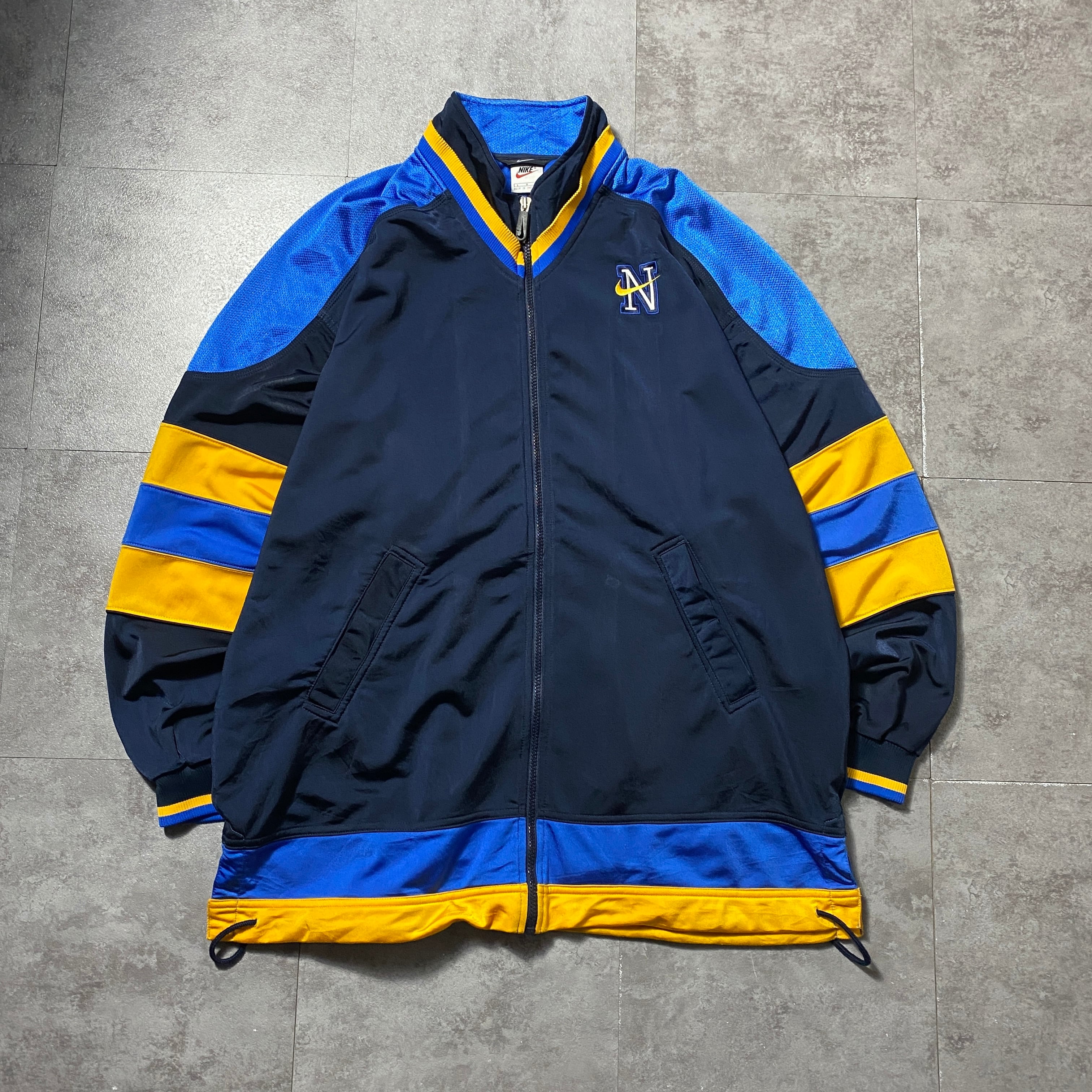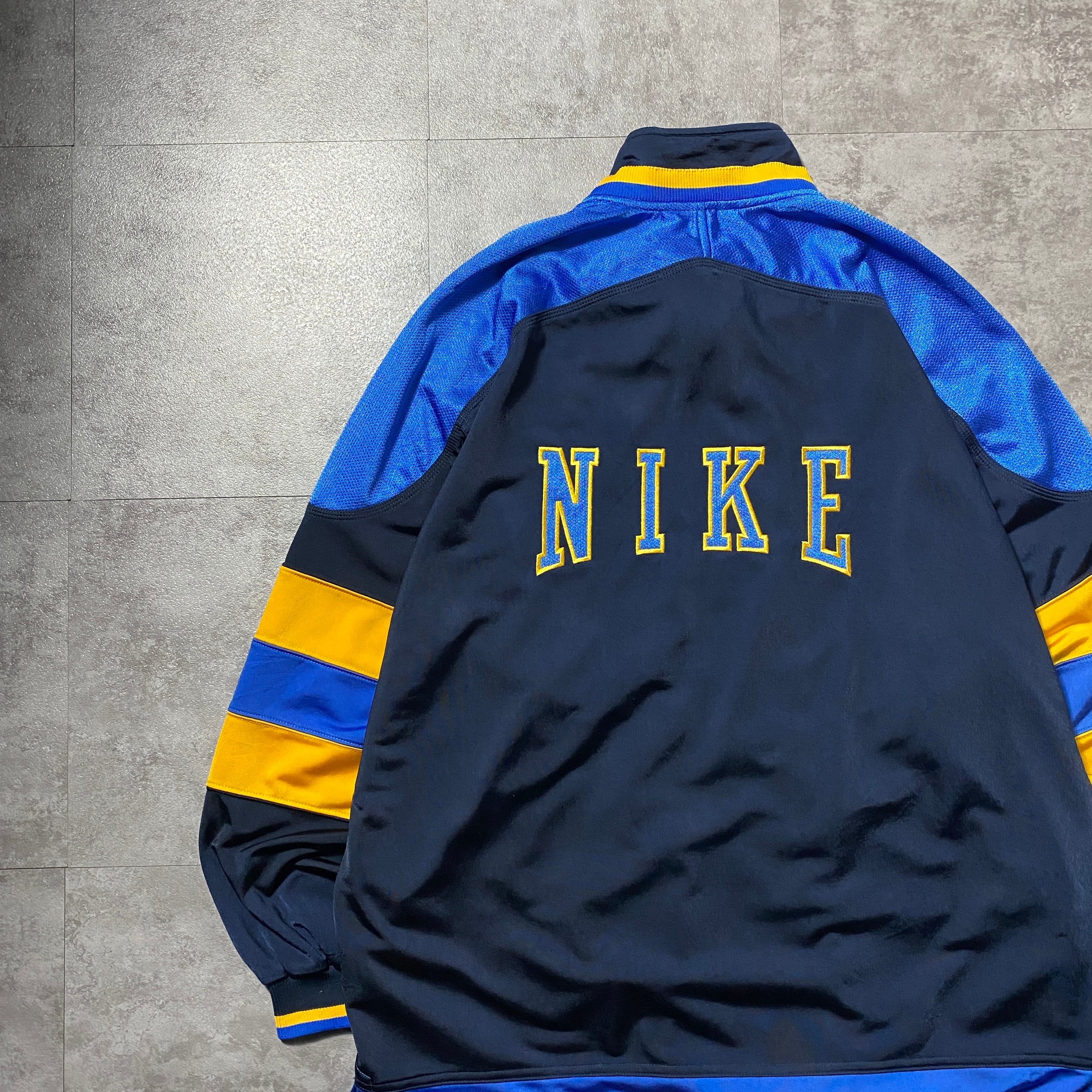90's NIKE ナイキ スウォッシュ 刺繍ワンポイント バック刺繍 クレイジーパターン ジャージ トラックジャケット