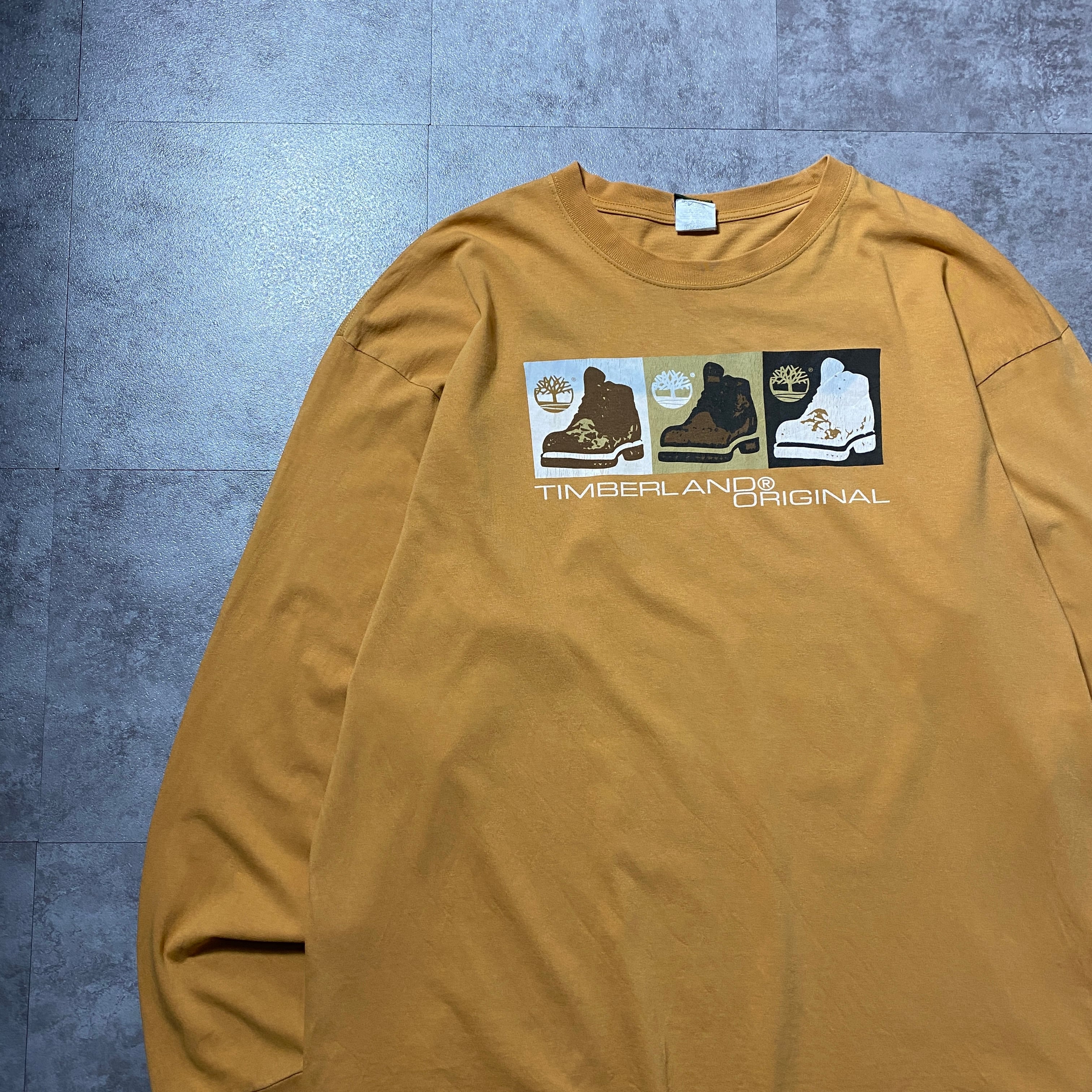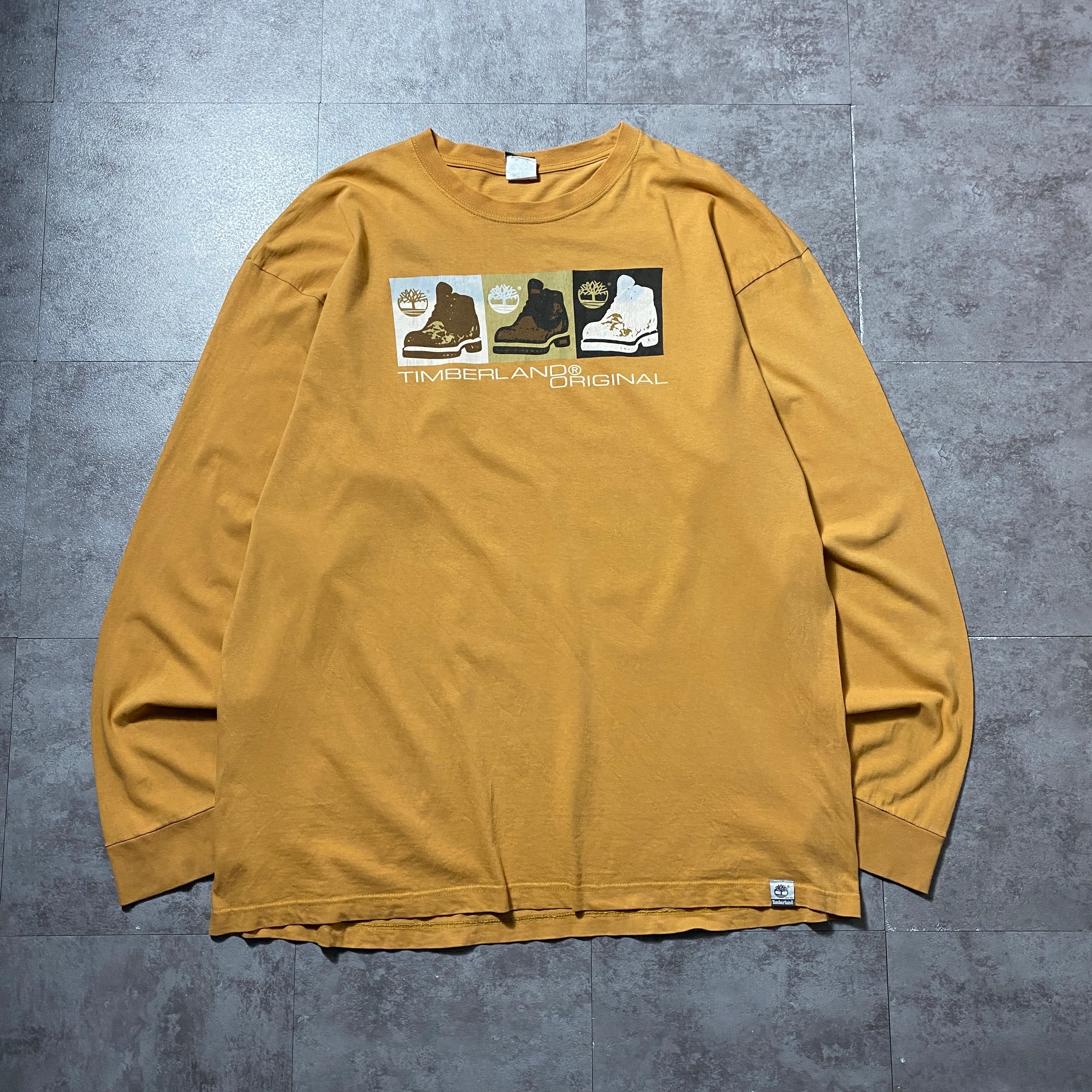 【Size:2XL】90's Timberland ティンバーランド ブーツプリント ブラウン Tシャツ ロンT