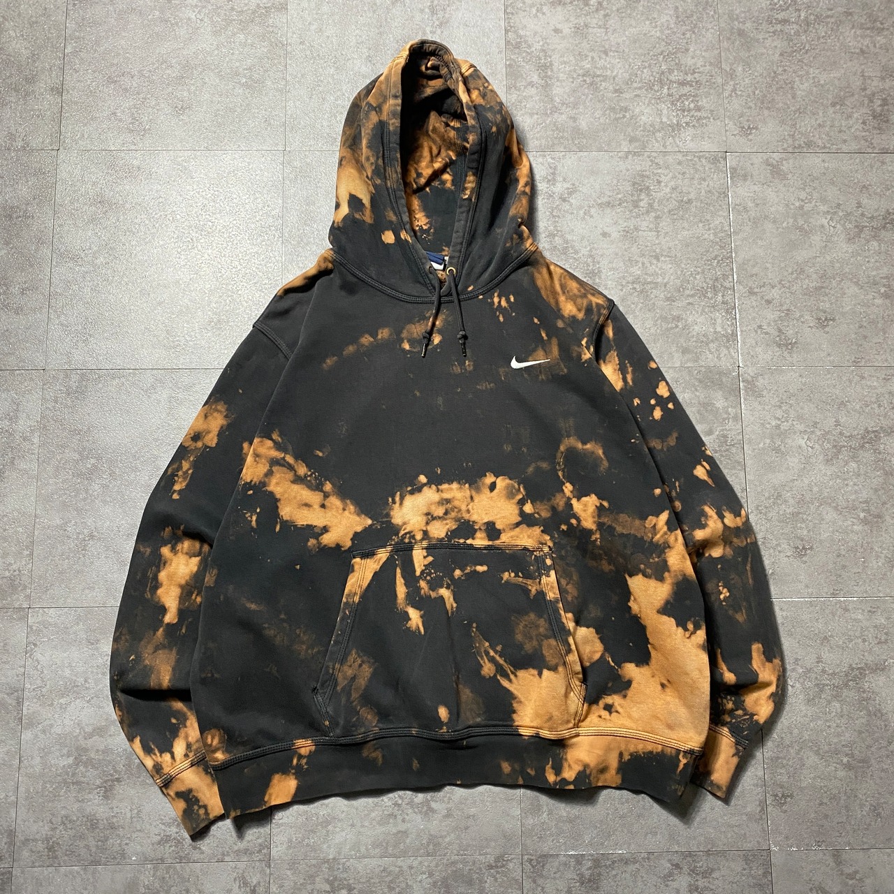 NIKE ナイキ スウォッシュ 刺繍ワンポイント ブリーチ加工 XXLサイズ スウェット パーカー フーディ