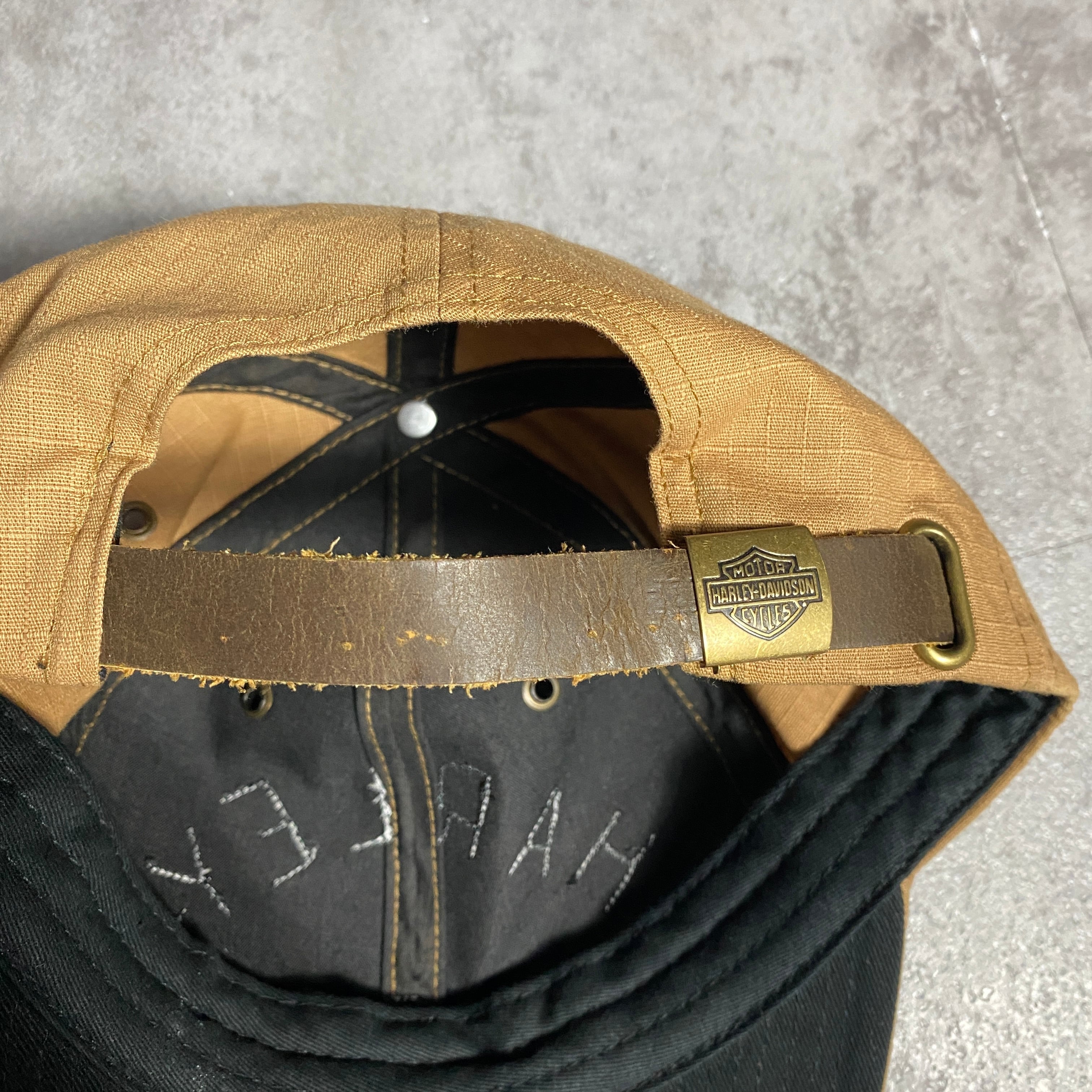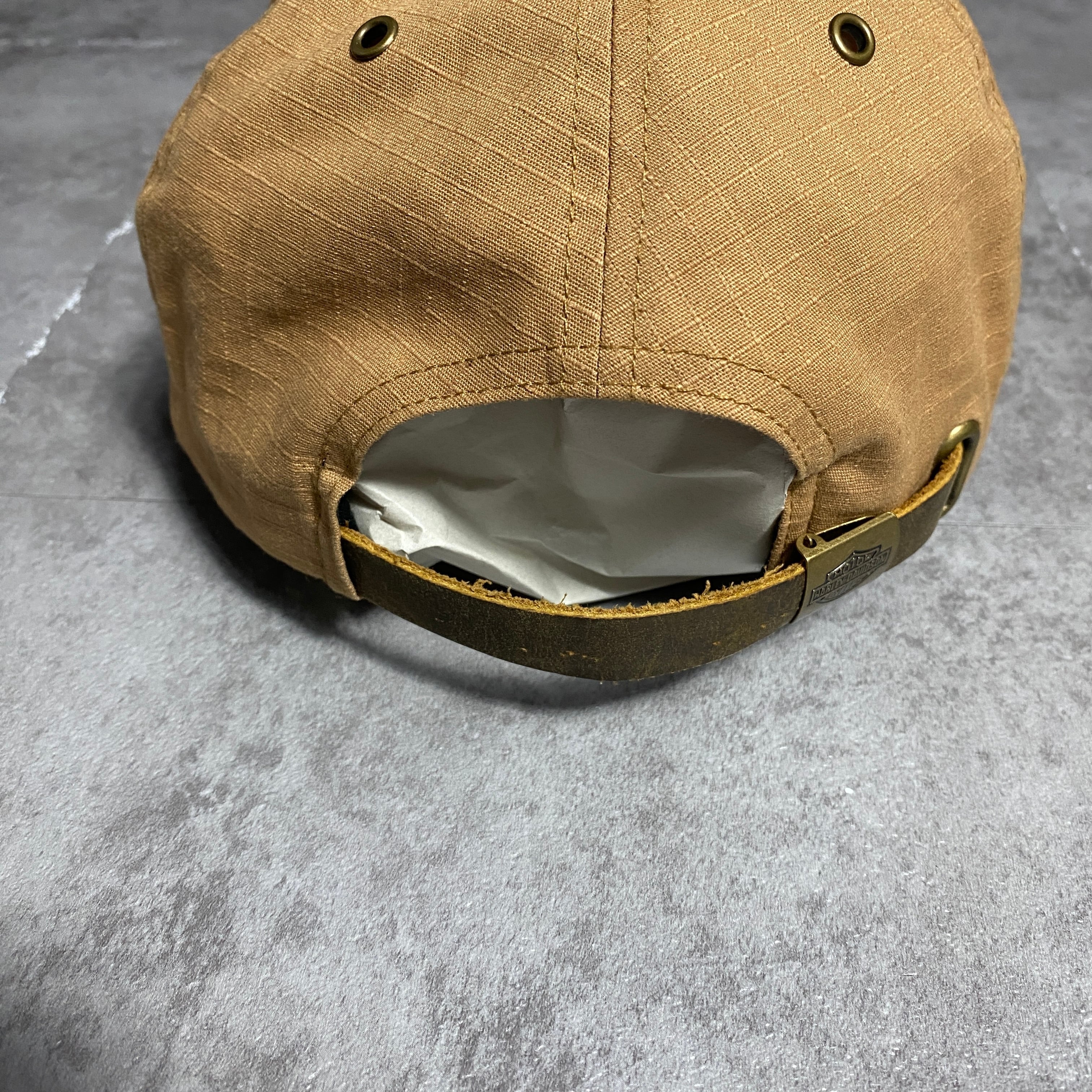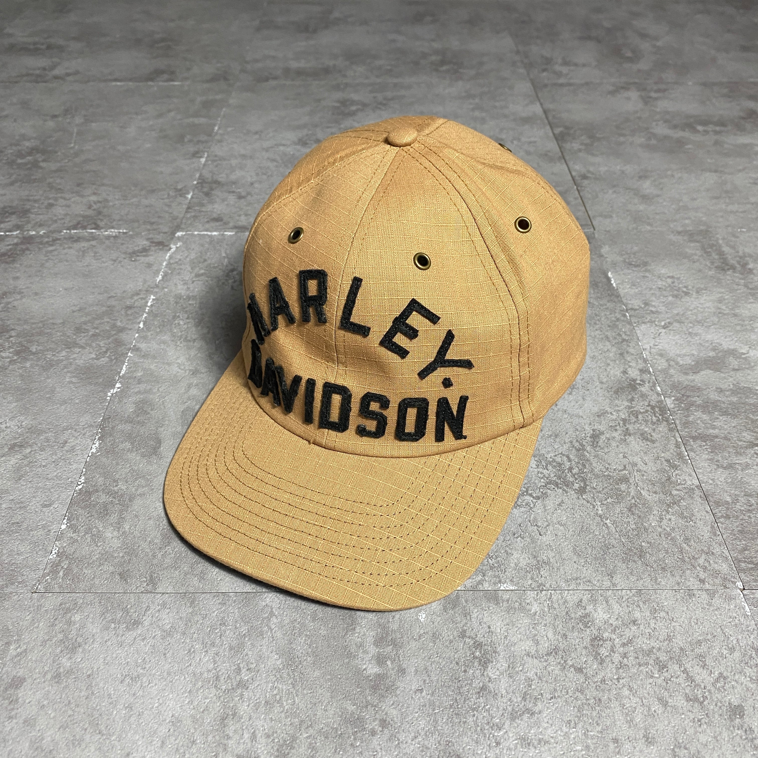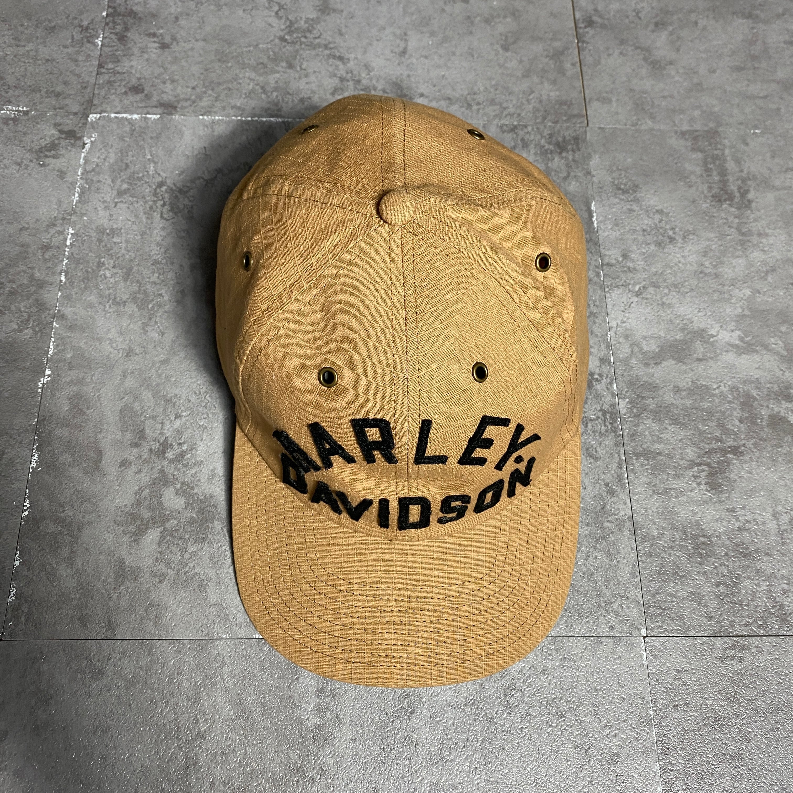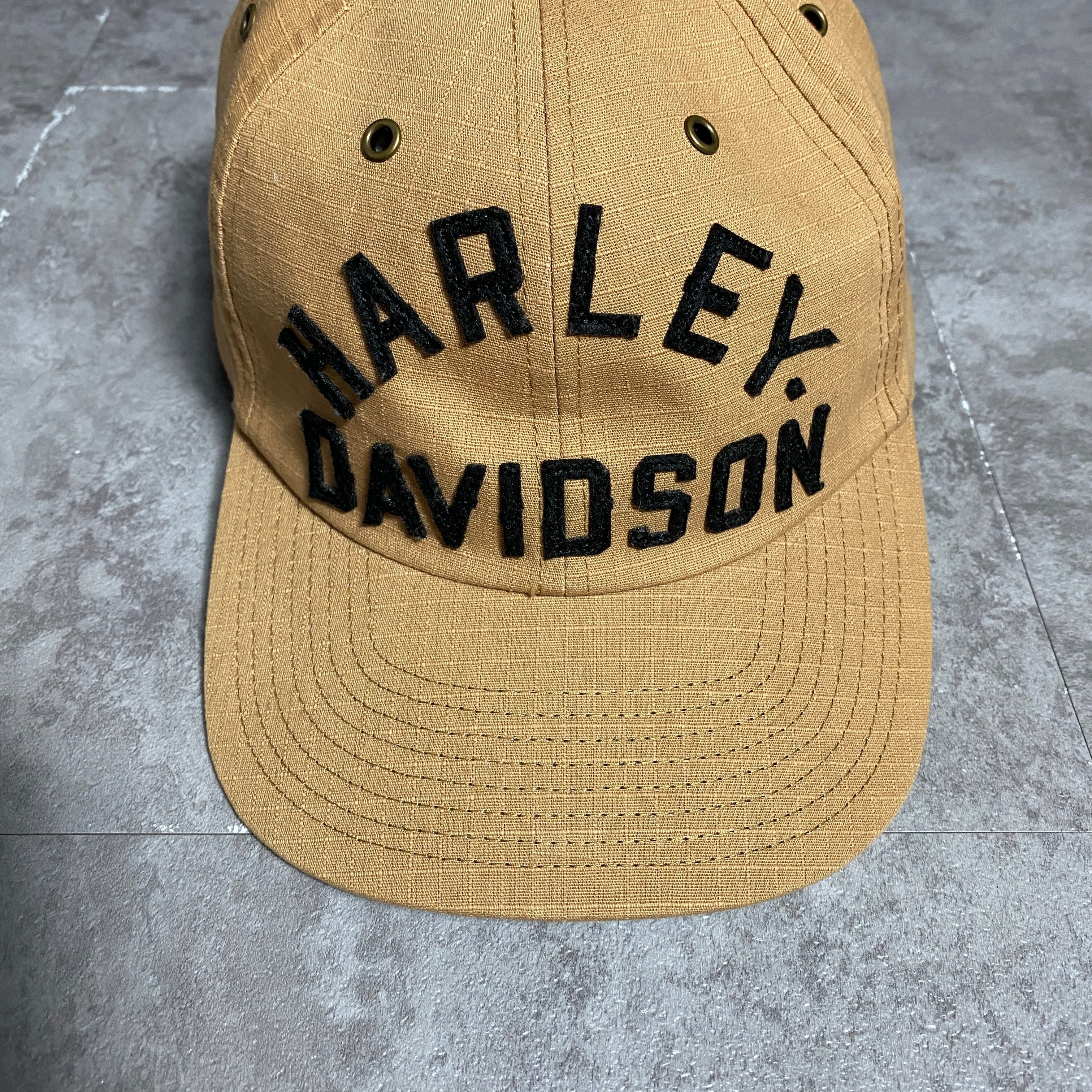 Harley-Davidson ハーレーダビッドソン フェルトロゴ リップストップ ベージュ ベルトバック キャップ