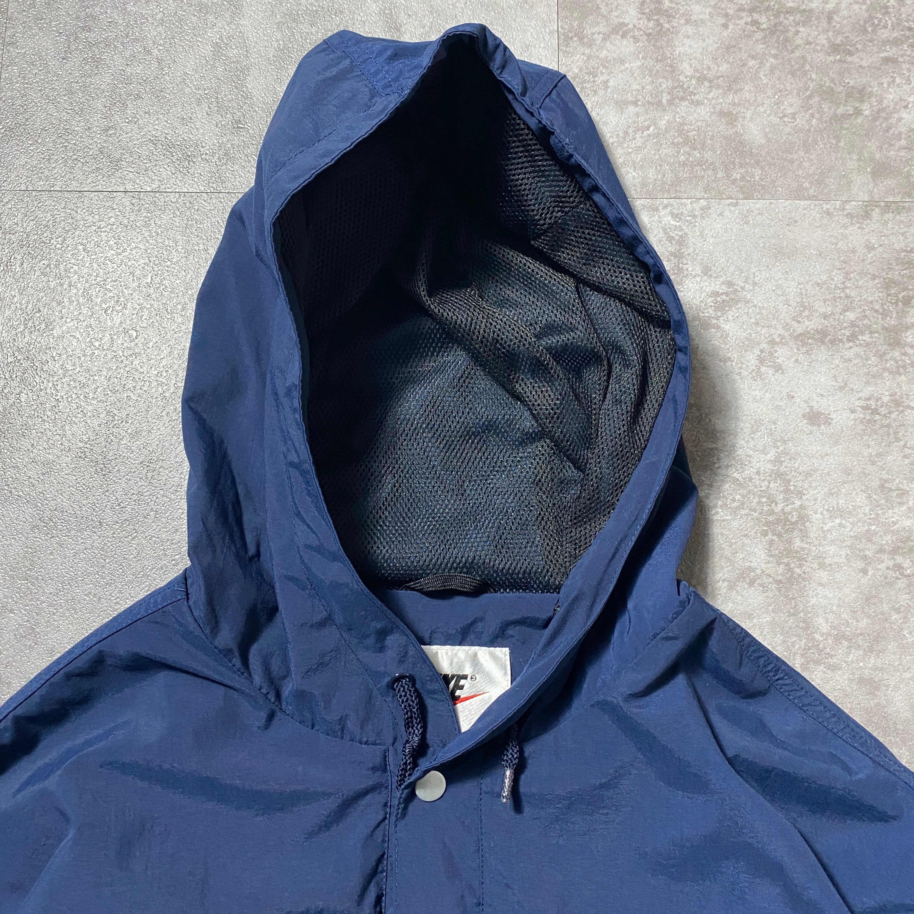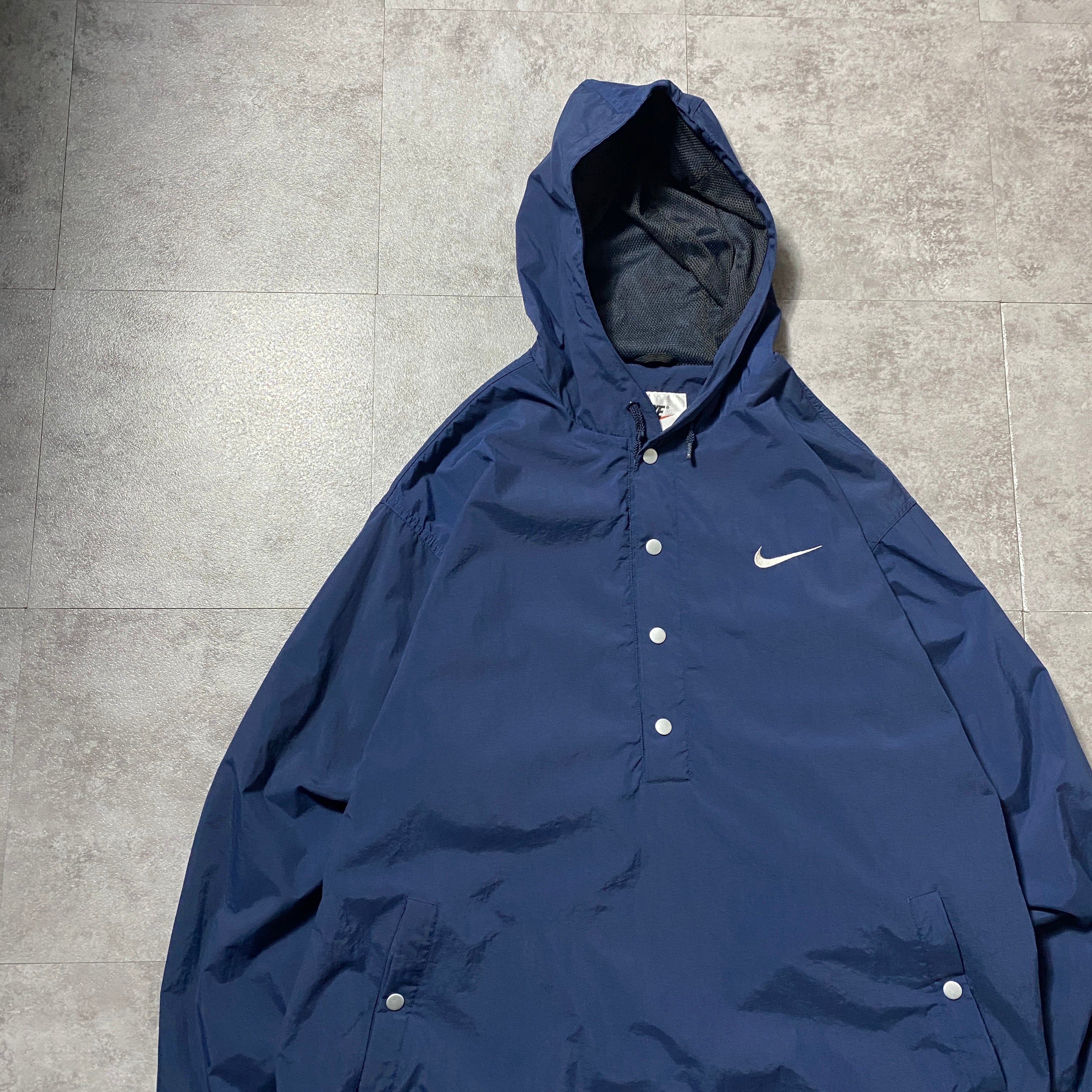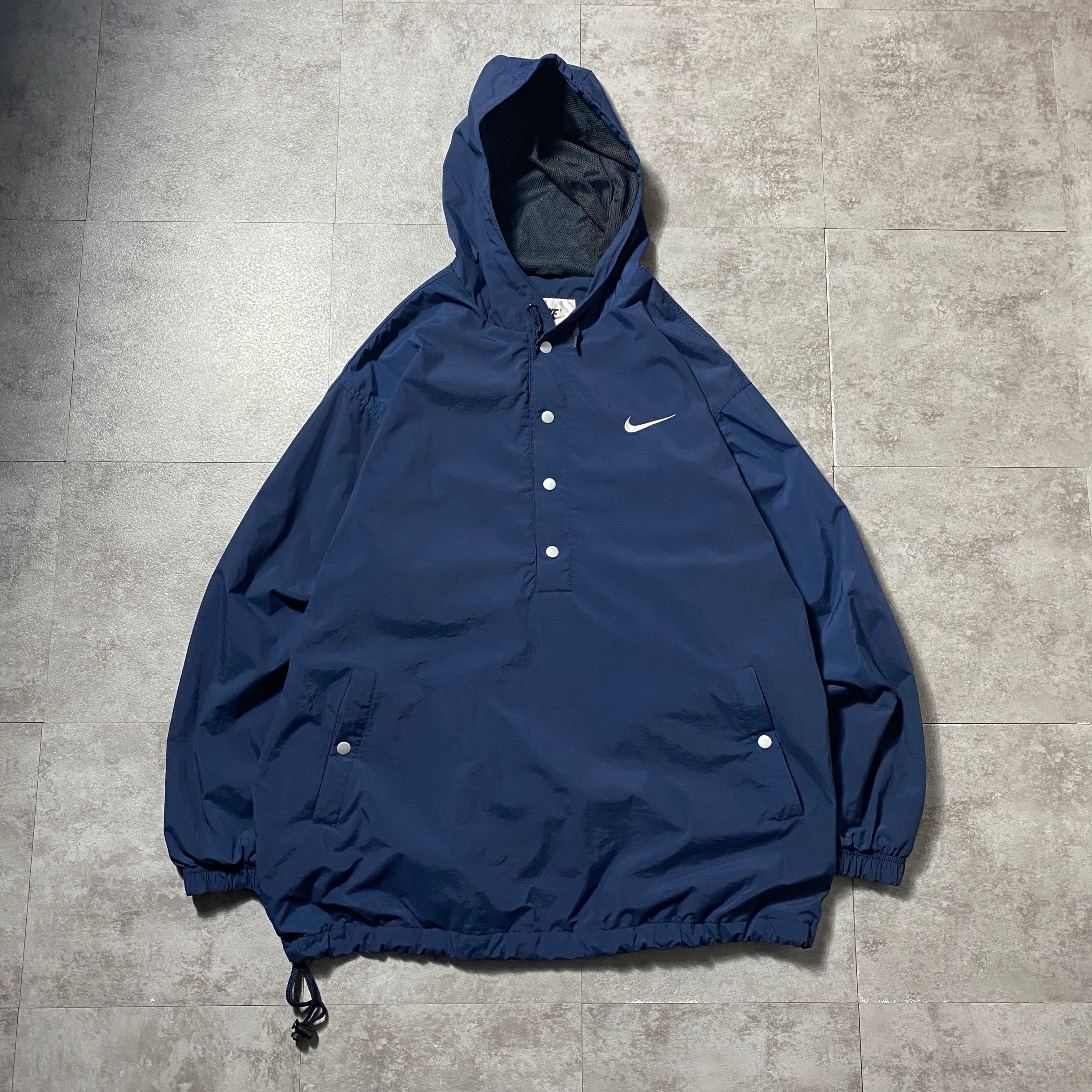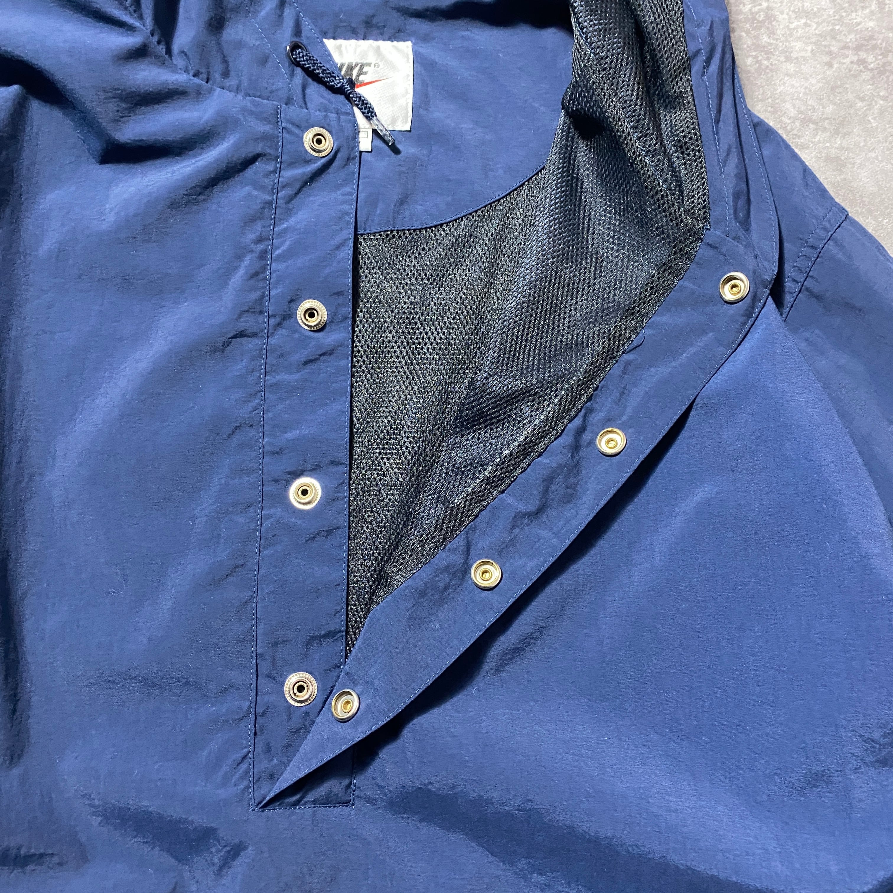 90's NIKE ナイキ スウォッシュ 刺繍ワンポイント ハーフボタン ネイビー ナイロン アノラックパーカー