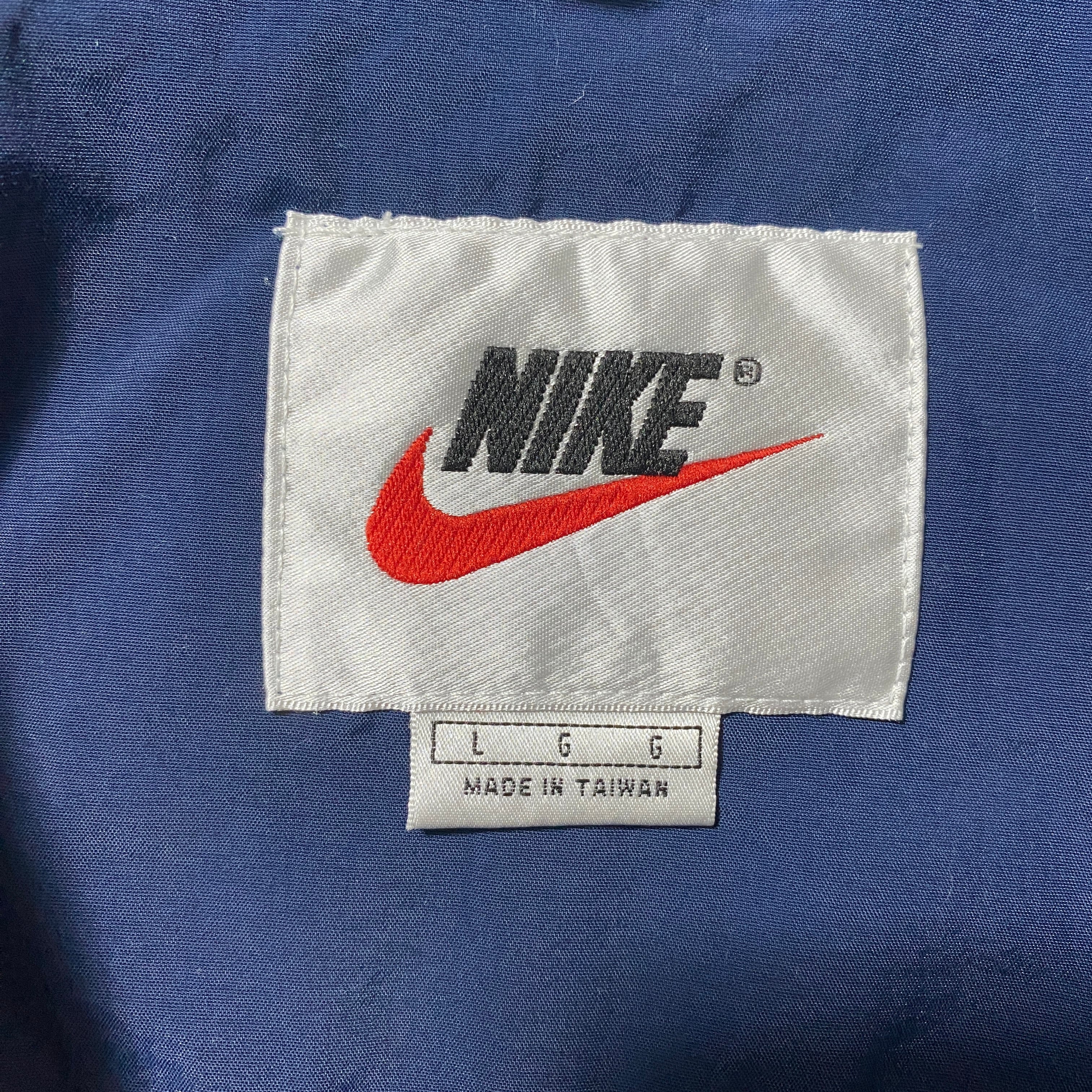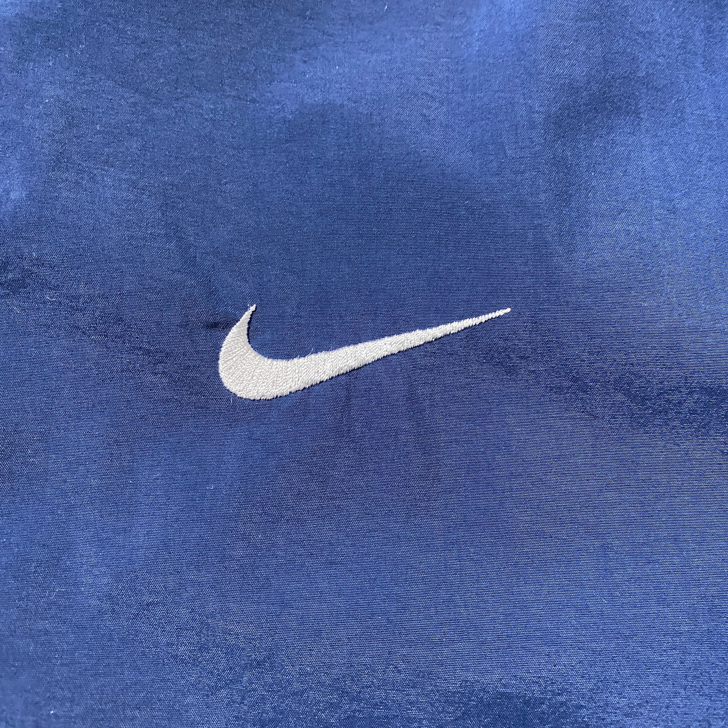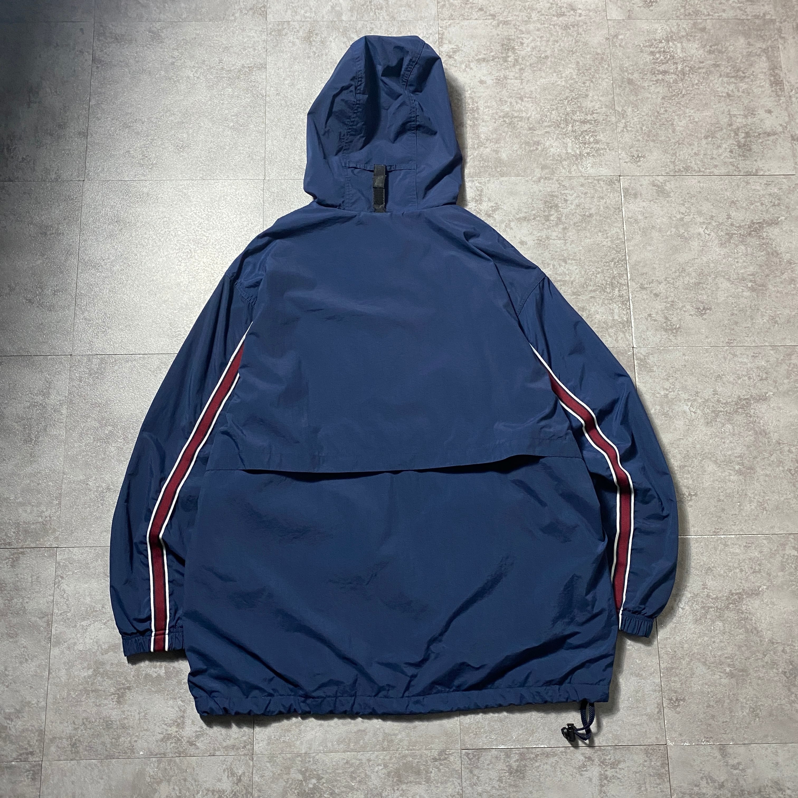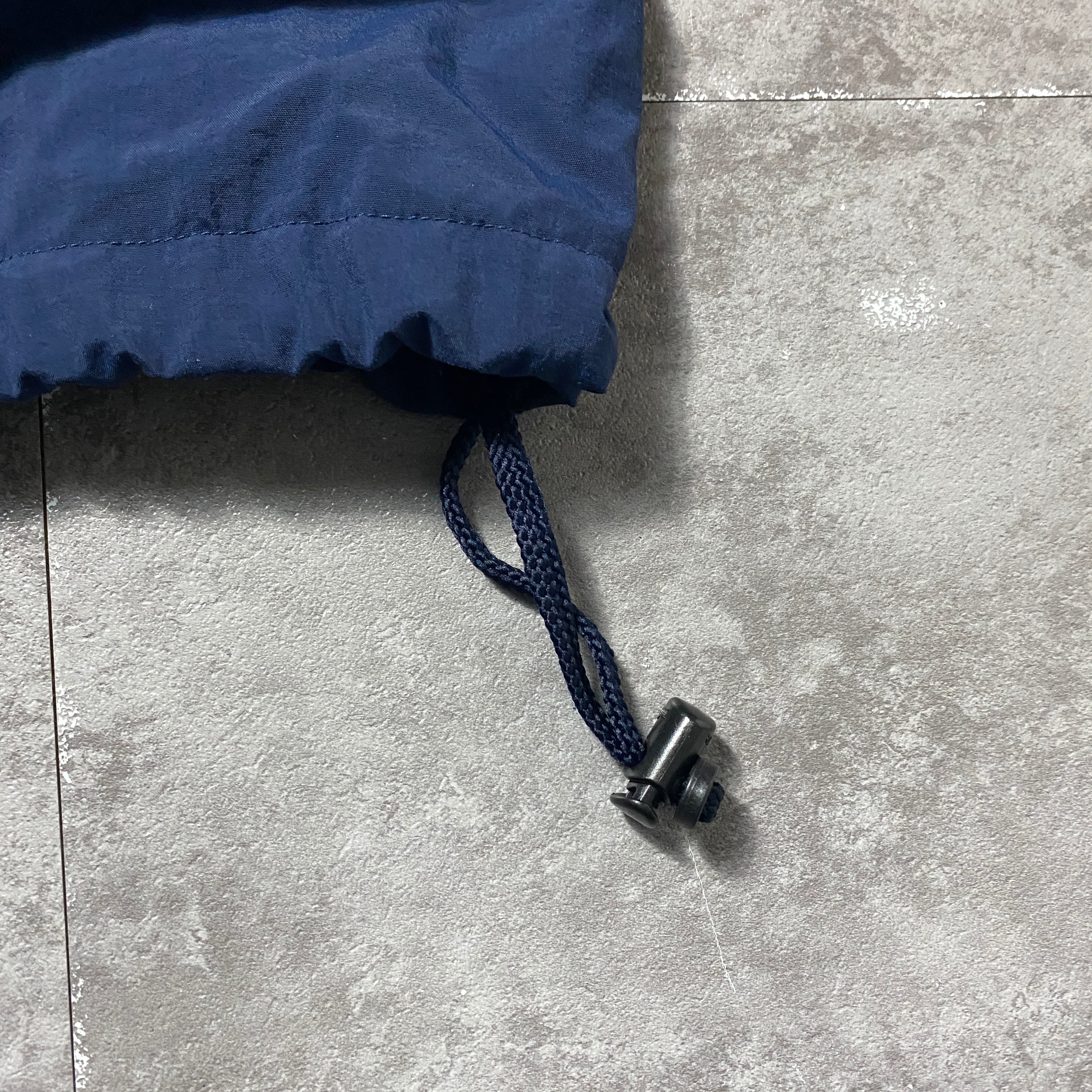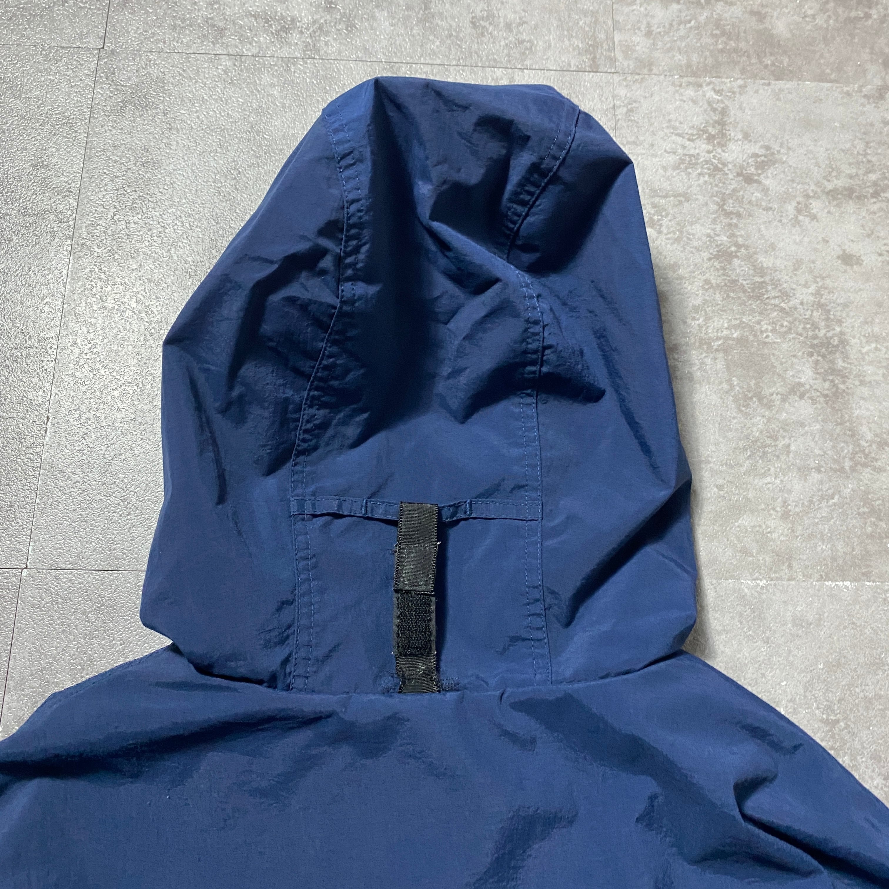 90's NIKE ナイキ スウォッシュ 刺繍ワンポイント ハーフボタン ネイビー ナイロン アノラックパーカー