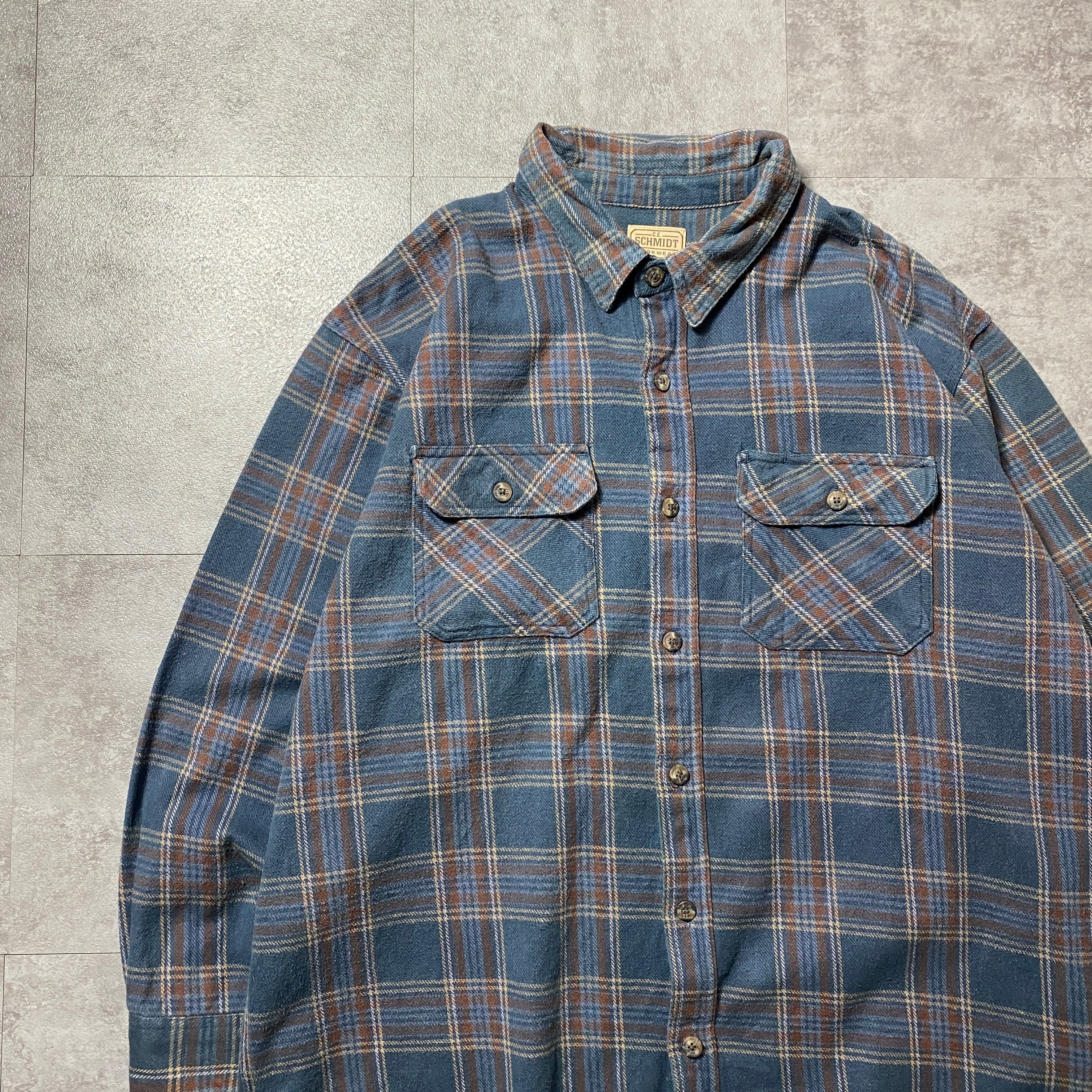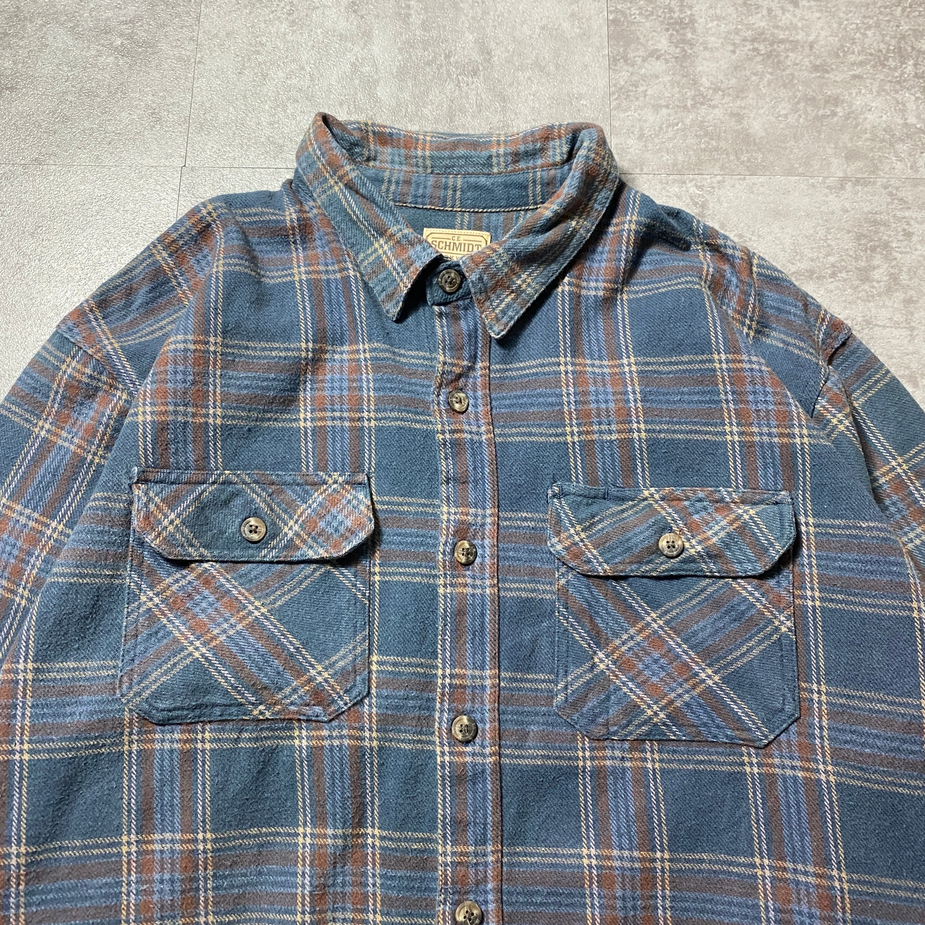 80's-90's C.E.SCHMIDT ダブルポケット タータンチェック総柄 2XLサイズ ヘビーオンス フランネルシャツ