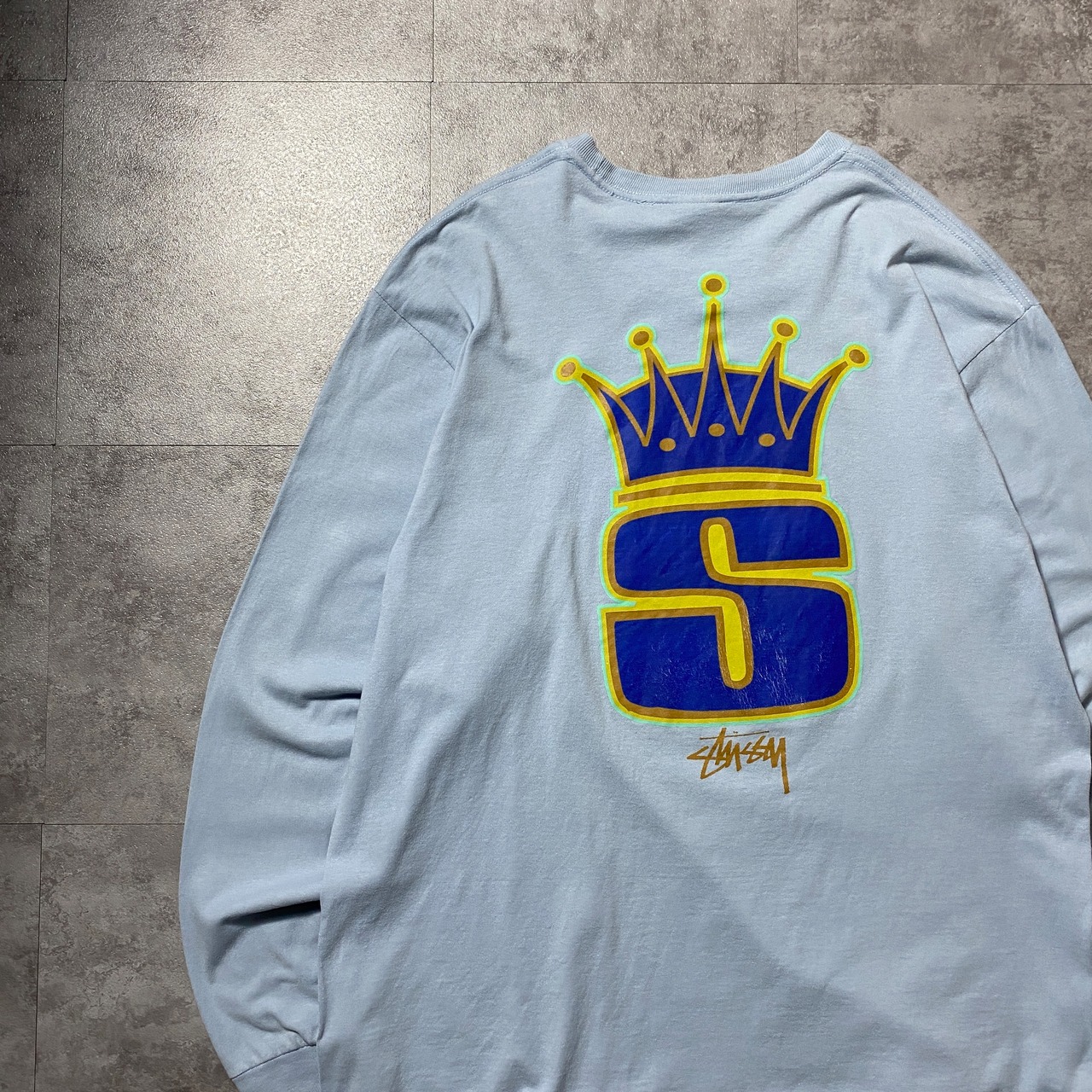 【Size:XL】stussy ステューシー Sロゴ クラウン バックプリント Tシャツ ロンT