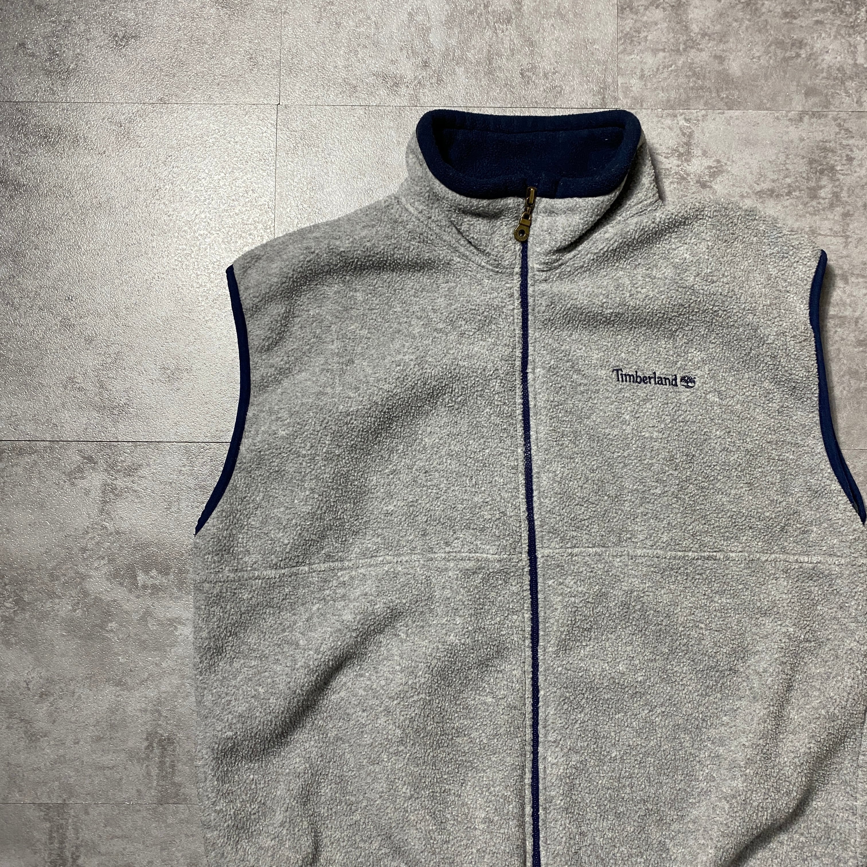 90's Timberland ティンバーランド 刺繍ワンポイント グレー フリースベスト