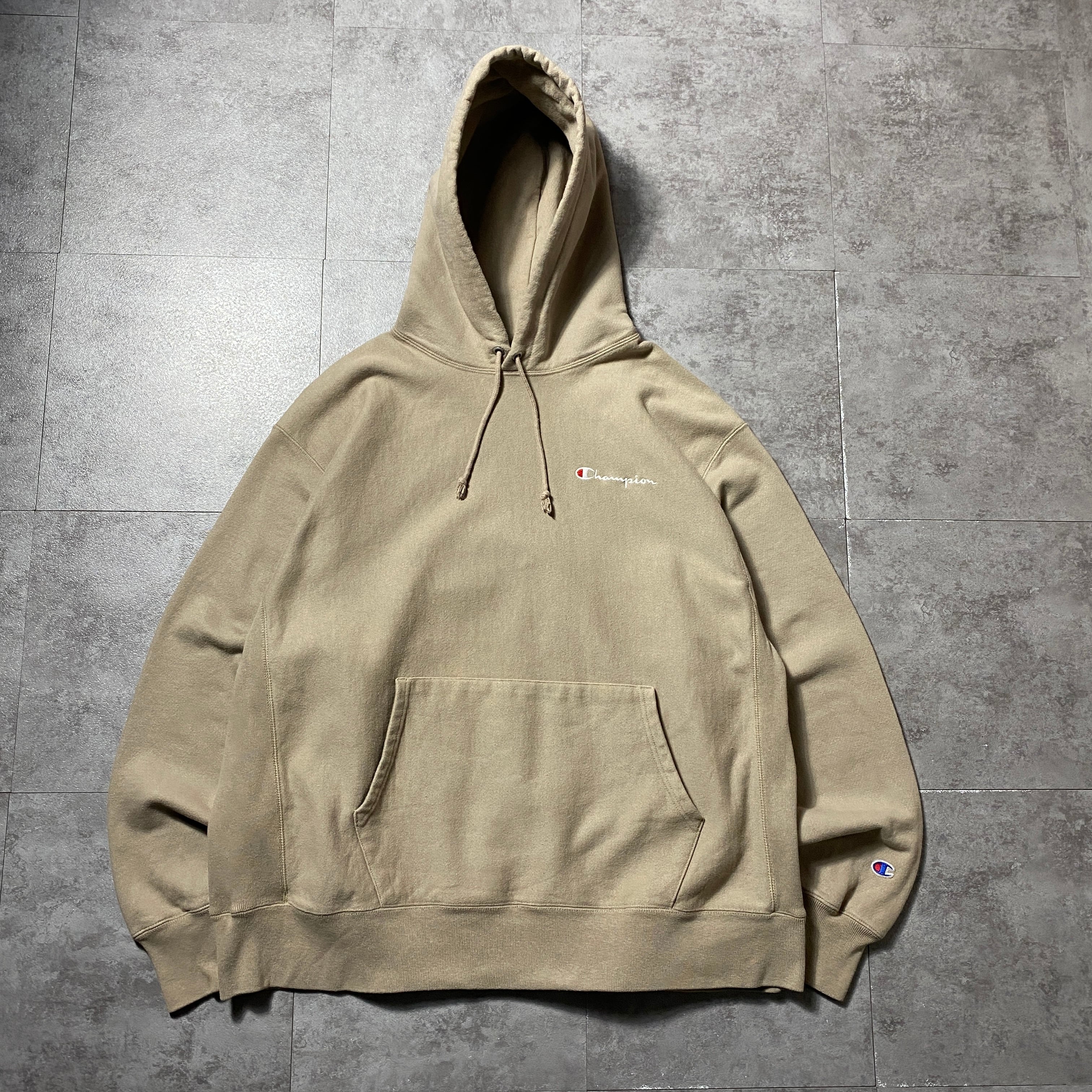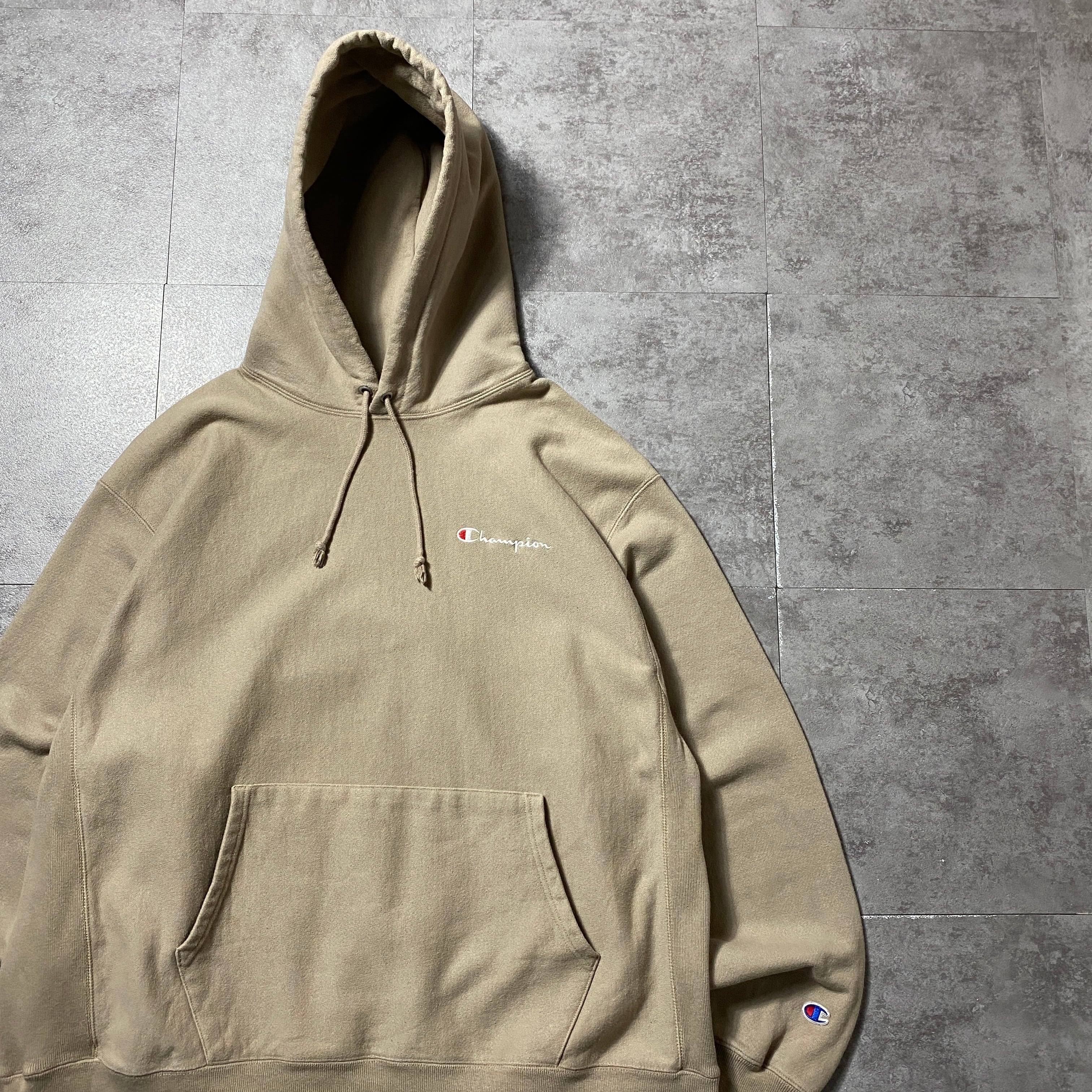 【Size:XL】00's Champion チャンピオン リバースウィーブ 刺繍ワンポイント ブラウン スウェット パーカー フーディ