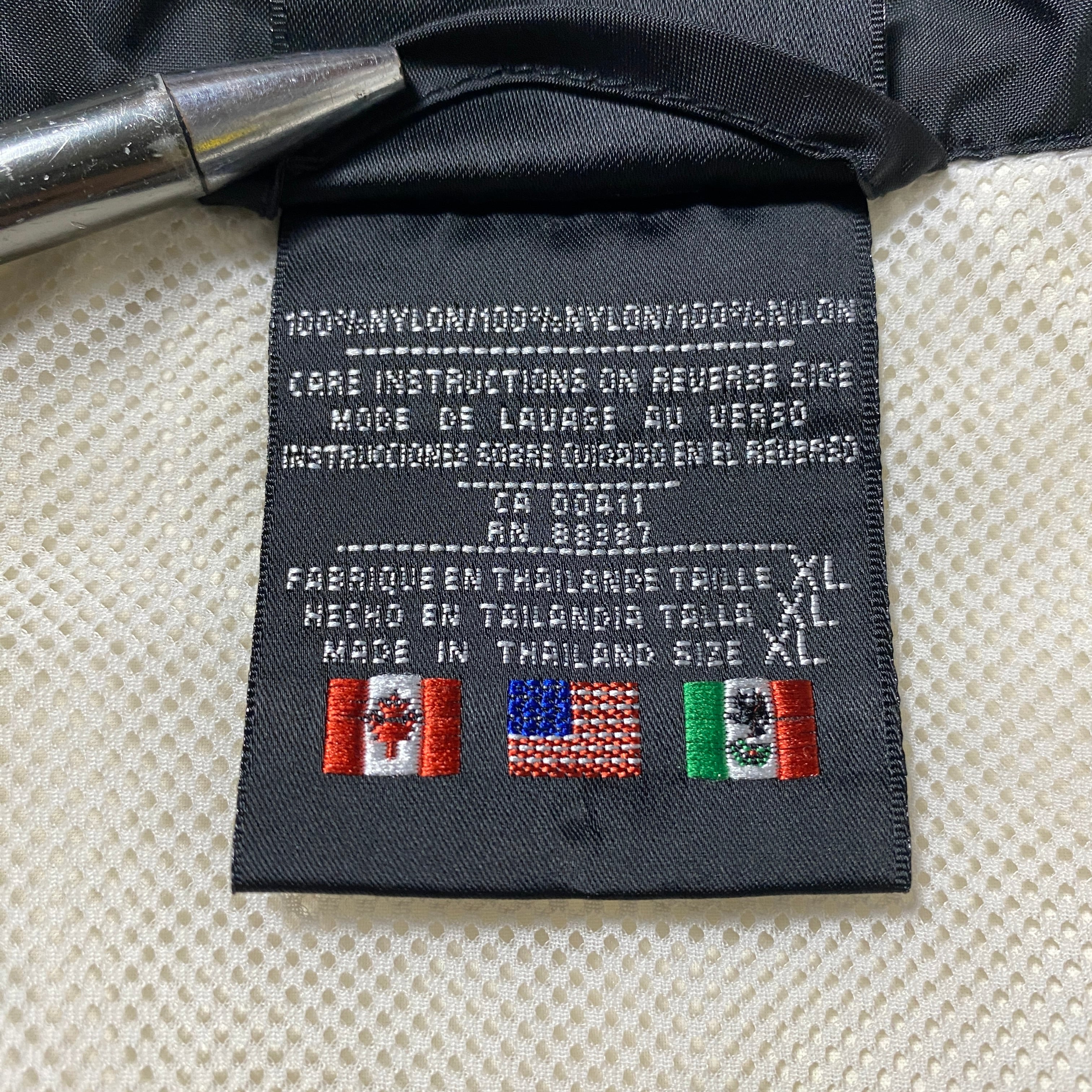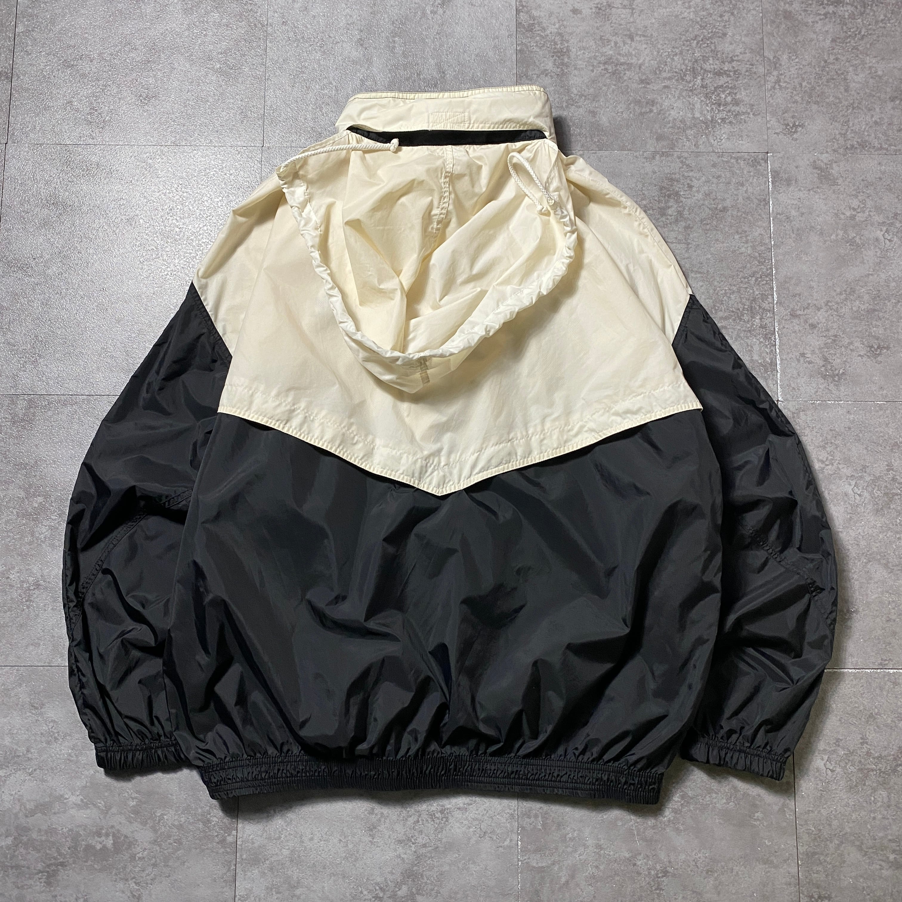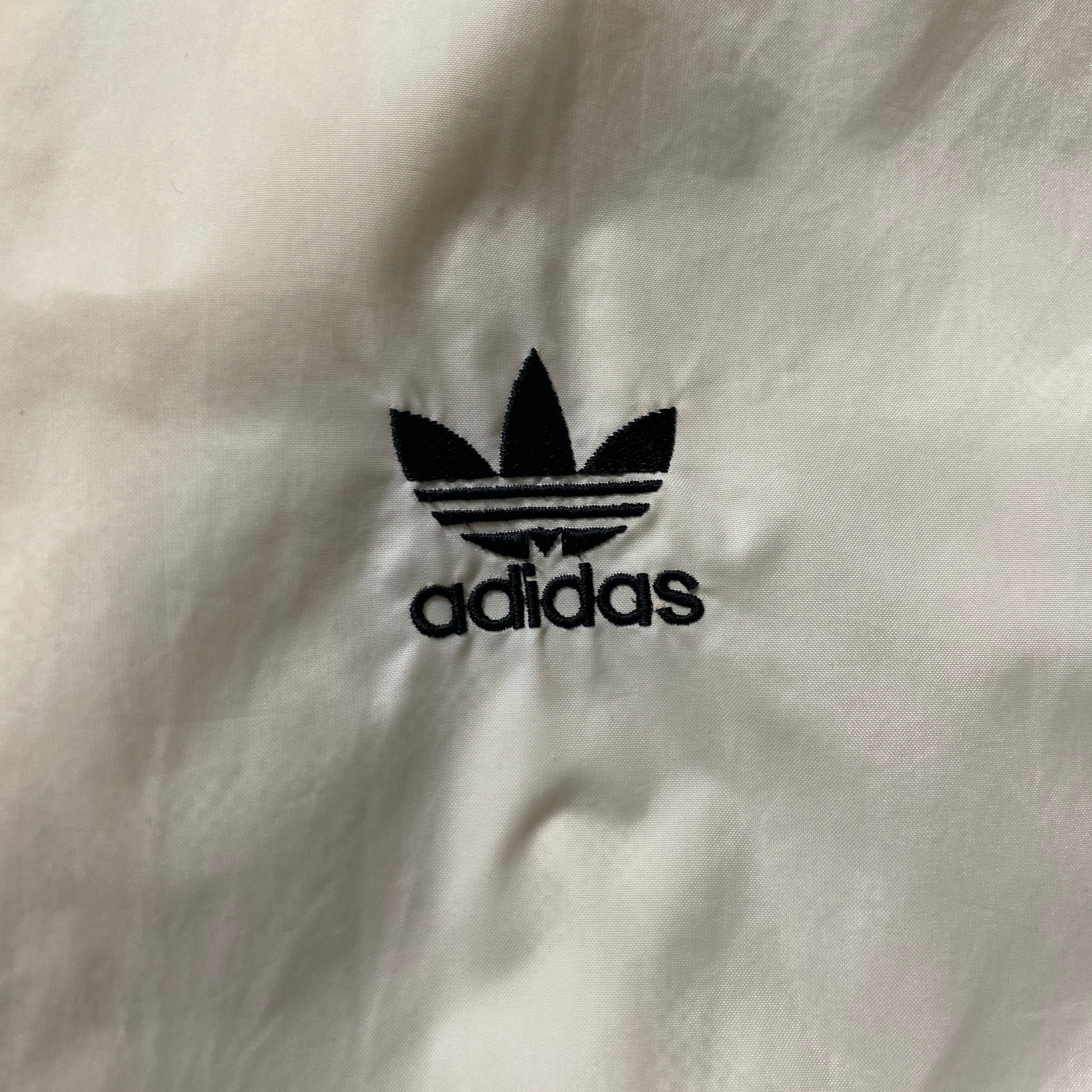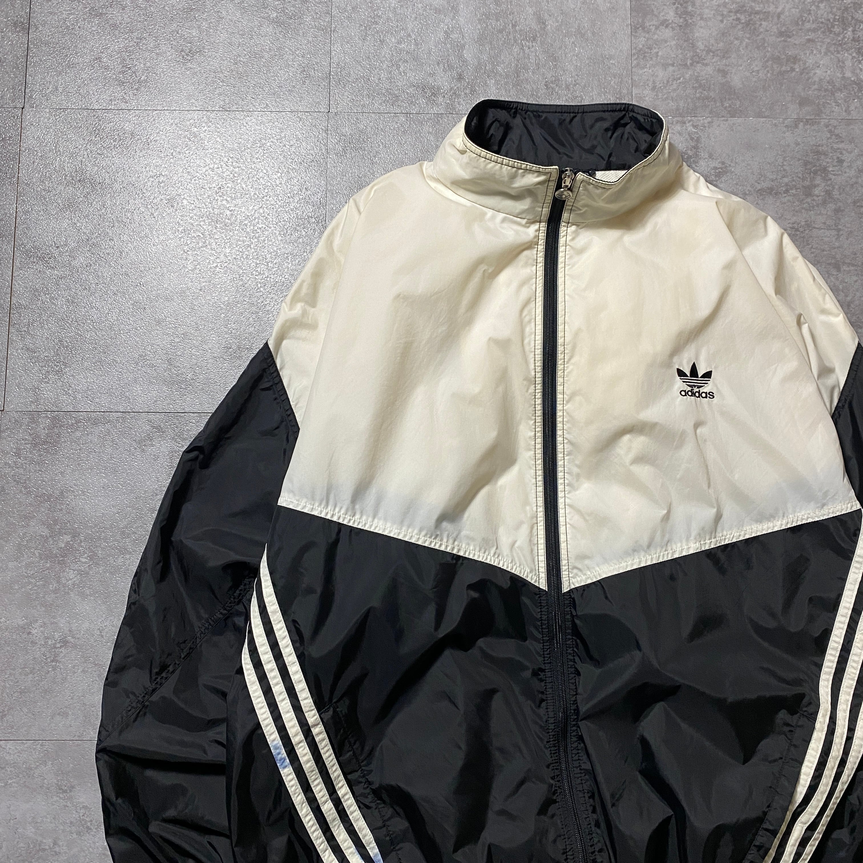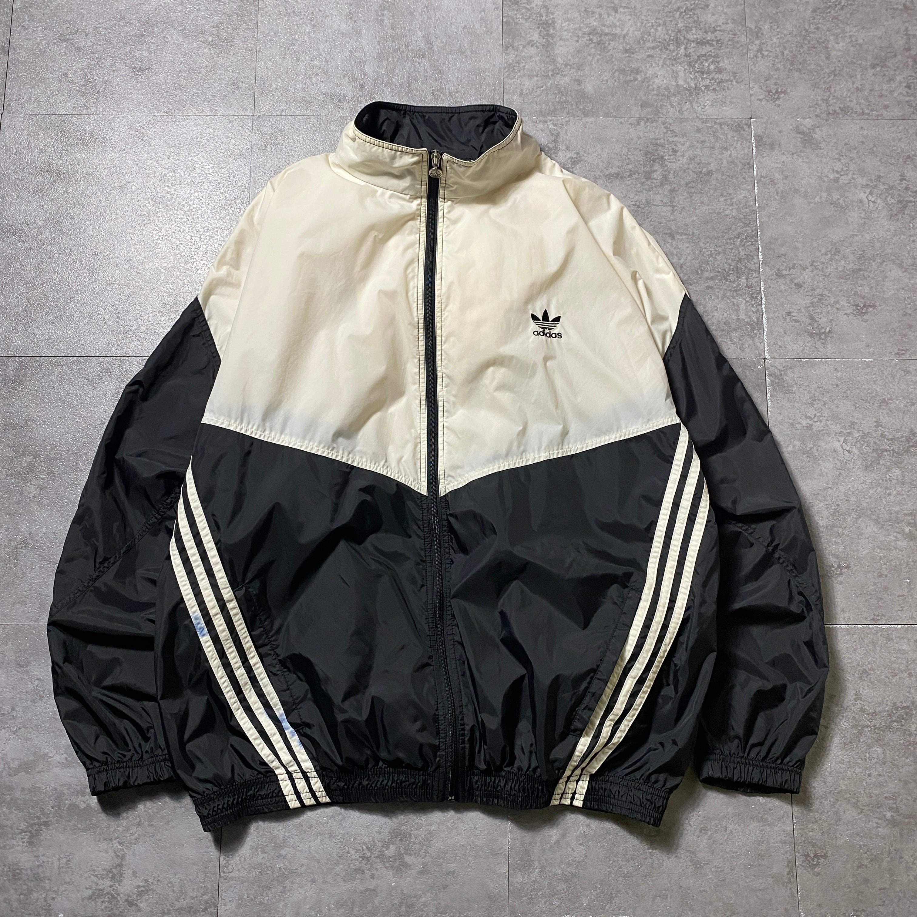 【Size:XL】90's adidas アディダス トレフォイル 刺繍ワンポイント スリーストライプ フード格納 ナイロンジャケット