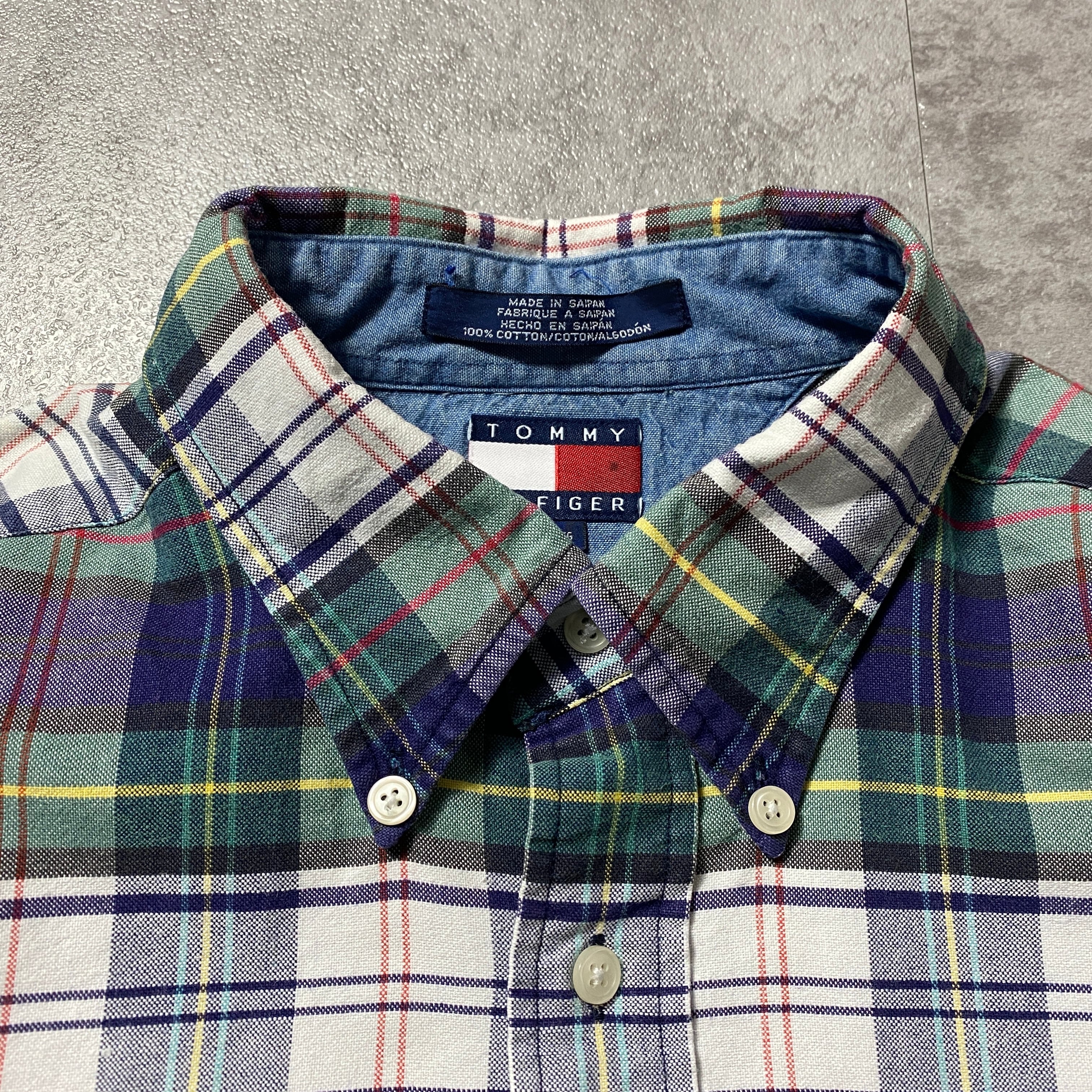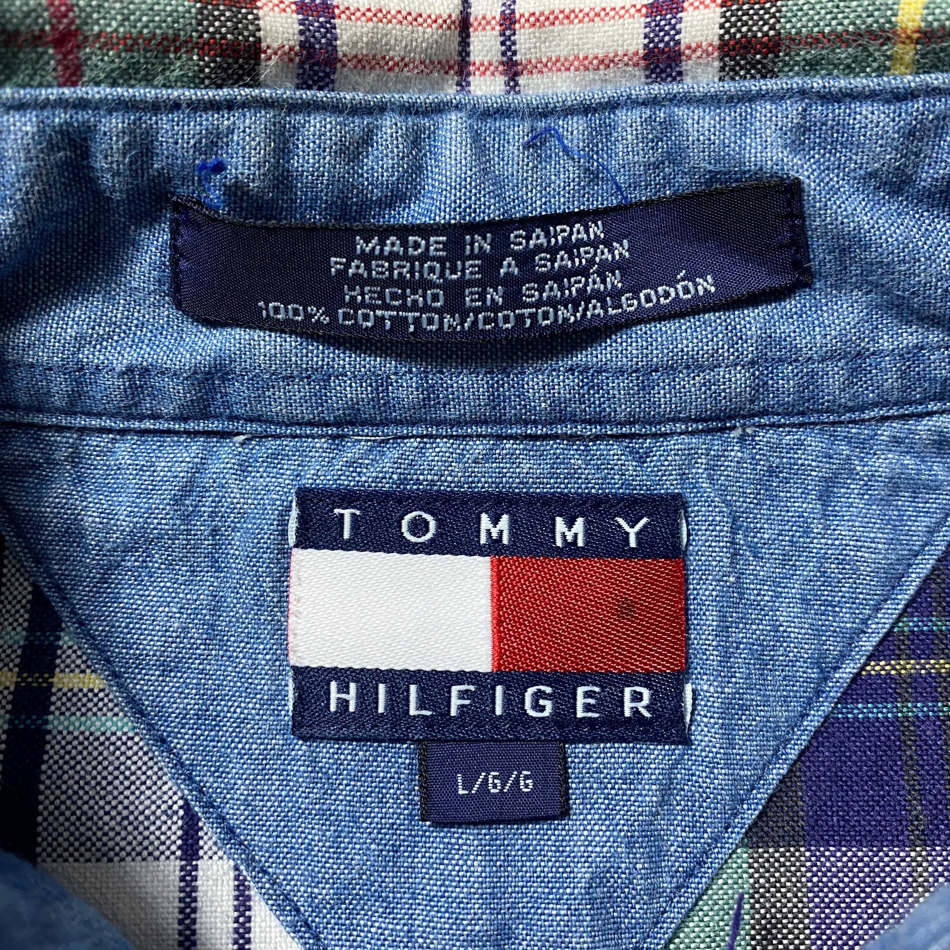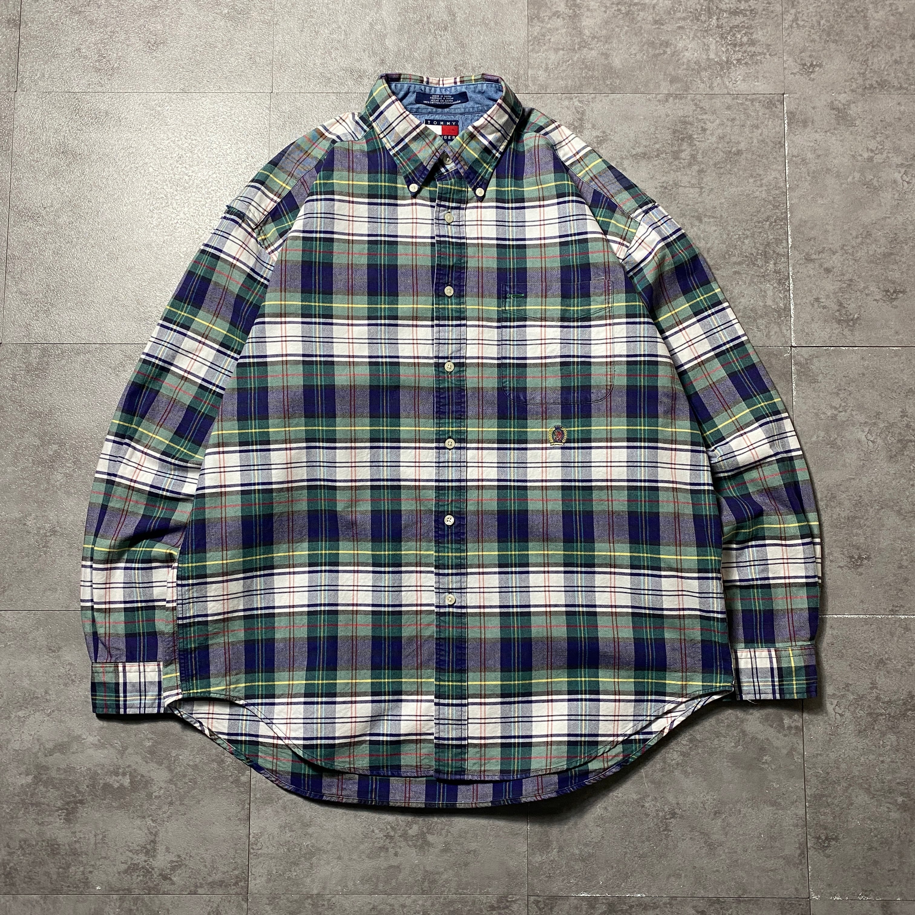 90's-00's Tommy Hilfiger トミーヒルフィガー 刺繍ロゴ 胸ポケット チェック総柄 ボタンダウンシャツ