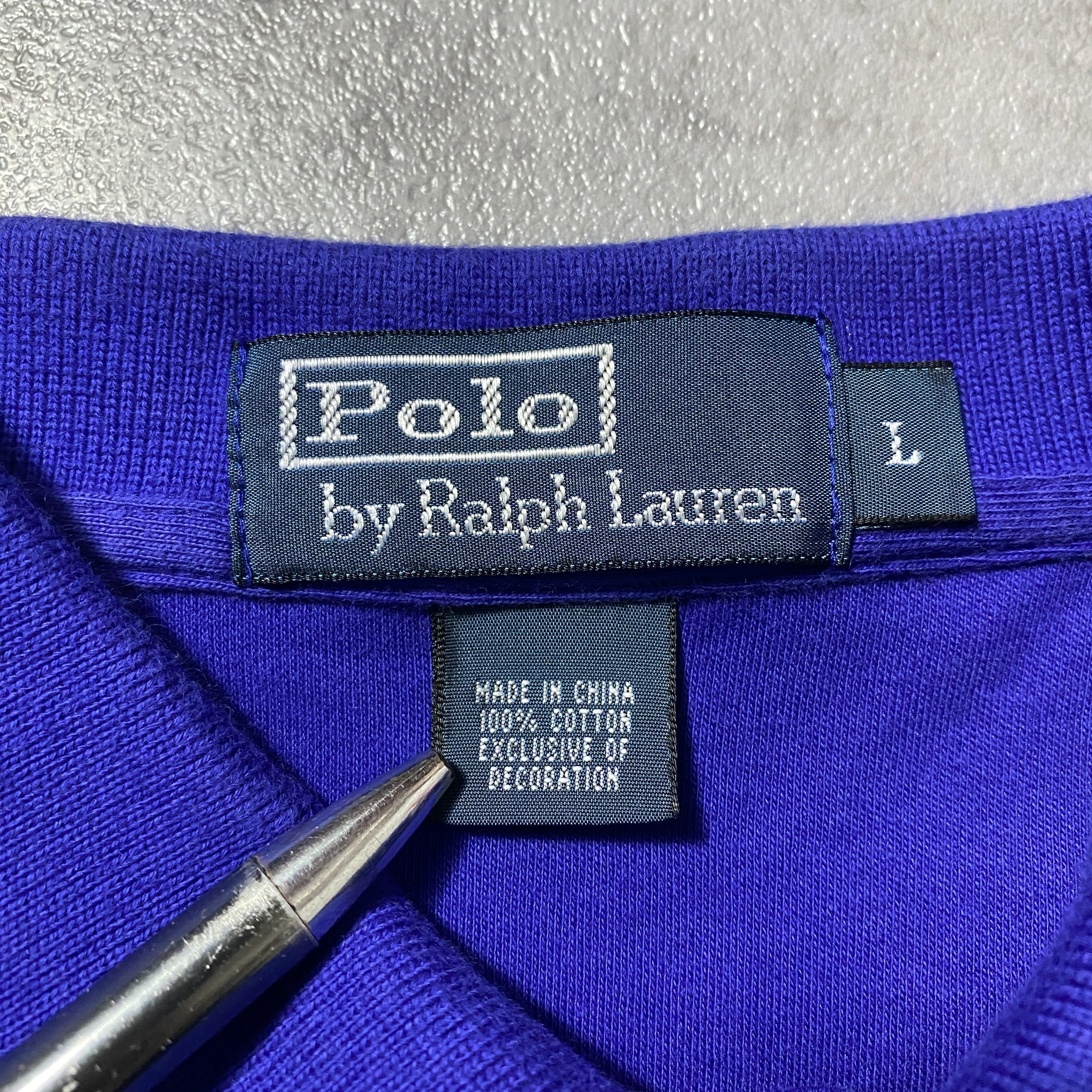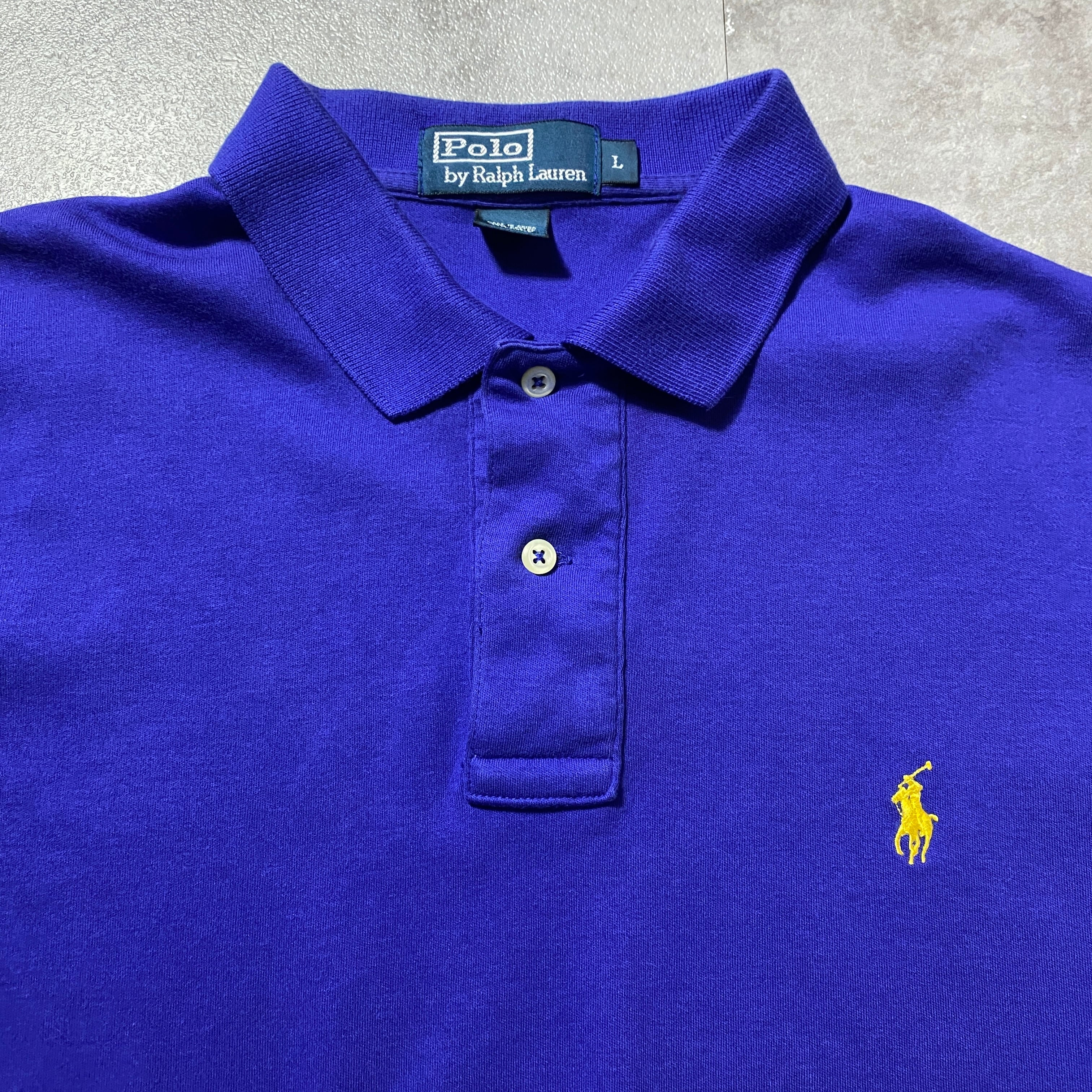 90's Polo by Ralph Lauren ポロバイラルフローレン 刺繍ワンポイント ポニー ネイビー 茄子紺 長袖 ポロシャツ ロンT