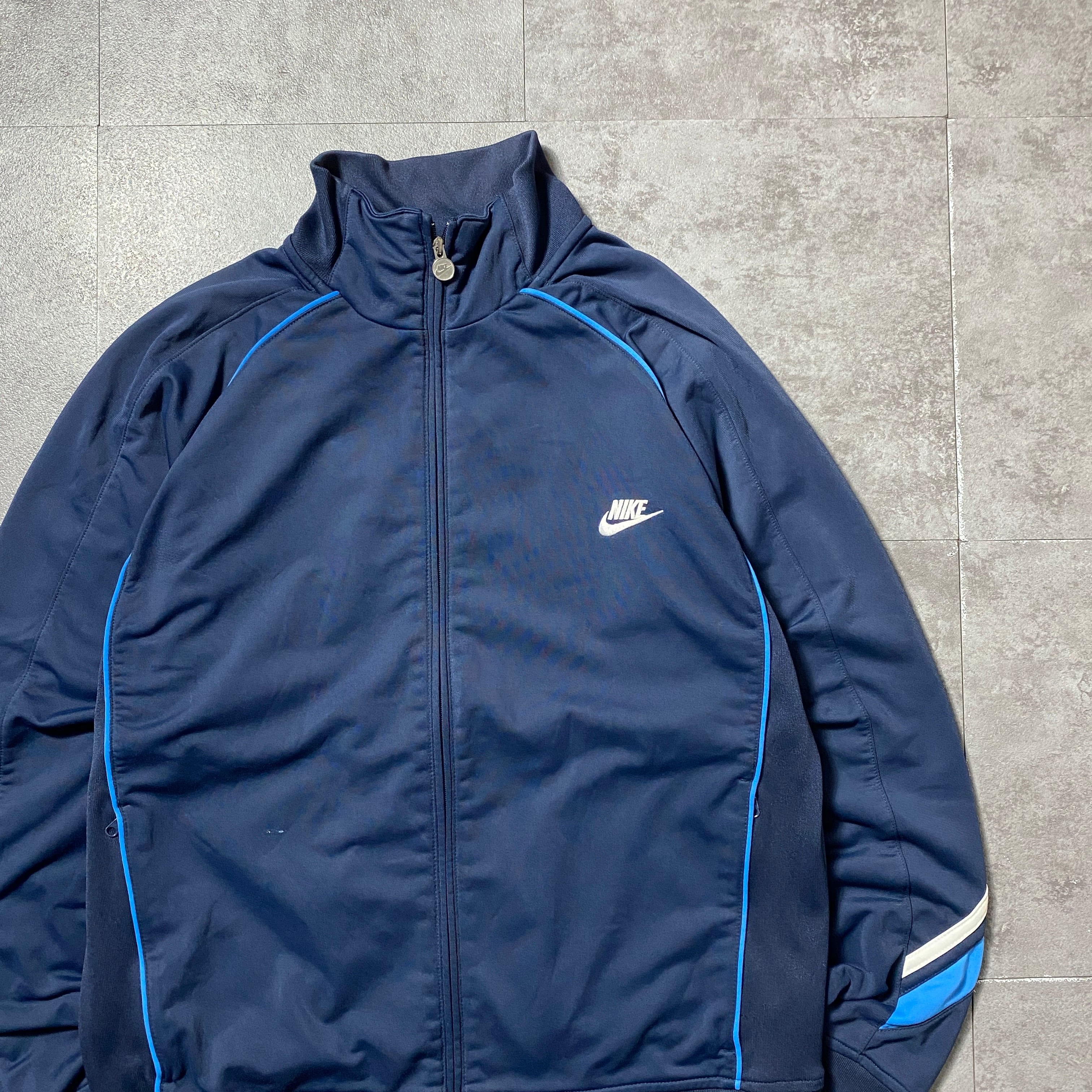 00's NIKE ナイキ スウォッシュ 刺繍ワンポイント ネイビー ジャージ トラックジャケット