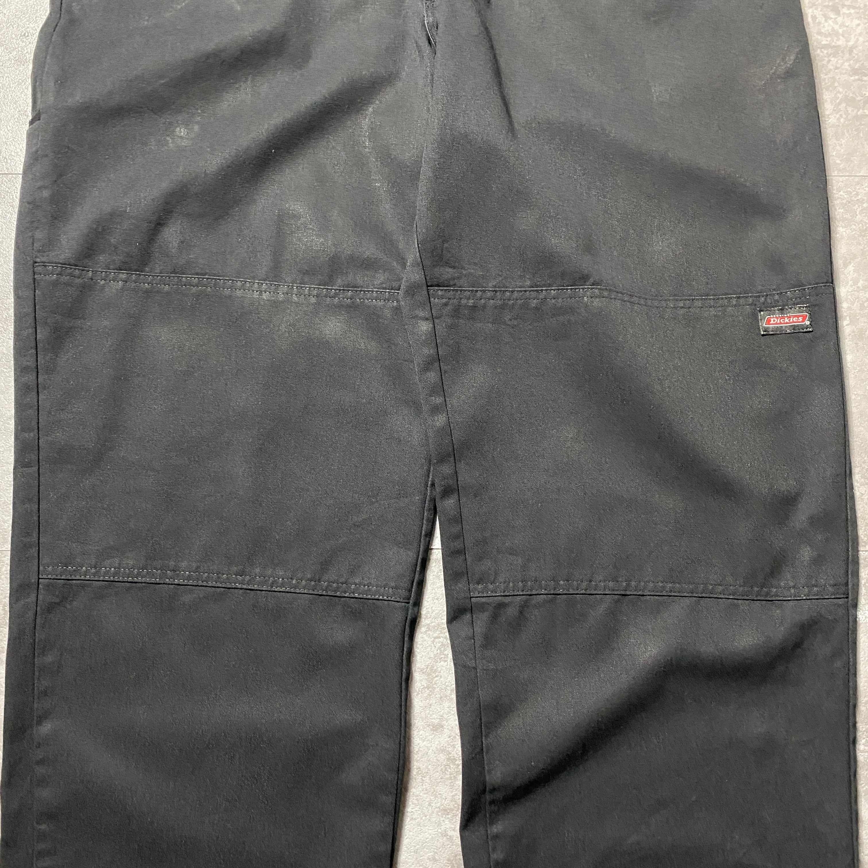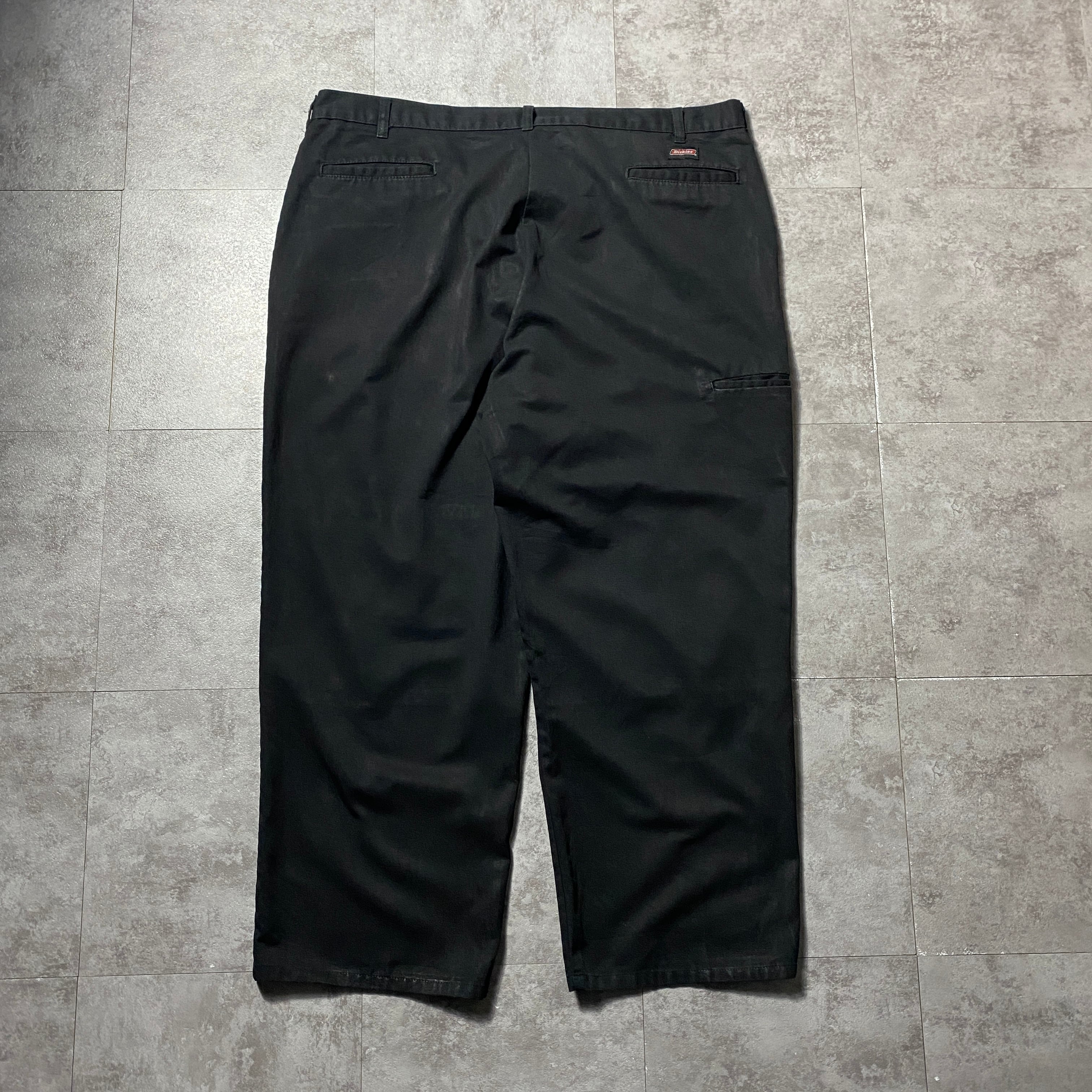 【44×30】Dickies ディッキーズ ジッパーフライ ダブルニー ワイドストレート ブラック ワークパンツ