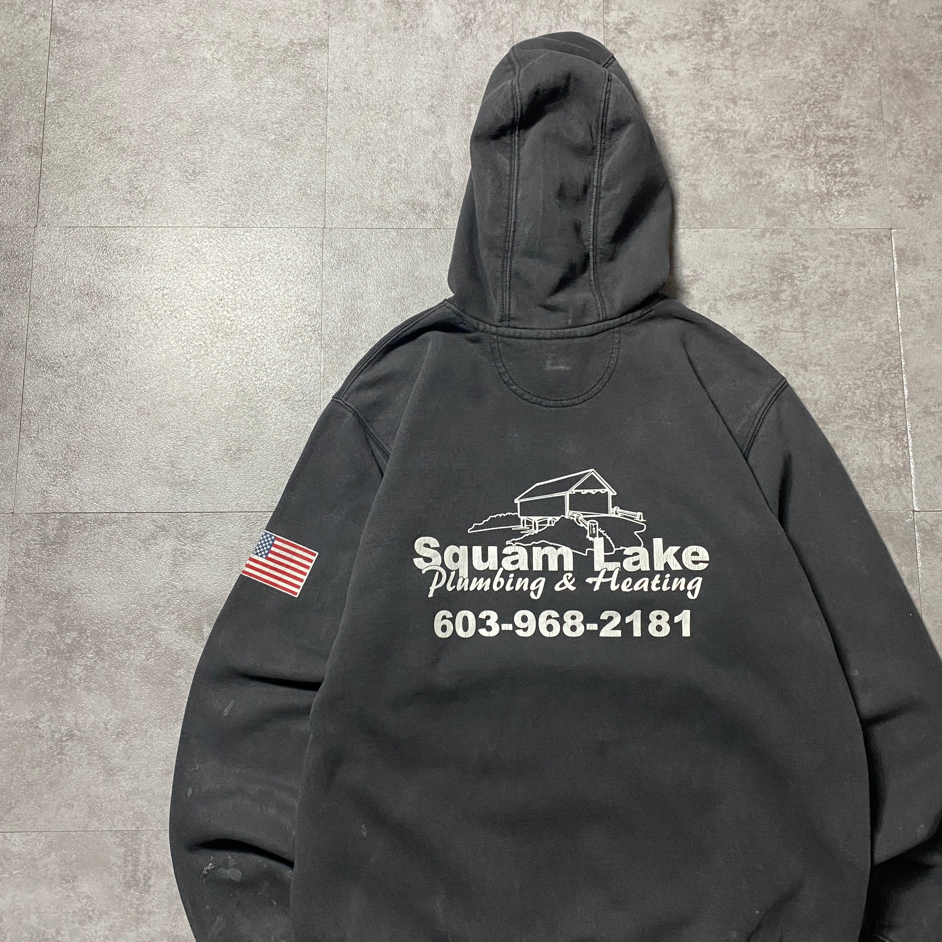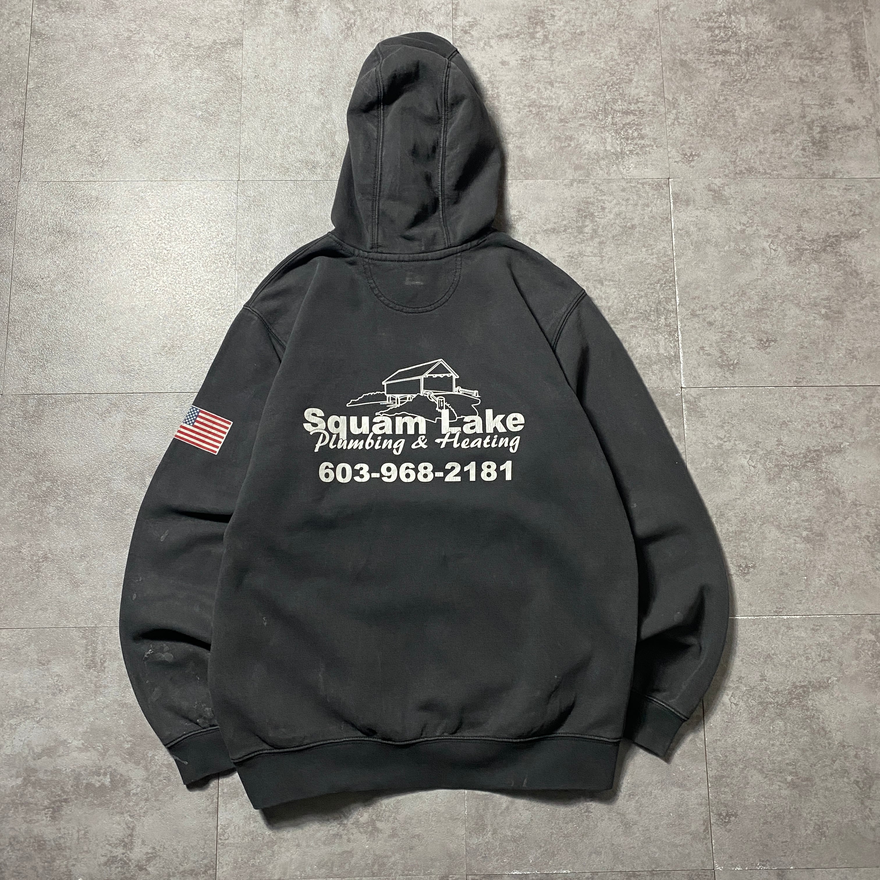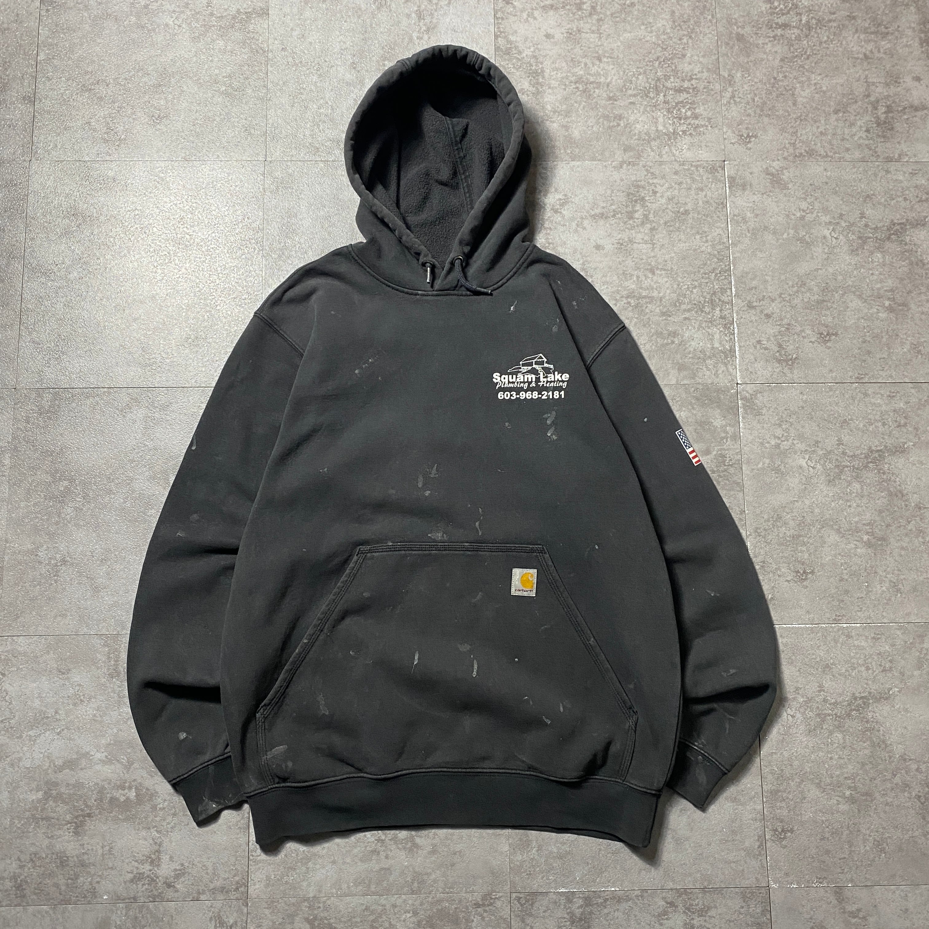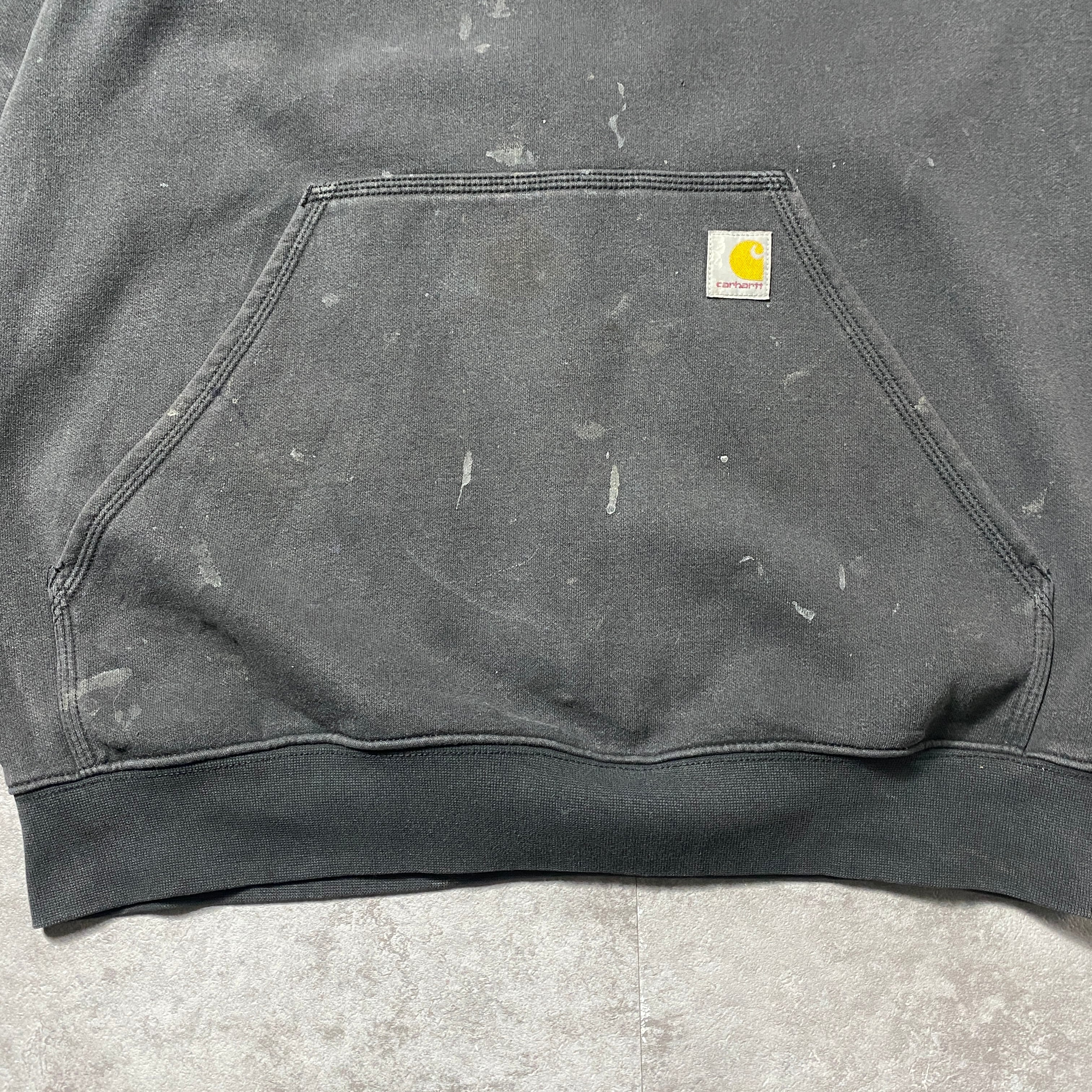 carhartt カーハート ルーズフィット バックプリント 企業ロゴ グッドダメージ ブラック 黒 スウェット パーカー