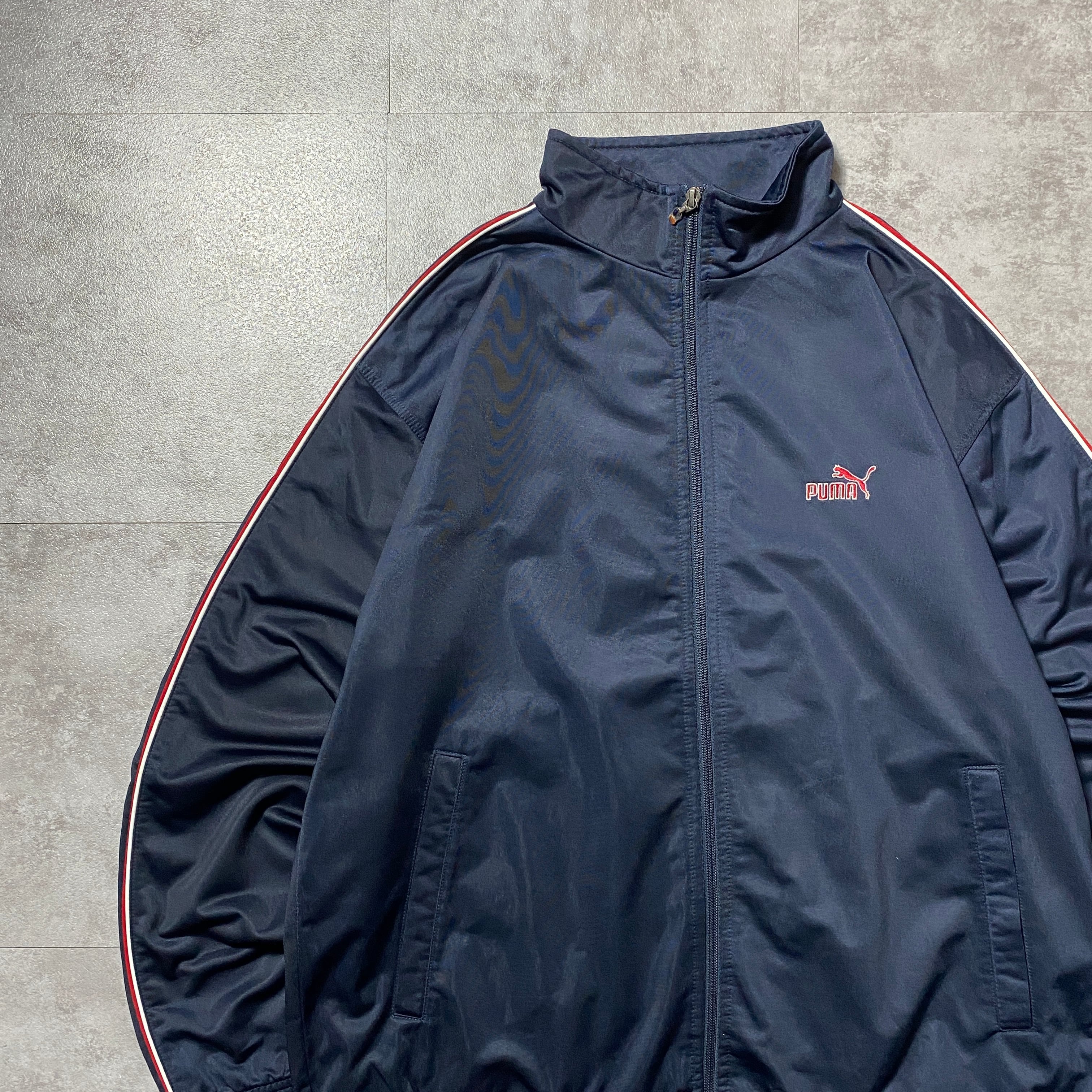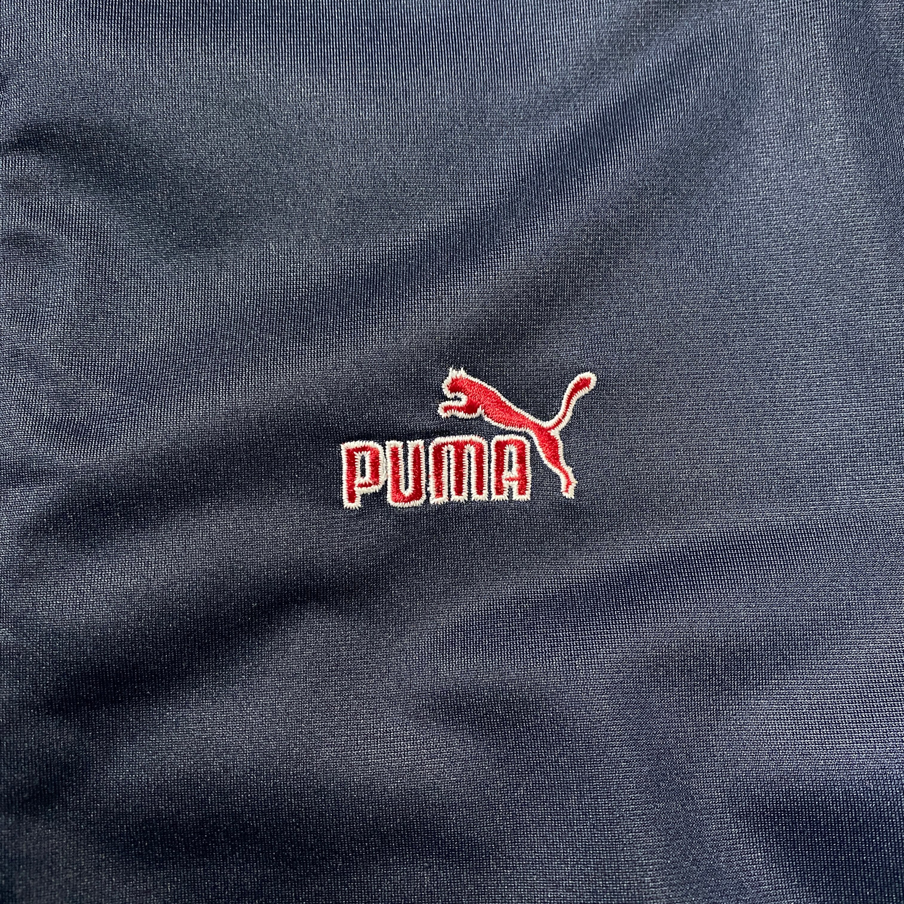 90's PUMA プーマ 刺繍ワンポイント サイドライン ネイビー ジャージ トラックジャケット