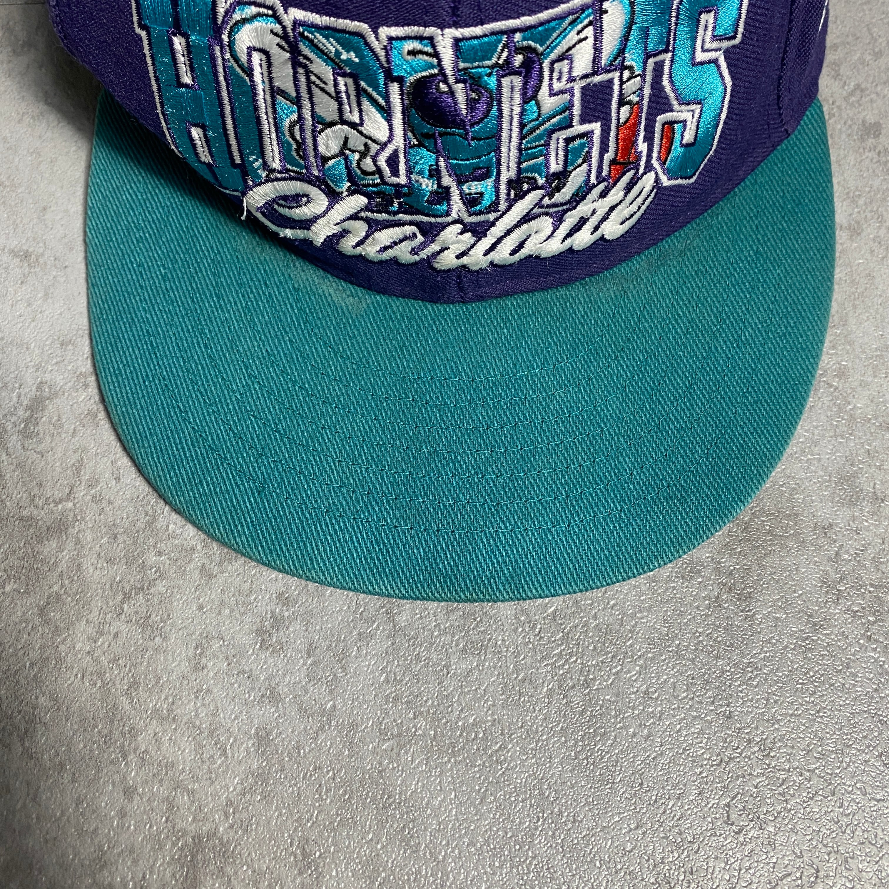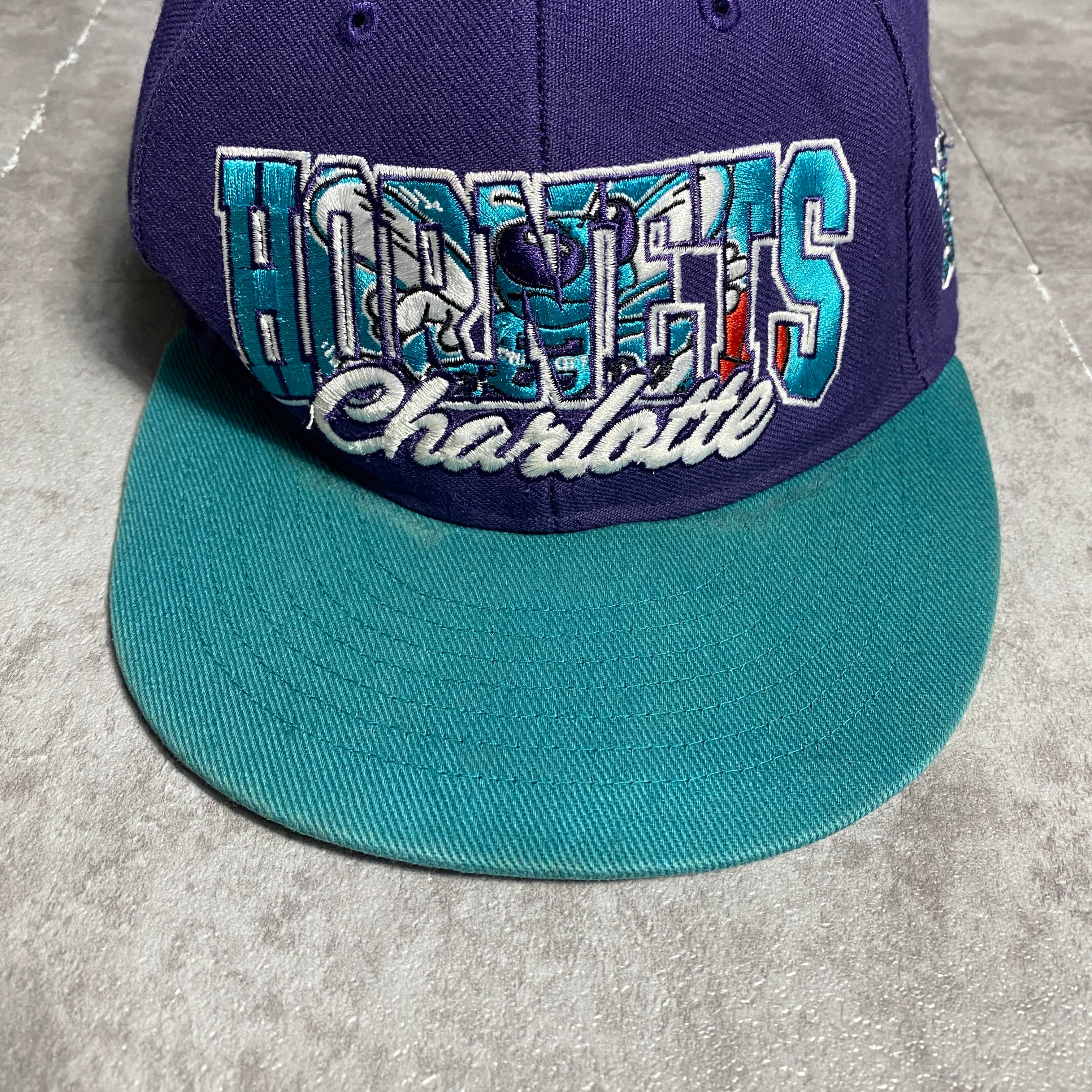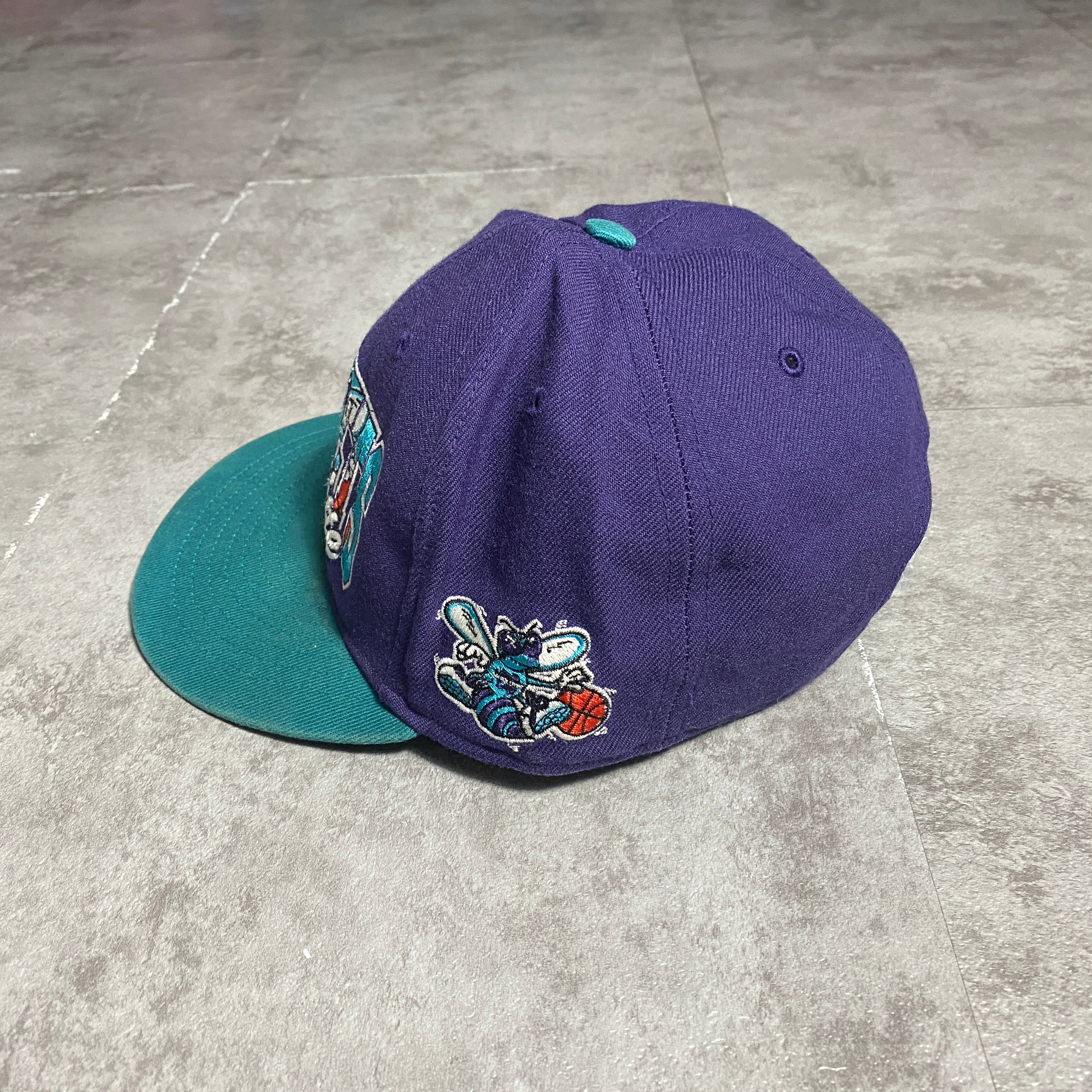 NBA シャーロット・ホーネッツ 刺繍ロゴ バイカラー パープル×ターコイズ スナップバック キャップ