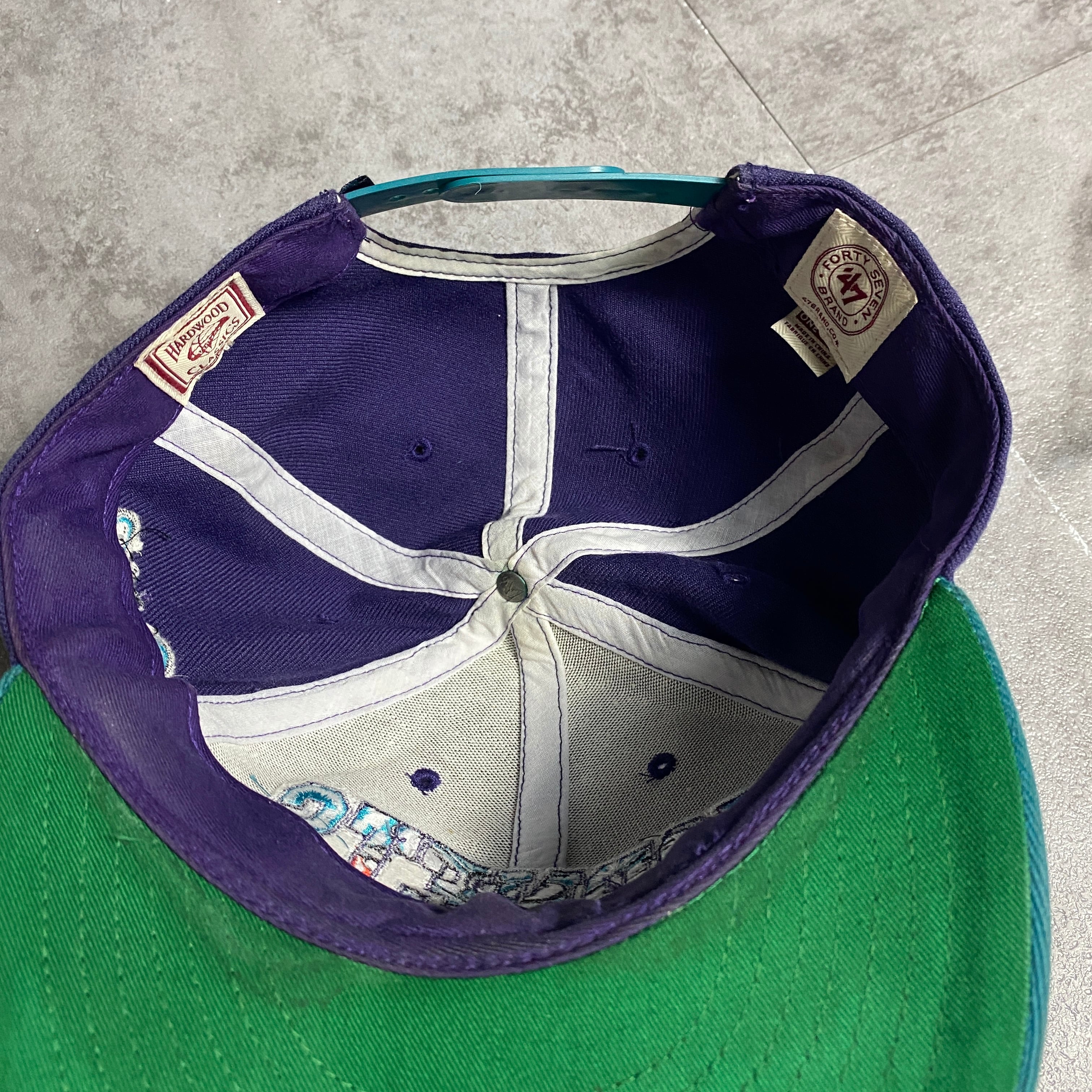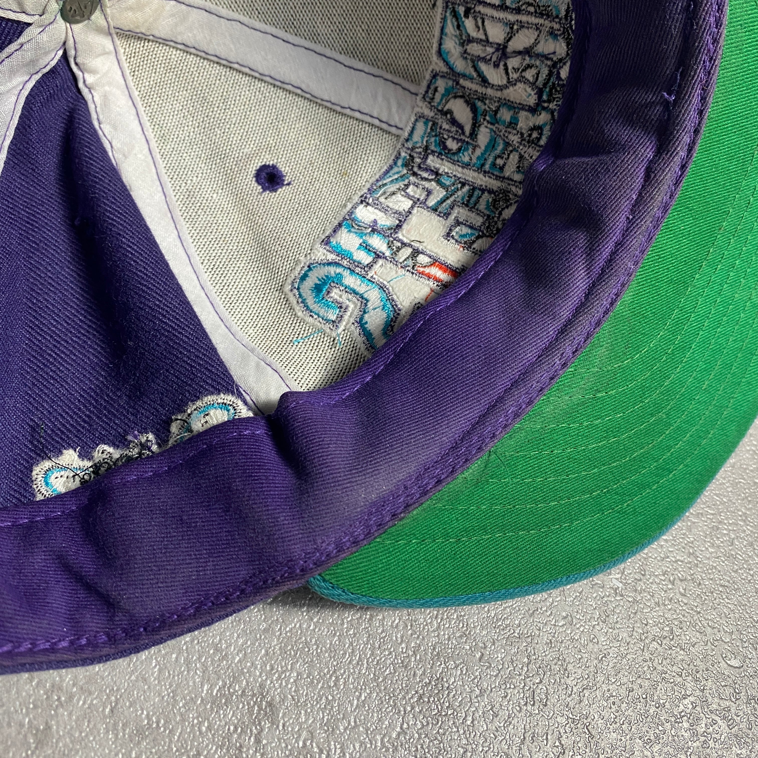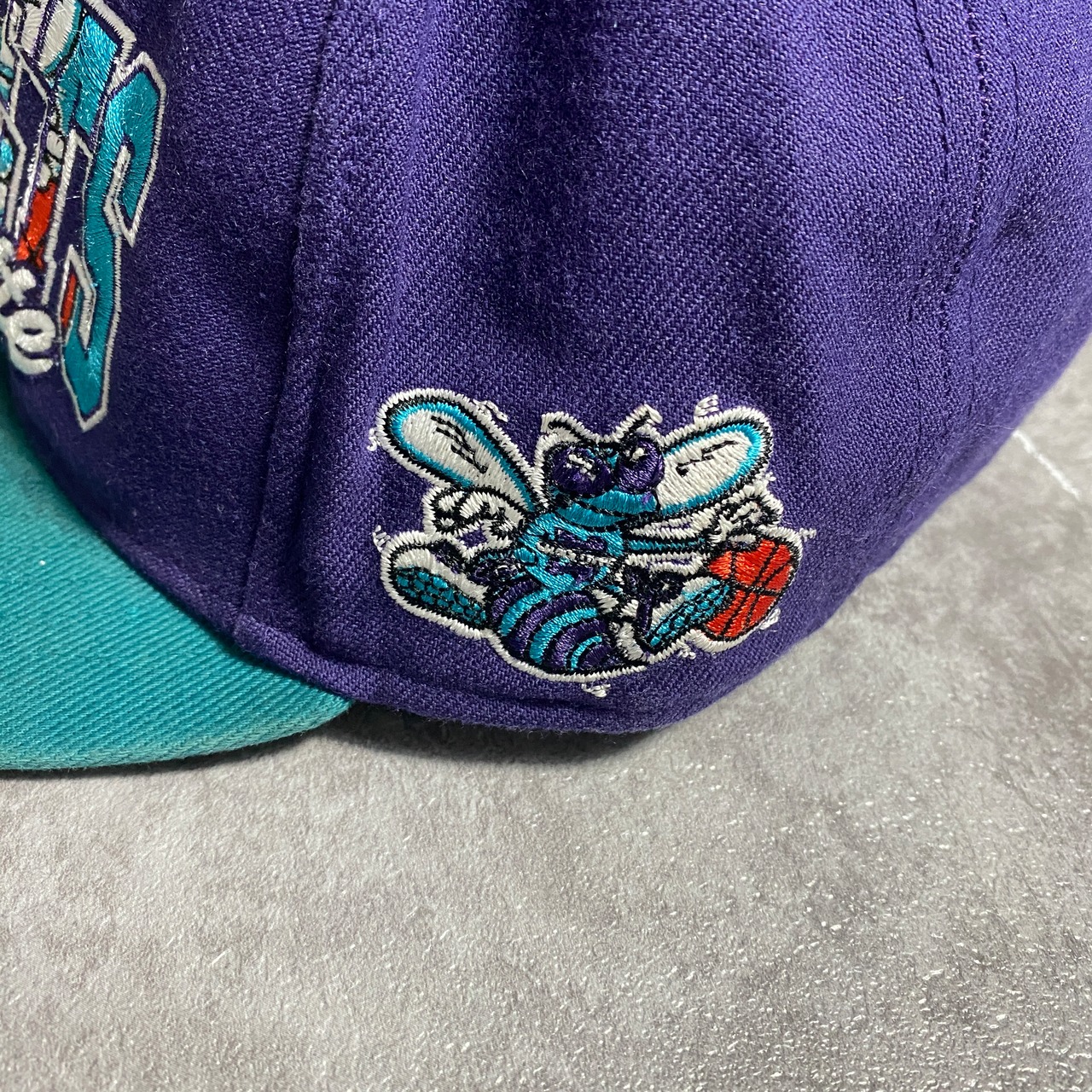 NBA シャーロット・ホーネッツ 刺繍ロゴ バイカラー パープル×ターコイズ スナップバック キャップ