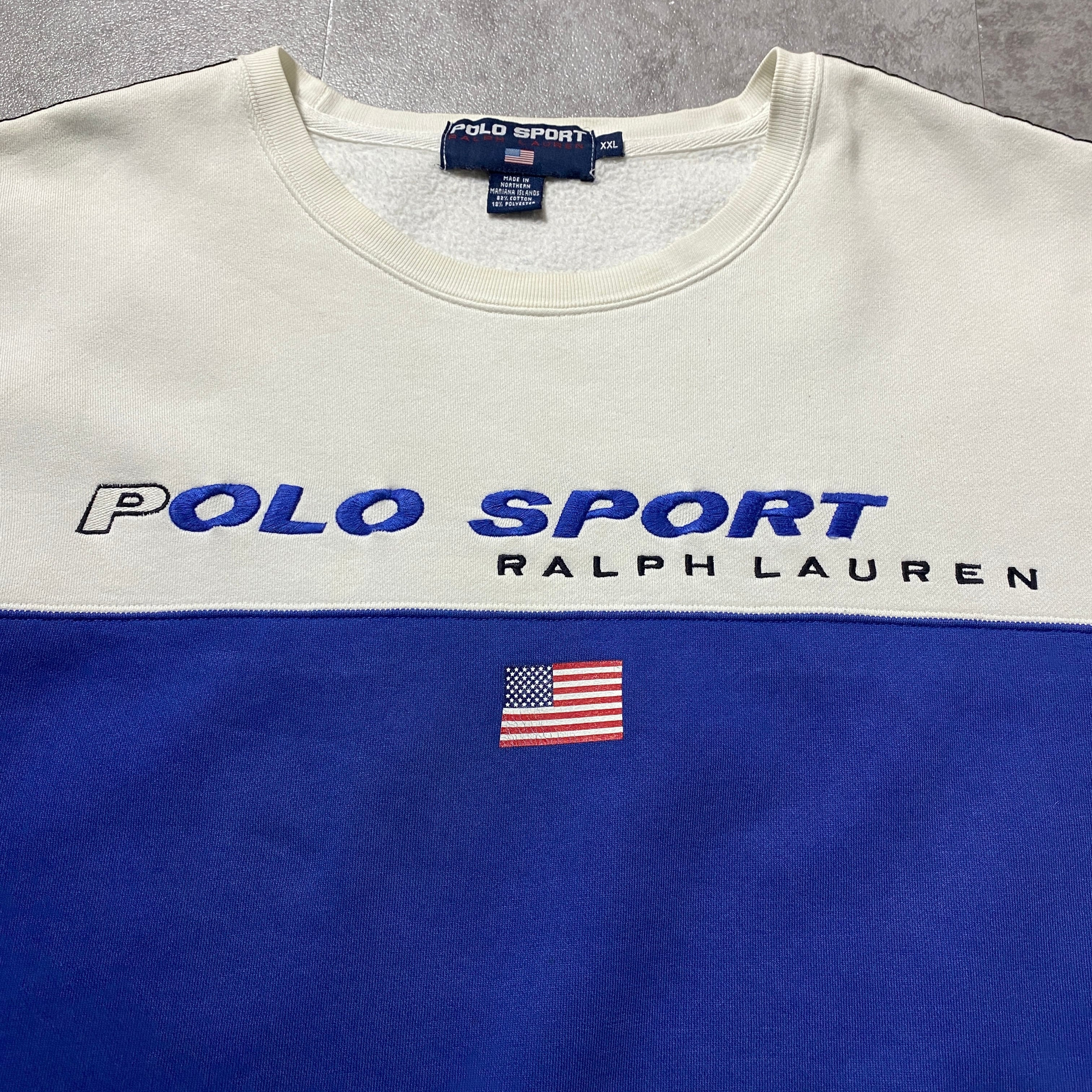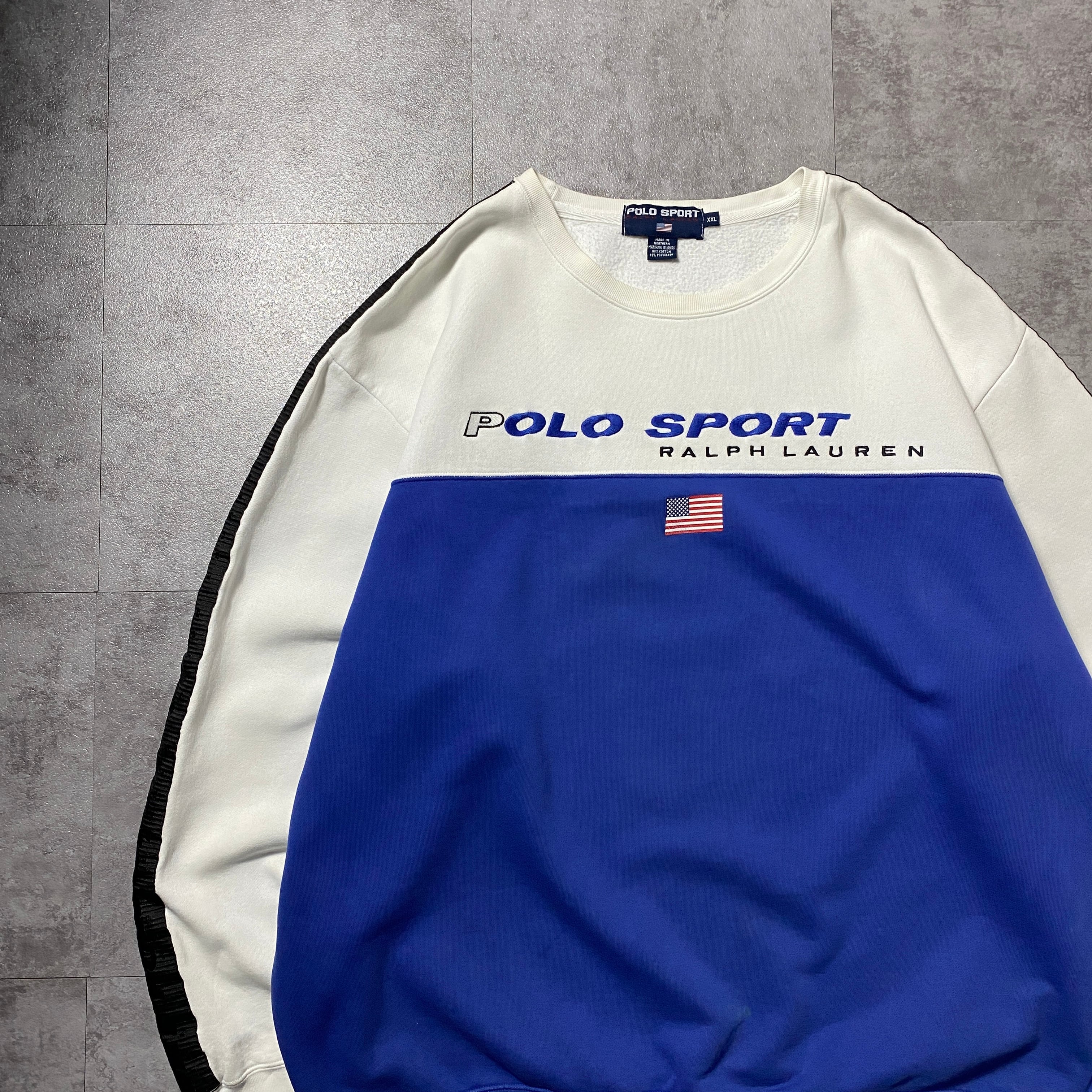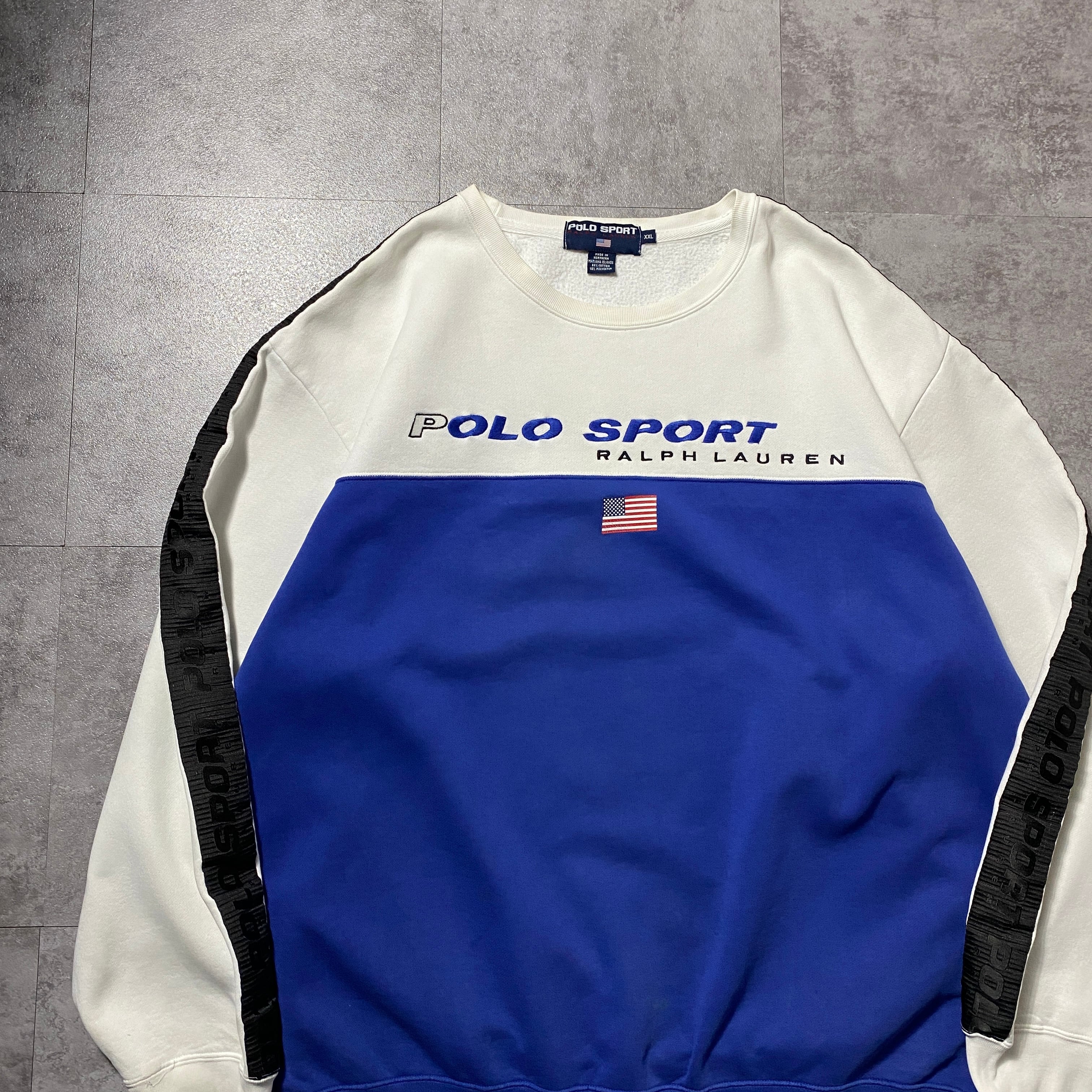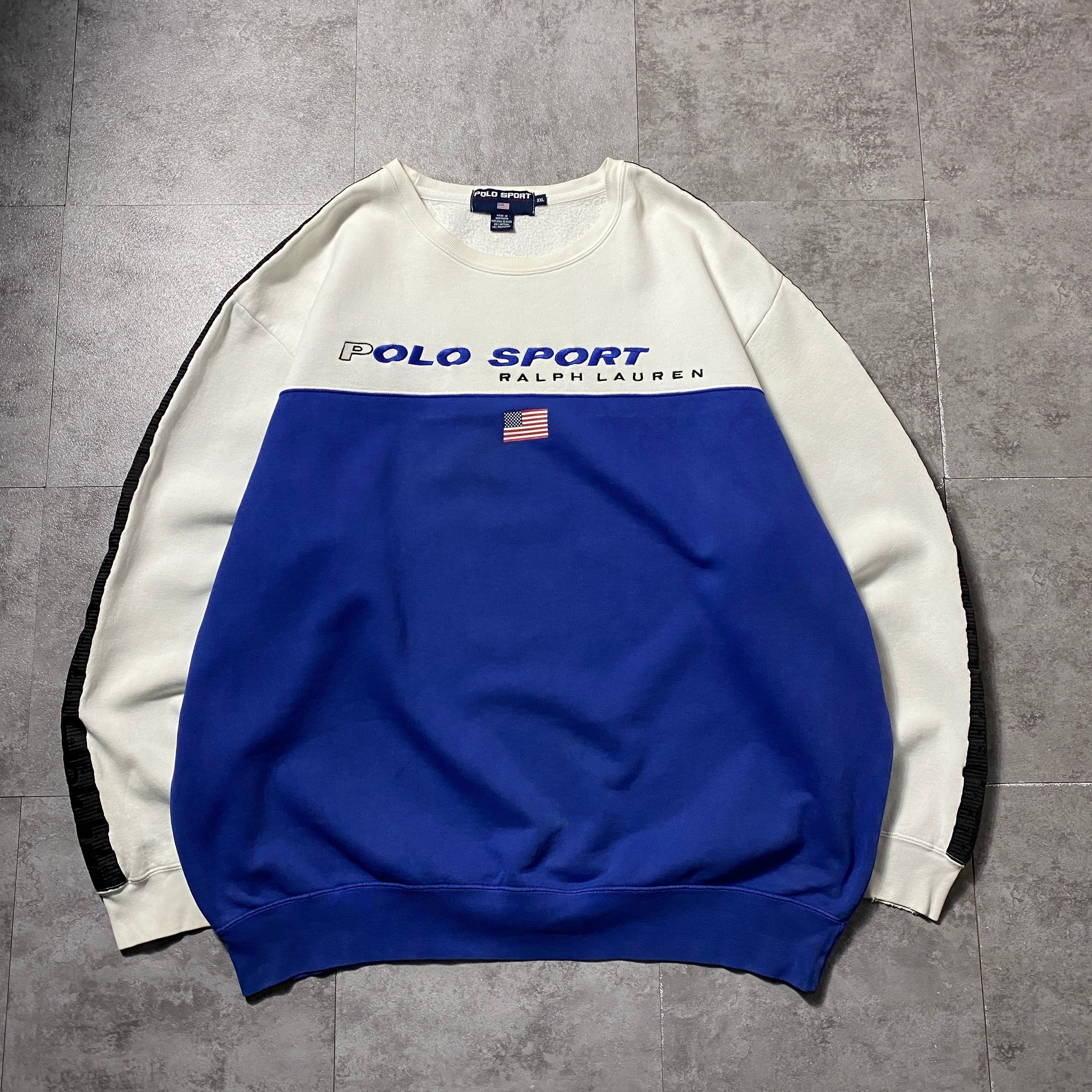 90's Ralph Lauren Polo Sport ラルフローレン ポロスポーツ 刺繍ロゴ バイカラー サイドロゴテープ XXLサイズ スウェット トレーナー