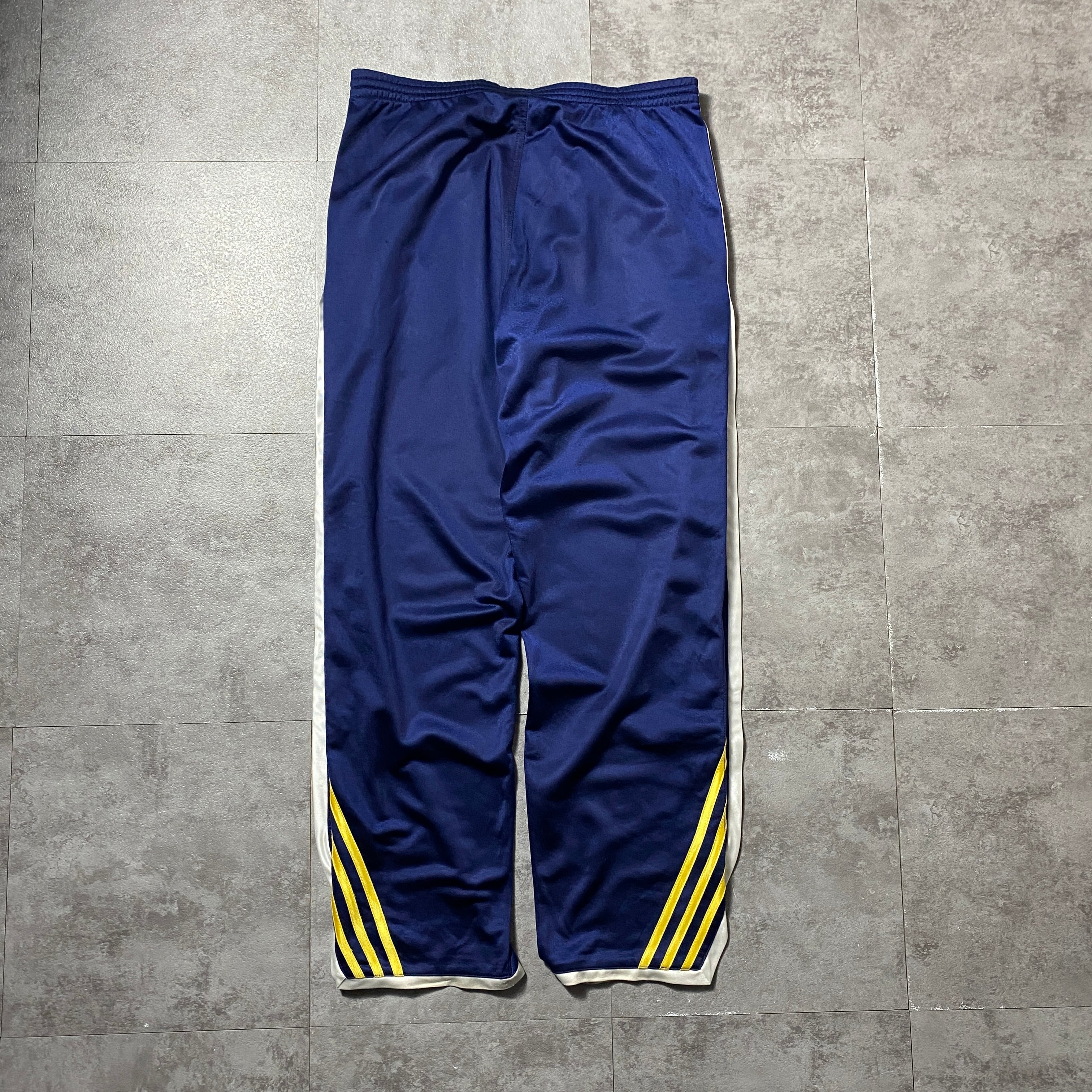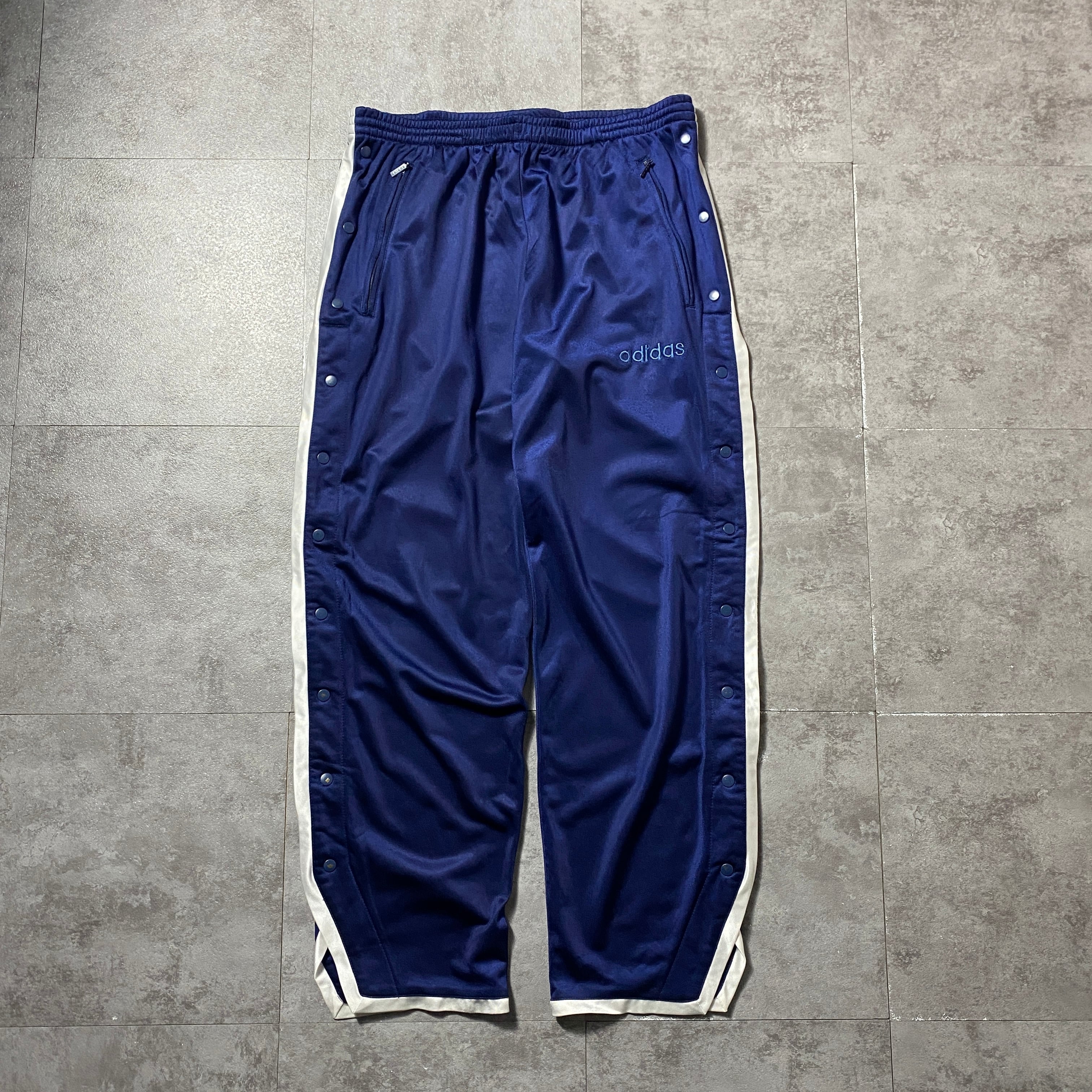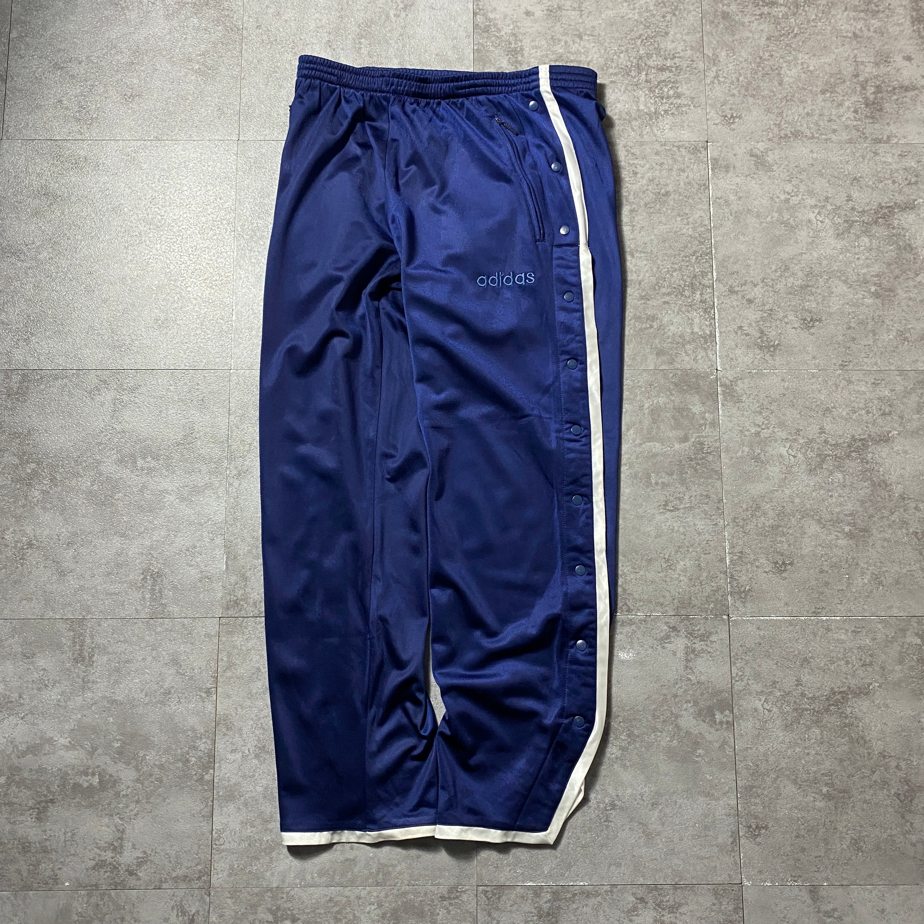 90's 00's adidas アディダス 刺繍文字ロゴ サイドスナップ ストライプ ネイビー ジャージ トラックパンツ