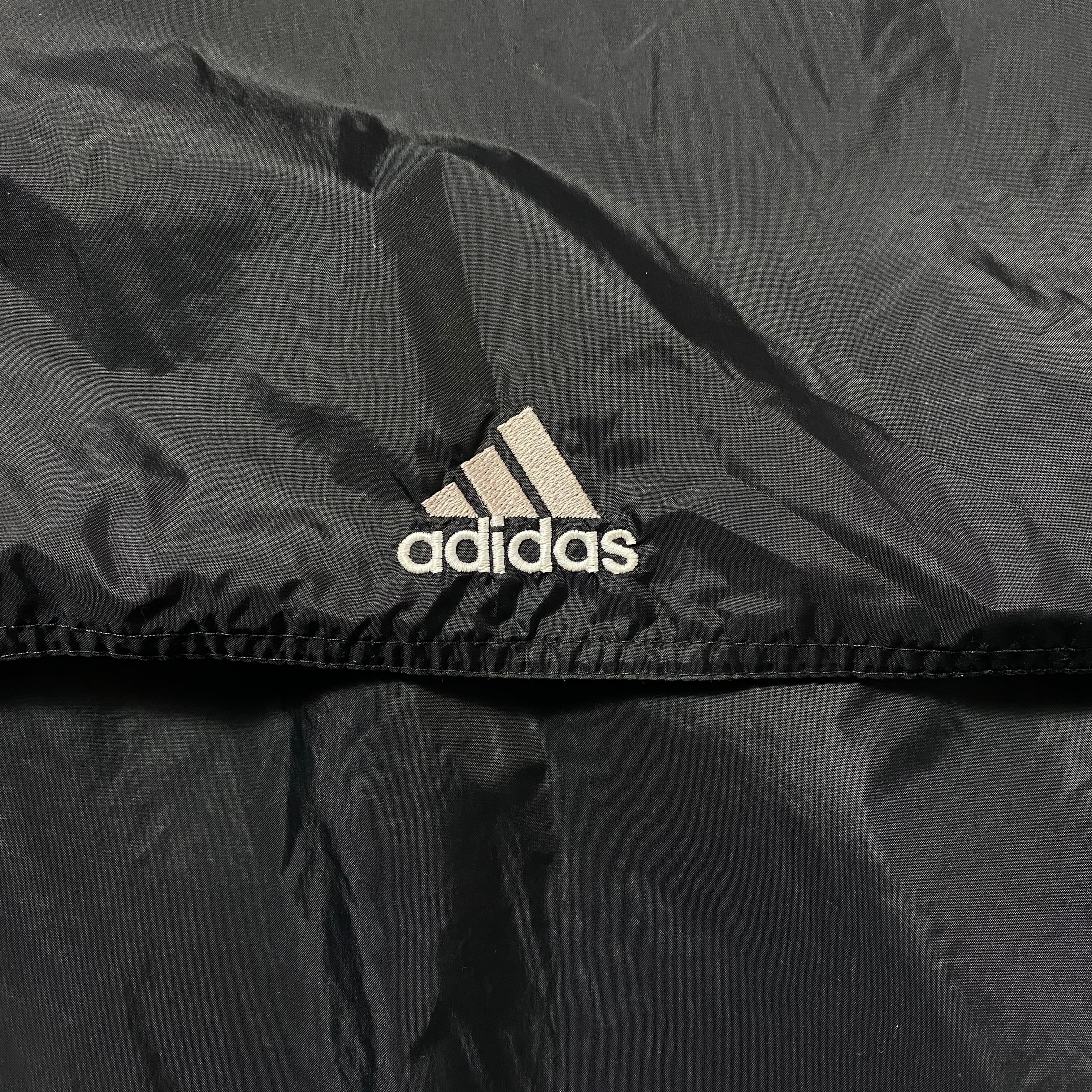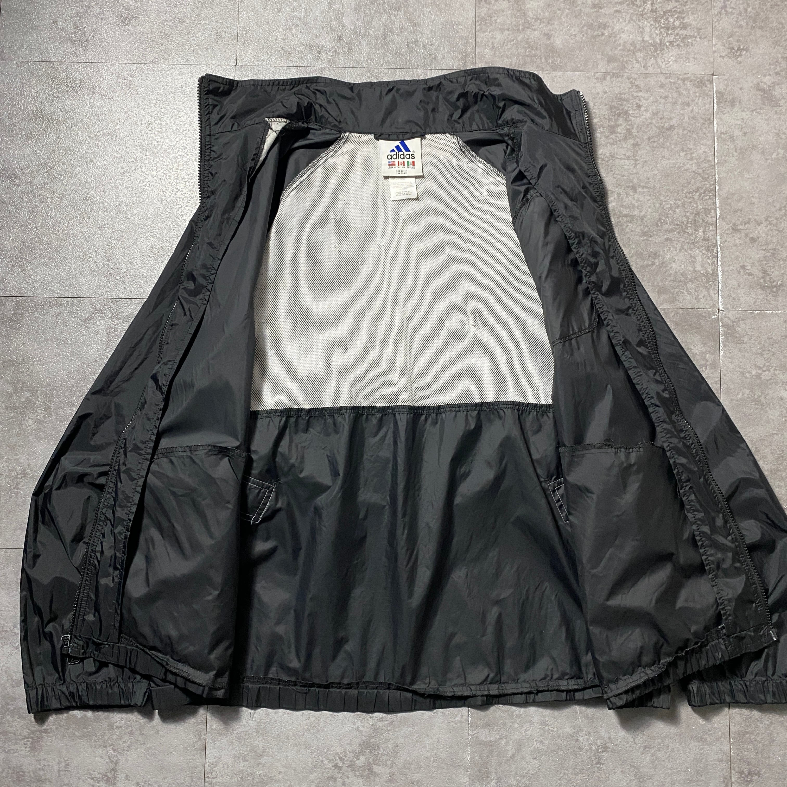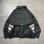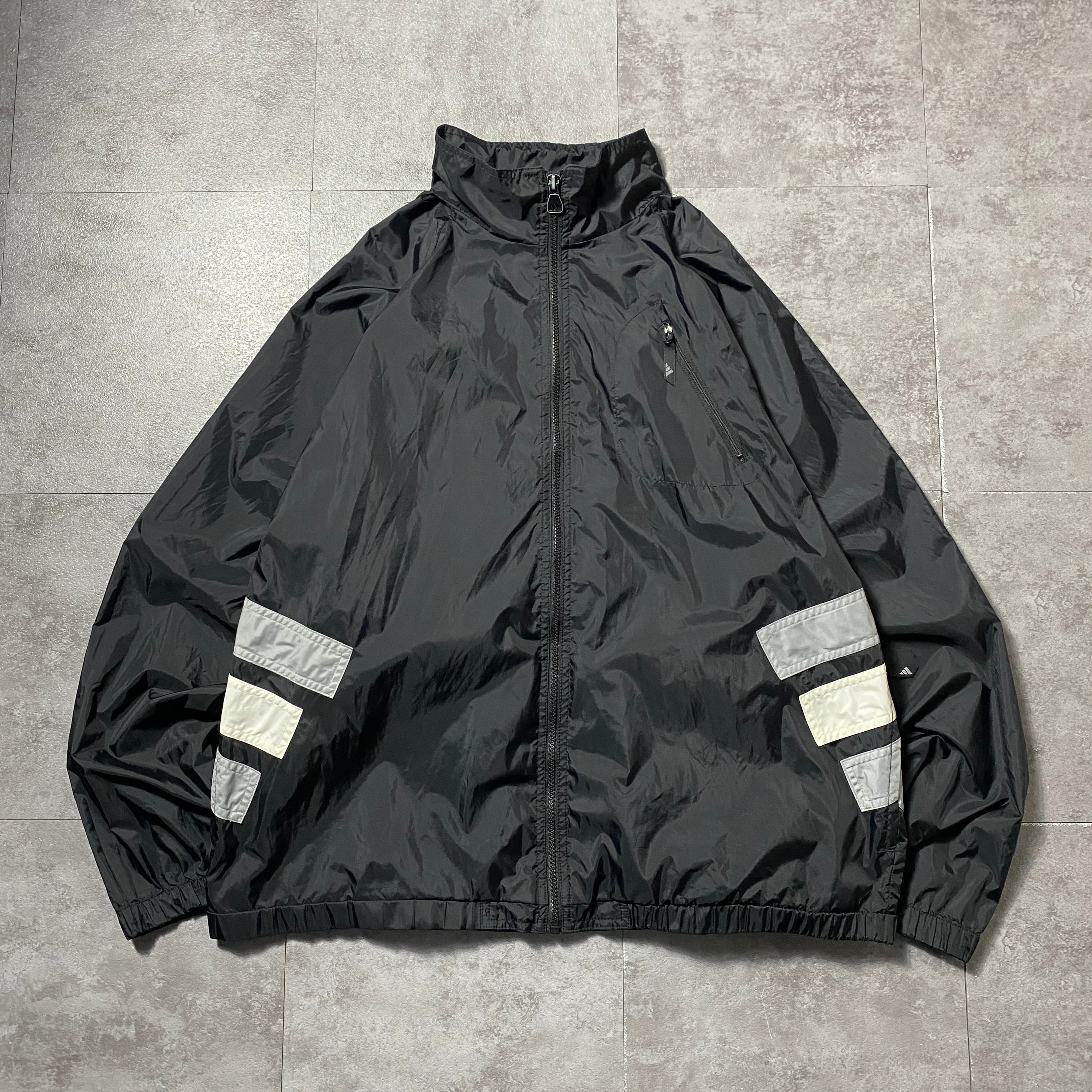 90's 00's adidas アディダス バック刺繍パフォーマンスロゴ ジップ付胸ポケット フード格納 ブラック 黒 ナイロンジャケット