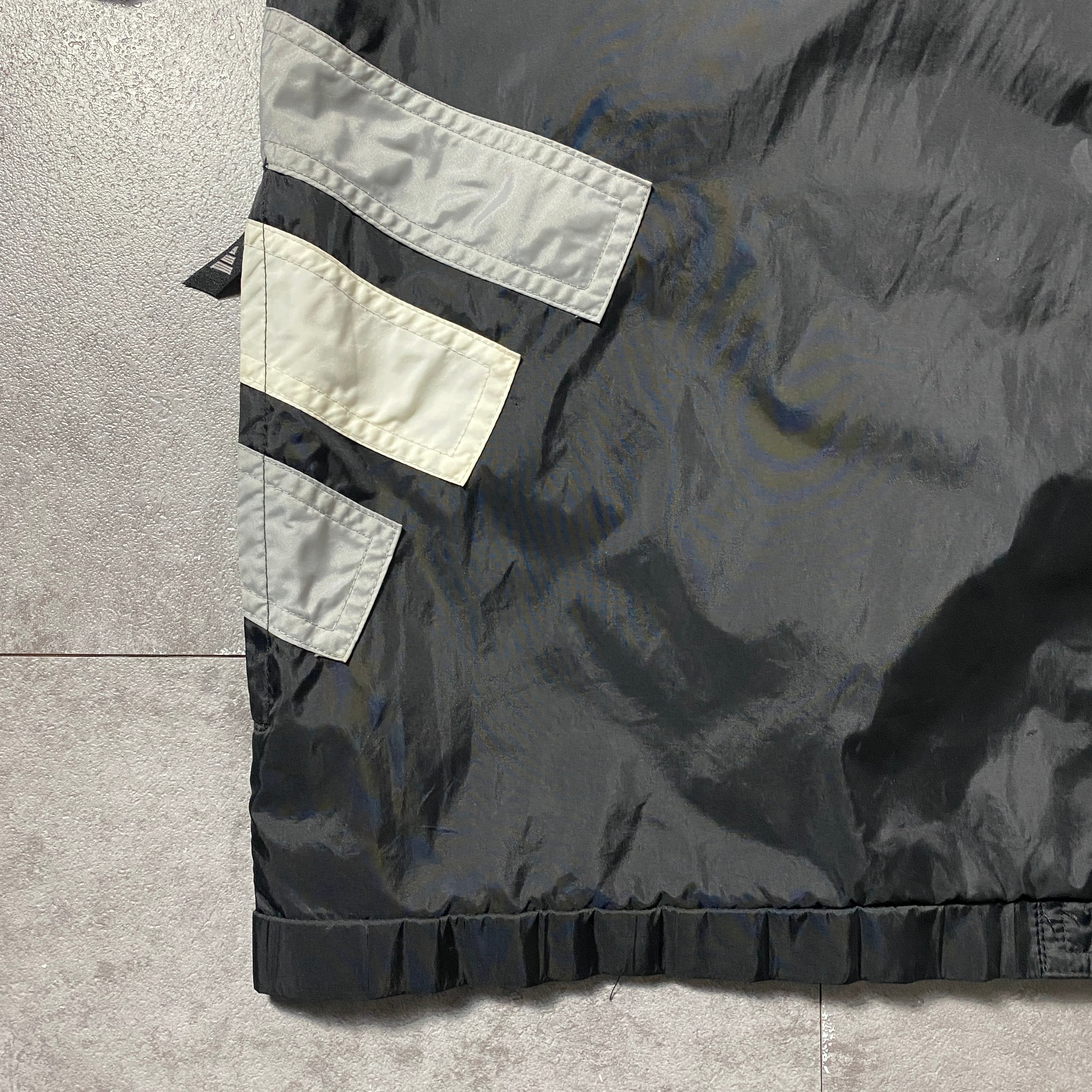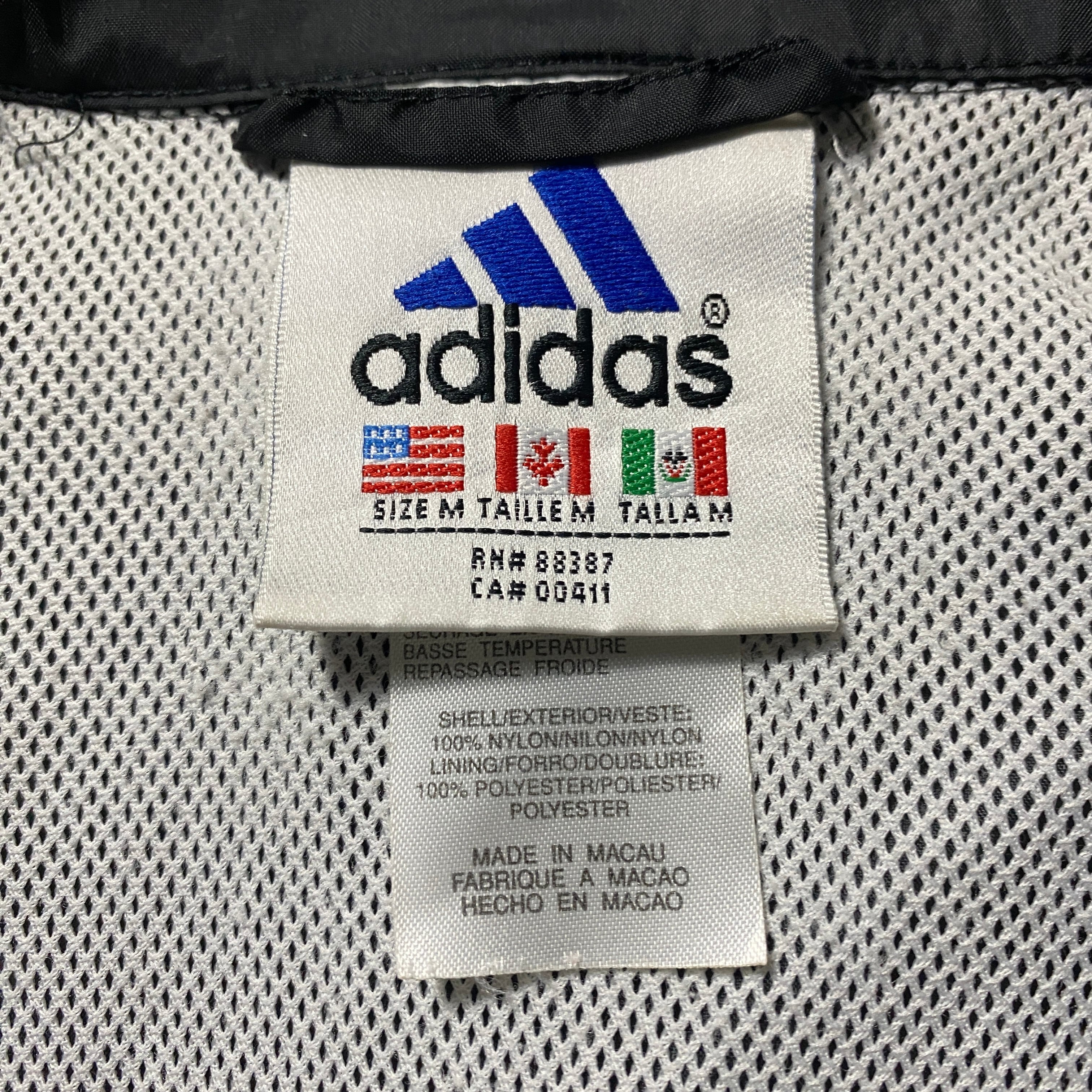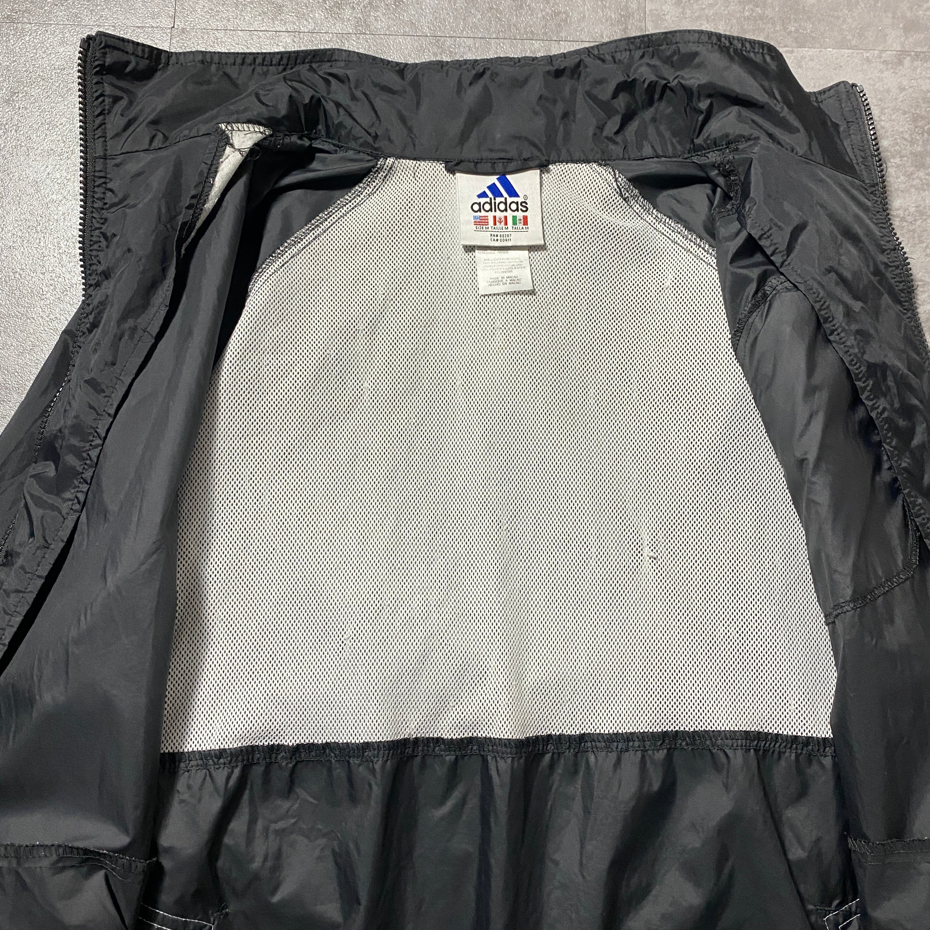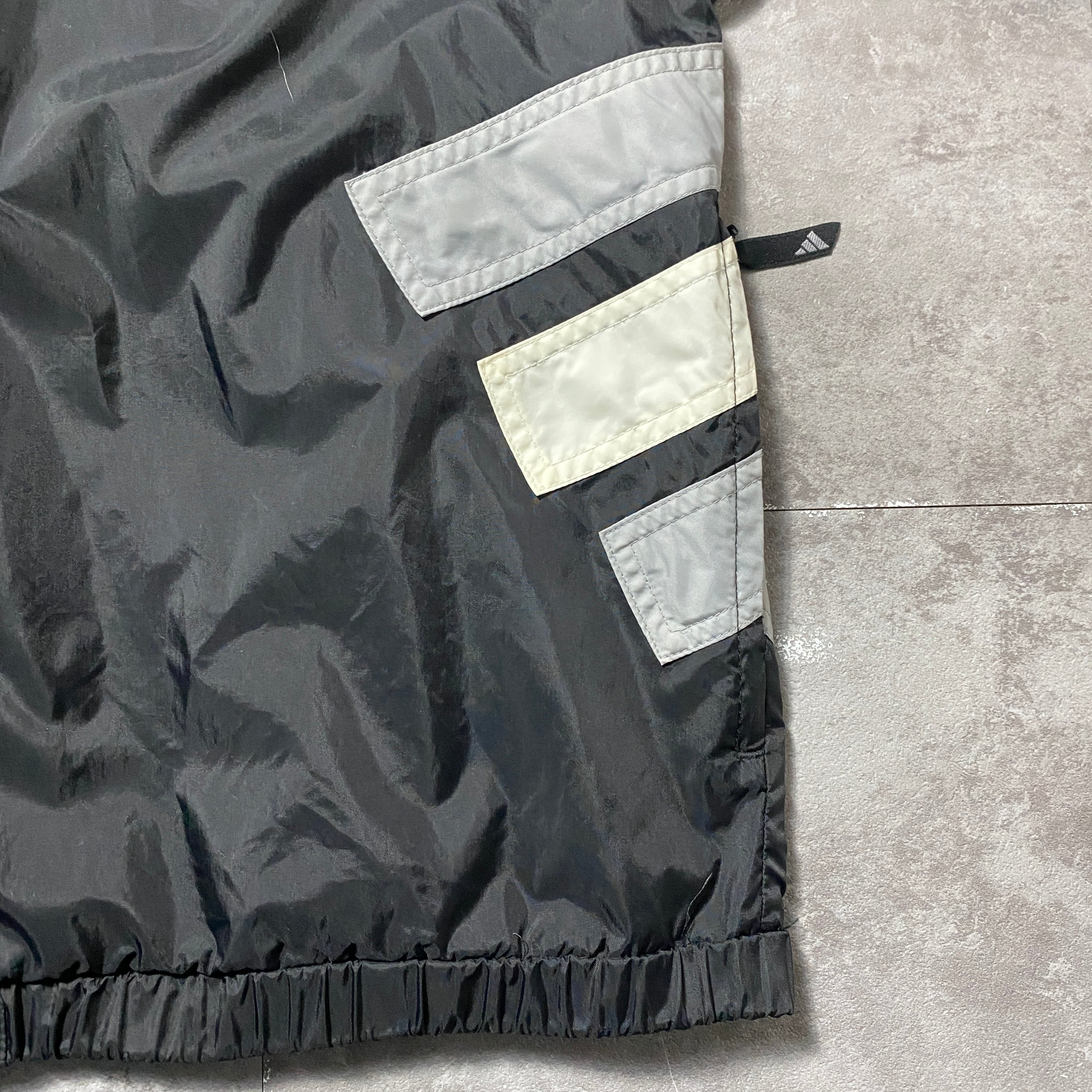 90's 00's adidas アディダス バック刺繍パフォーマンスロゴ ジップ付胸ポケット フード格納 ブラック 黒 ナイロンジャケット