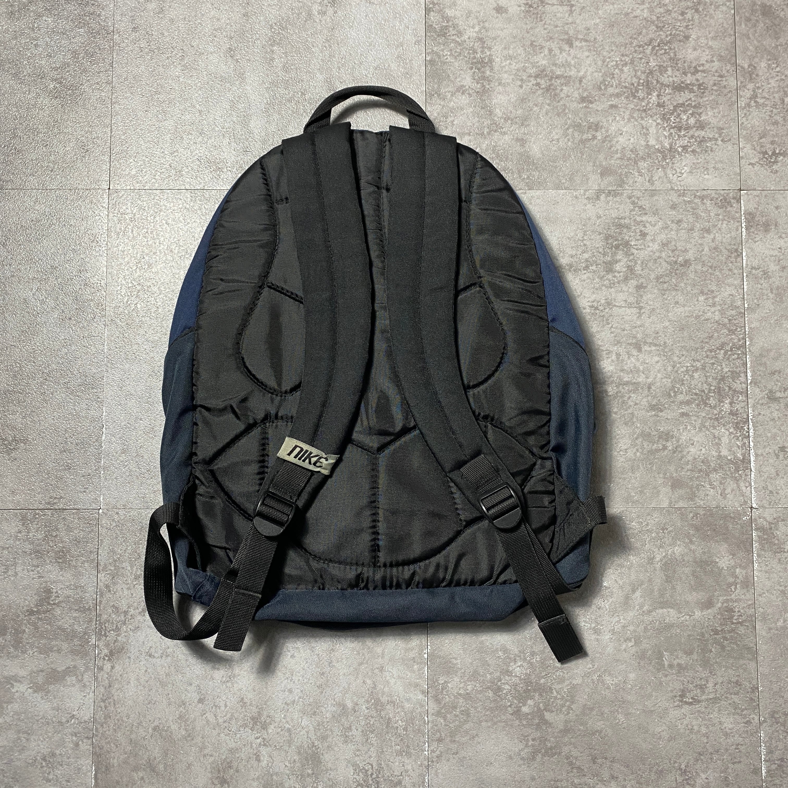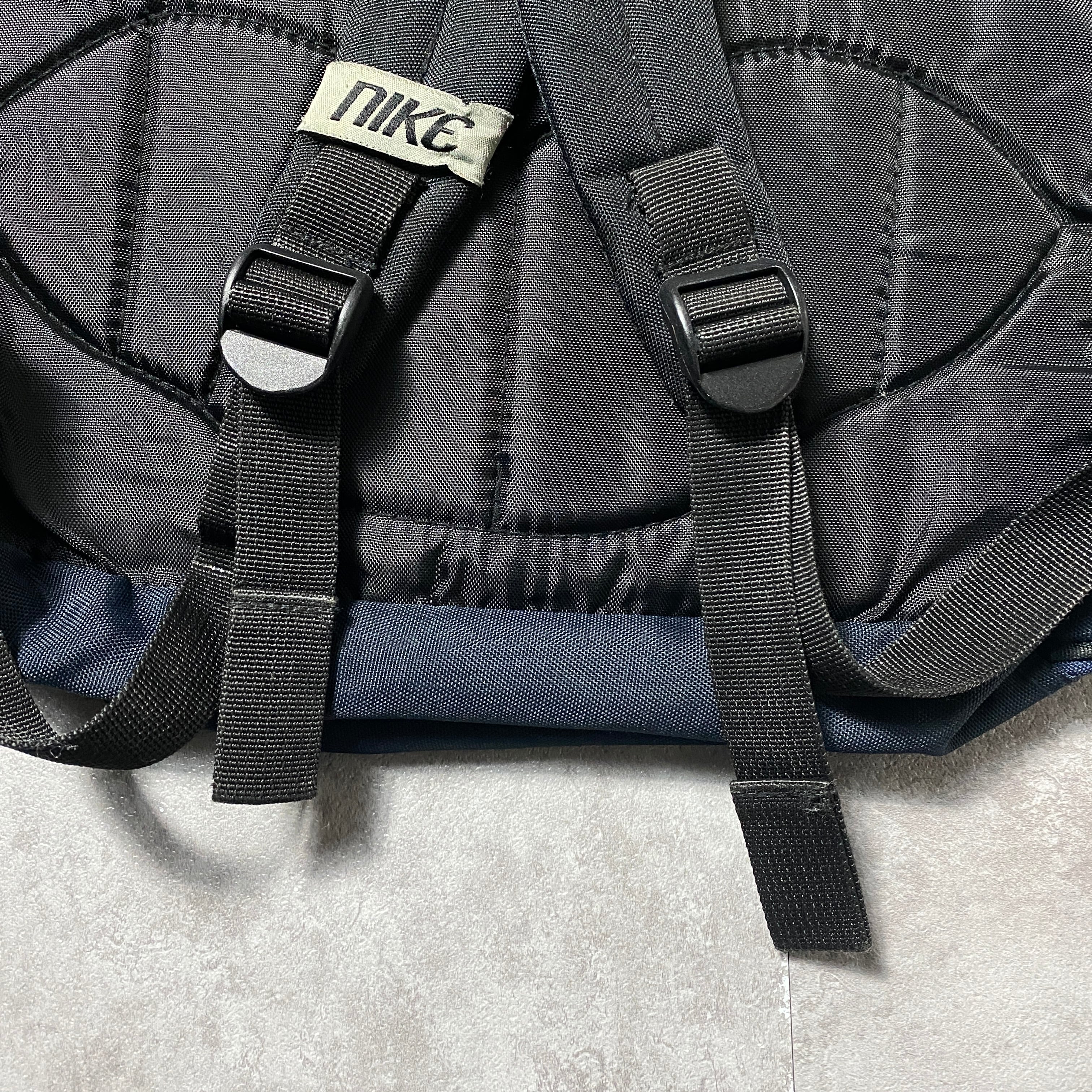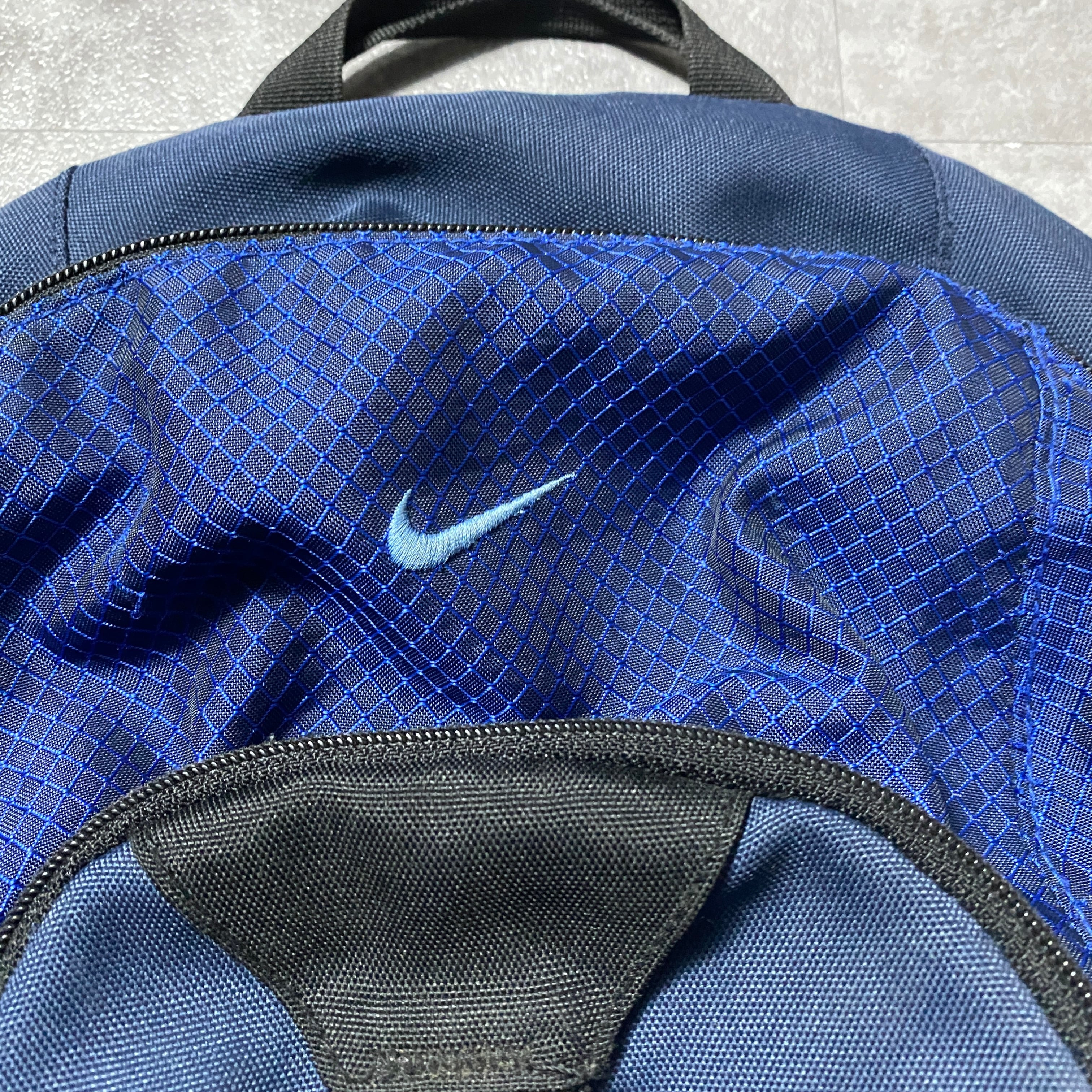 90's NIKE ナイキ スウォッシュ&文字 刺繍ロゴ ネイビー×ブラック リュックサック バックパック