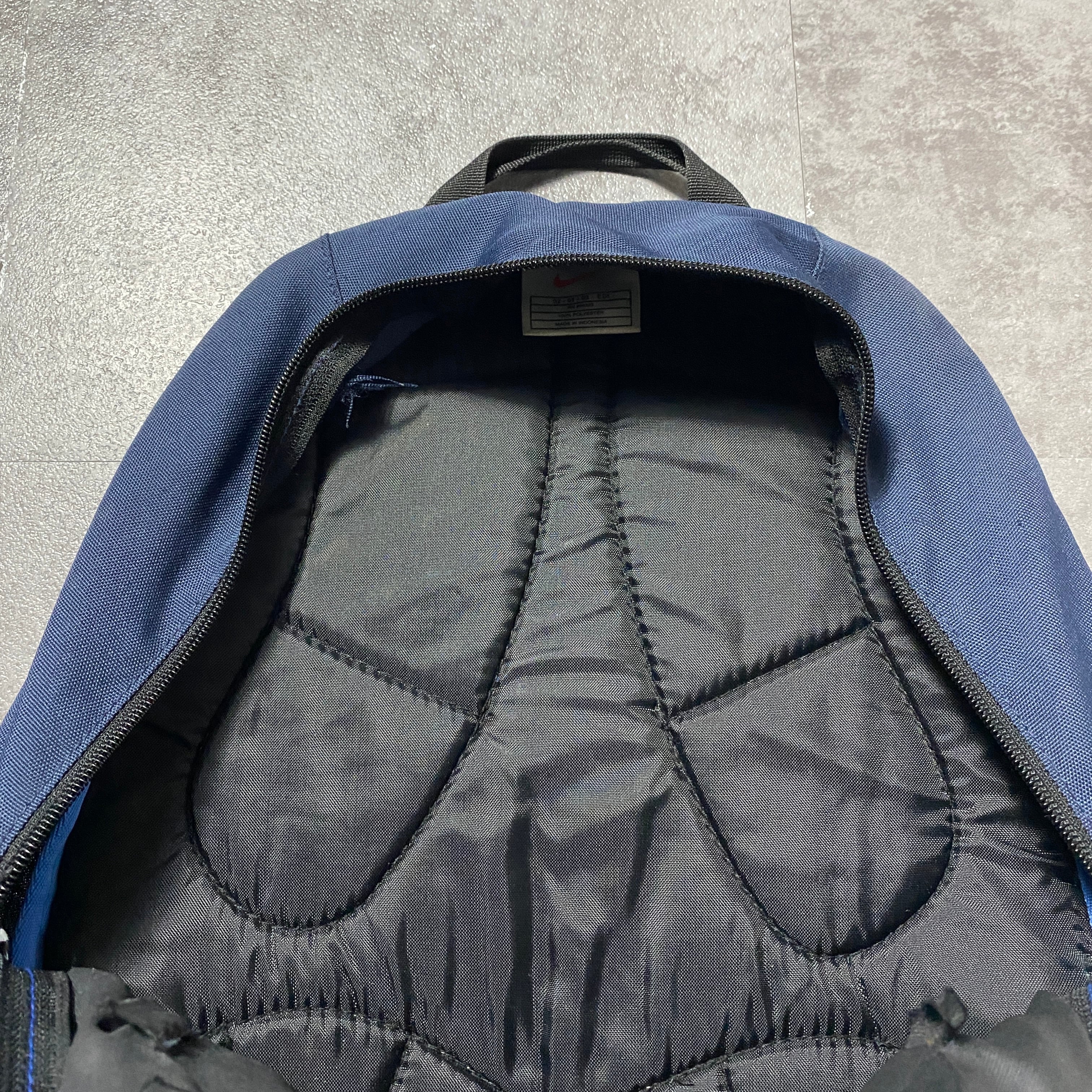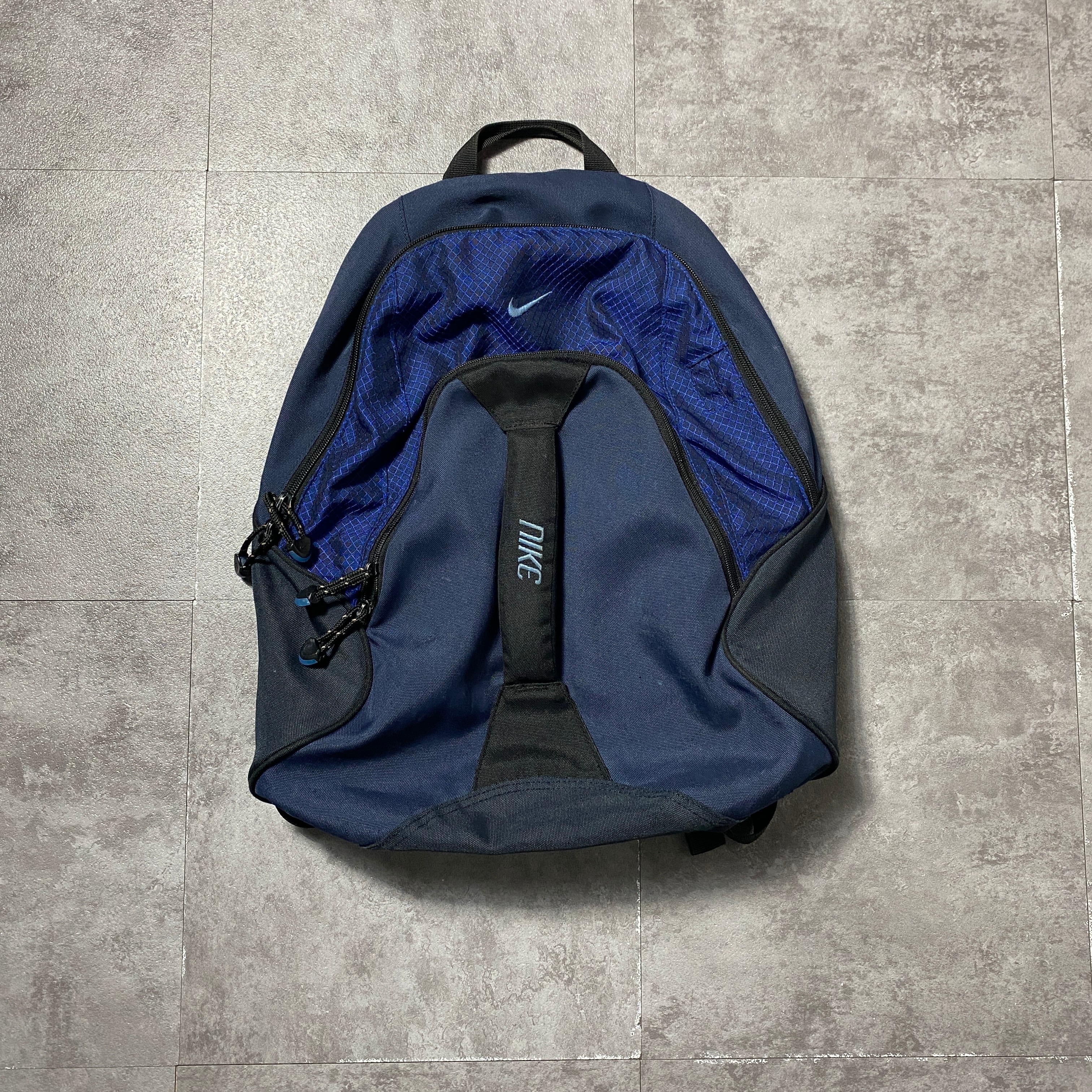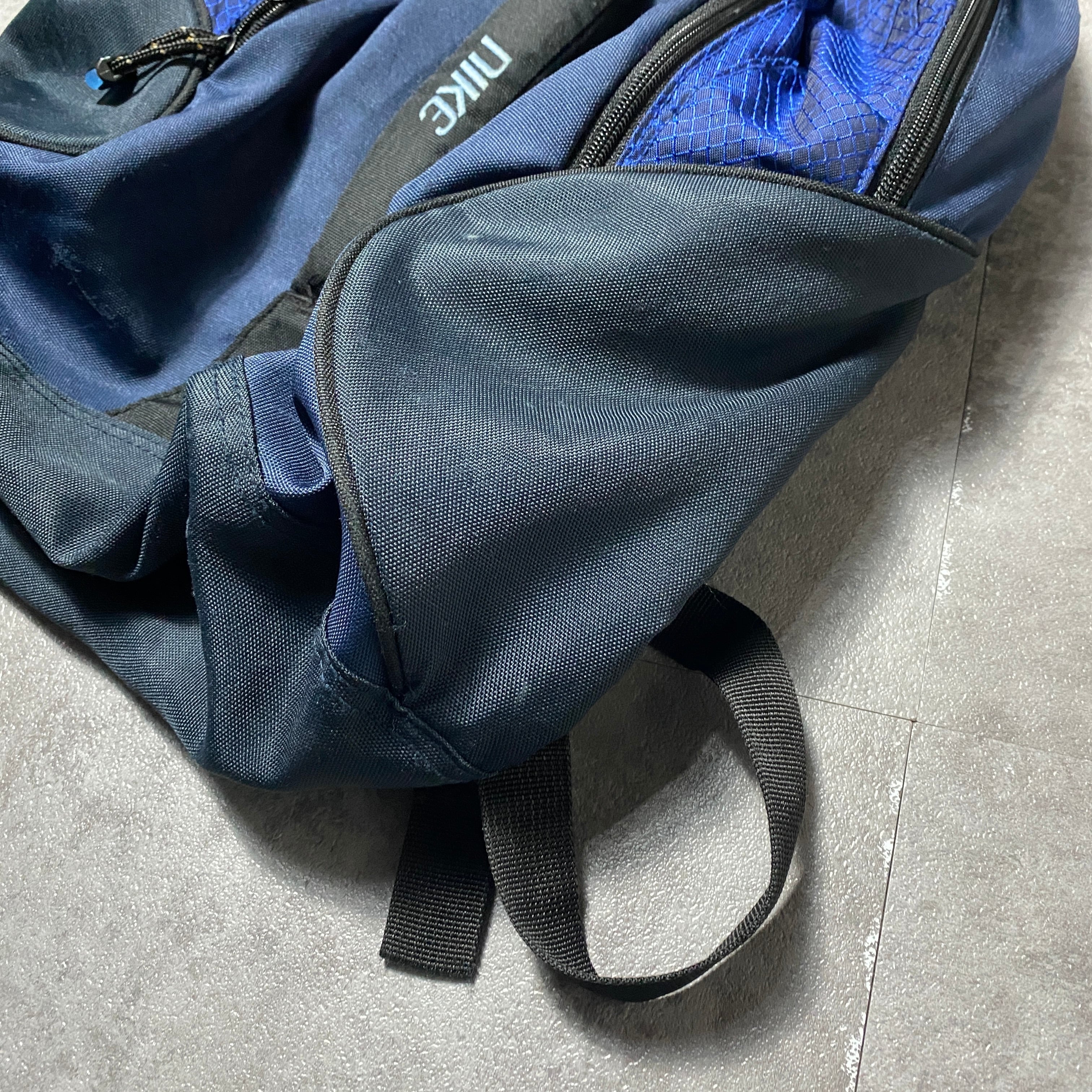 90's NIKE ナイキ スウォッシュ&文字 刺繍ロゴ ネイビー×ブラック リュックサック バックパック